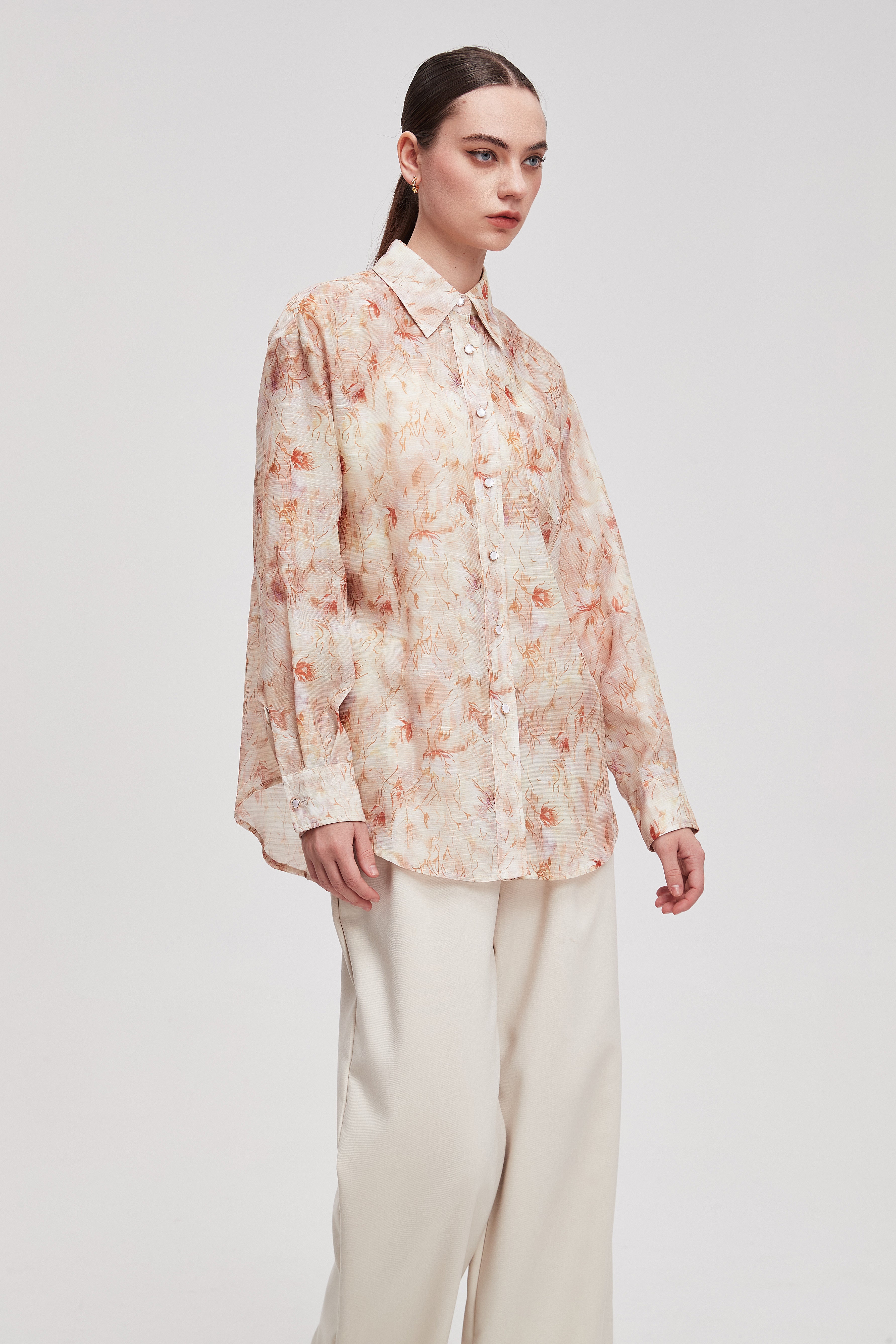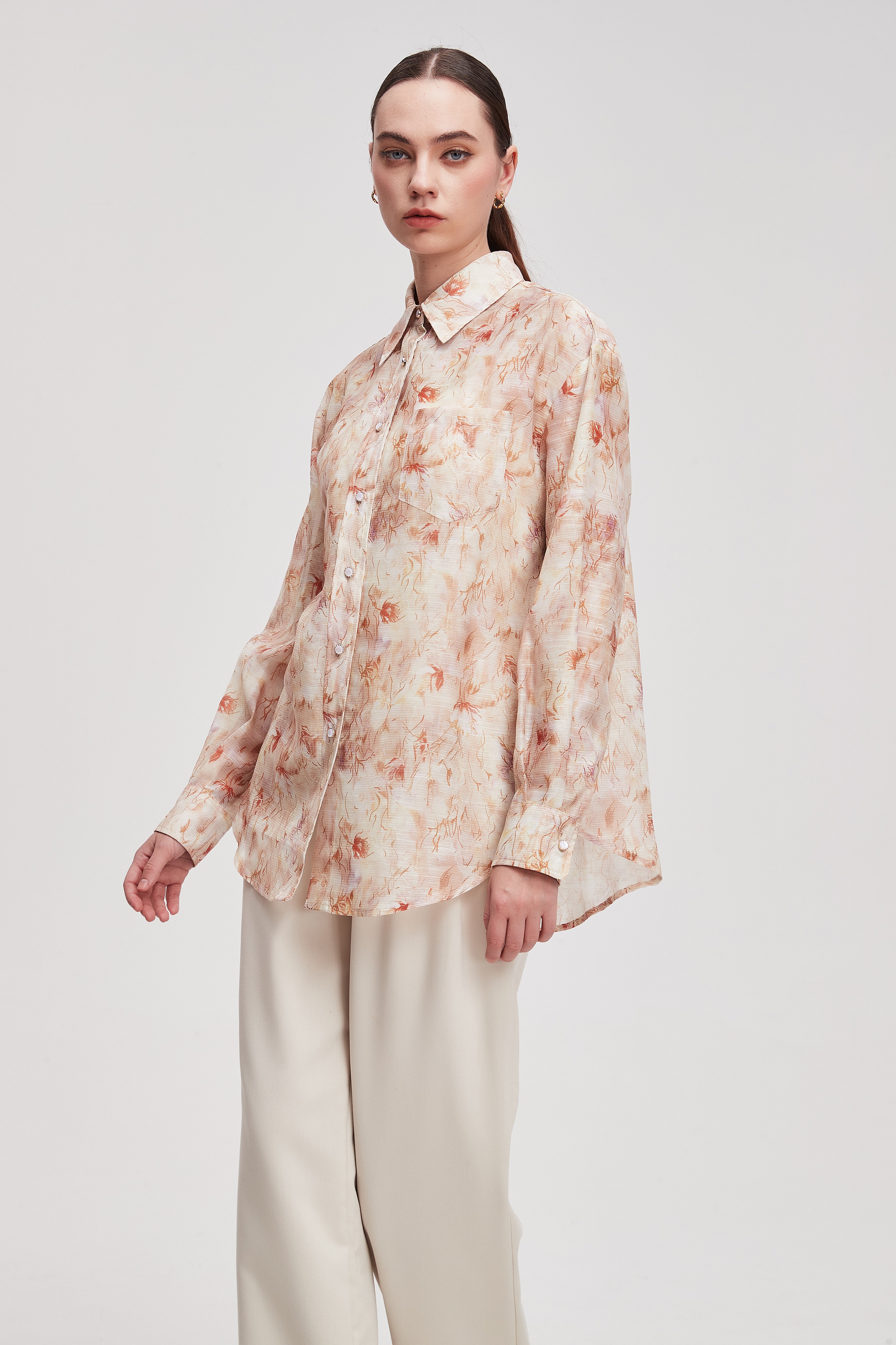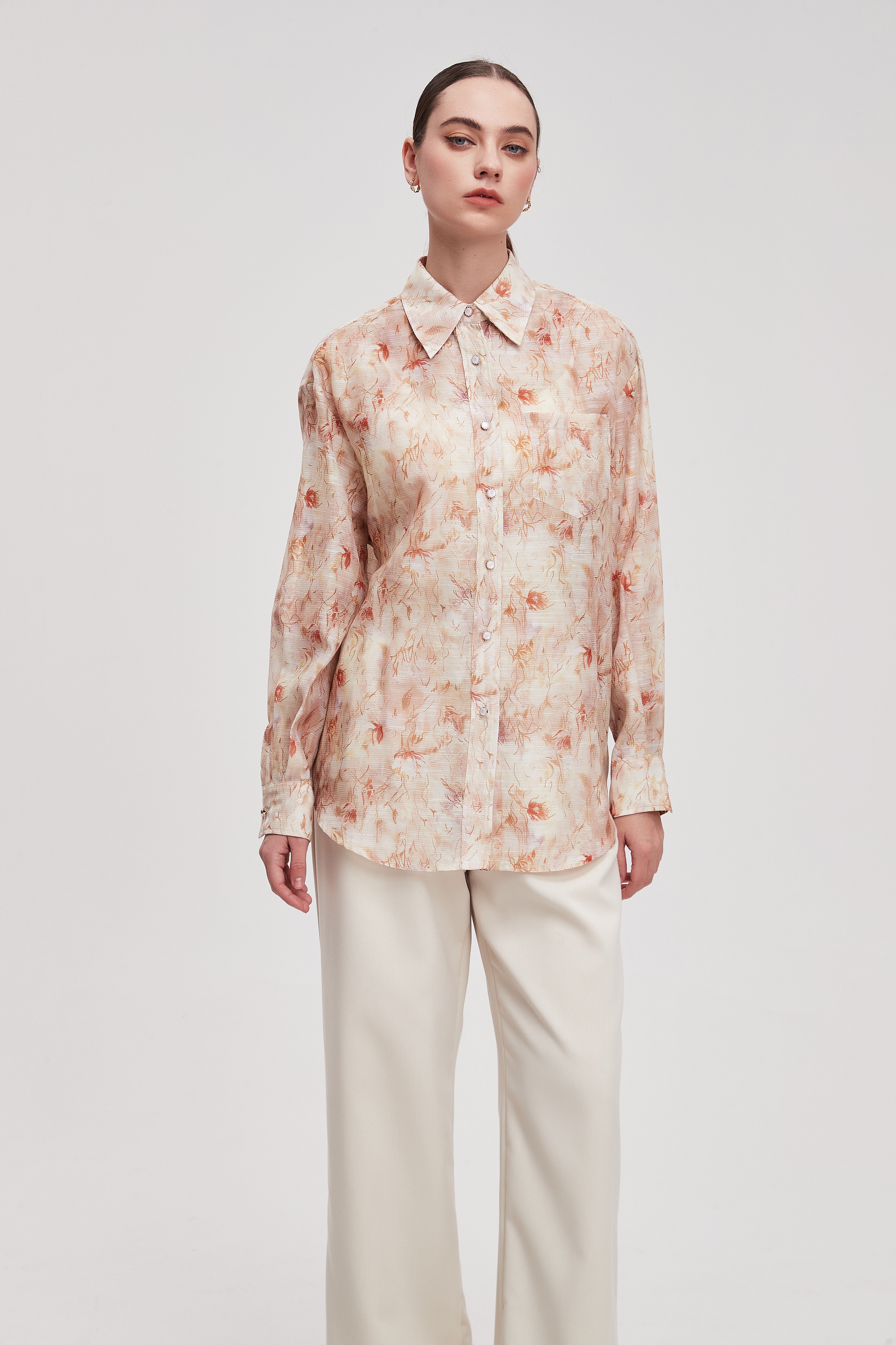 بلوزة نسائية بأكمام طويلة وقصة انسيابية