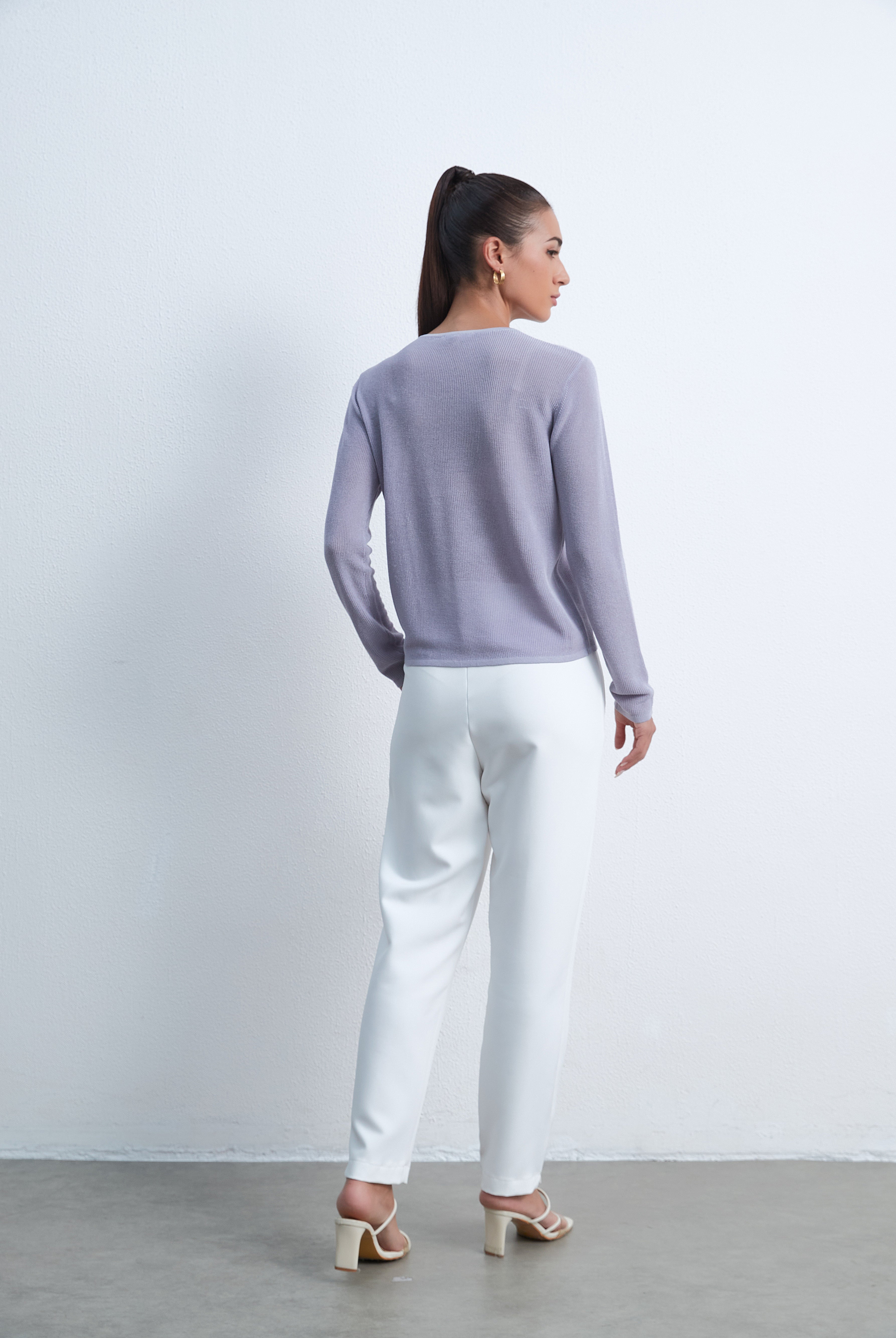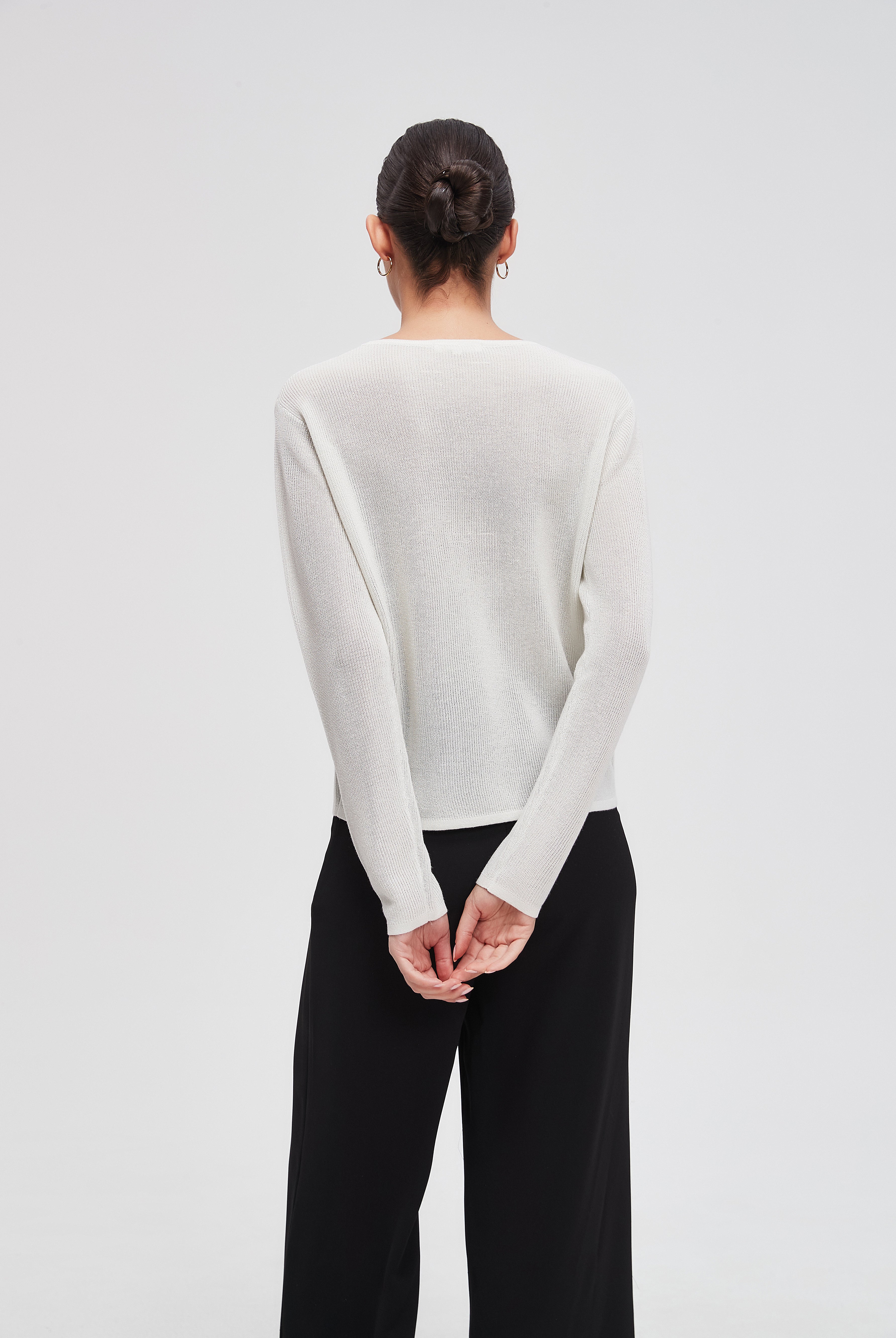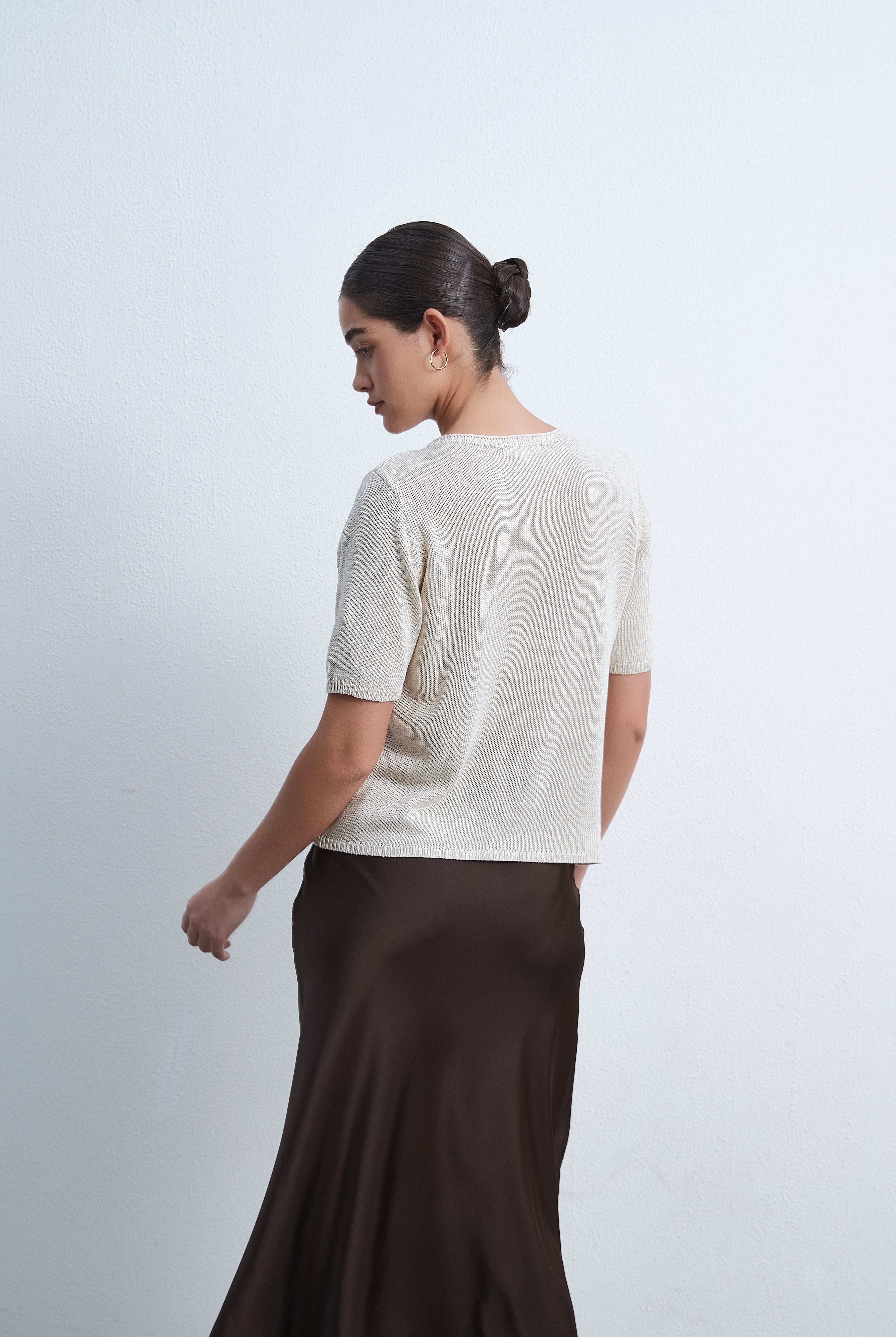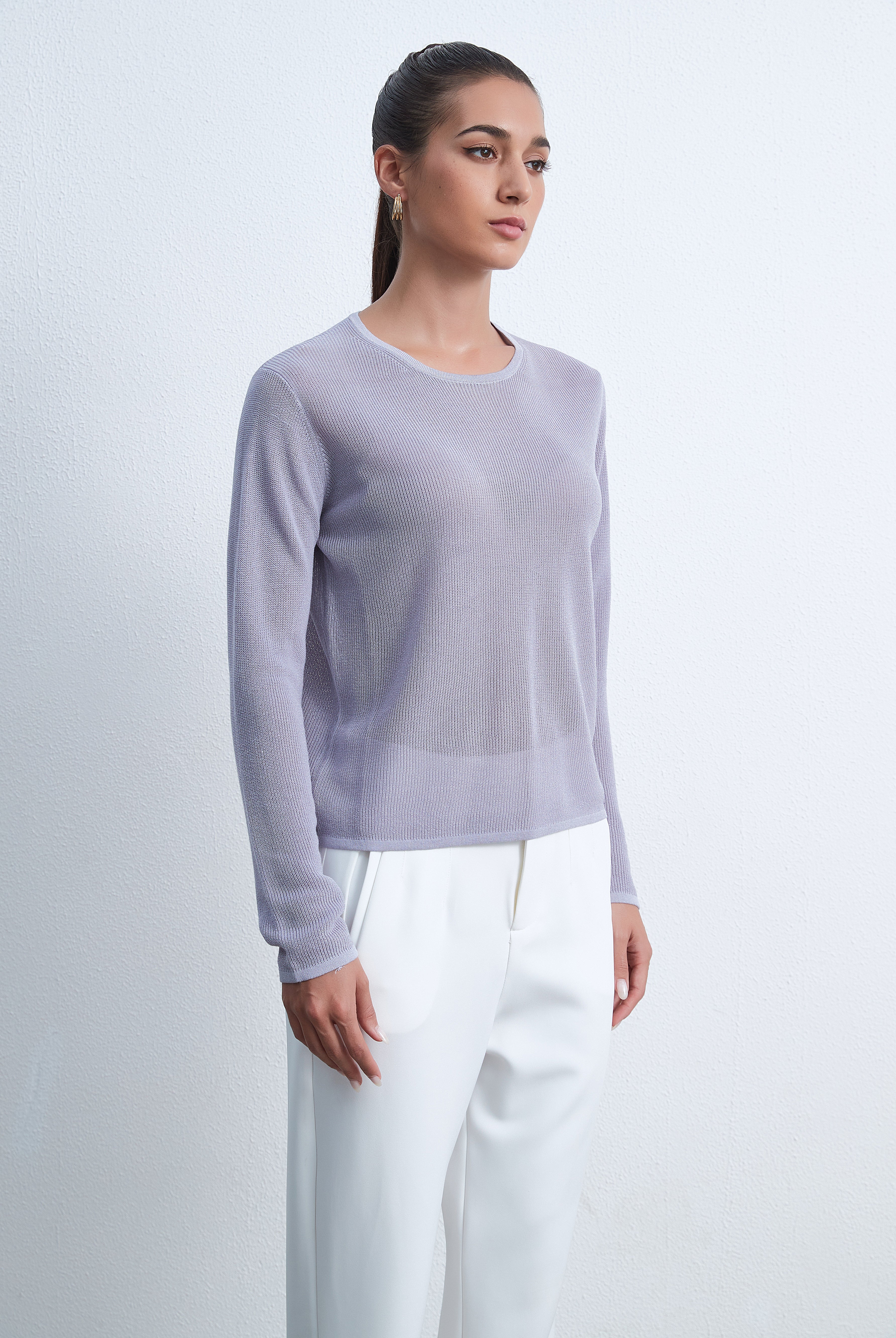 بلوزة نصف كم مضلعة بفتحة رقبة مستديرة