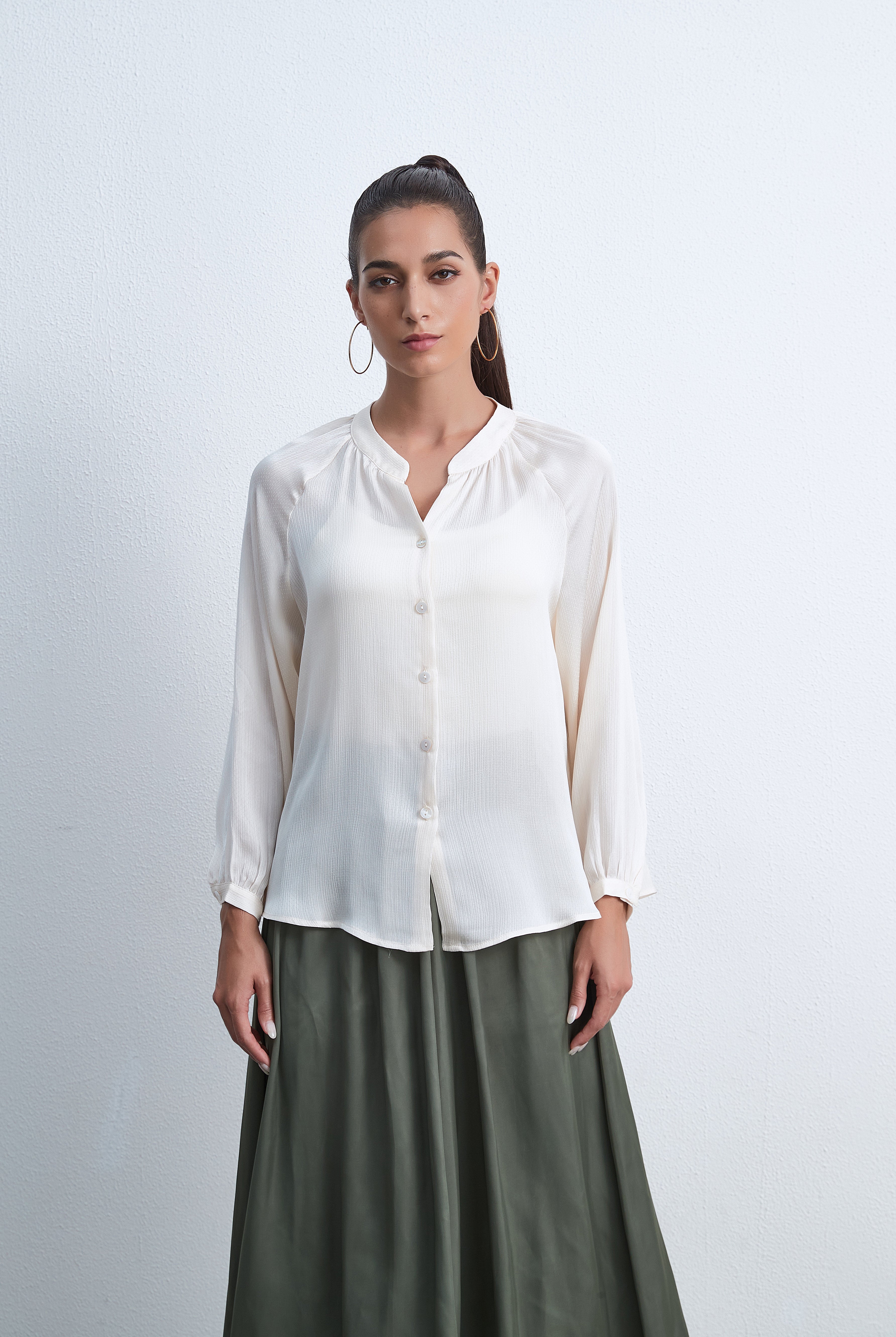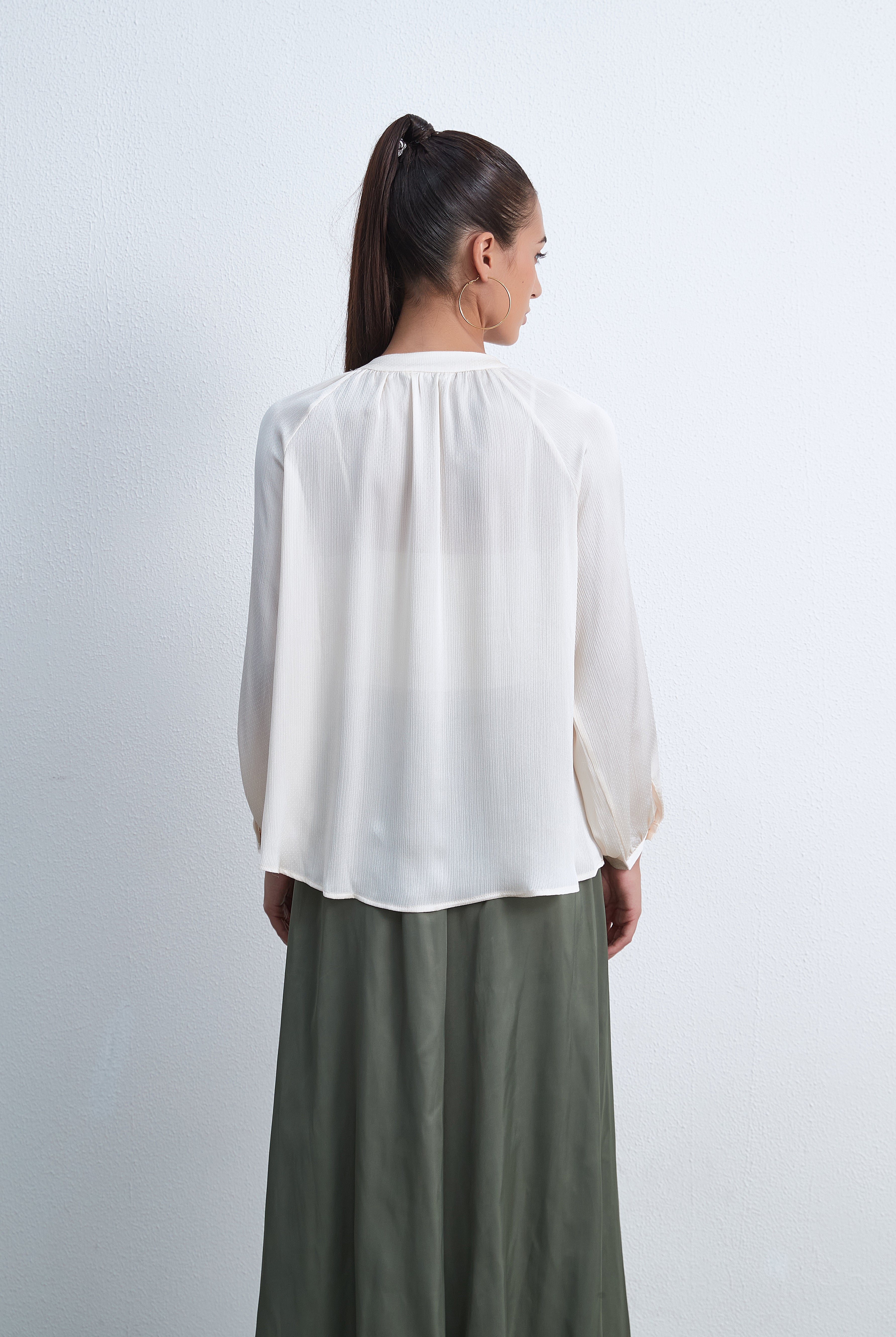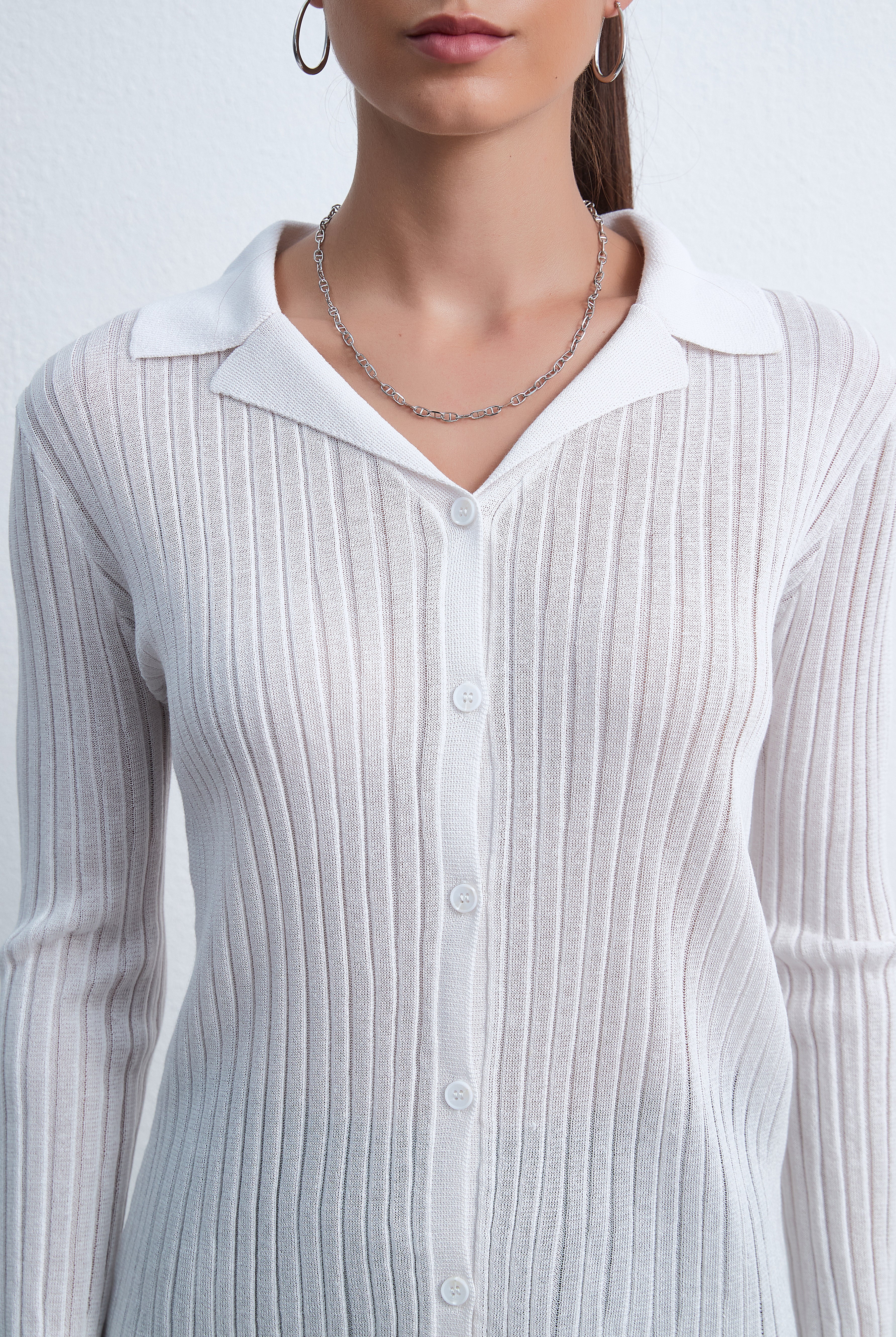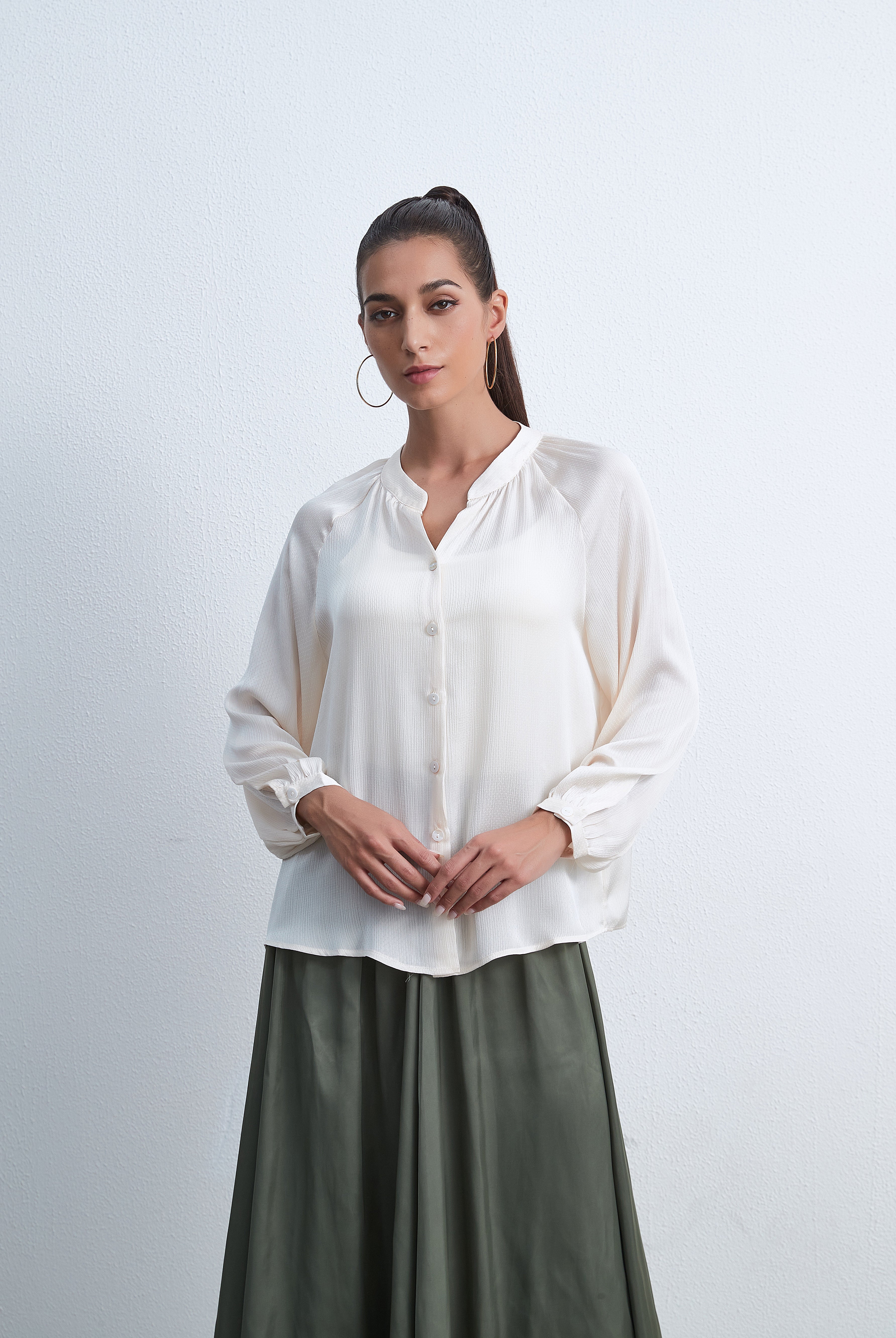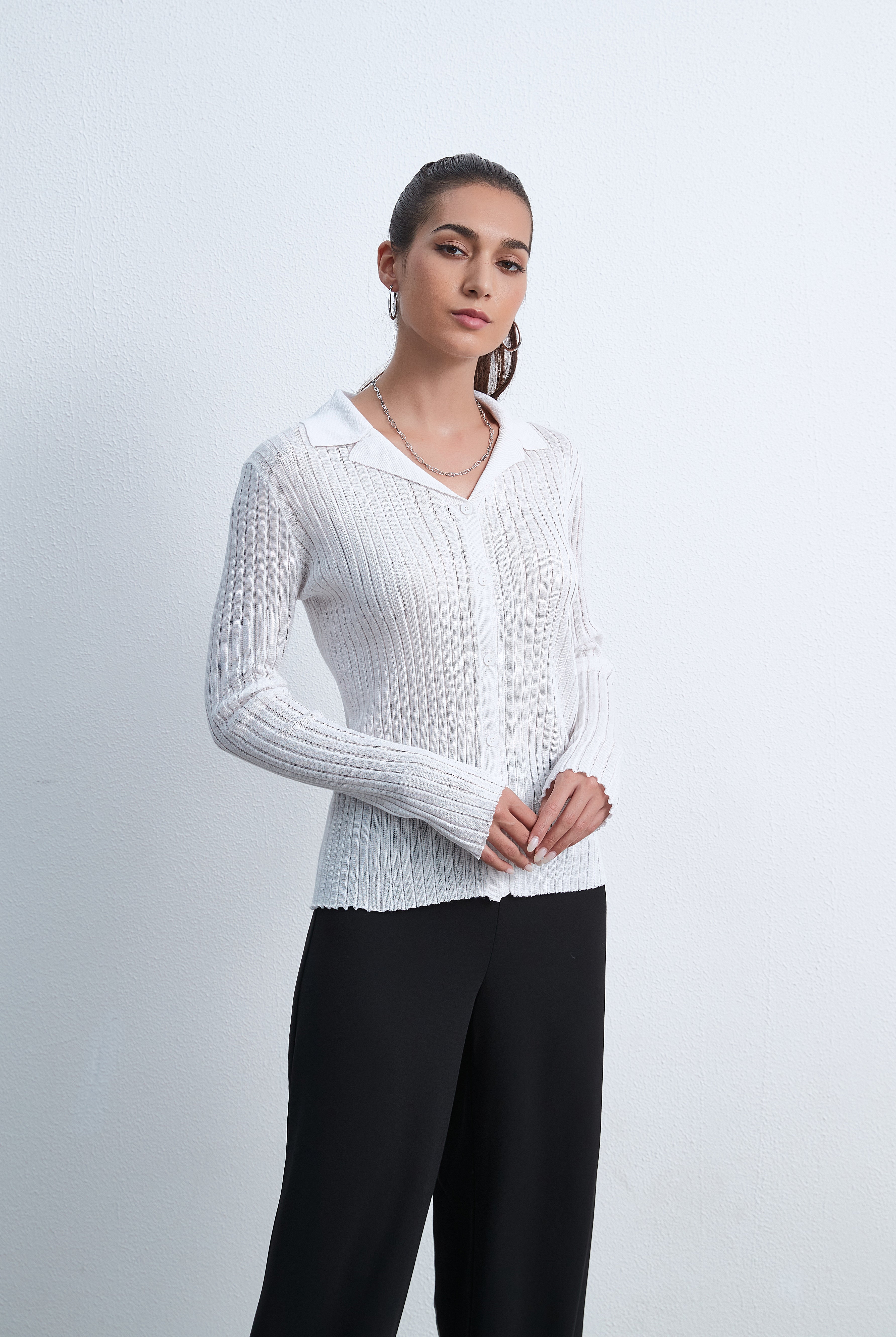 بلوزة بأزرار أمامية وأكمام طويلة مع ياقة قميص