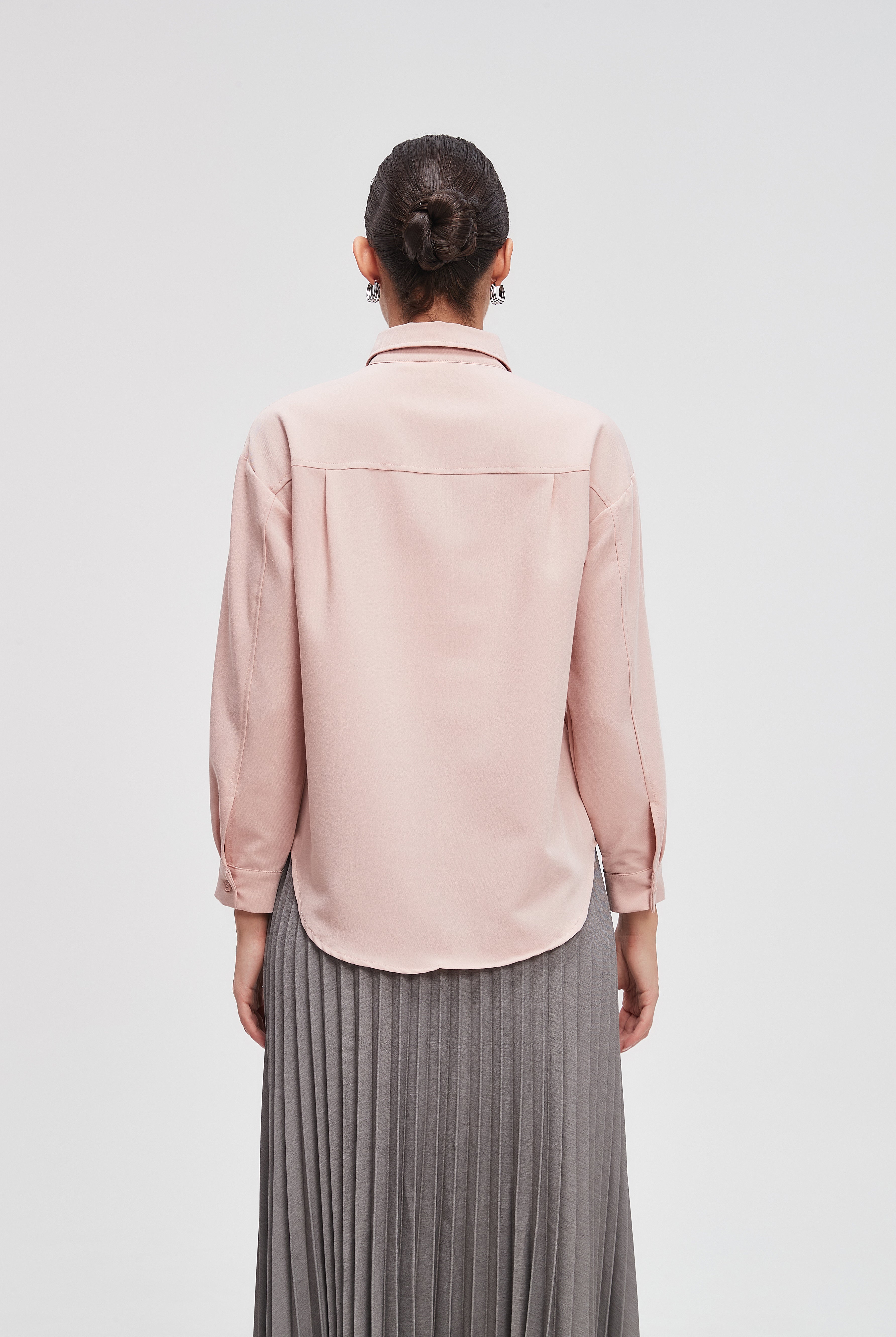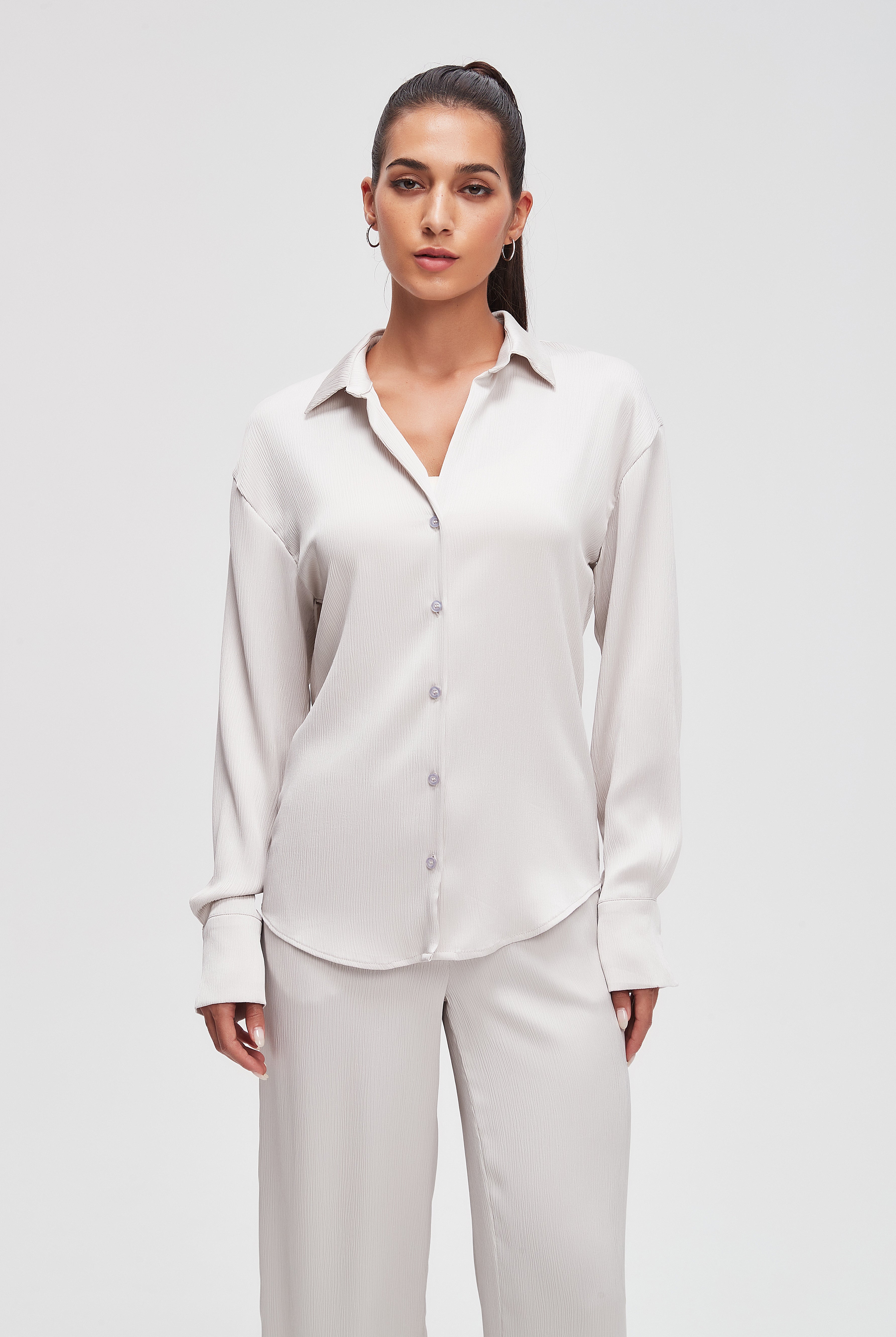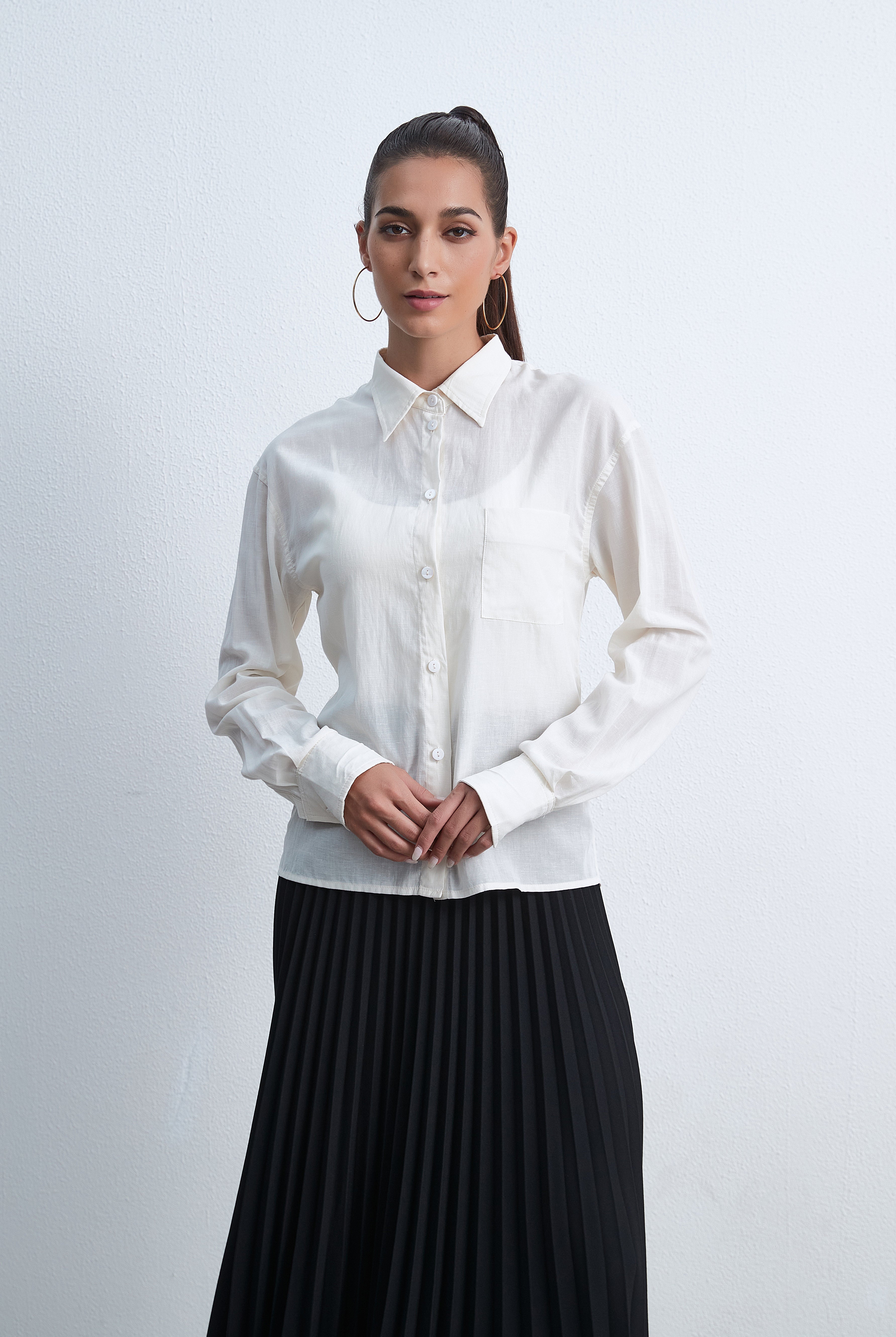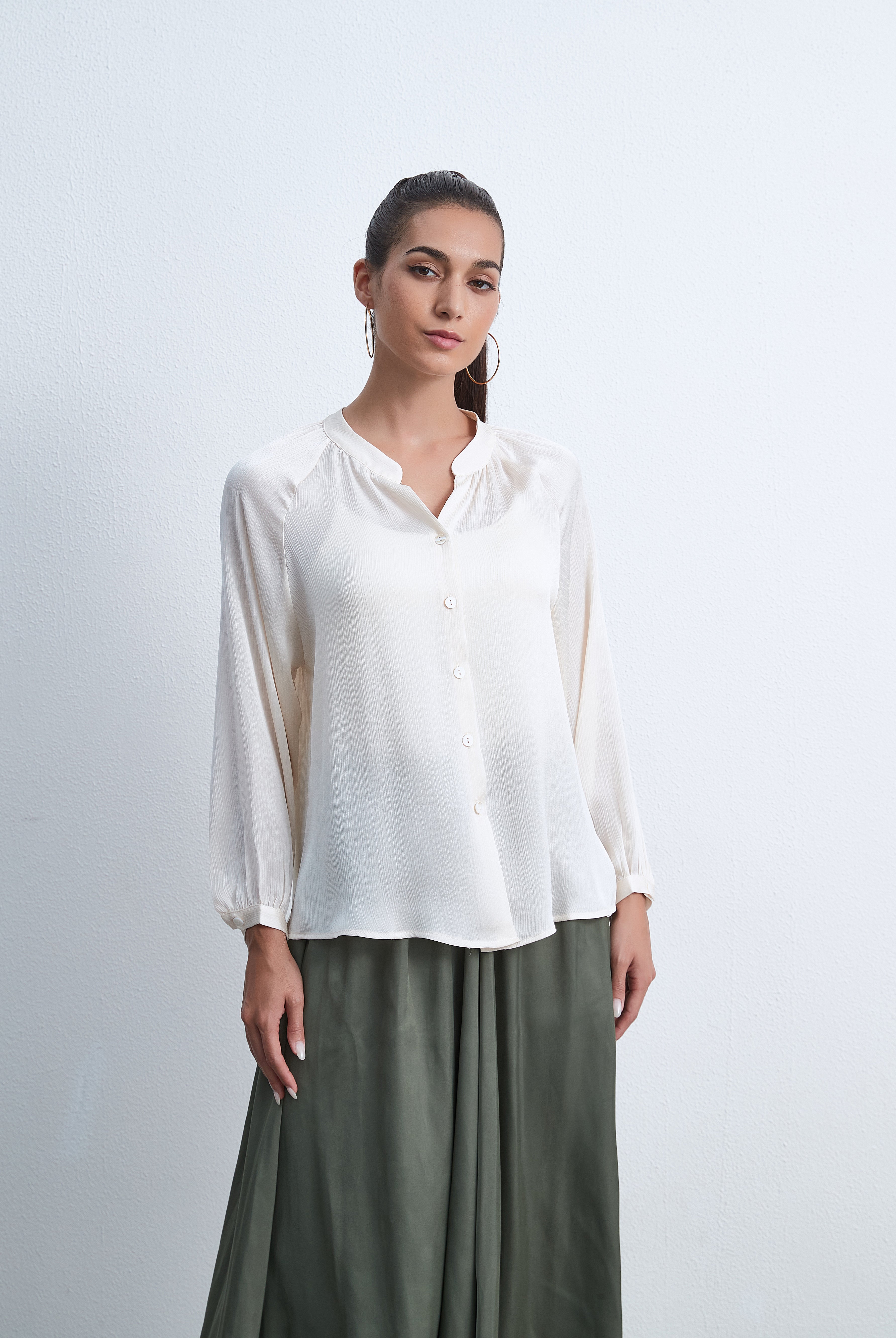 بلوزة بأزرار أمامية وأكمام طويلة مع ياقة قميص