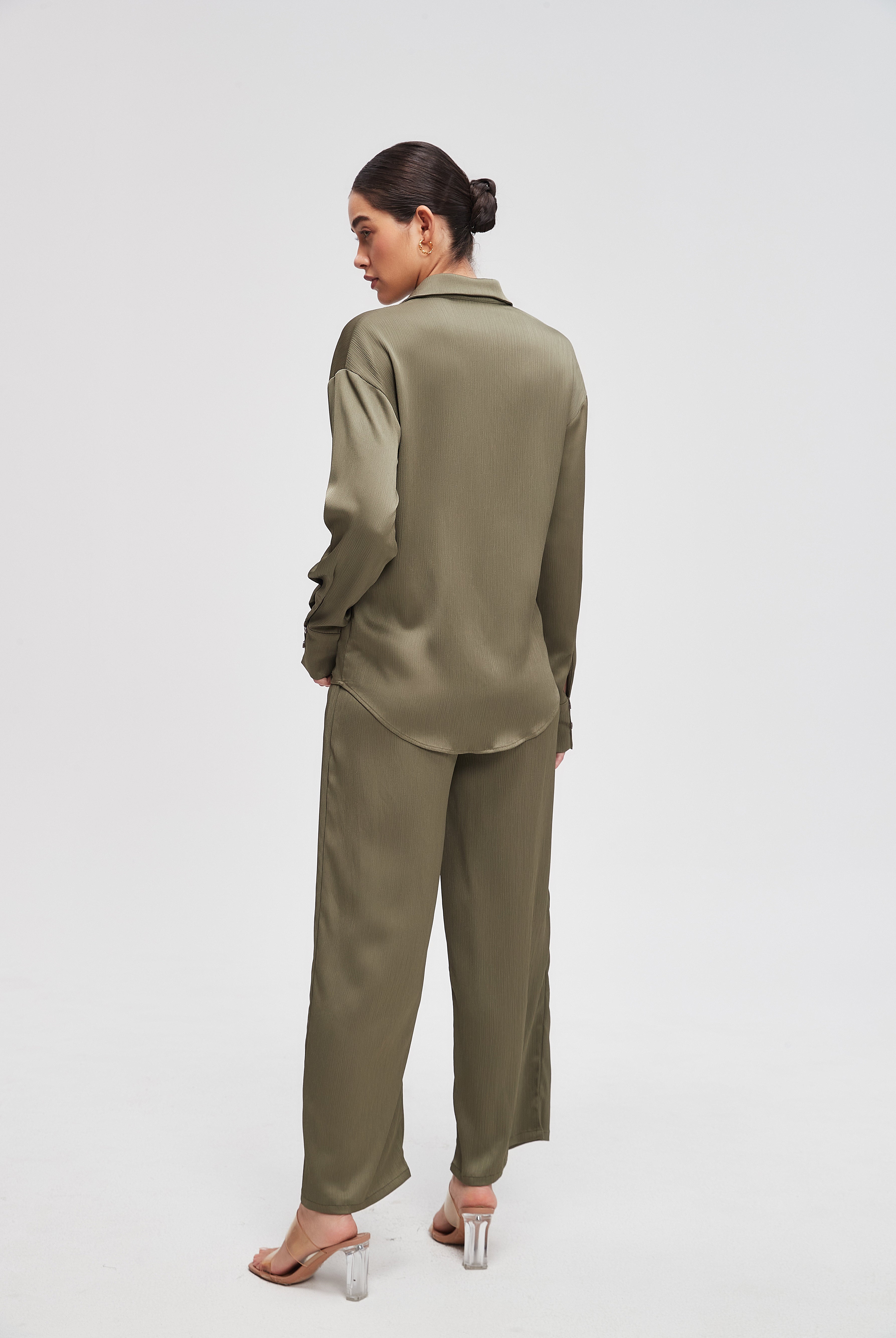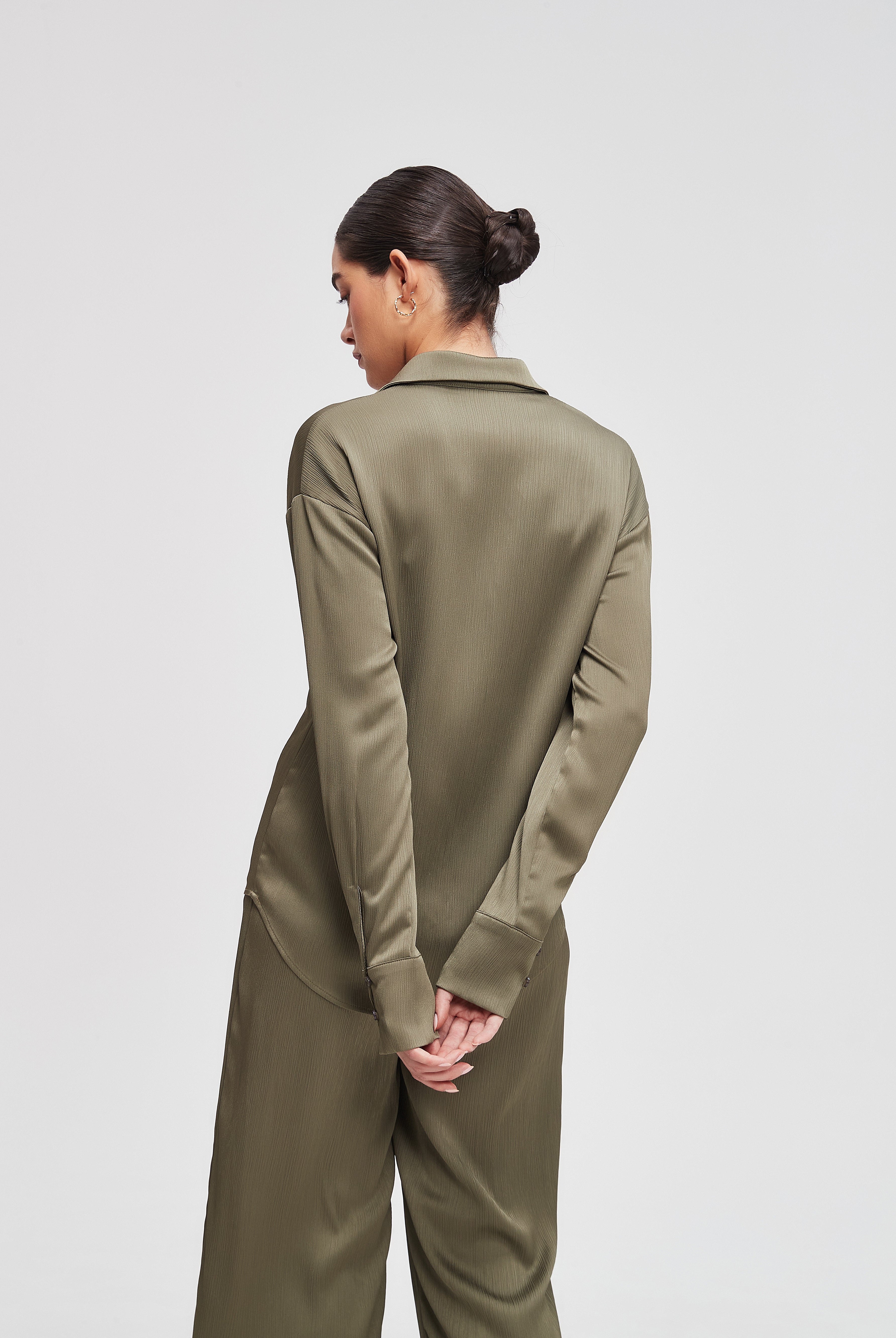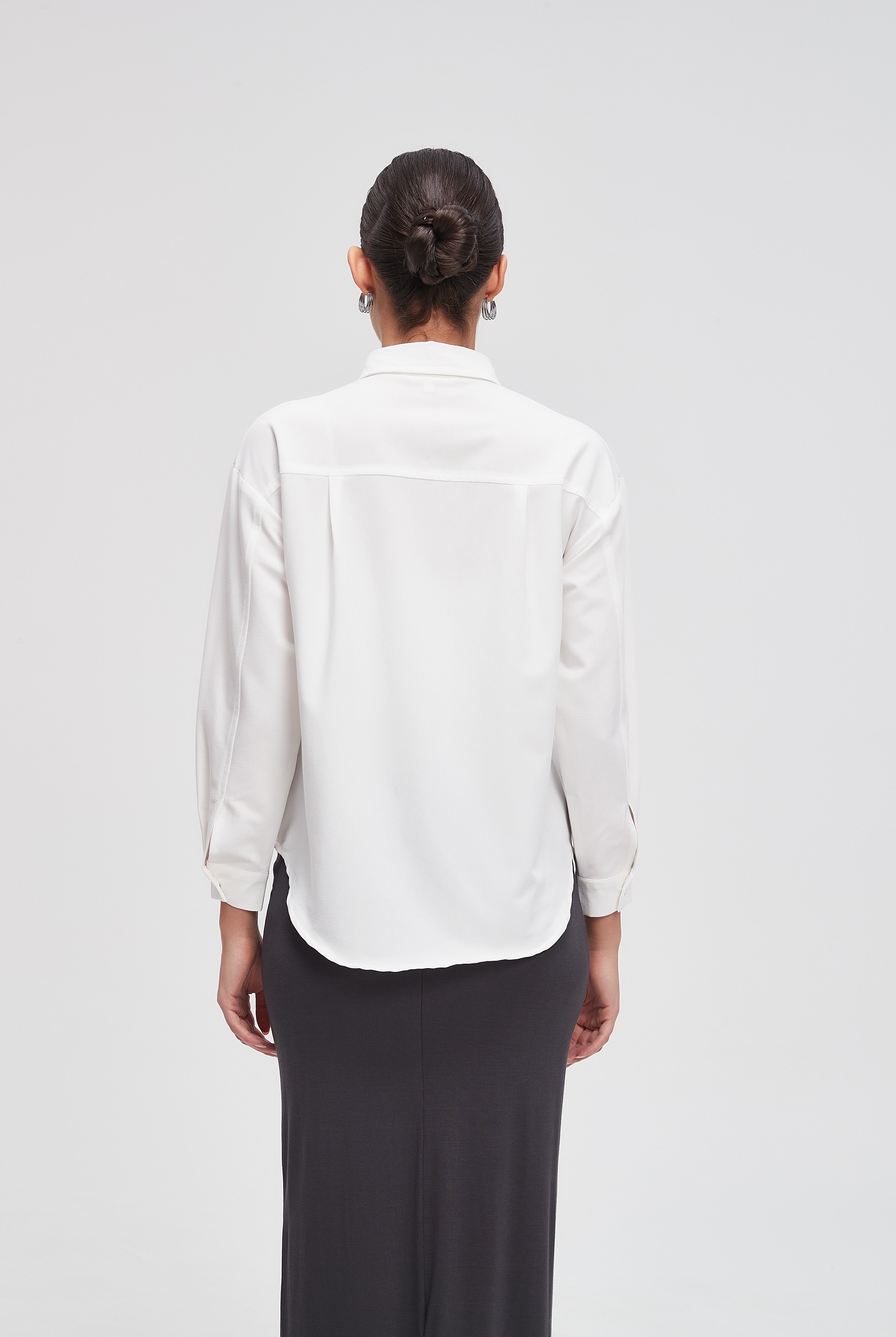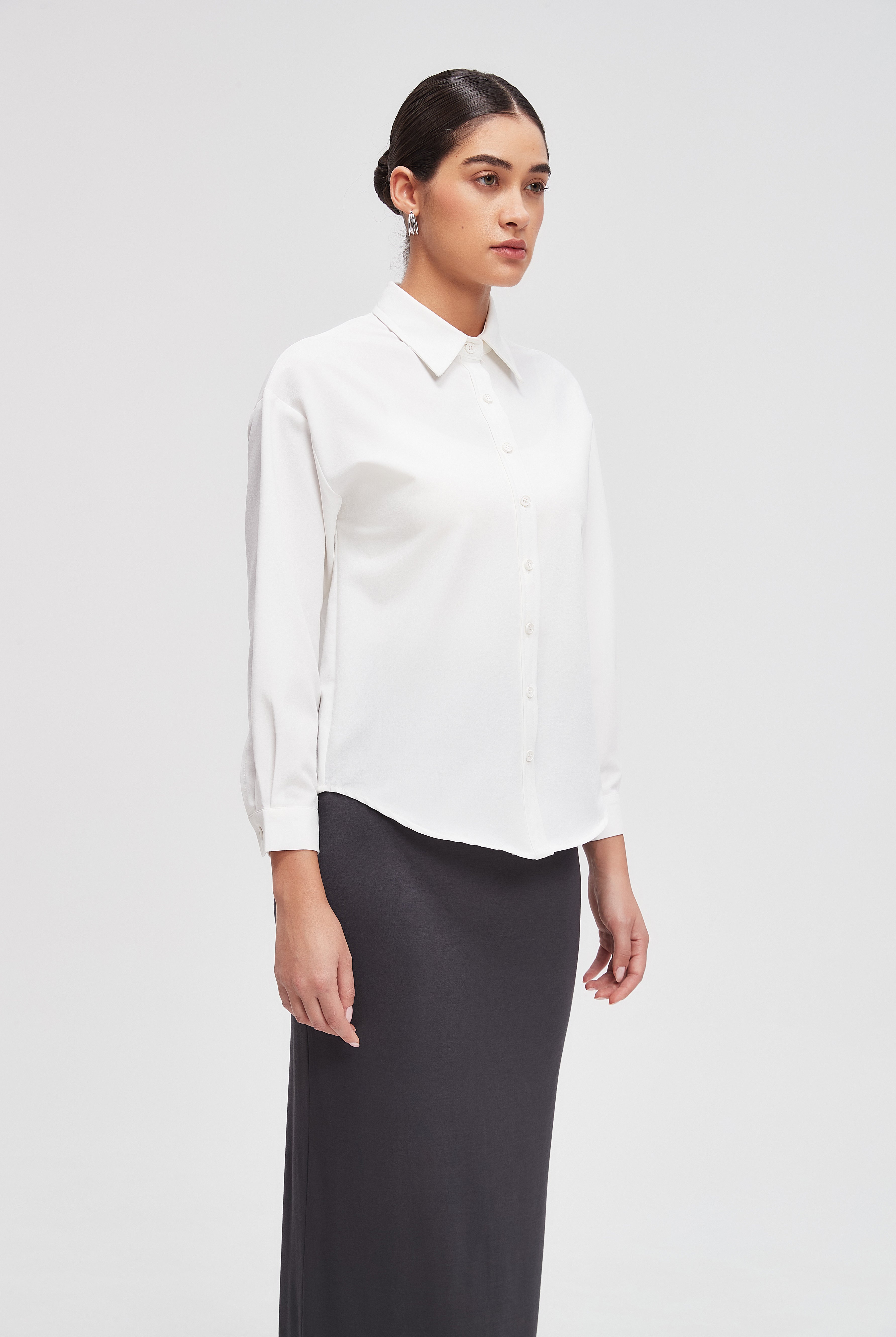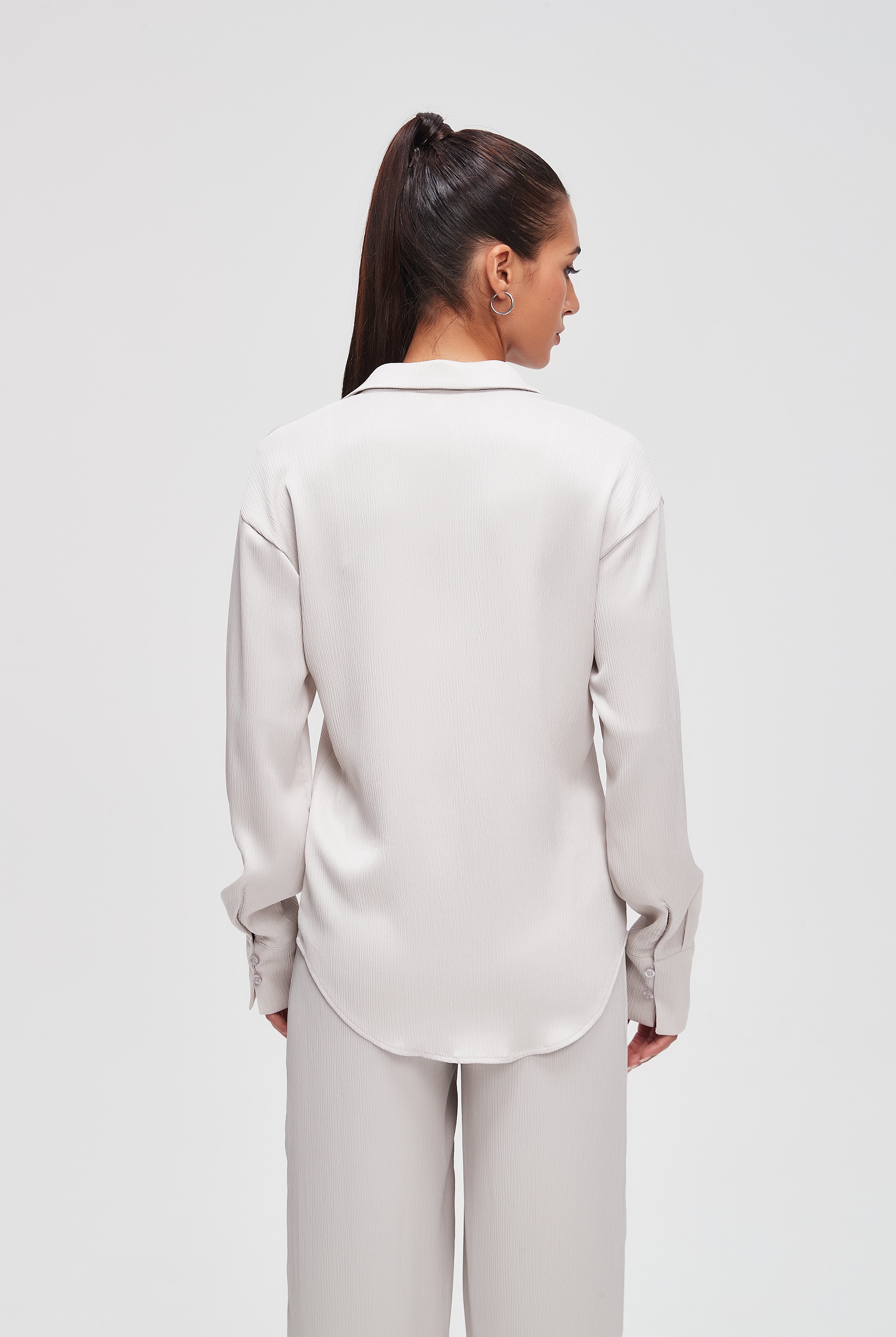 بلوزة بأزرار أمامية وأكمام طويلة مع ياقة قميص