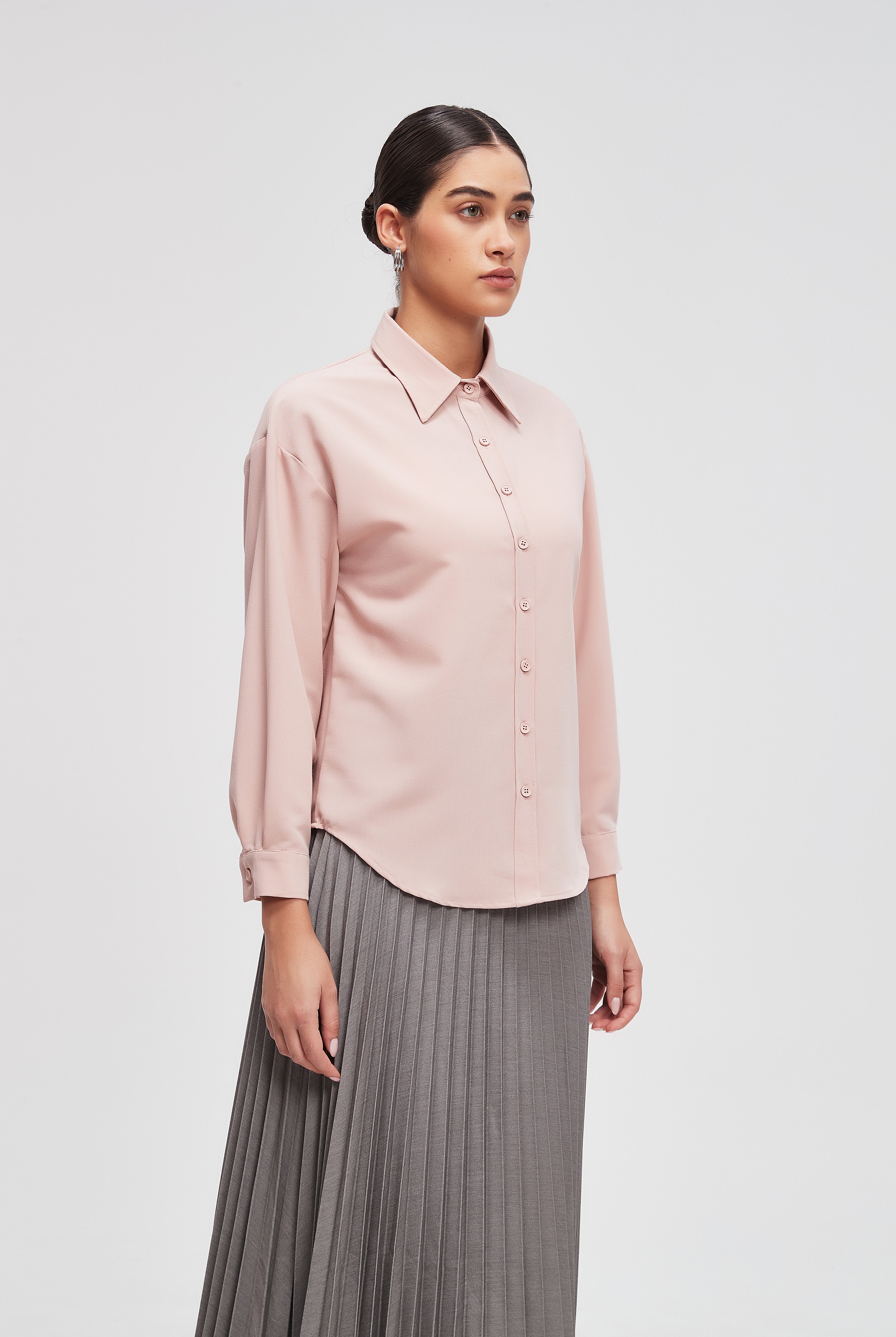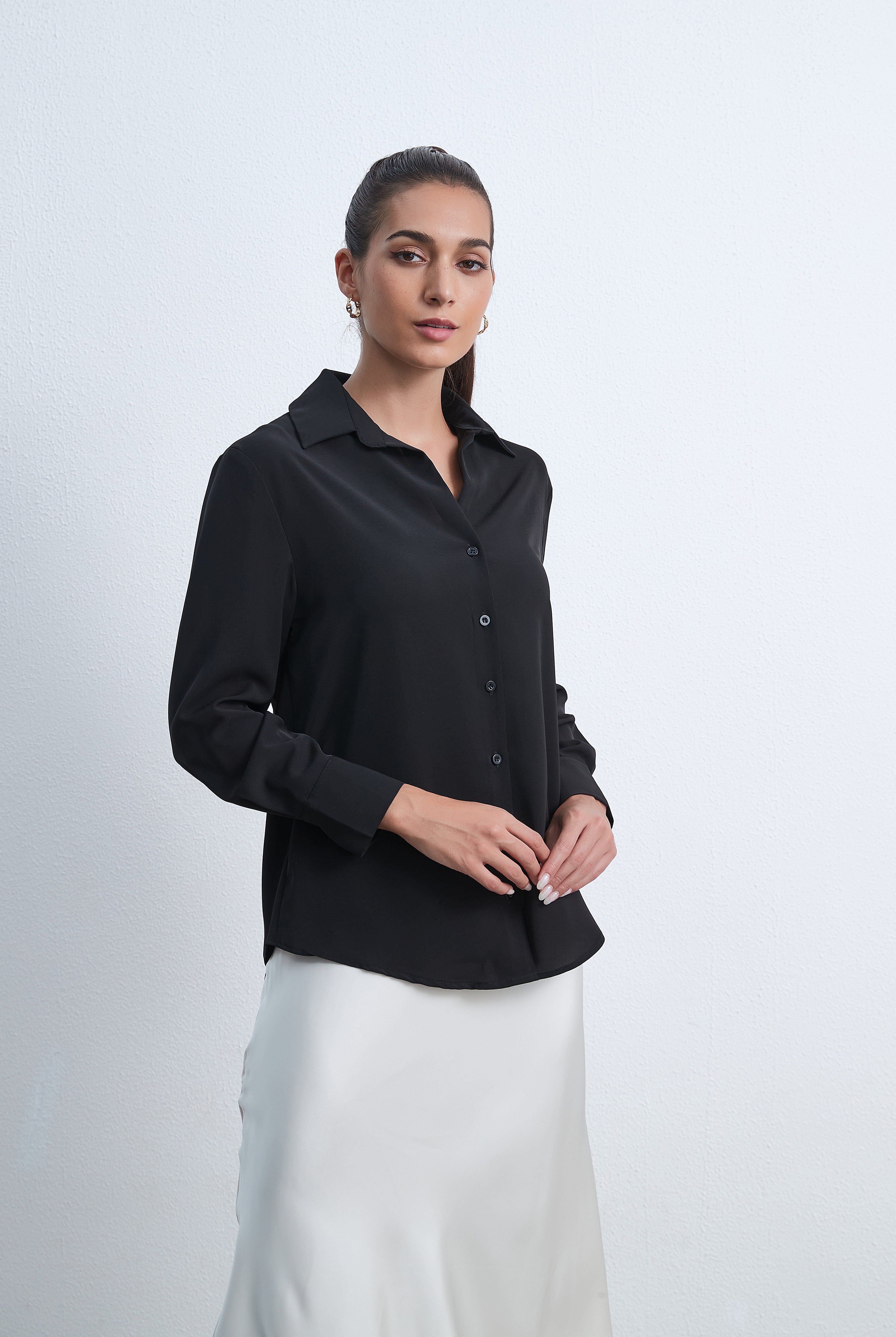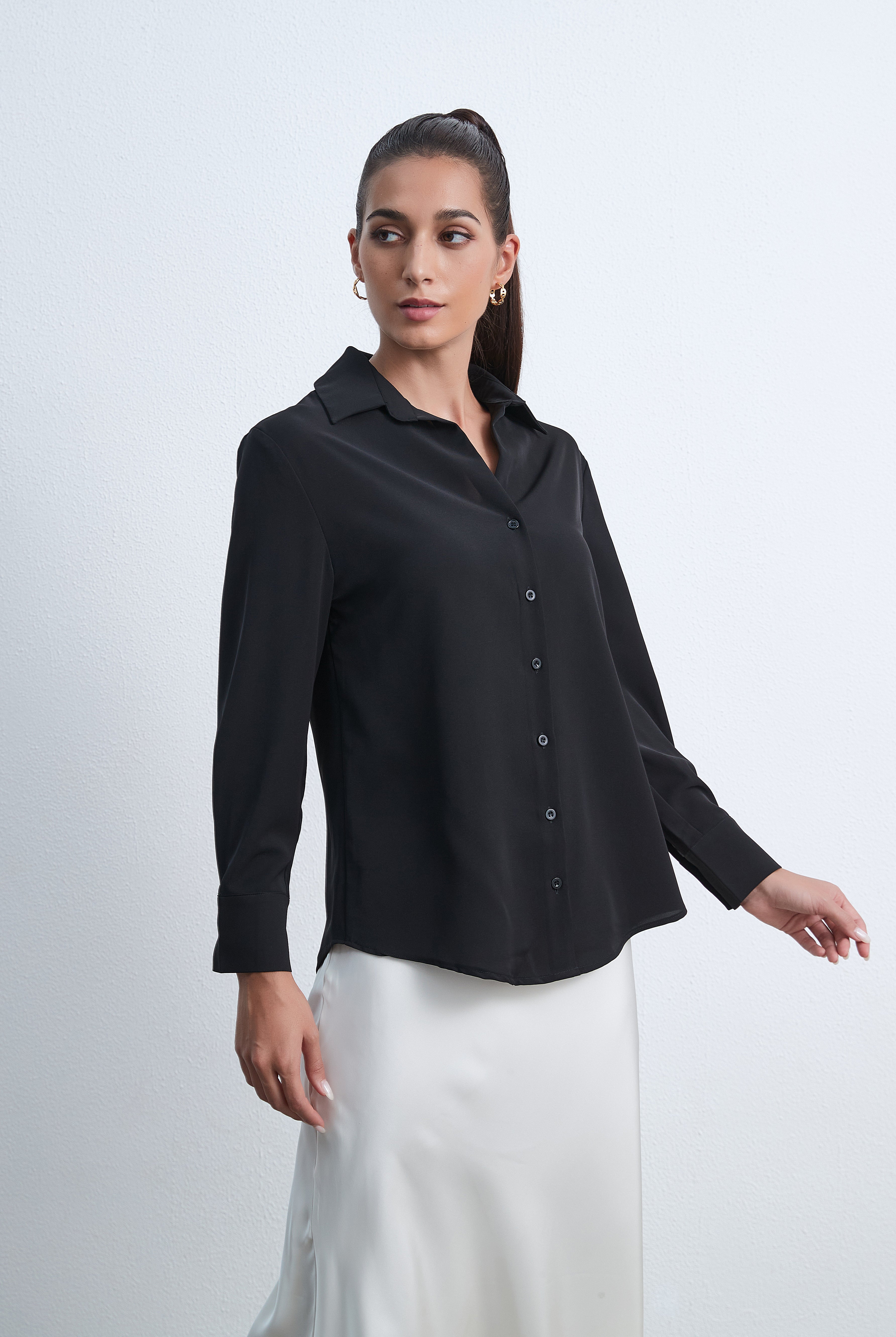 بلوزة سادة بأزرار أمامية وياقة قميص