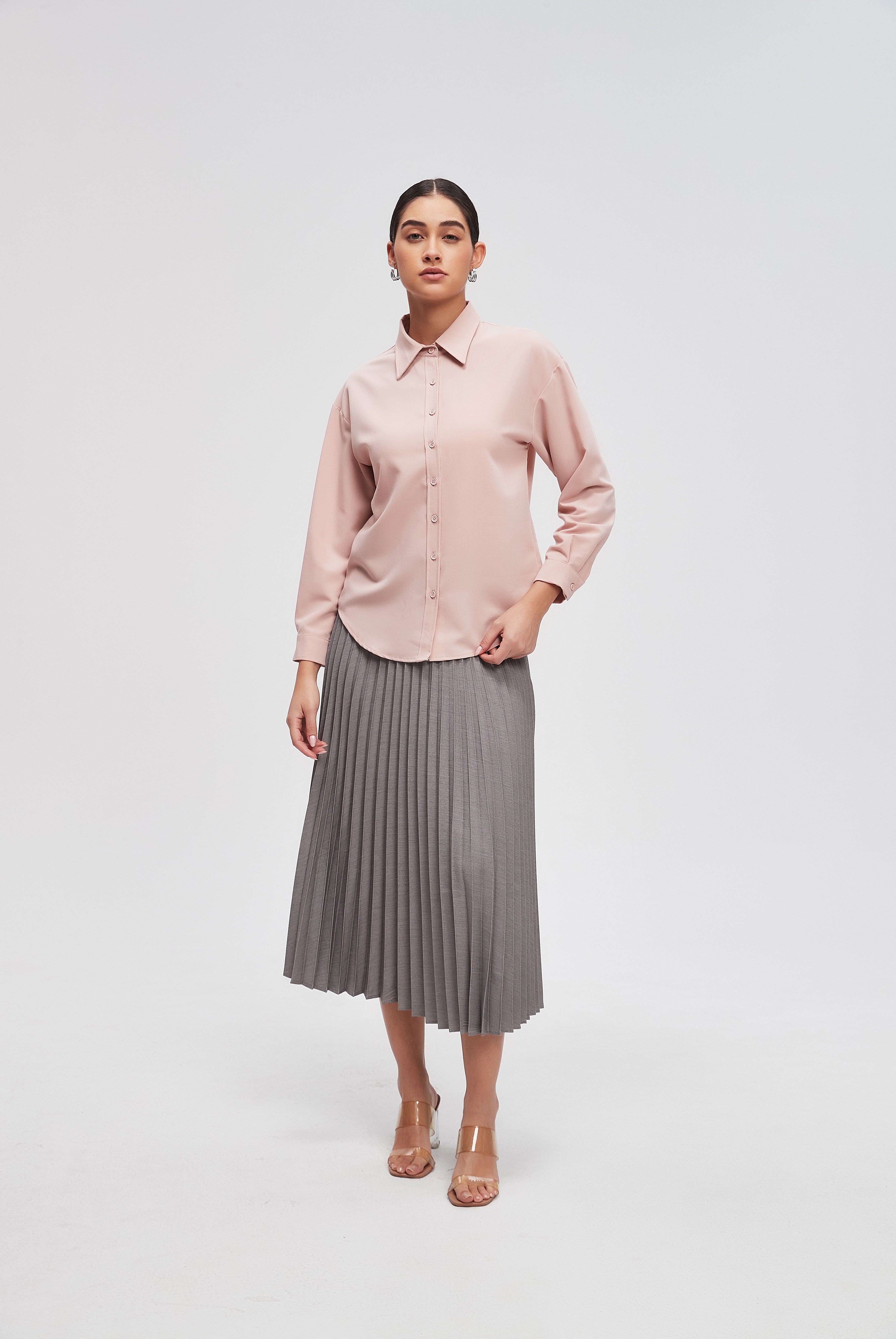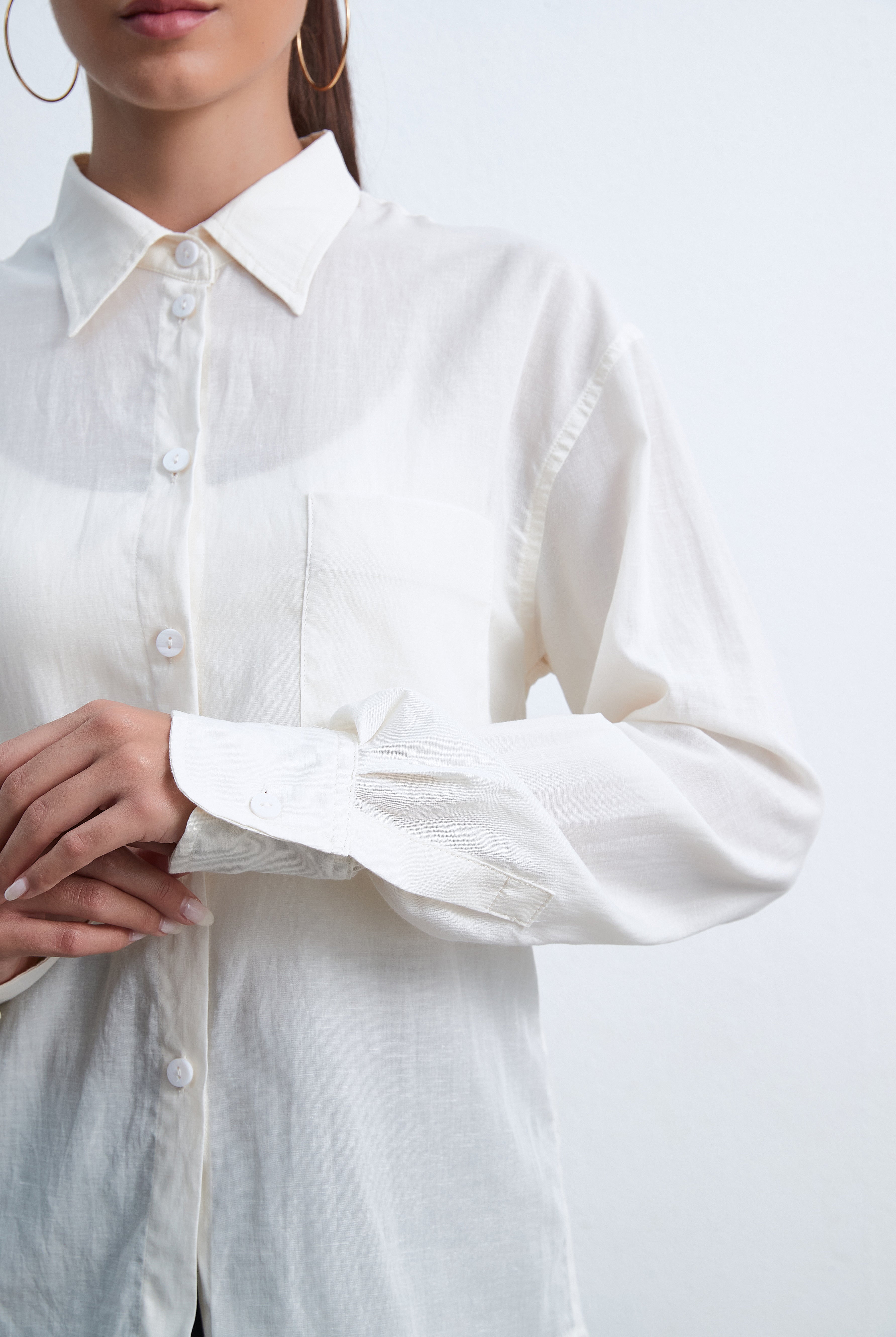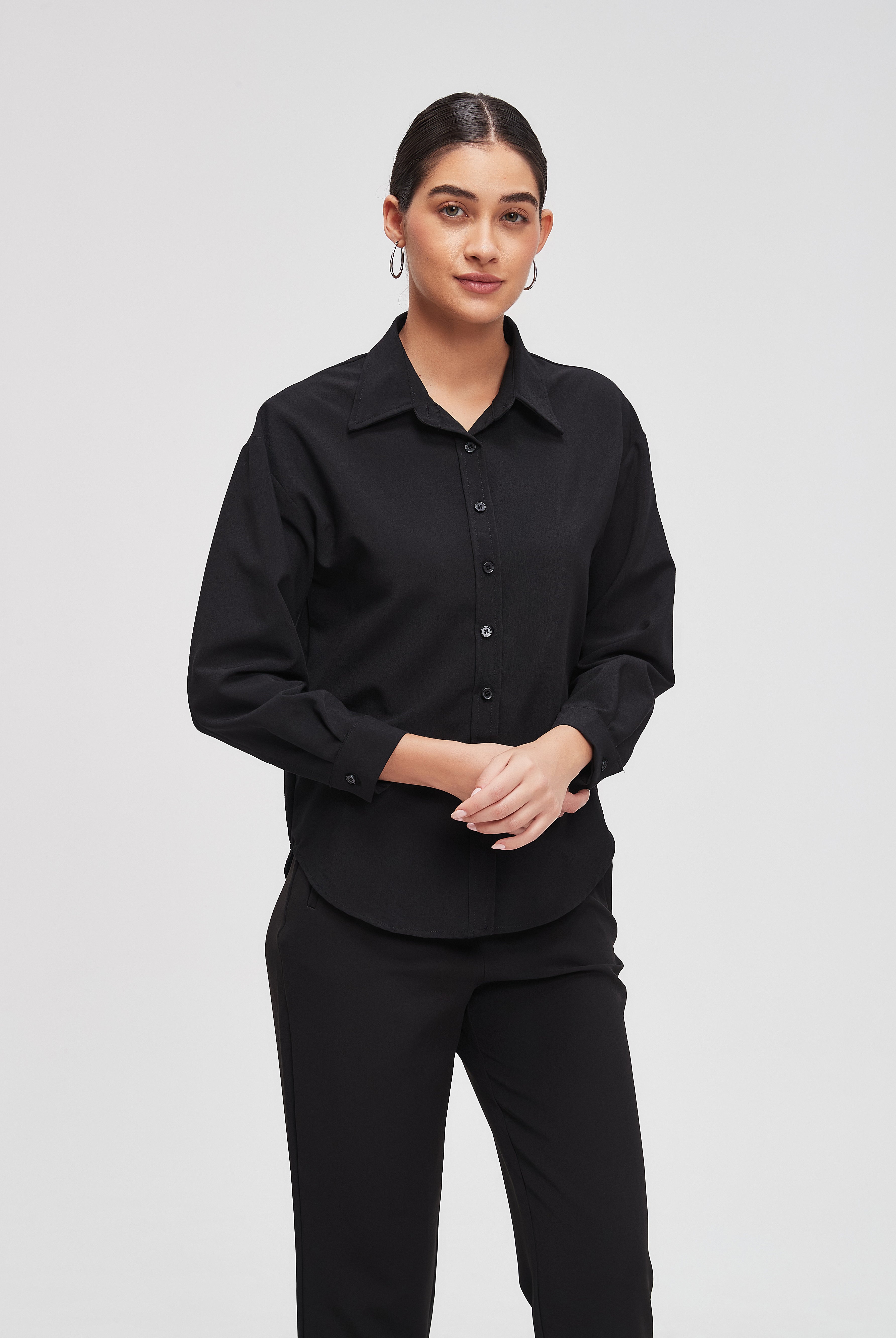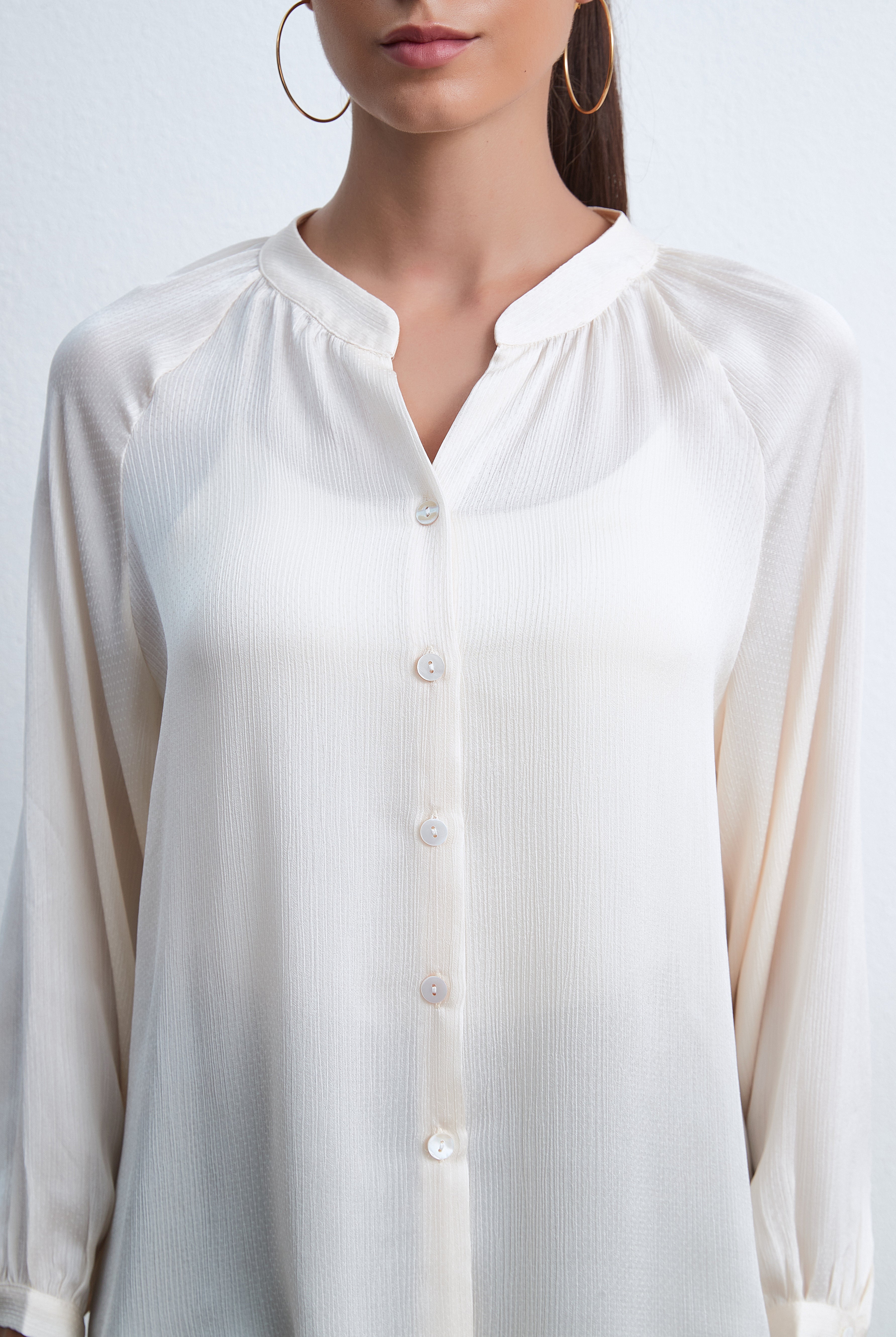 بلوزة بكم طويل مع أزرار أمامية وياقة قميص