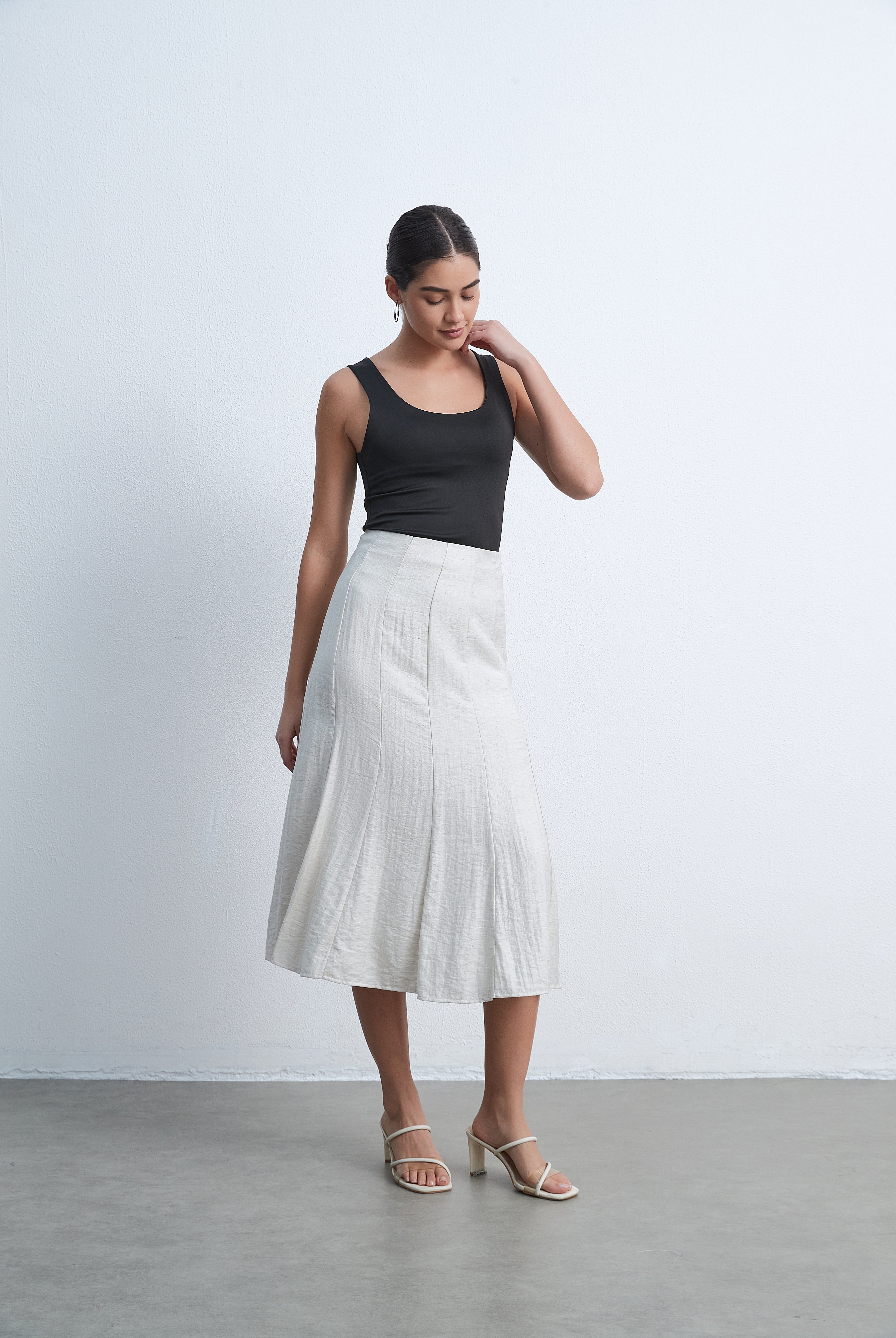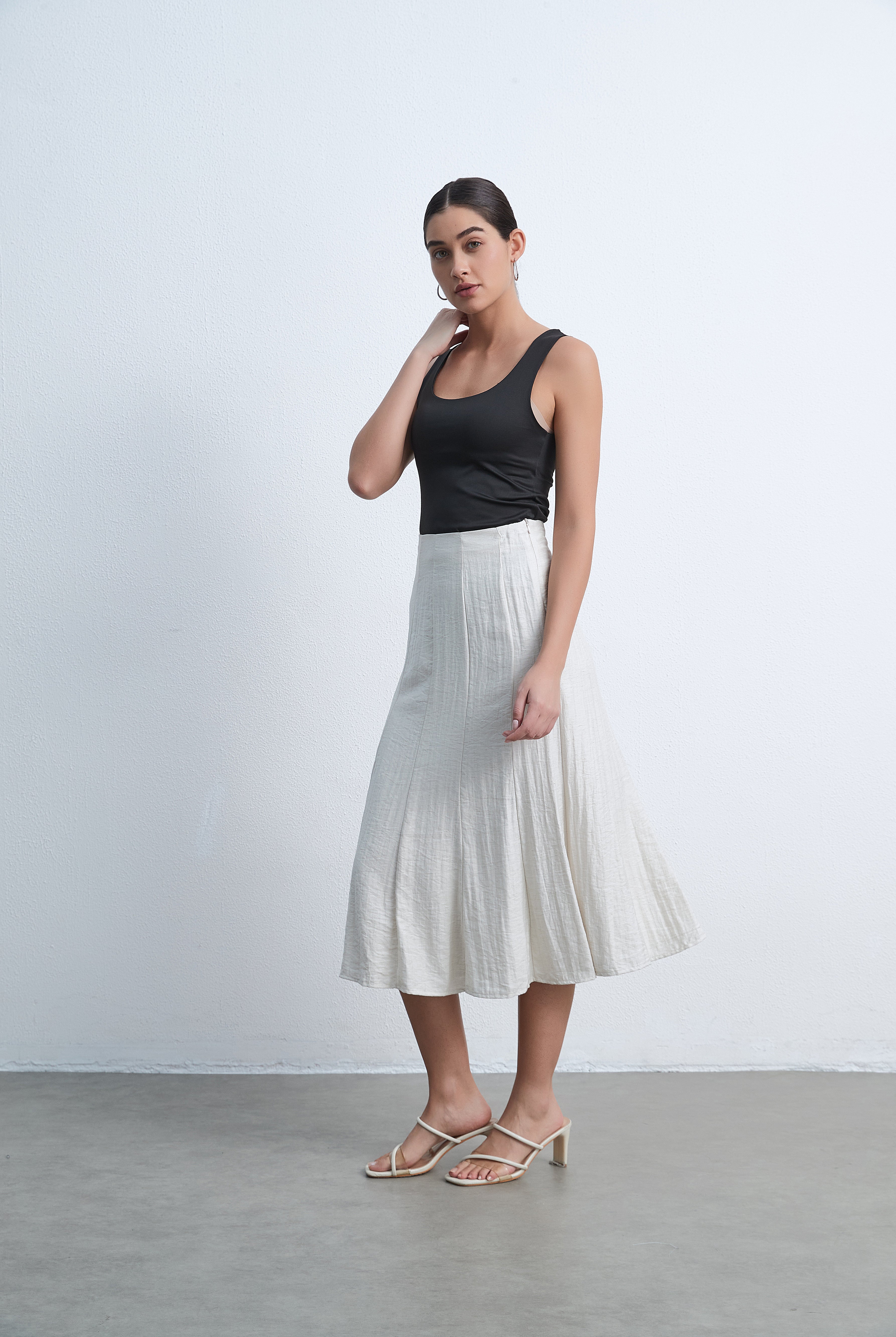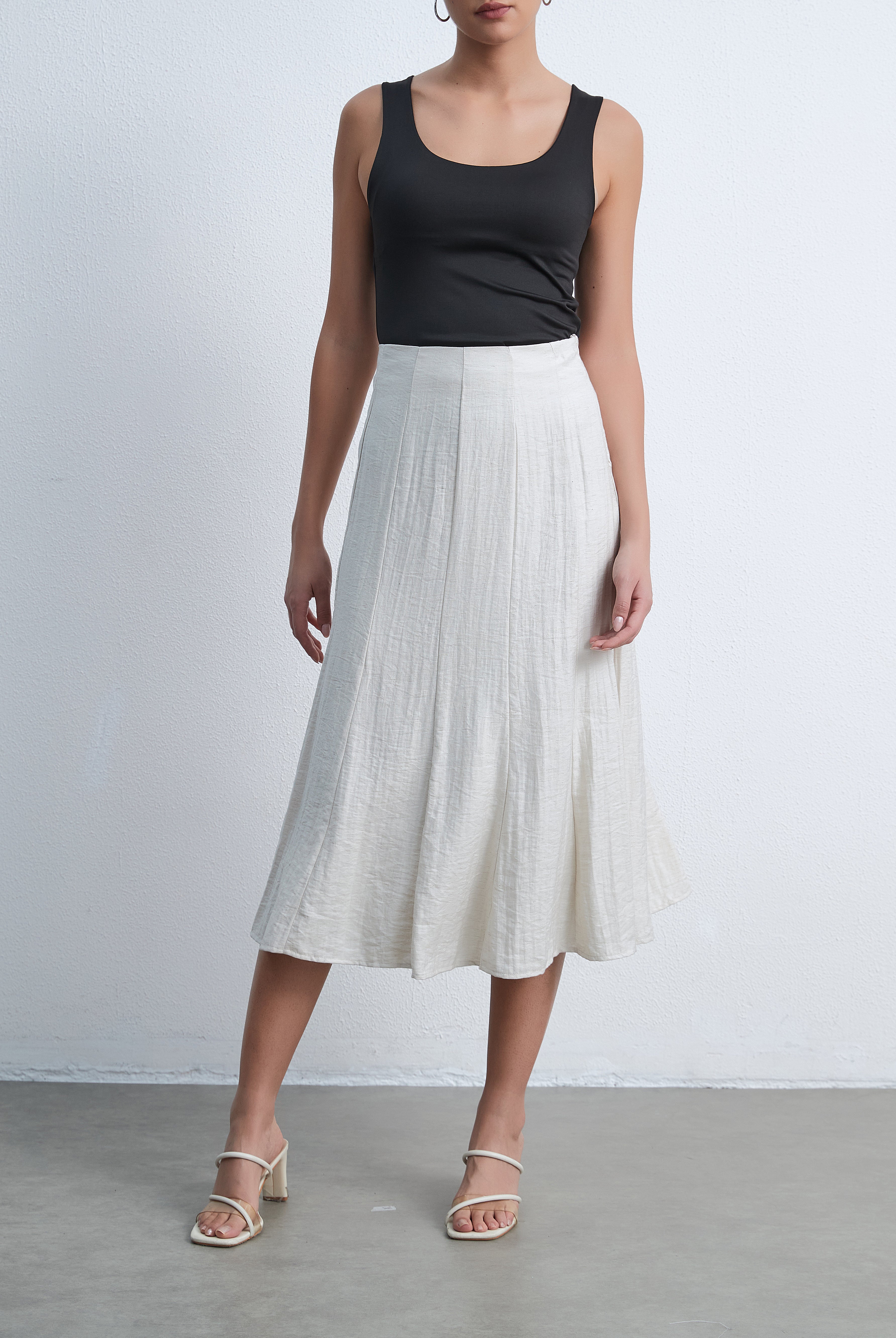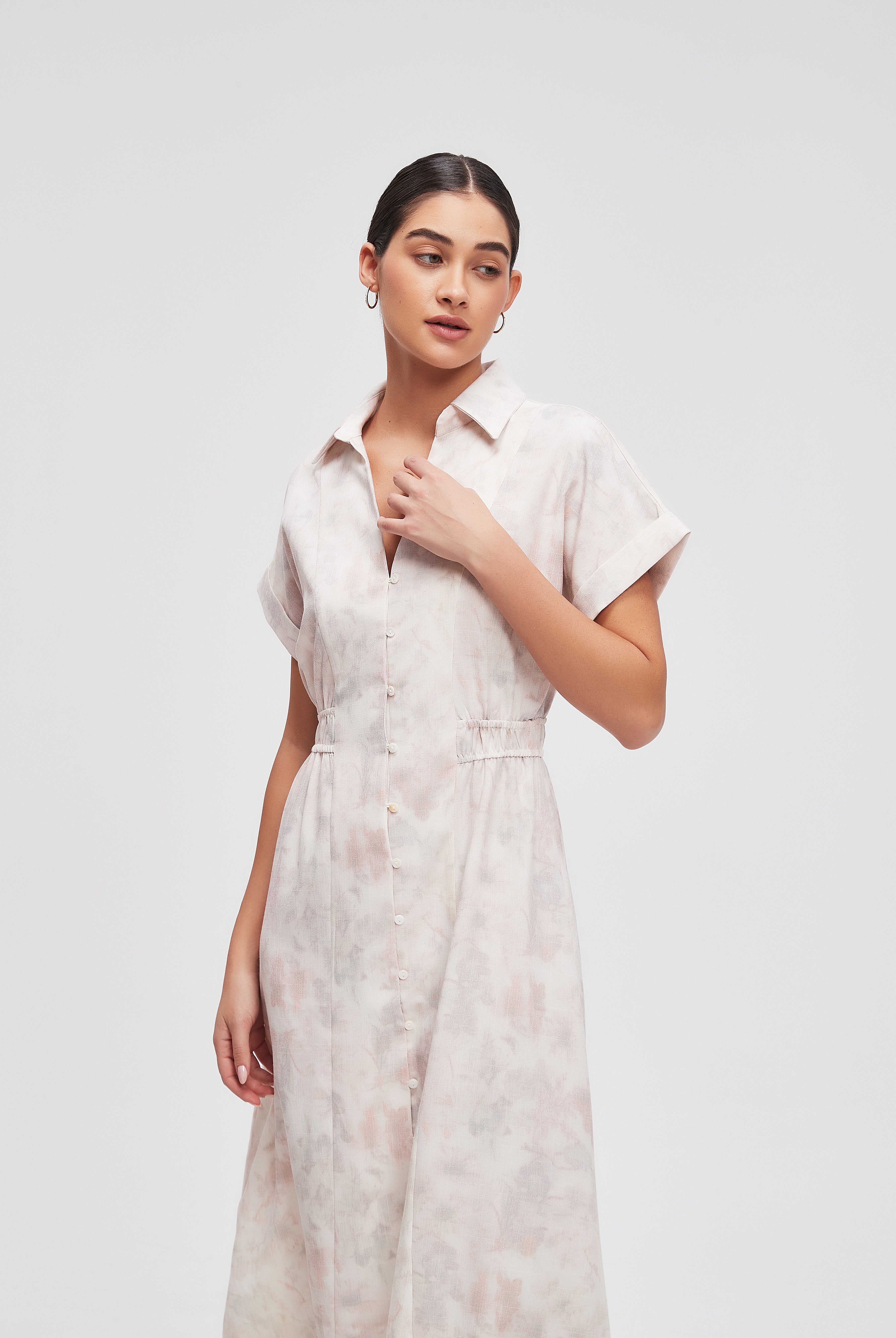 فستان ميدي بكم قصير منفوخ بقصة واسعة