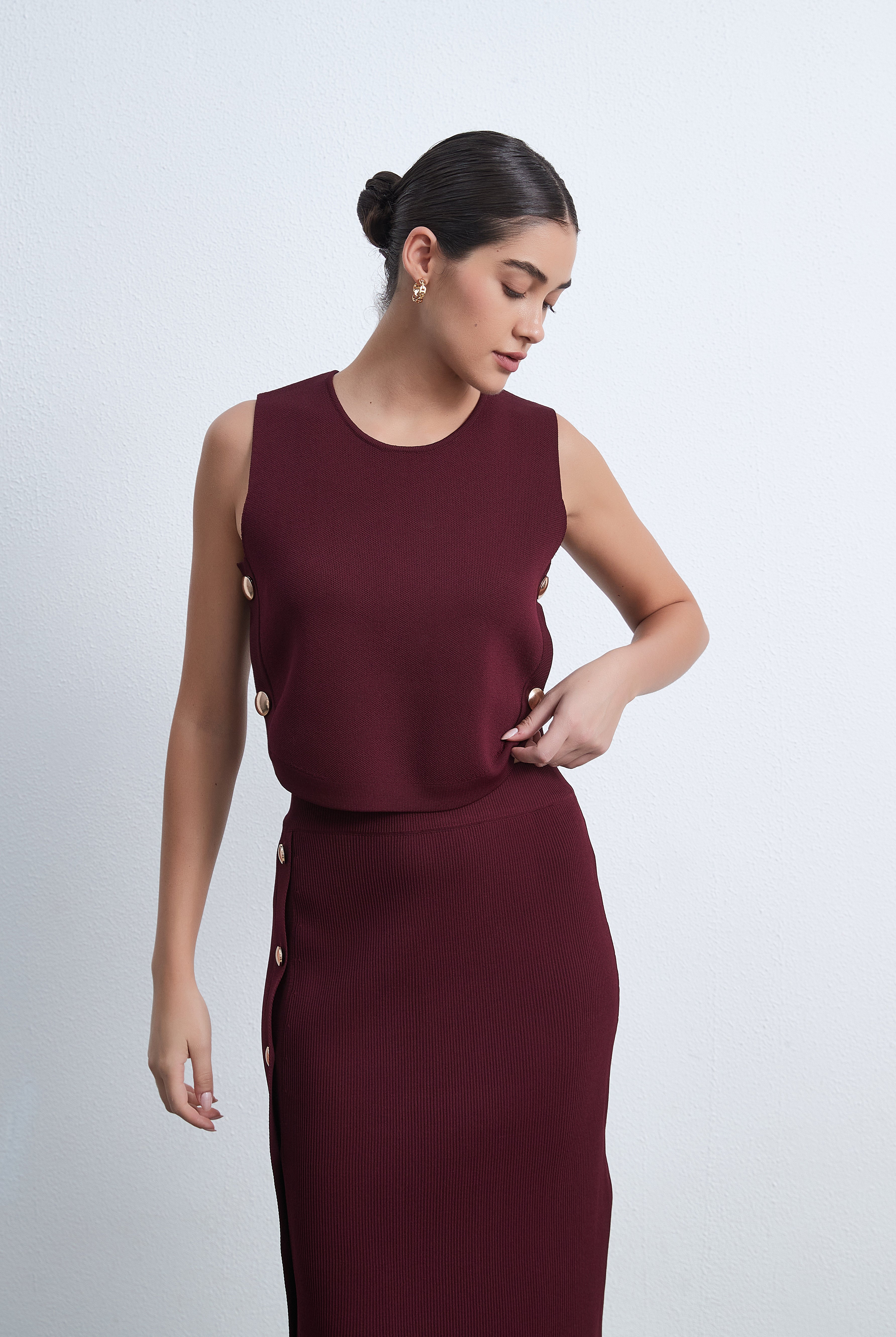 بلوزة بدون أكمام بفتحة رقبة دائرية