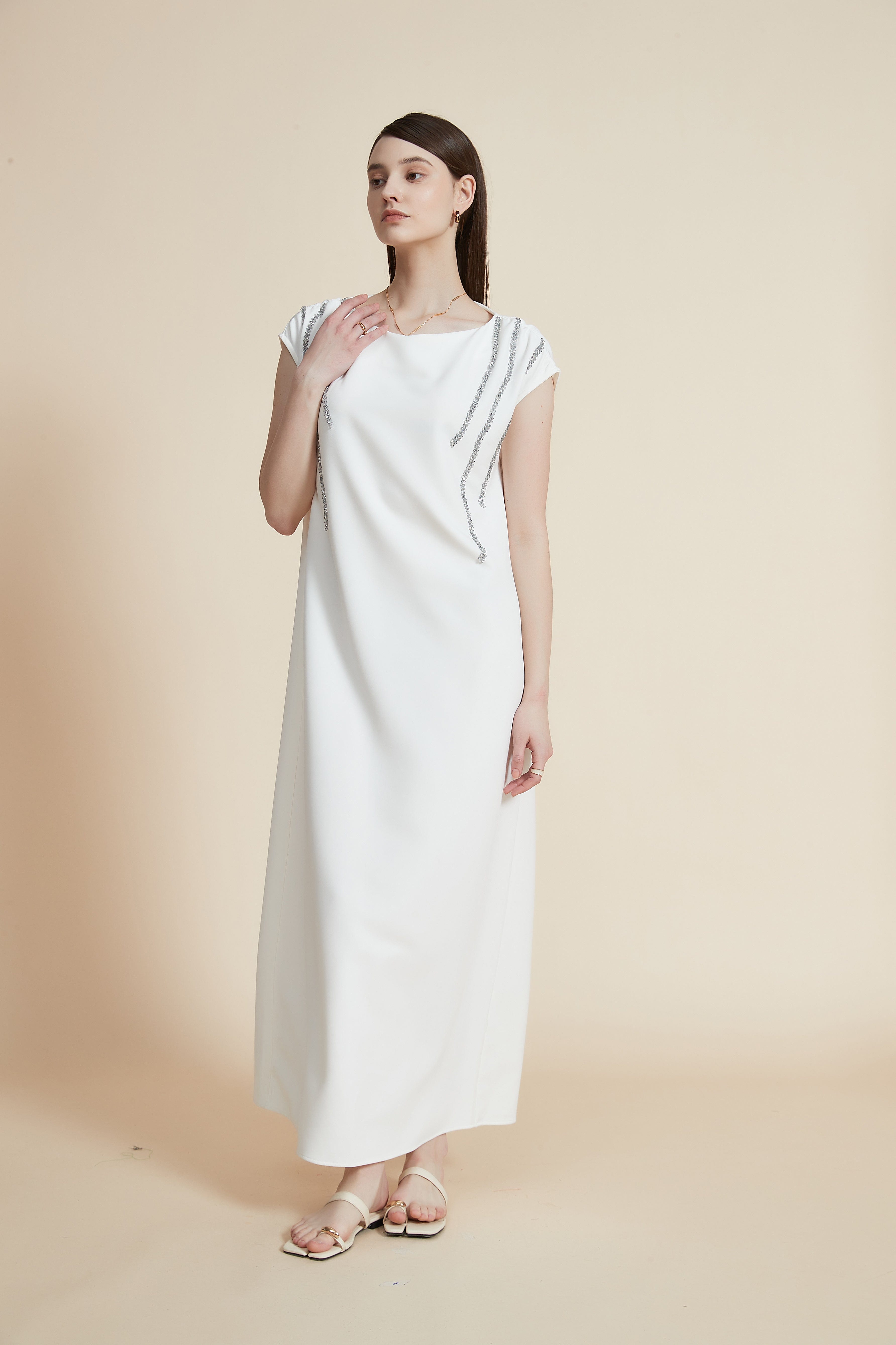 إذا كنتِ تبحثين عن فستان أنيق ومواكب للموضة يعرض تصميمه ببساطة واضحة، فهذا الفستان الأبيض ماكسي خيار ممتاز. قماشه من بوليستر 95% وسباندكس 5% يمنحكِ مظهر مرتب مع مرونة خفيفة للحركة. القصة مستقيمة وياقة مستديرة بلا أكمام تبرز أناقة بسيطة تناسب البالغات، والتصميم السادة بدون بطانة أو طباعة يجعل الفستان قاعدة رائعة لإكسسواراتك. السماكة متوسطة فتناسب كل المواسم؛ ارتديه بمفرده في الأيام الدافئة أو أضيفي جاكيت خفيف في البرودة. لا يحتوي على جيوب ولا حزام، ما يترك لكِ حرية إضافة لمساتك الشخصية. مثالي للخروجات الرومانسية، سهرة أنيقة أو مناسبة نهارية تحبين فيها البساطة والأناقة. اعثري على مقاسك في فاشن السعودية وأضيفي هذه القطعة المتنوعة إلى خزانة ملابسك اليوم.