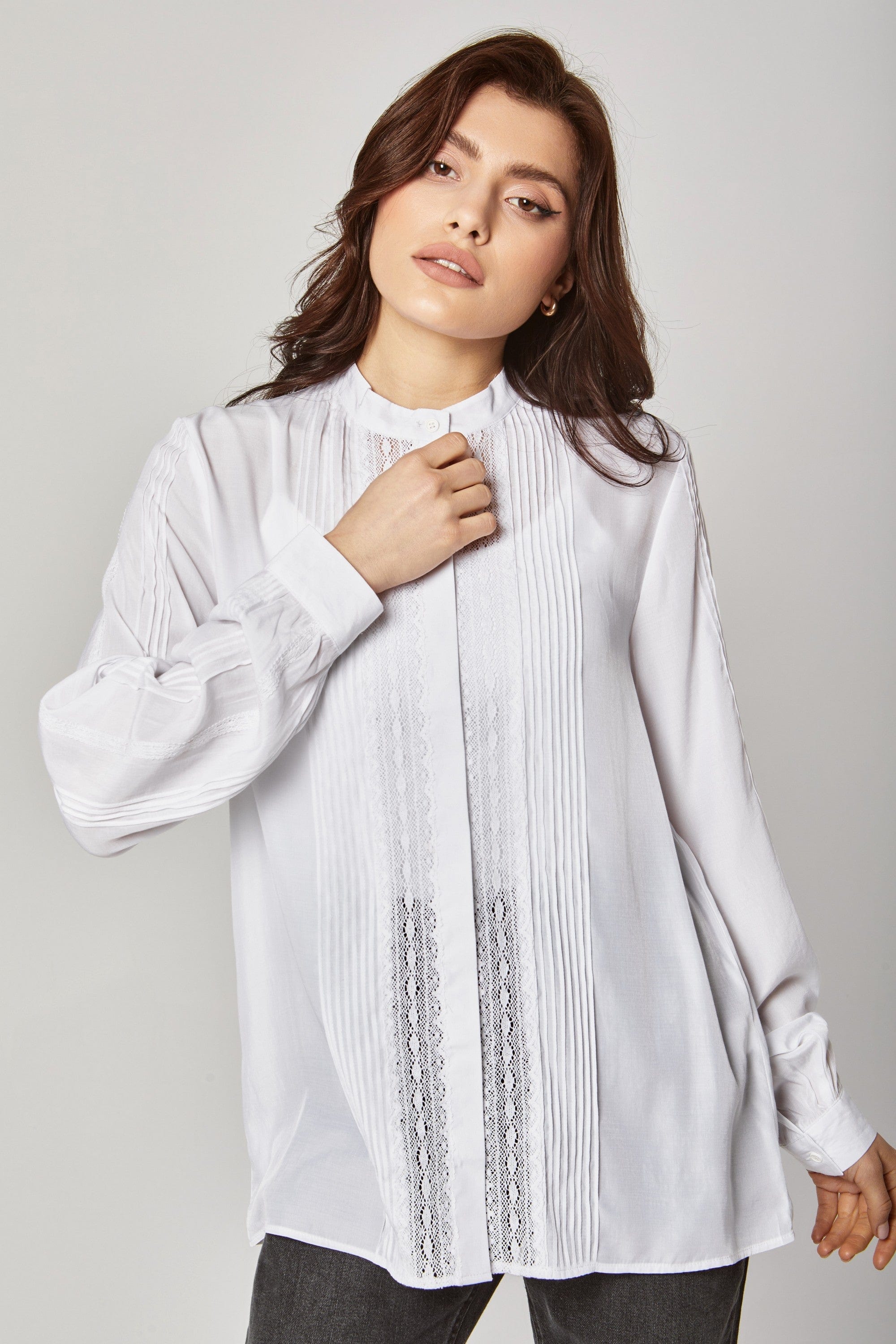بلوزة بكسرات دانتيل كم طويل نسائي