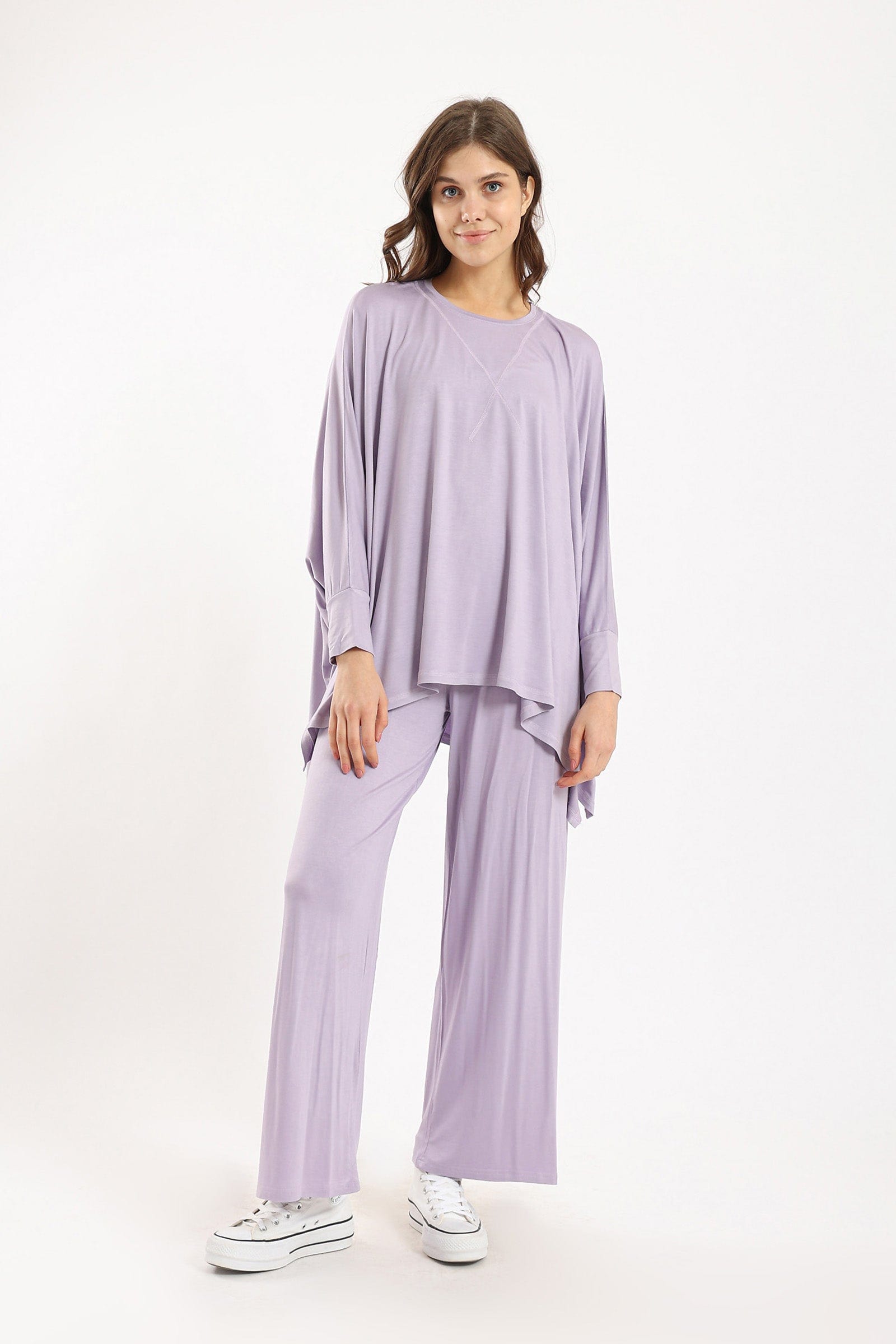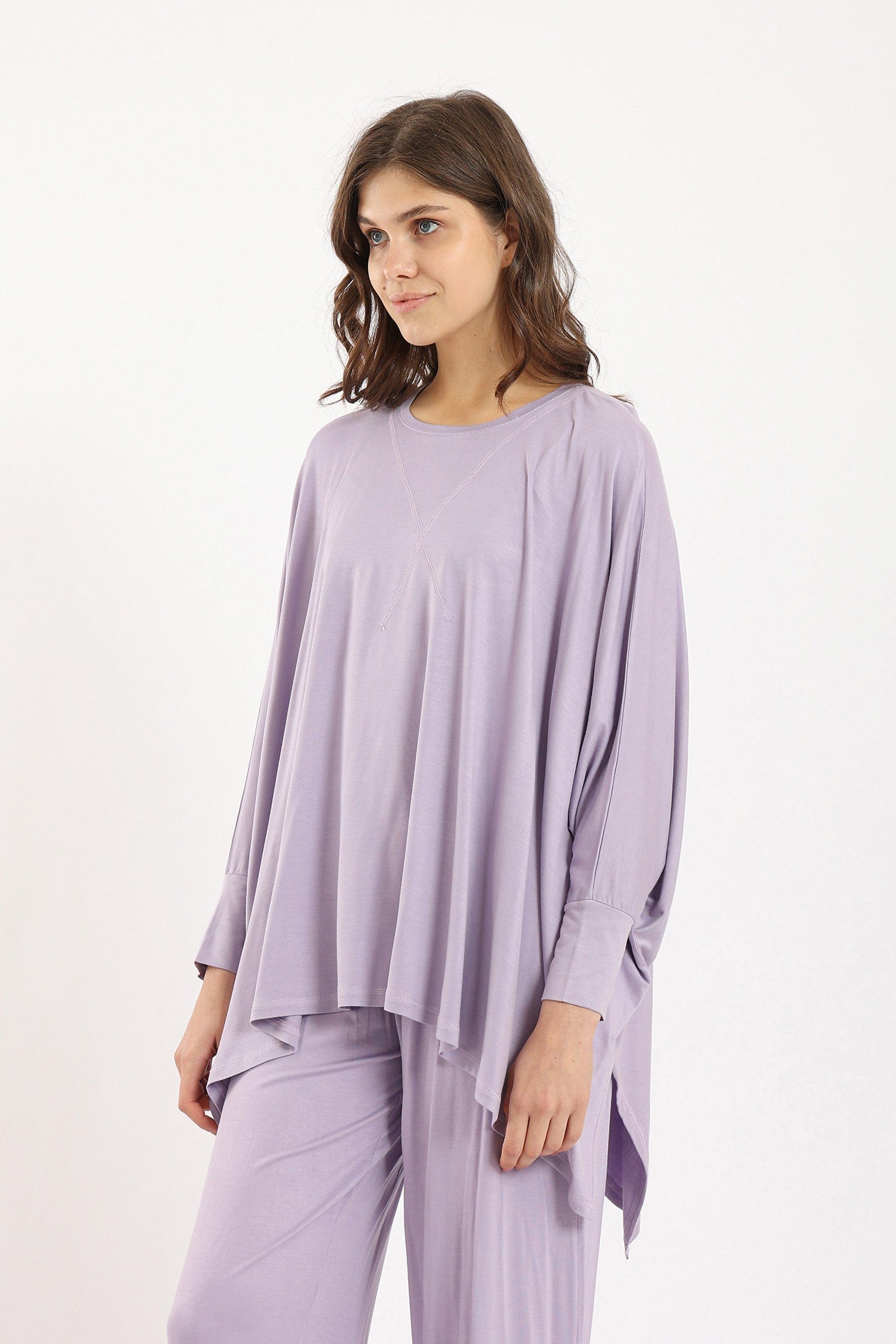 بلوزة سادة أوفر سايز غير متساوية من أسفل كم طويل