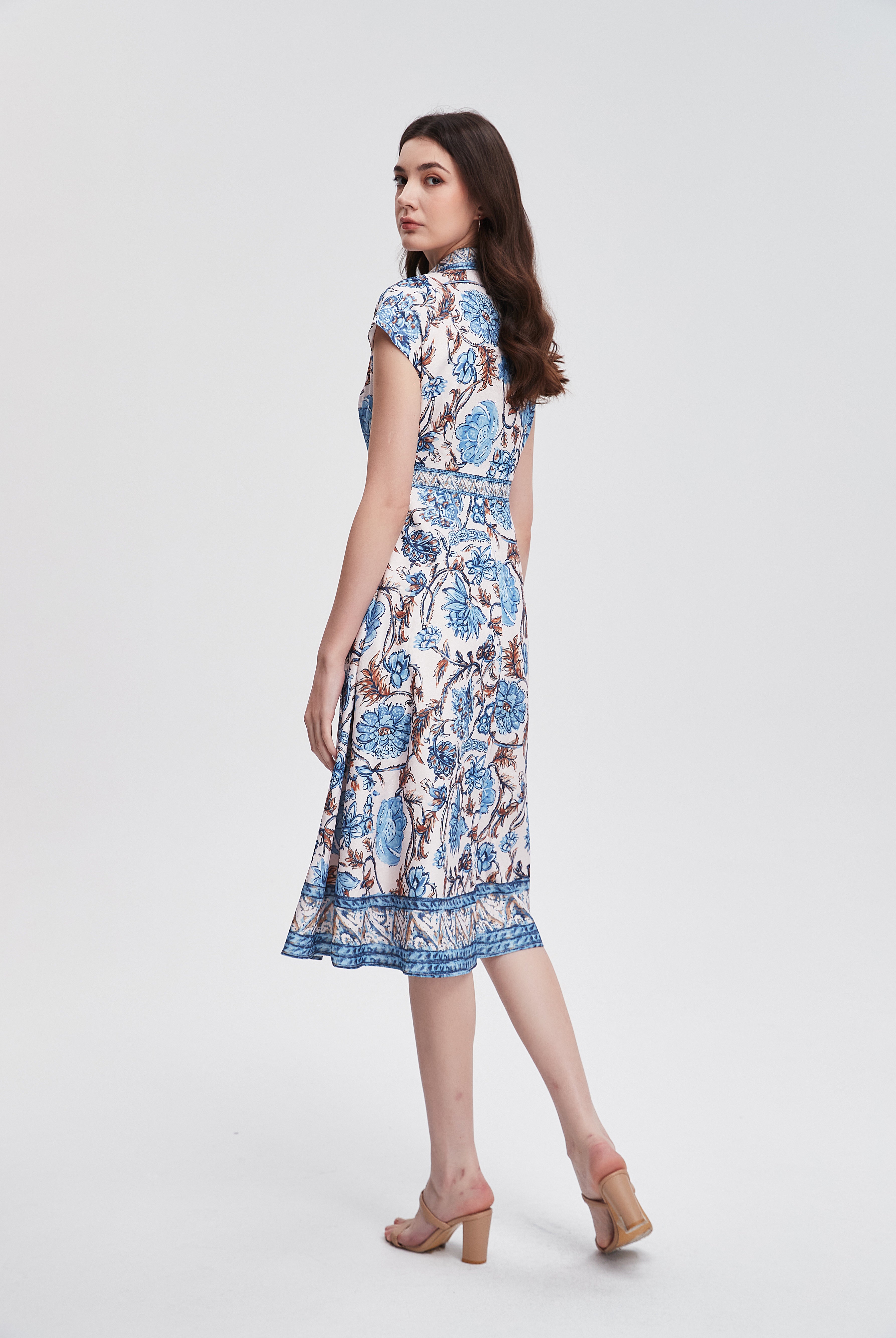 تنورة موردة ميدي مكشكشة