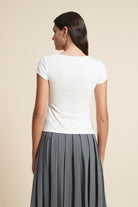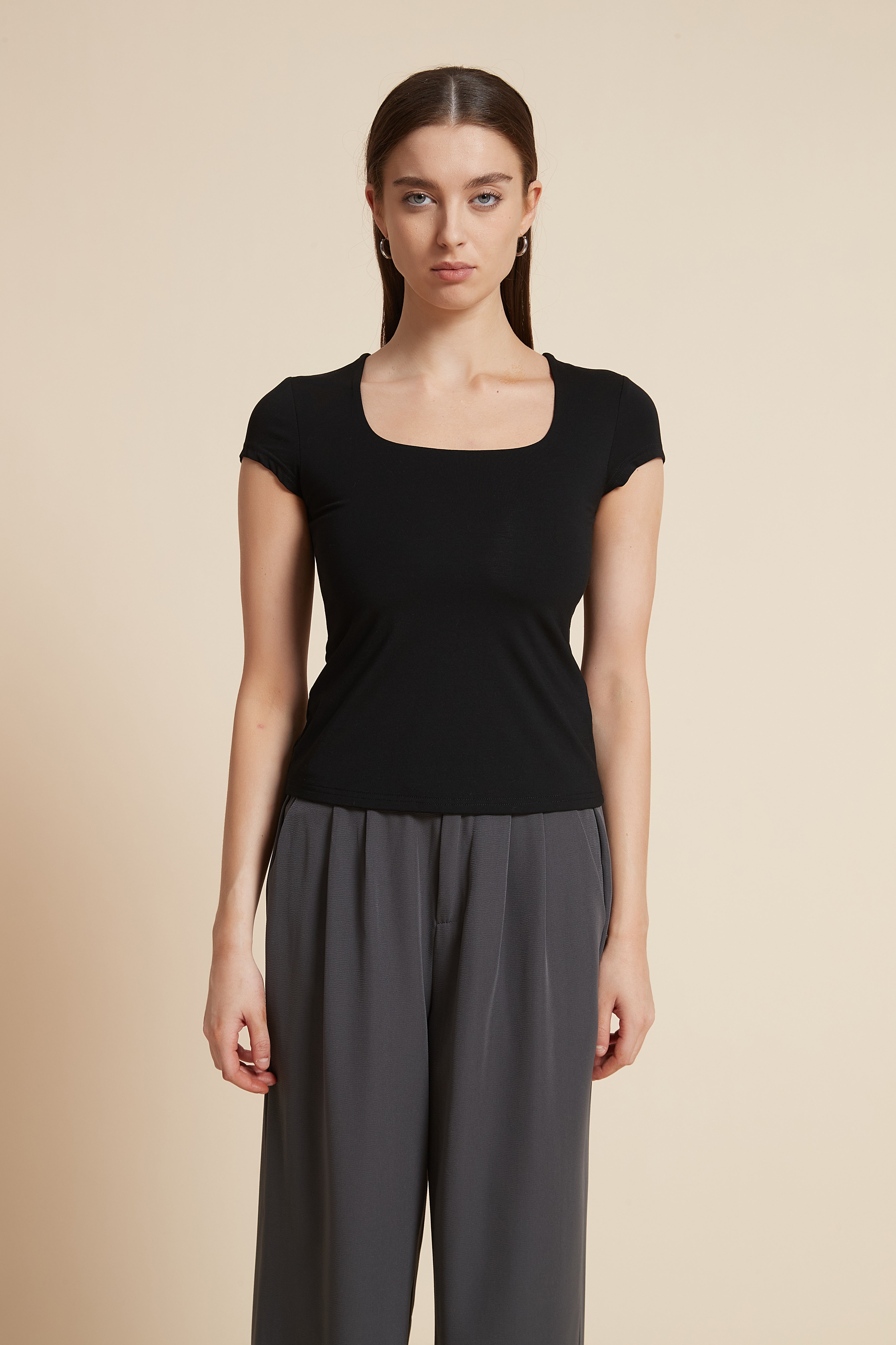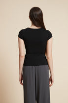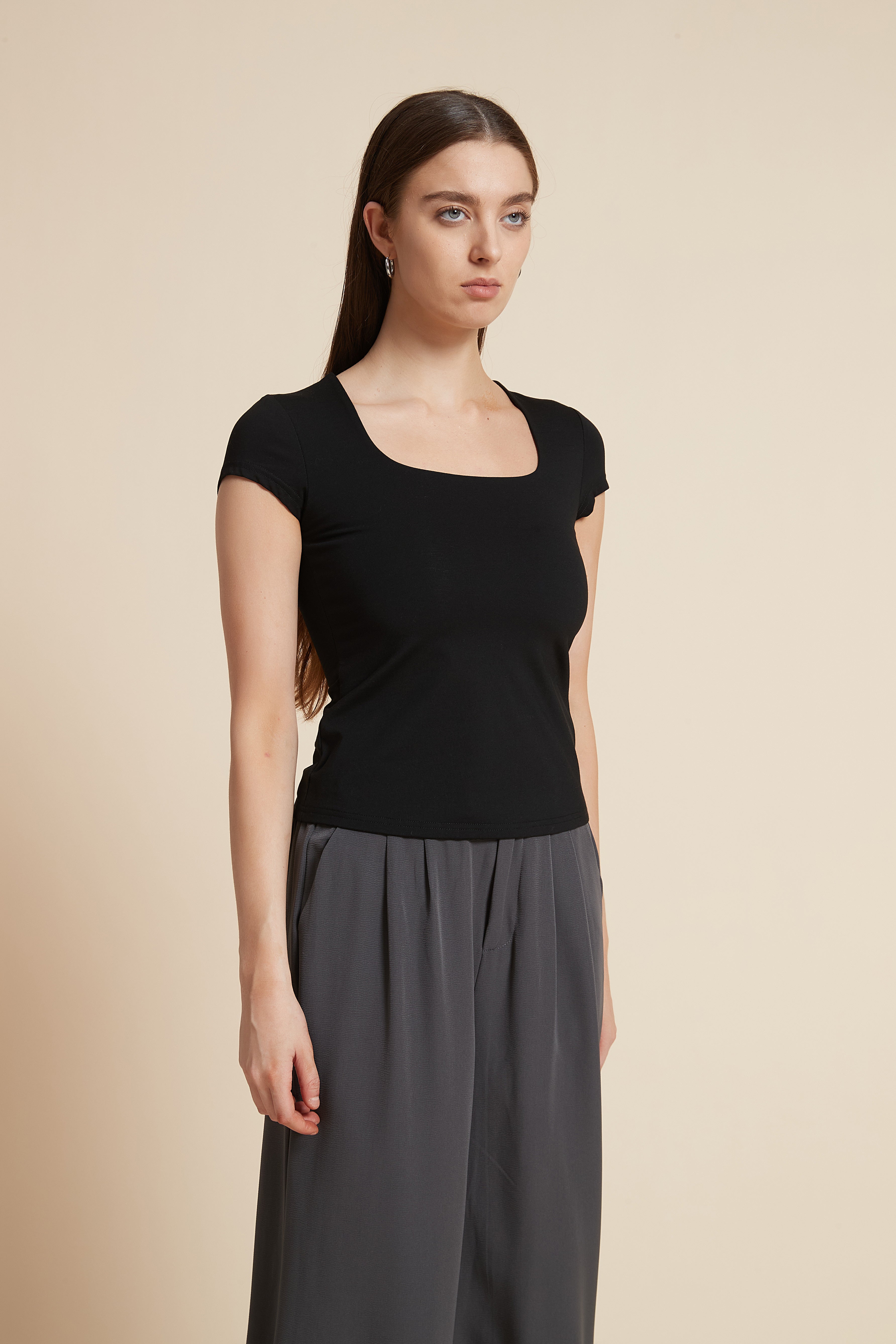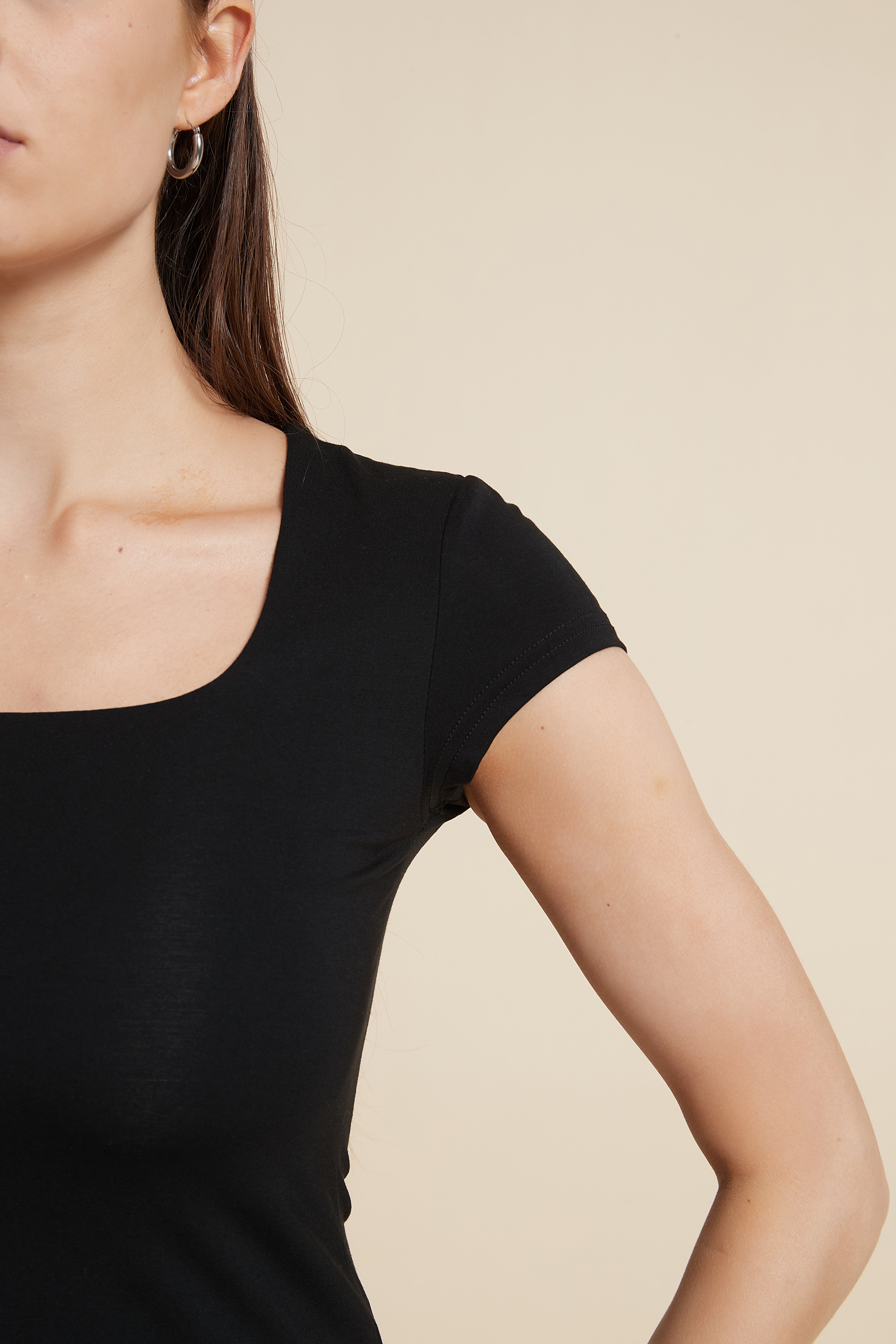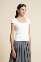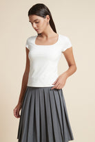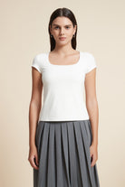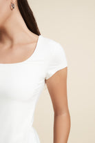 بلوزة أكمام قصيرة سادة بفتحة صدر واسعة