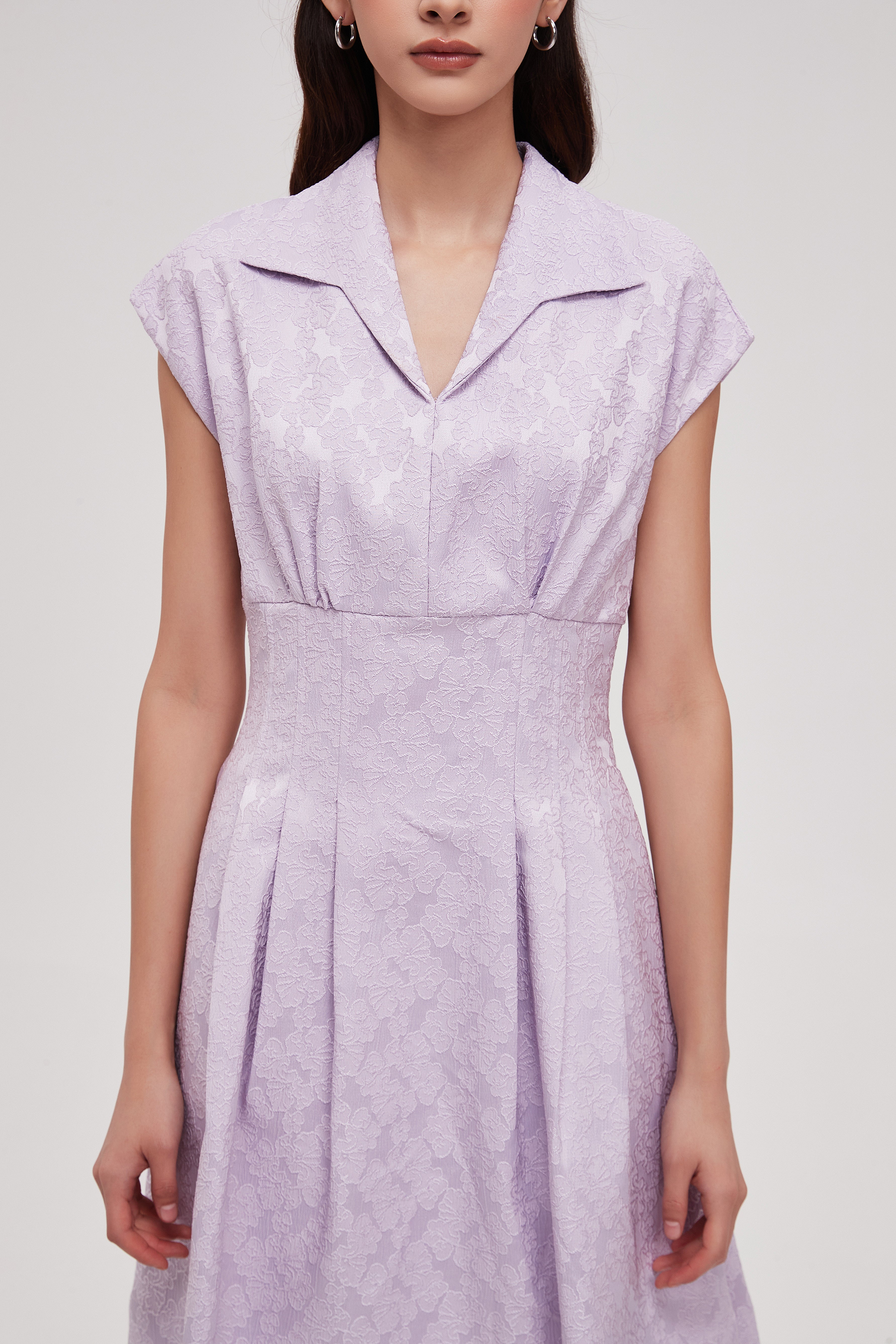 صُنع هذا الفستان بالكامل من البوليستر بنسبة 100% ليوفر خامة ناعمة الملمس وخفيفة الوزن تمنحك انسيابية وراحة لا مثيل لها. يعكس اللون الأرجواني الفاتح الهادئ طبيعة الخامة المتينة وسهلة العناية، والتي تقاوم التجاعيد وتجف بسرعة. هذا البوليستر عالي الجودة يضمن لك استثماراً في قطعة تحافظ على شكلها وجمالها لفترة طويلة، مع شعور دائم بالانتعاش.