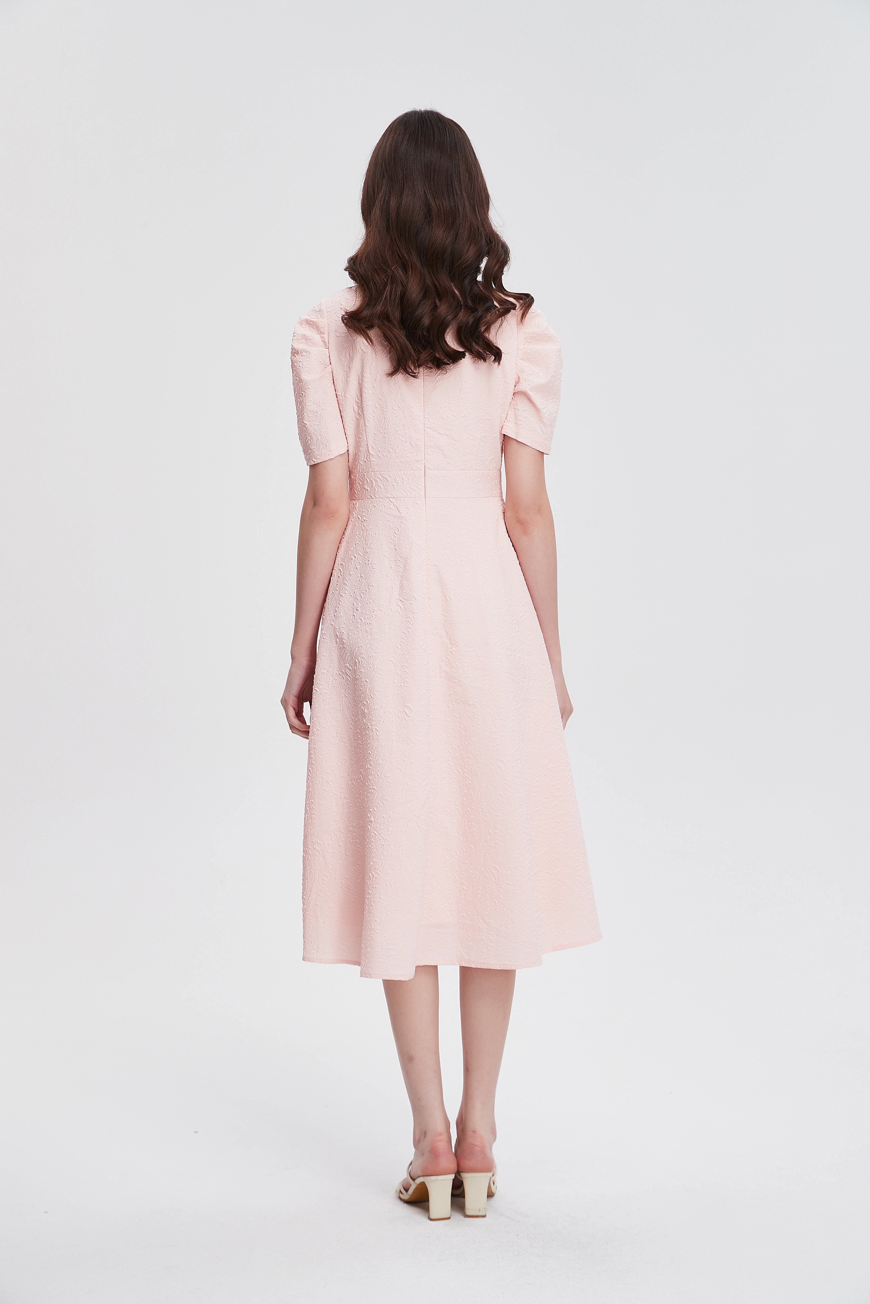 - العناية: غسلي الفستان بالماء البارد مع ألوان مشابهة، تجنبي المبيضات، يفضل تعليق الجفاف أو تجفيف على درجة حرارة منخفضة، اكوي على حرارة منخفضة إن احتاج الأمر.