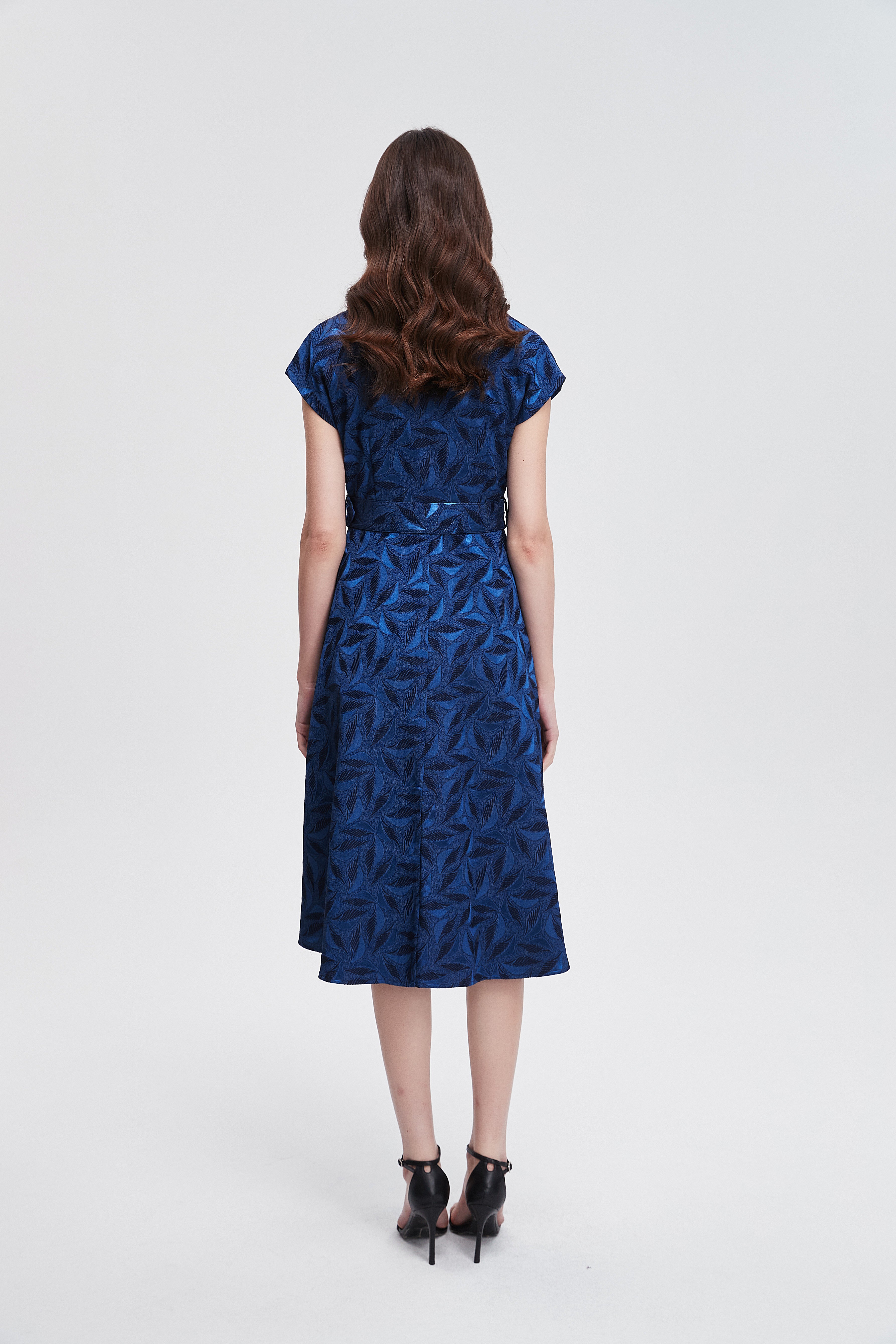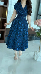 فستان ميدي بأكمام قصيرة منقوش لف