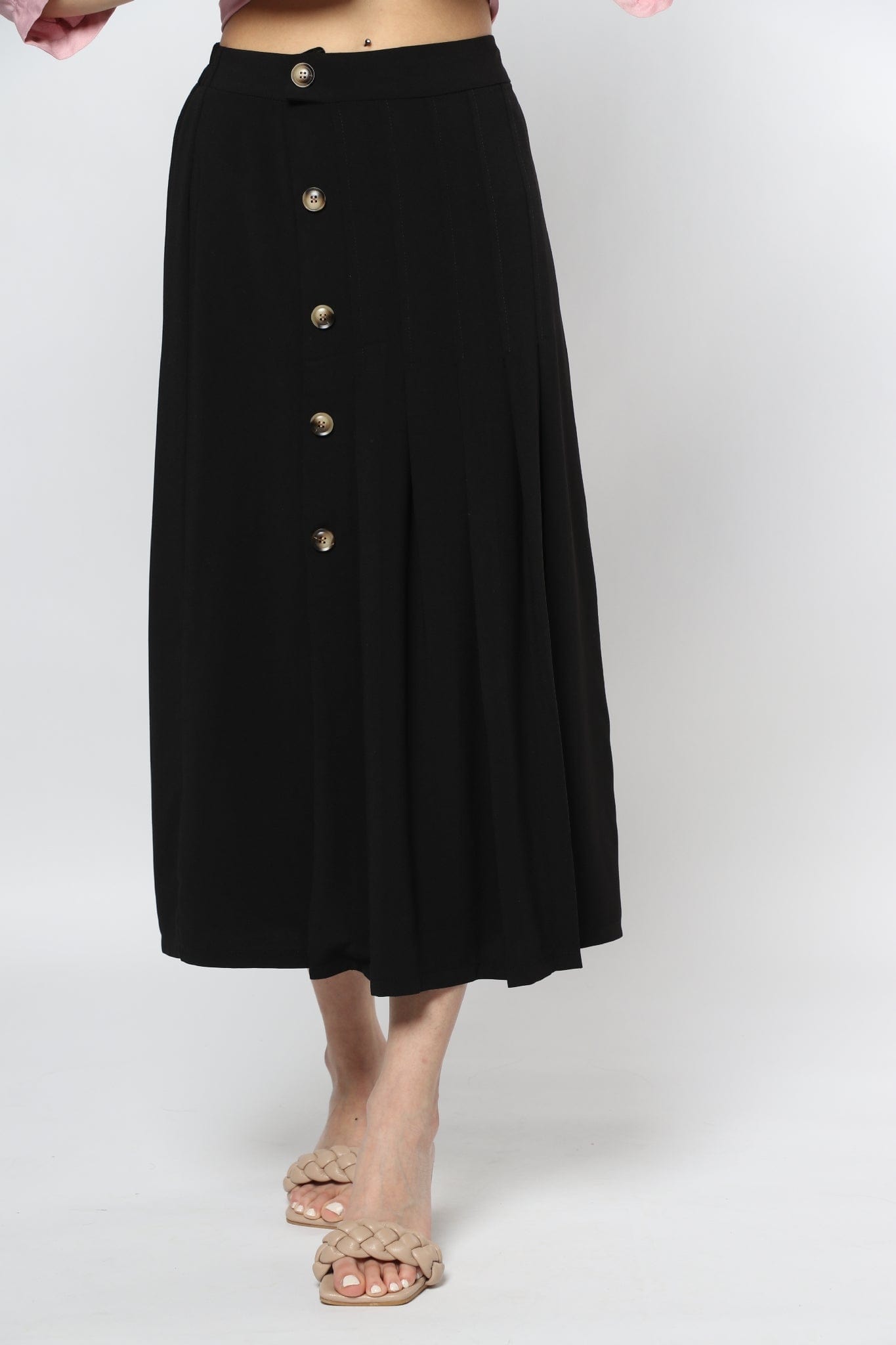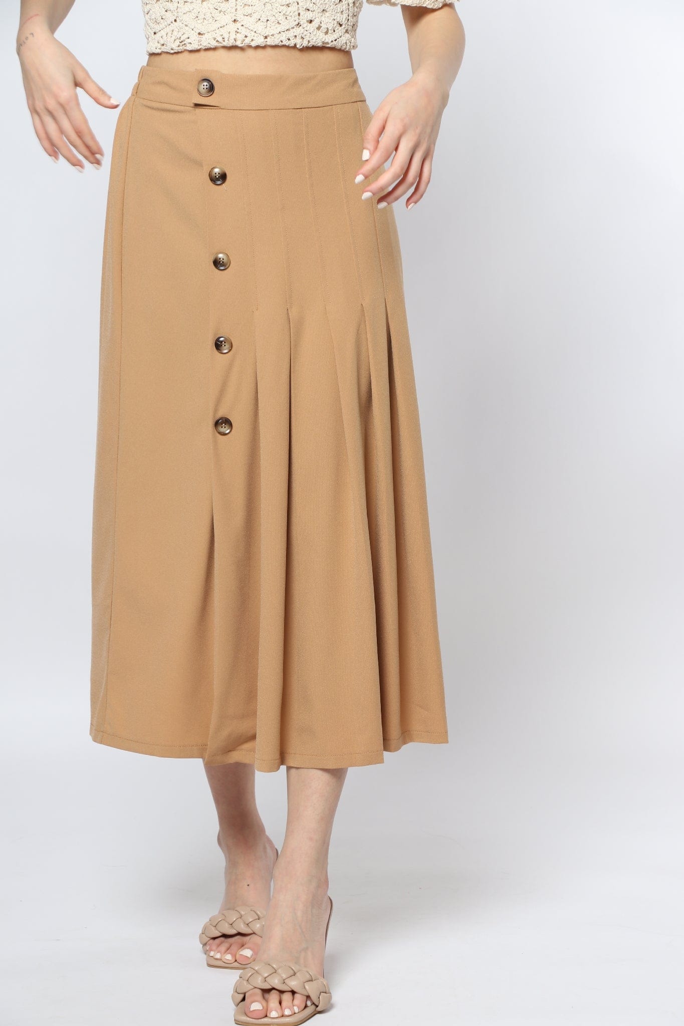 تنورة ميدي بكسرات مزين بأزرار أمامية