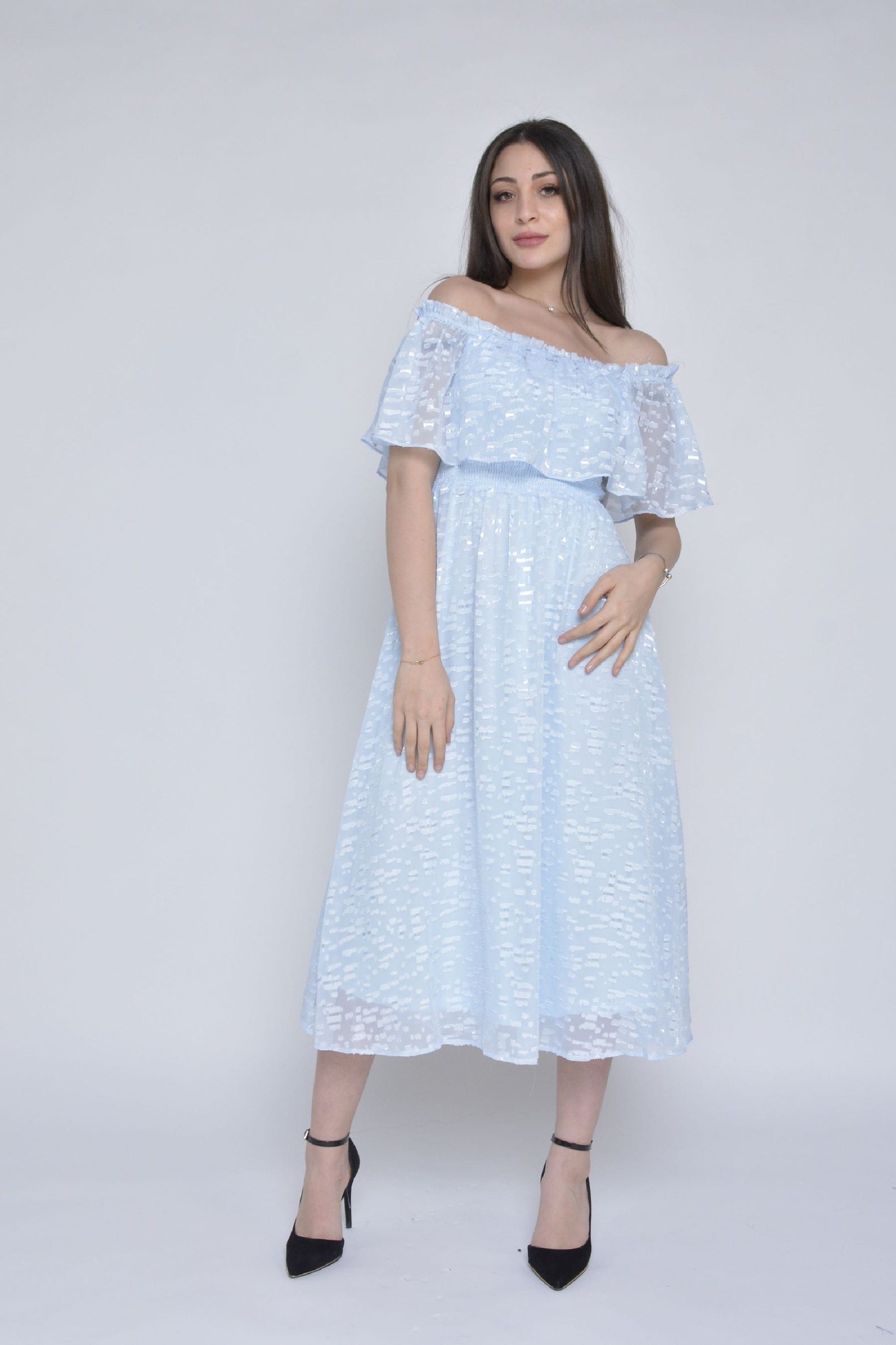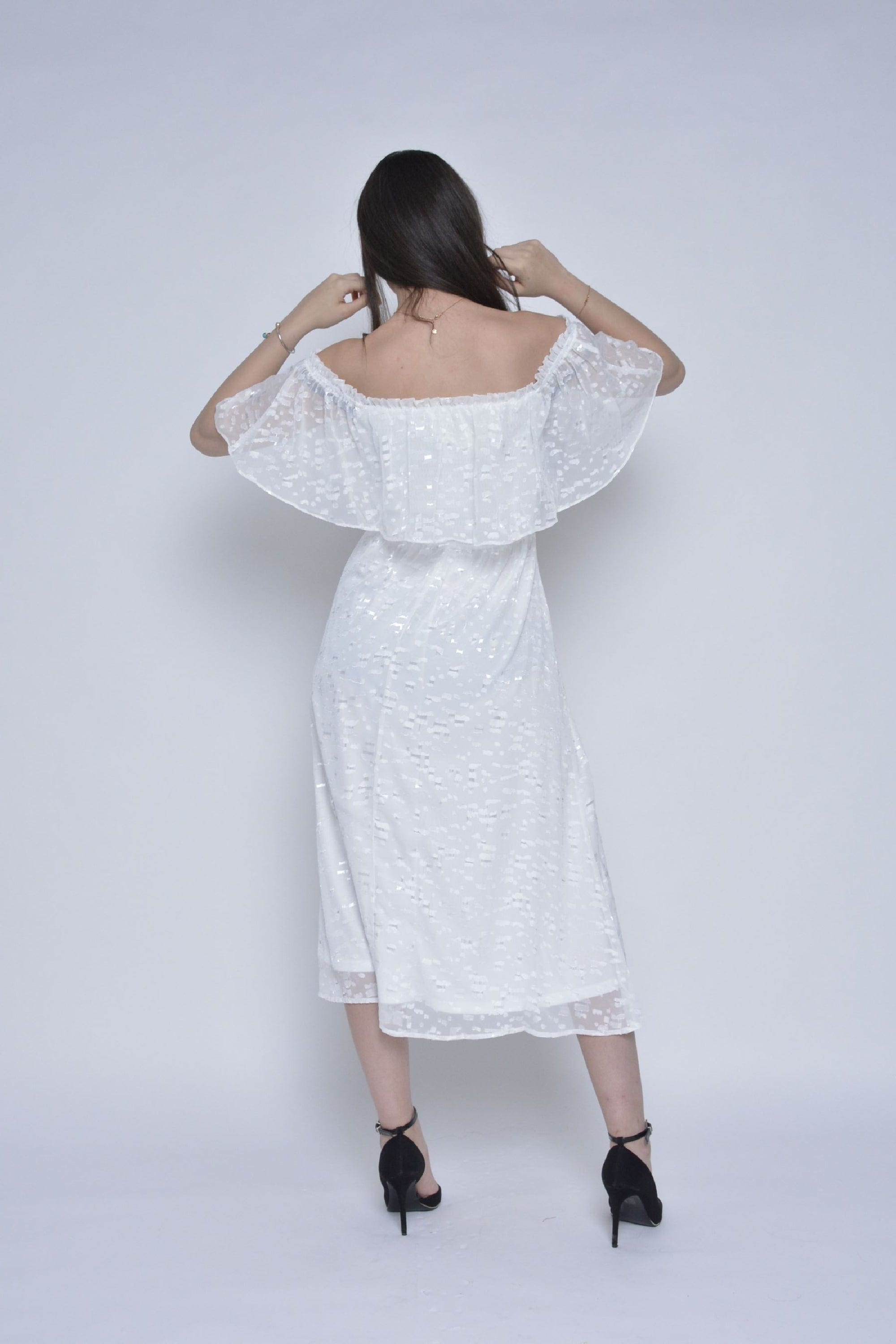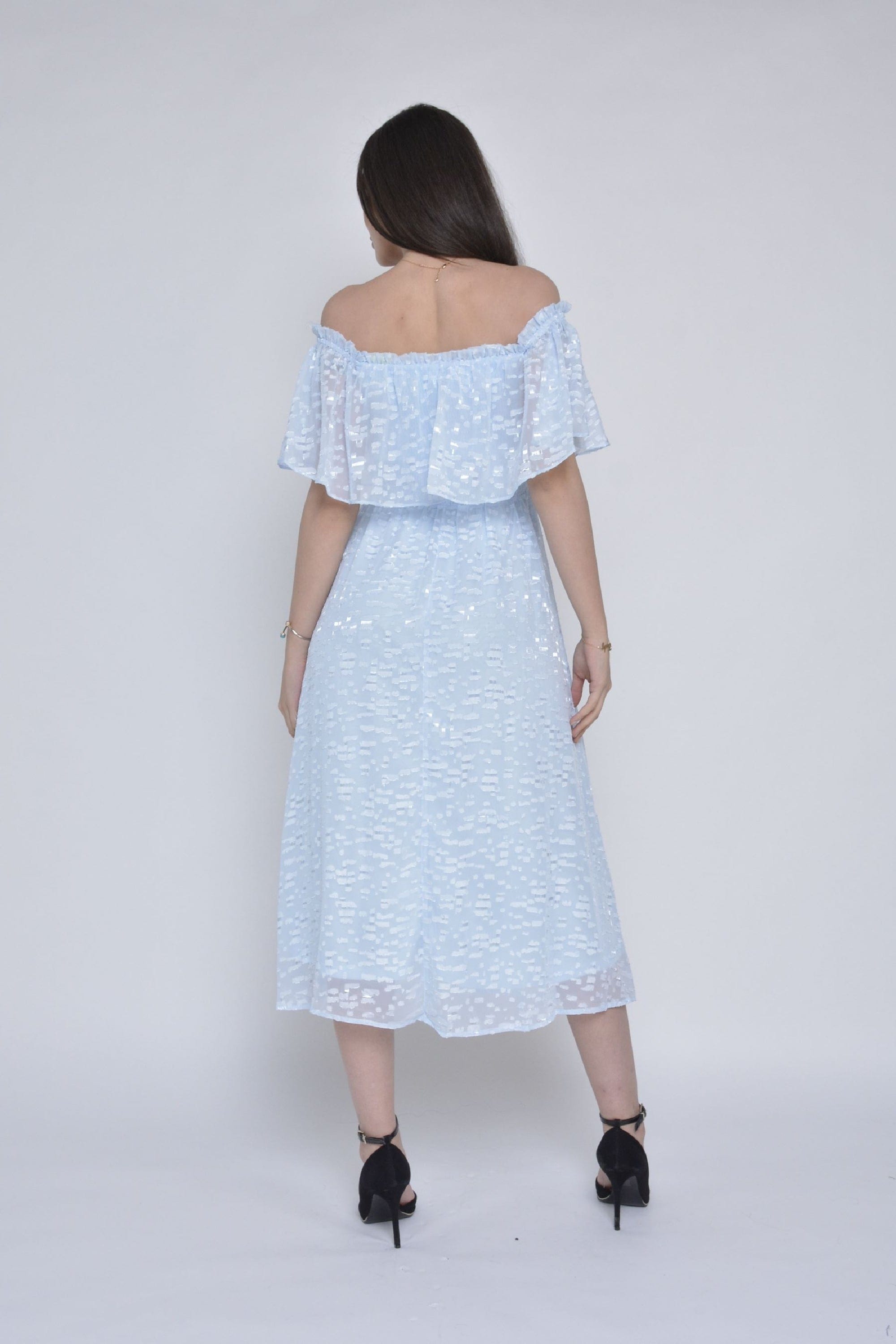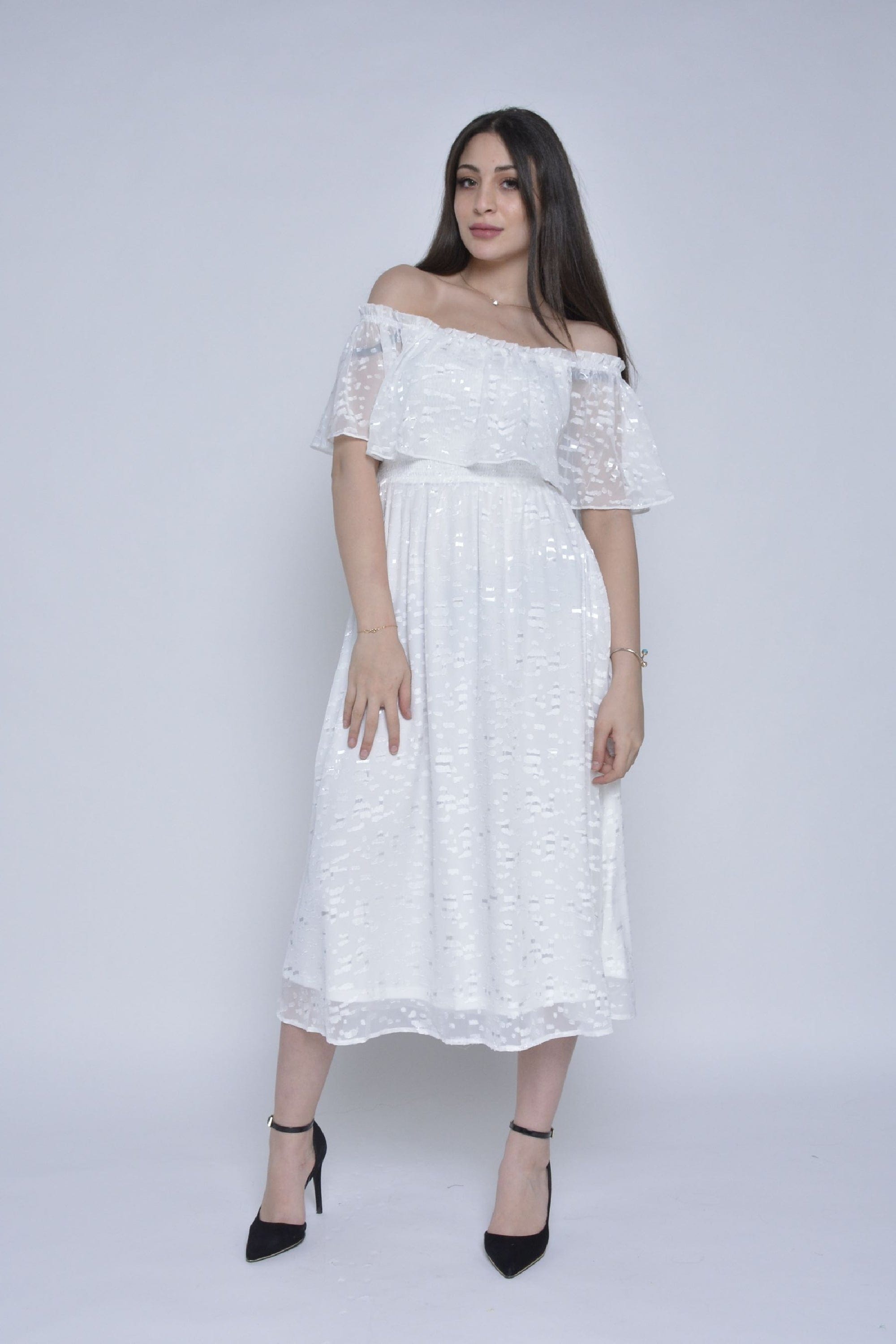 فستان ميدي كم قصير اوف شولدر شيفون