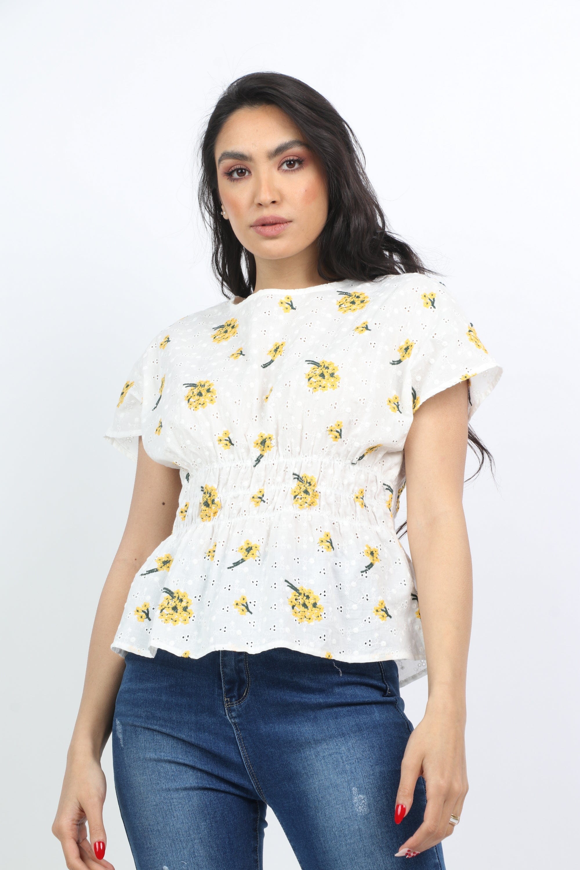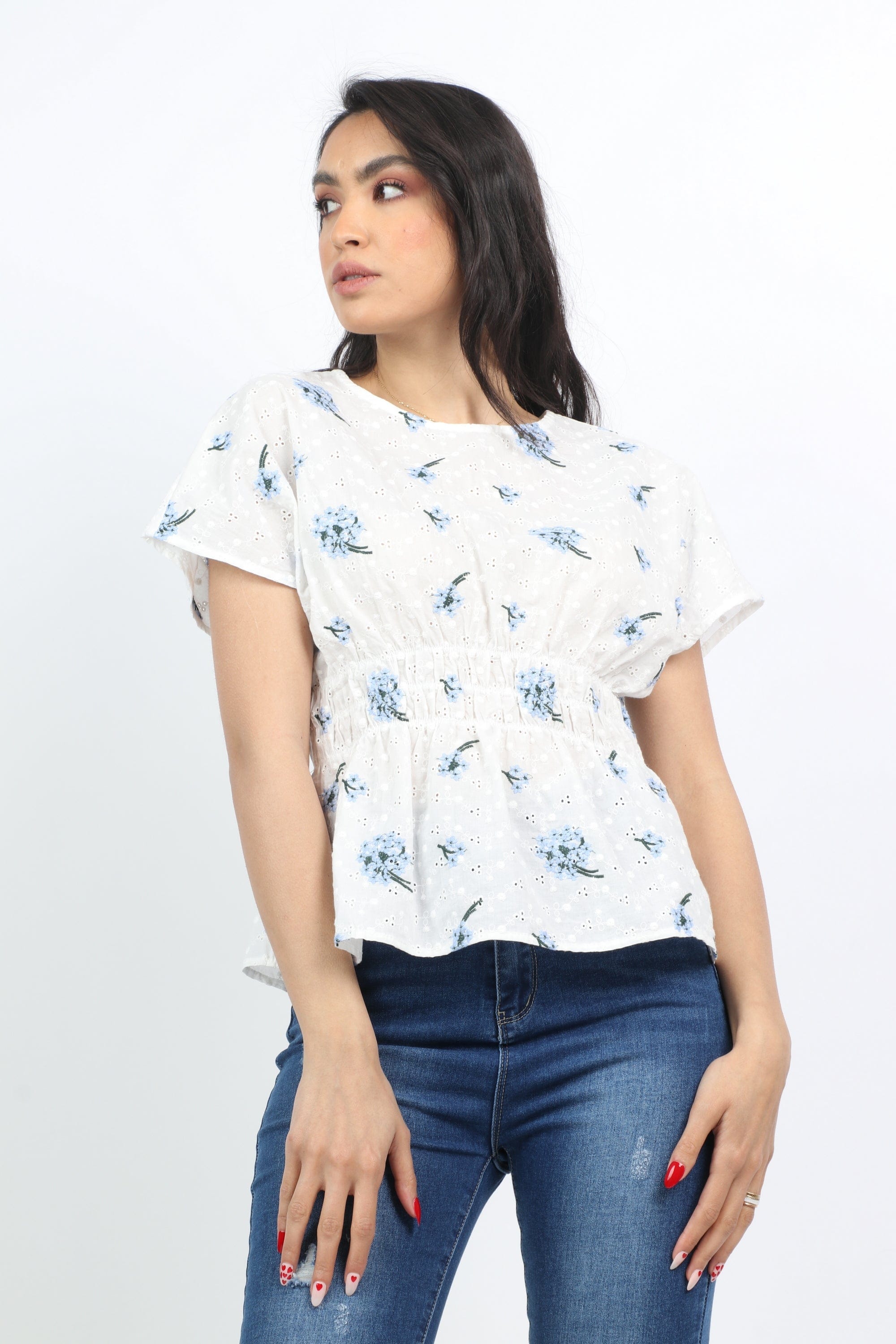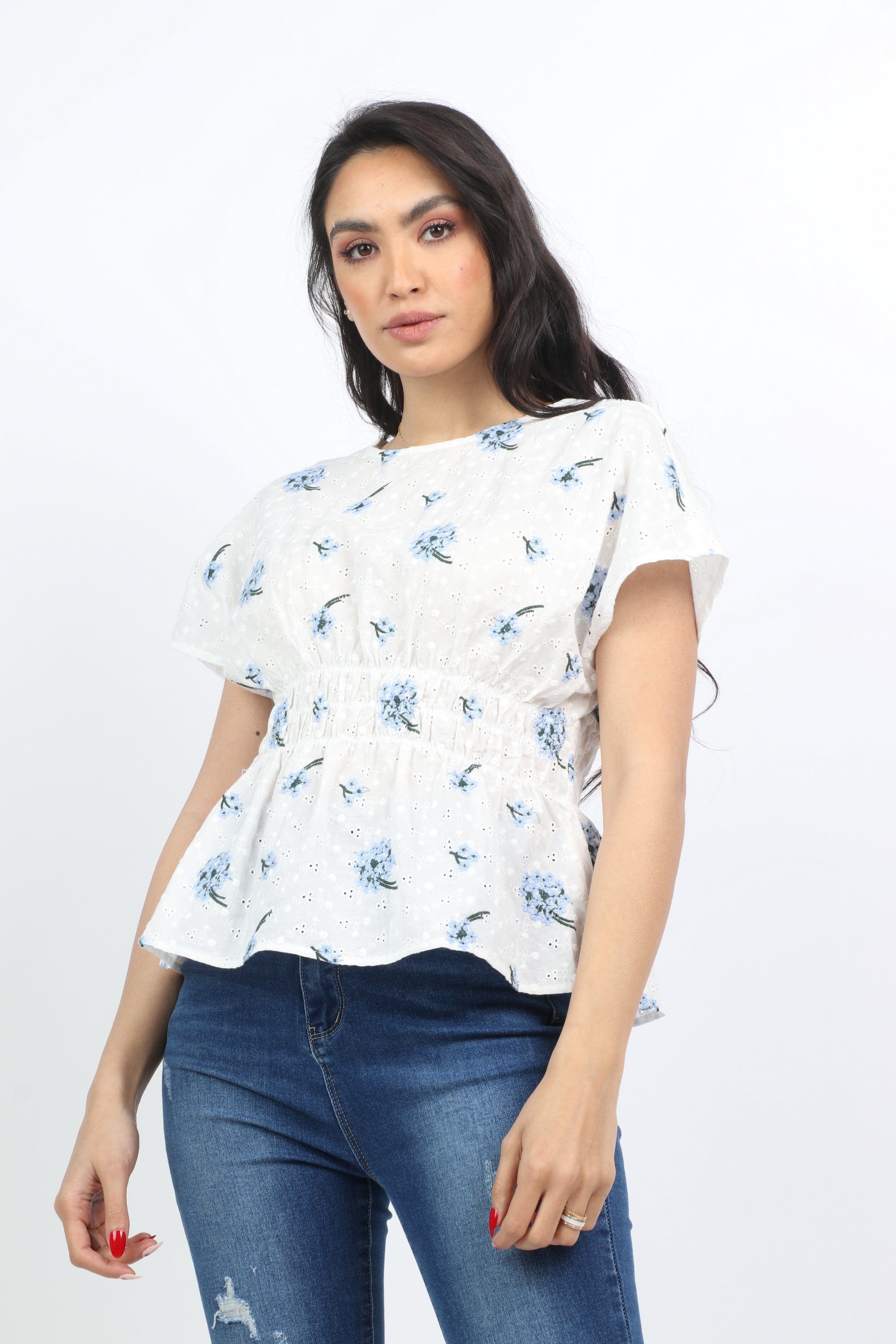 بلوزة مشجرة مخصرة كم قصير نسائي