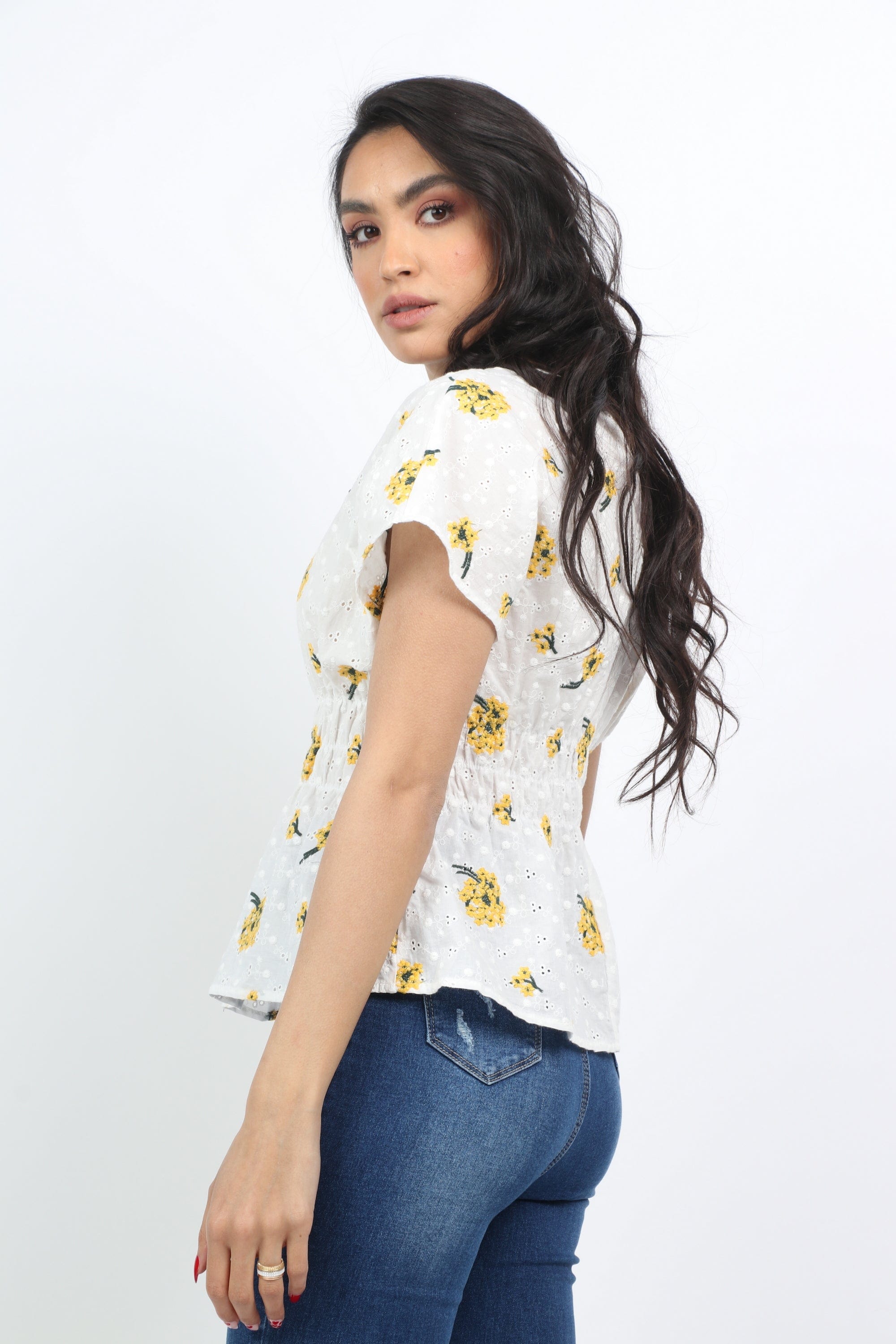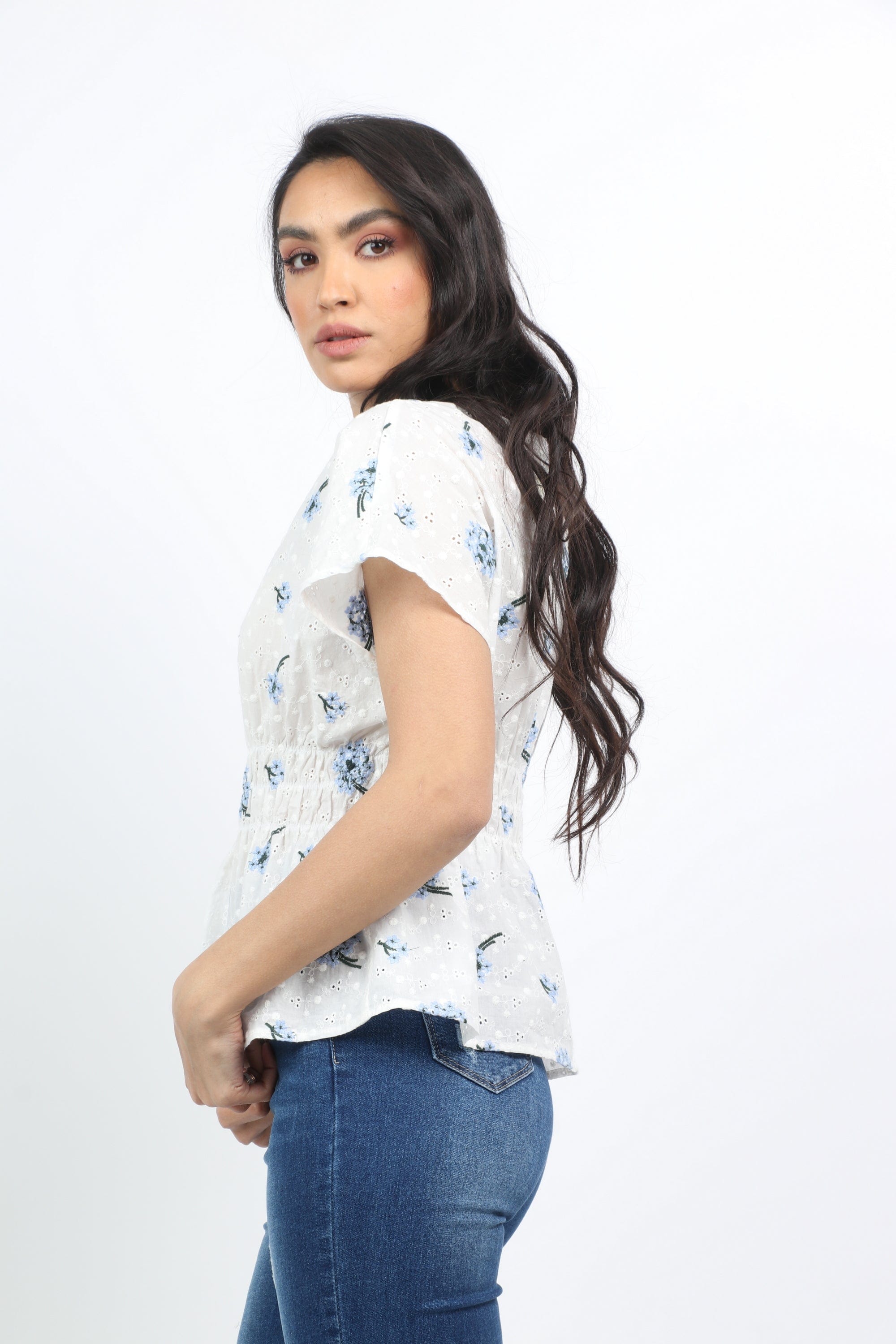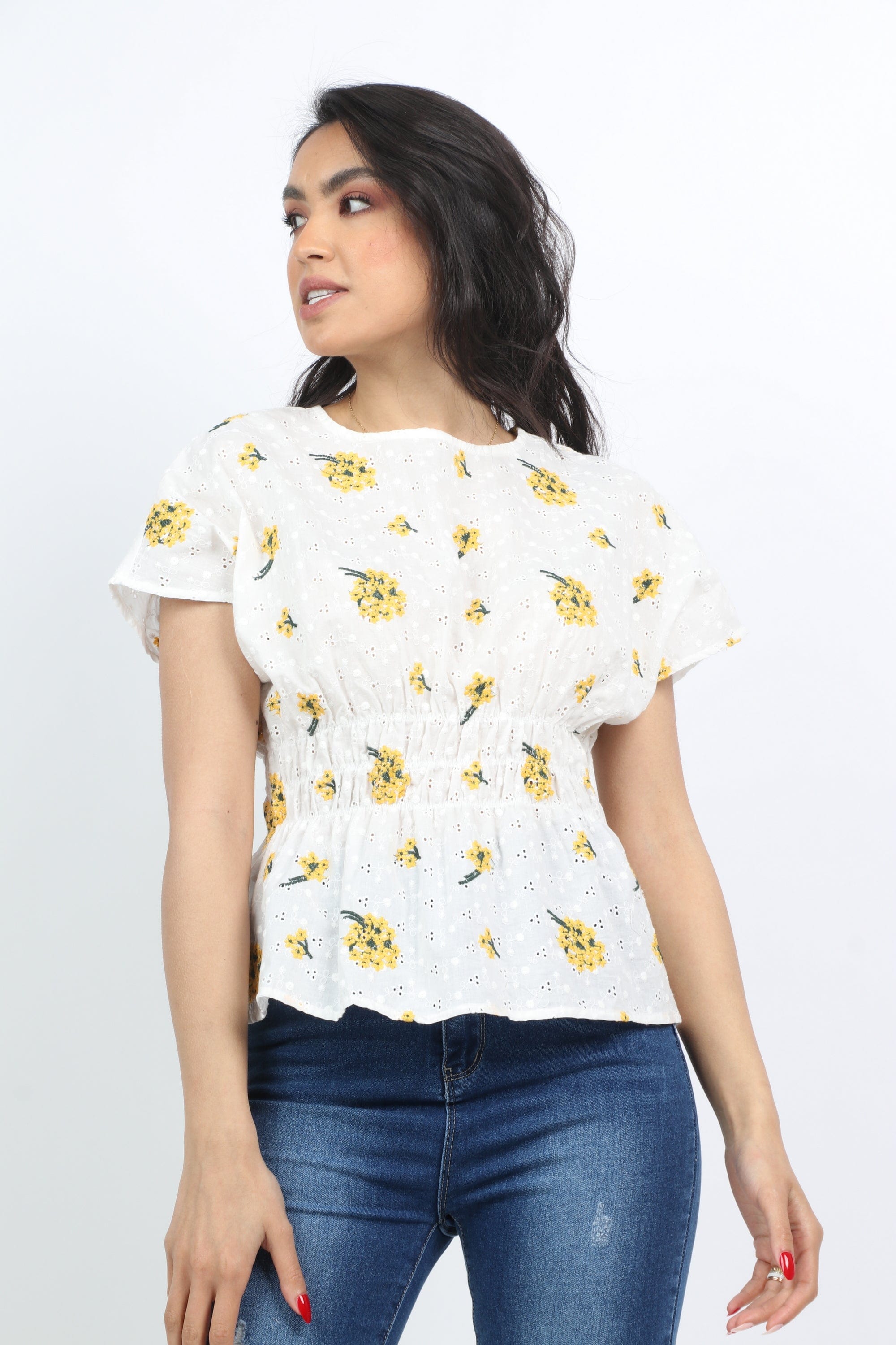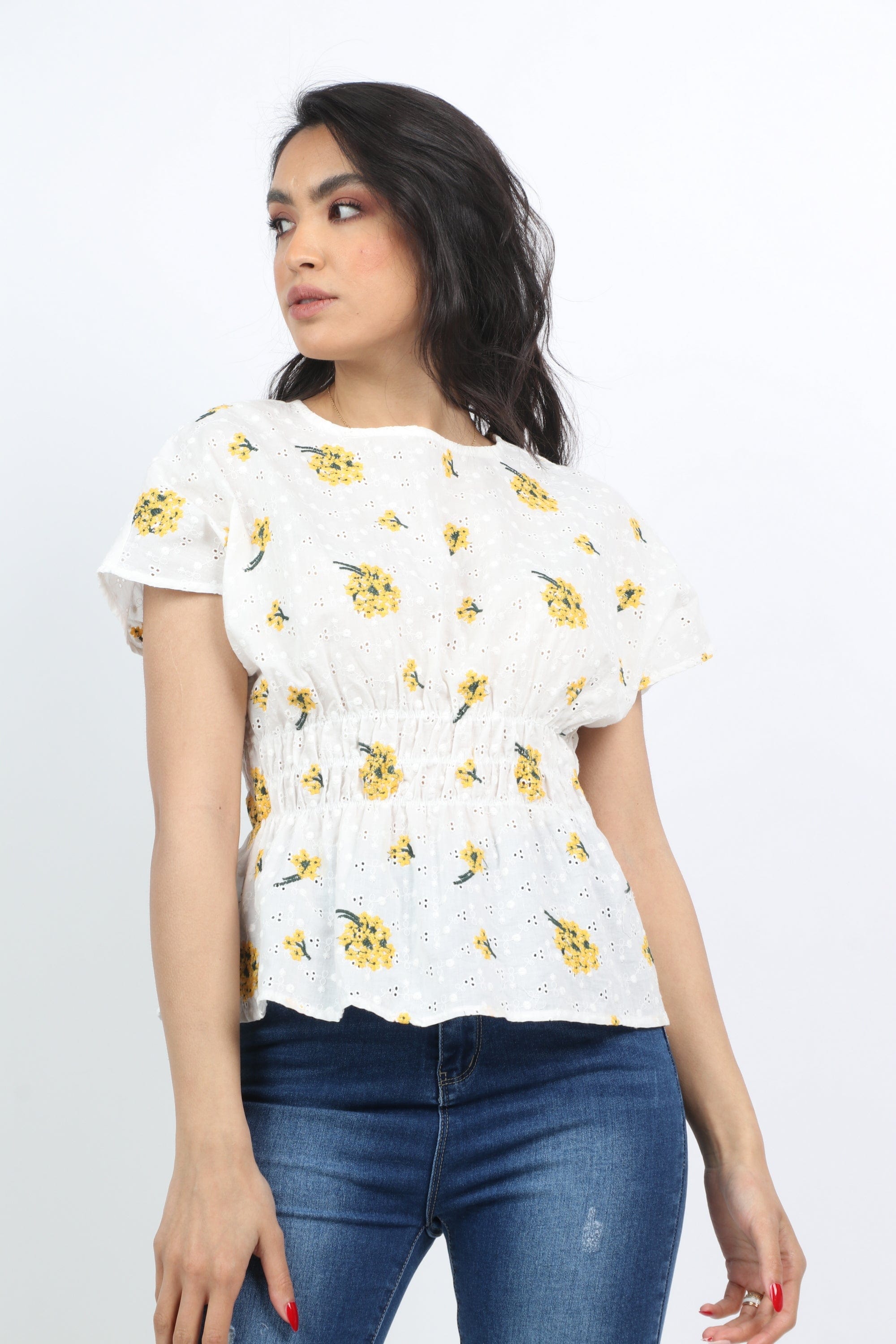 بلوزة مشجرة مخصرة كم قصير نسائي
