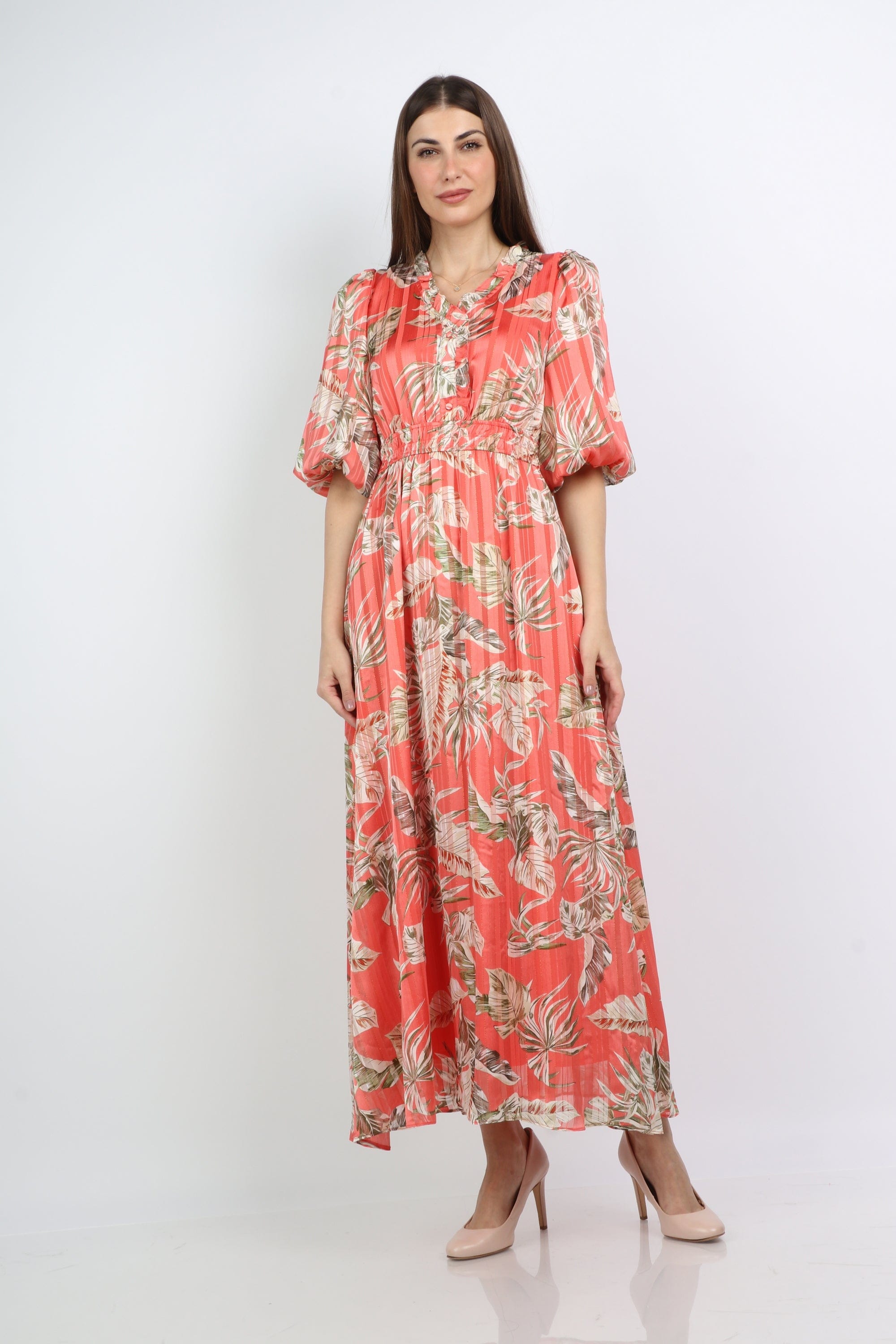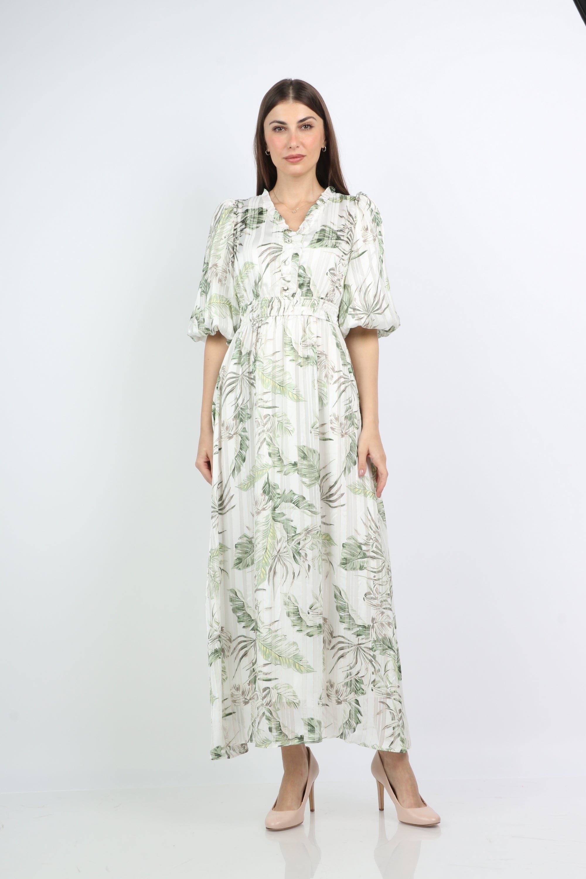 فستان طويل مشجر مخصر 3/4 كم بف نسائي