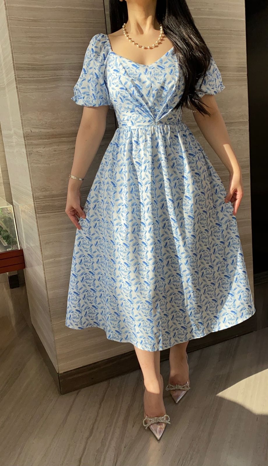 - التنسيق: نسقيه مع الصنادل المسطحة للنهار وحذاء بكعب متوسط للمساء، أضيفي حقيبة صغيرة وإكسسوارات بسيطة، يمكنك وضع حزام رفيع خارجي لتحديد الخصر لأن الفستان يأتي بدون حزام؛ مثالي للخروجات الرومانسية والنزهات الصيفية.