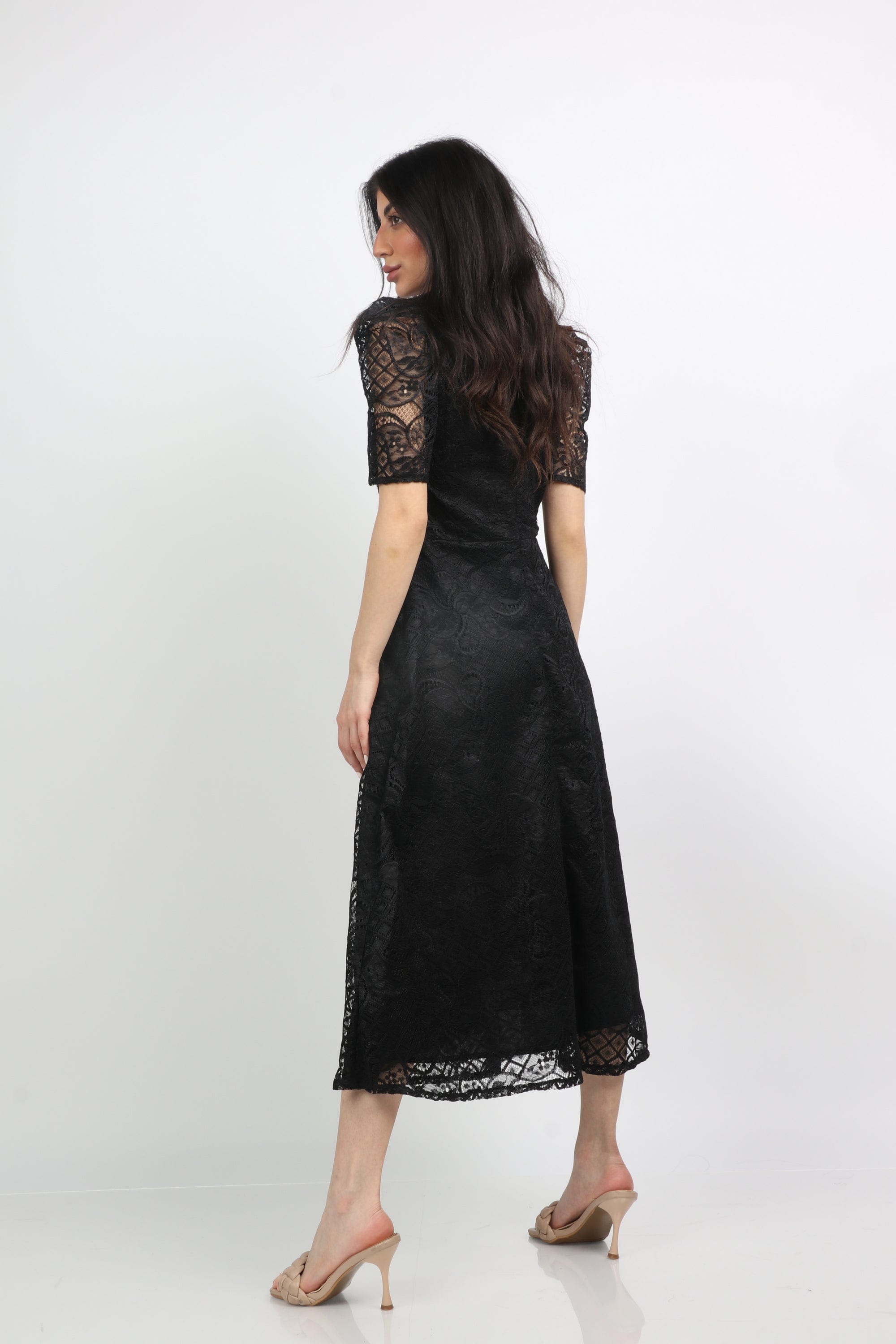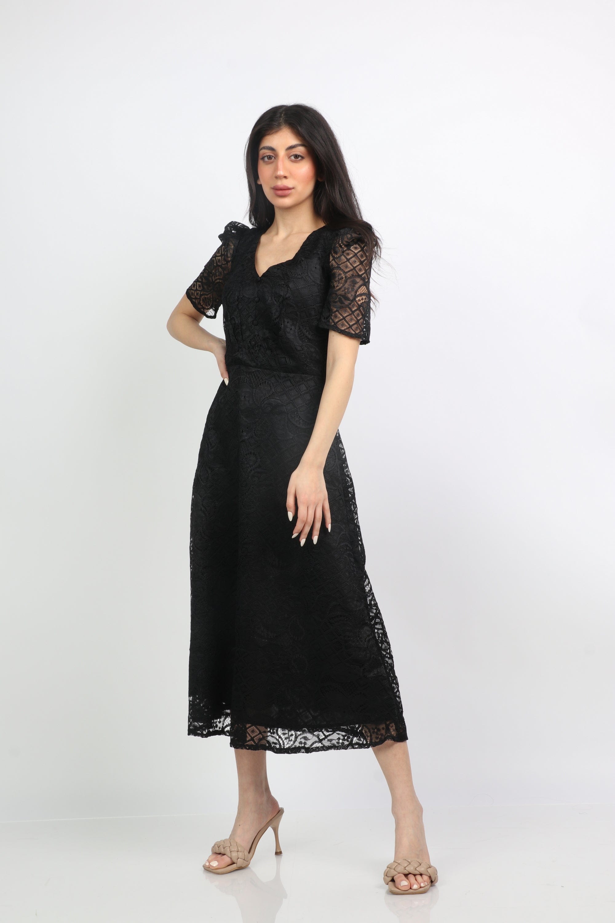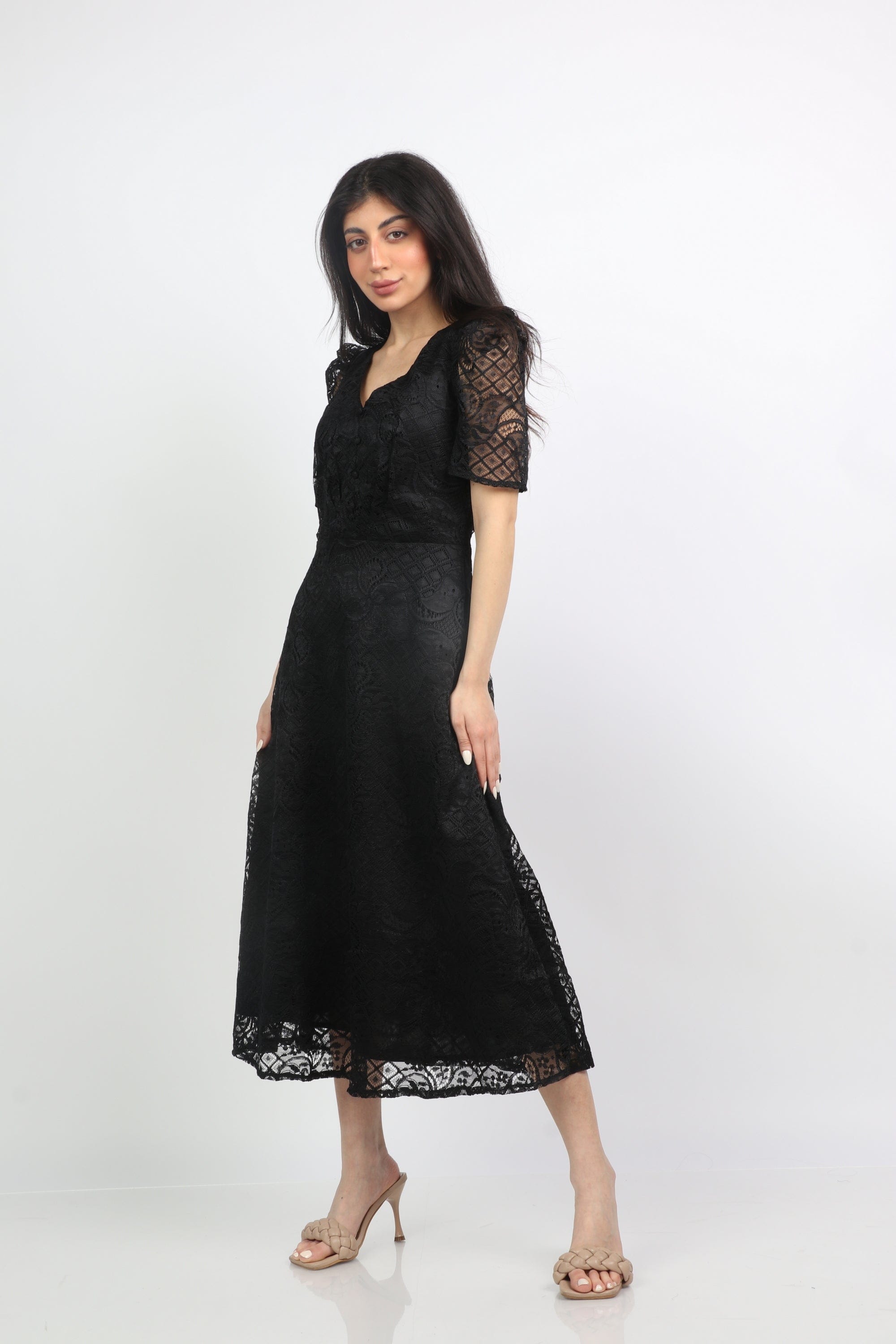 لو تدورين على فستان أنيق وسهل للارتداء، هذا الفستان الأسود خيار رائع. مصنوع من بوليستر 100% ومصمم بدون بطانة، بسماكة متوسطة تمنحه دفء معتدل ومرونة للارتداء في كل المواسم. قصة A ميدي تمنح خصر متناسق وانسيابية، وياقة V تكمل طلة أنثوية، مع كم قصير ونقشة تضيف لمسة شخصية. بدون جيوب وبدون حزام لتصميم نظيف وبسيط. ستحبين كيف يتحرك معك عند المشي؛ مناسب للخروجات الرومانسية، سهرات أنيقة أو حتى لمناسبة رسمية خفيفة. فستان عملي يضمن مظهر أنثوي ومنسق بسهولة في خزانة الملابس. اعثري على مقاسك في فاشن السعودية وأضيفي هذه القطعة المتنوعة إلى خزانة ملابسك اليوم.