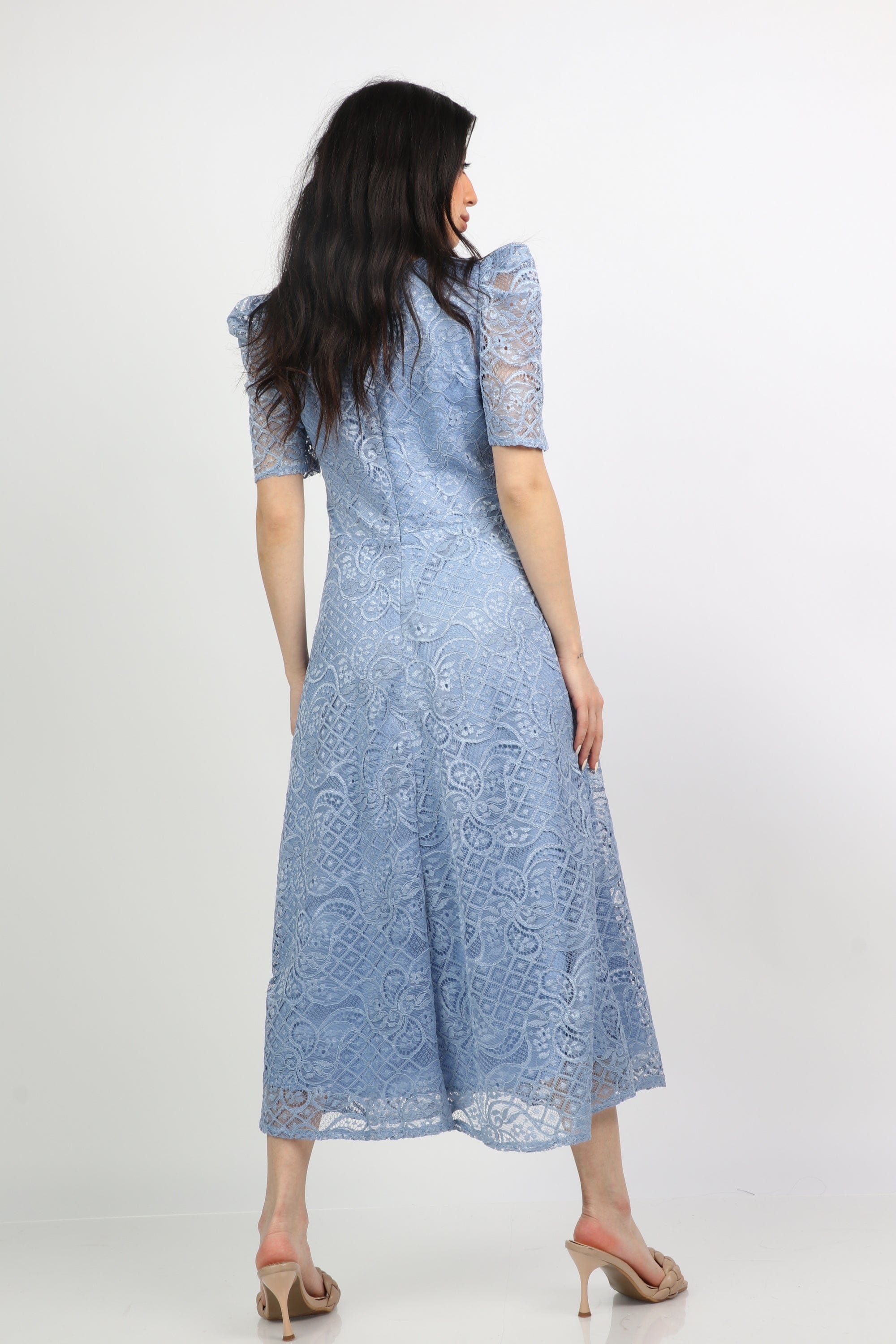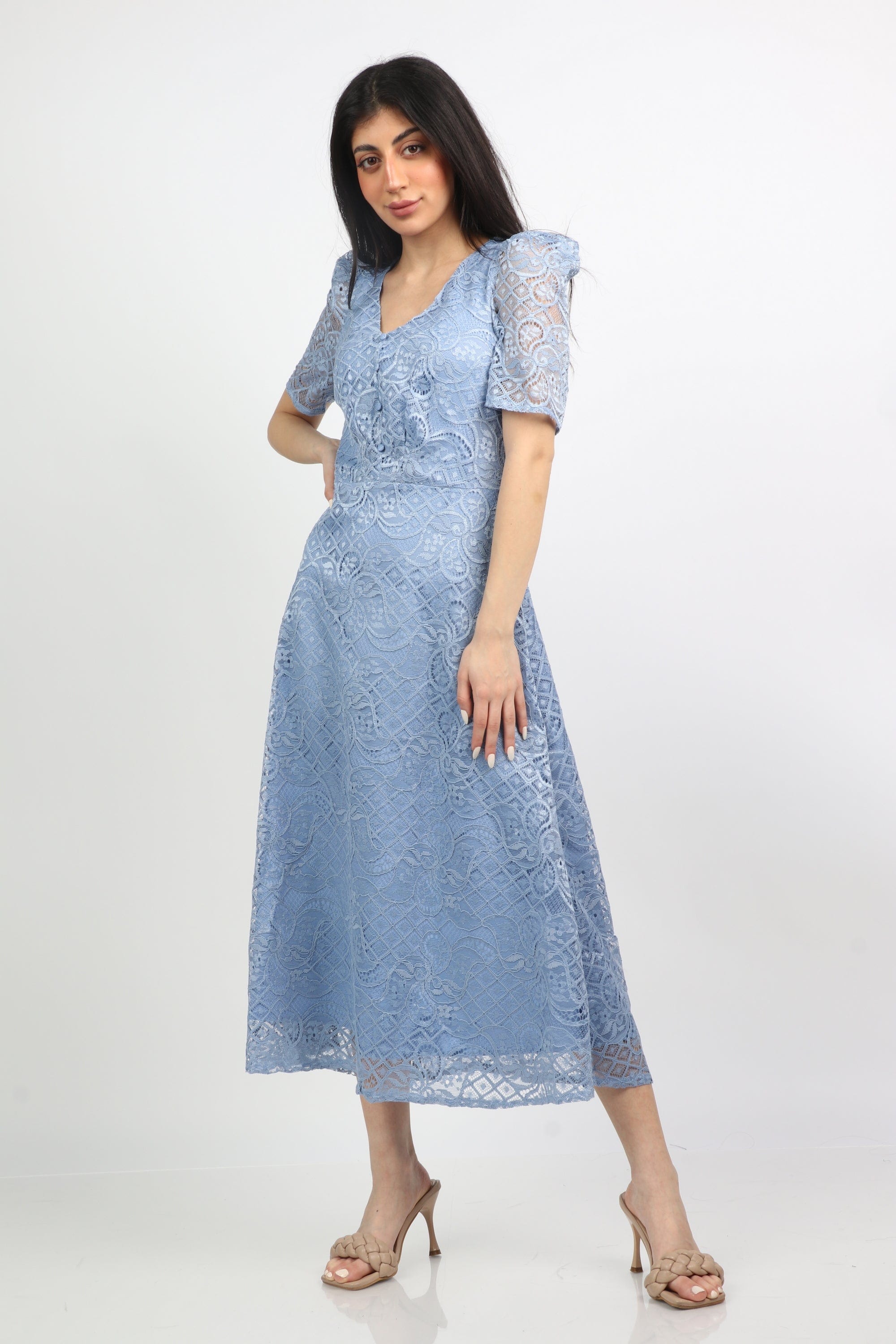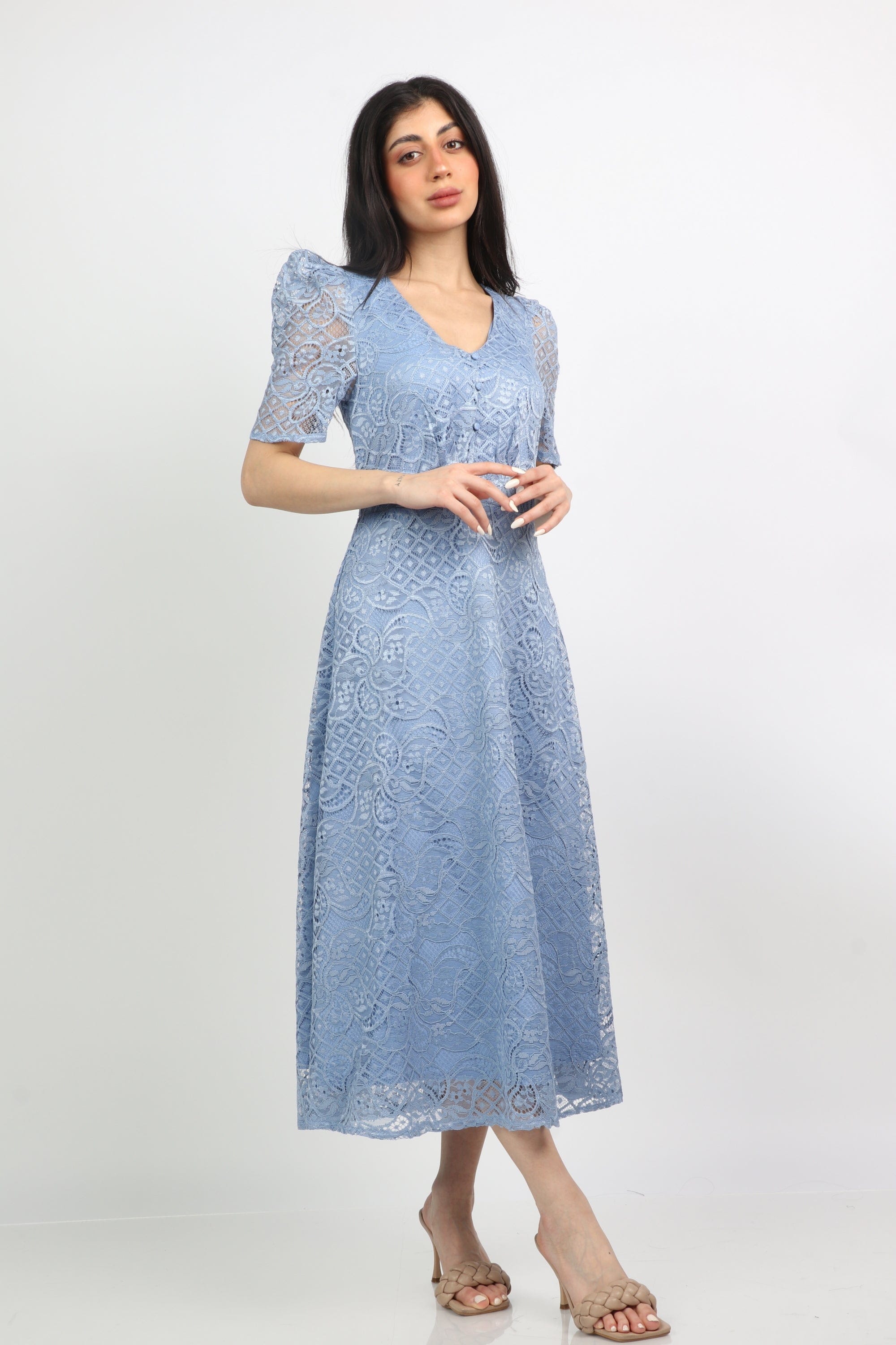 - العناية: اغسلي الفستان على دورة لغسيل لطيف أو بالغسل اليدوي بماء بارد، لا تبييض، جففي معلقاً بعيداً عن الشمس، وكي على حرارة منخفضة عند الحاجة.