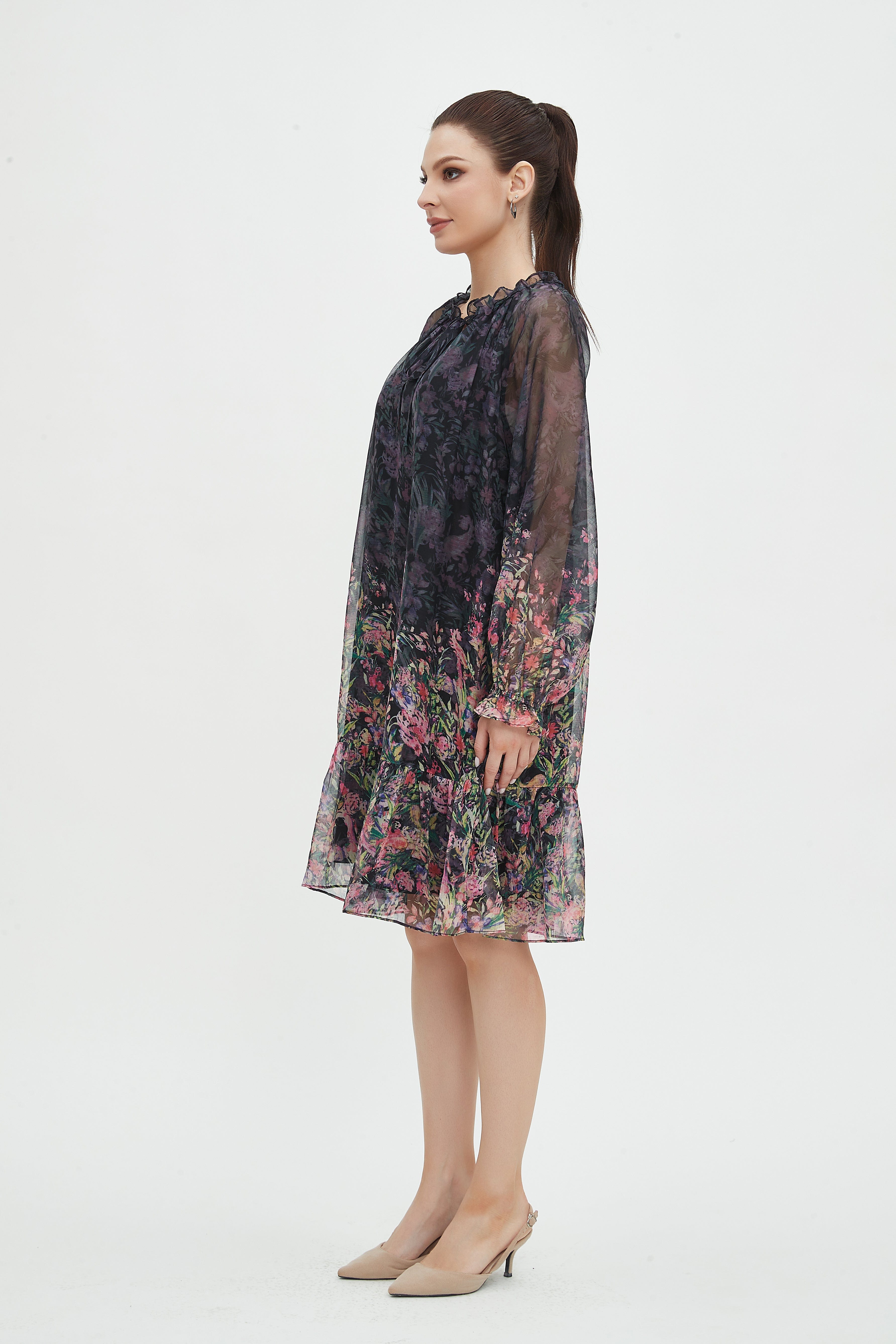 تخيل فستان تنسّقينه للخروج السريع أو لموعد صباحي، هذا الفستان قصّة A بطول الركبة يمنحك إطلالة أنثوية مريحة ومناسبة لكل يوم. خامته بوليستر 100% خفيفة ورفيعة، مناسبة لربيع وخريف معتدل، ولا يحتوي على بطانة داخلية مما يجعله خفيفاً وحيوياً. ياقة مستديرة وأكمام طويلة تعطيه توازن بين الأناقة والدفء الطفيف، ونقشة الزهور المتعددة الألوان تضيف لمسة مرحة وأنثوية. القصة عادية مريحة ولا يحتوي على جيوب أو حزام، لذلك سيظهر الشكل الطبيعي للقصة A ويتحرك معك بسلاسة عند المشي. مثالي لإطلالات كاجوال؛ ستحبين كيف يناسب الخروج مع أصدقاء أو نزهات نهاية الأسبوع ويمنح خزانة ملابسك قطعة مناسبة للمواسم المعتدلة. اعثري على مقاسك في فاشن السعودية وأضيفي هذه القطعة المتنوعة إلى خزانة ملابسك اليوم.