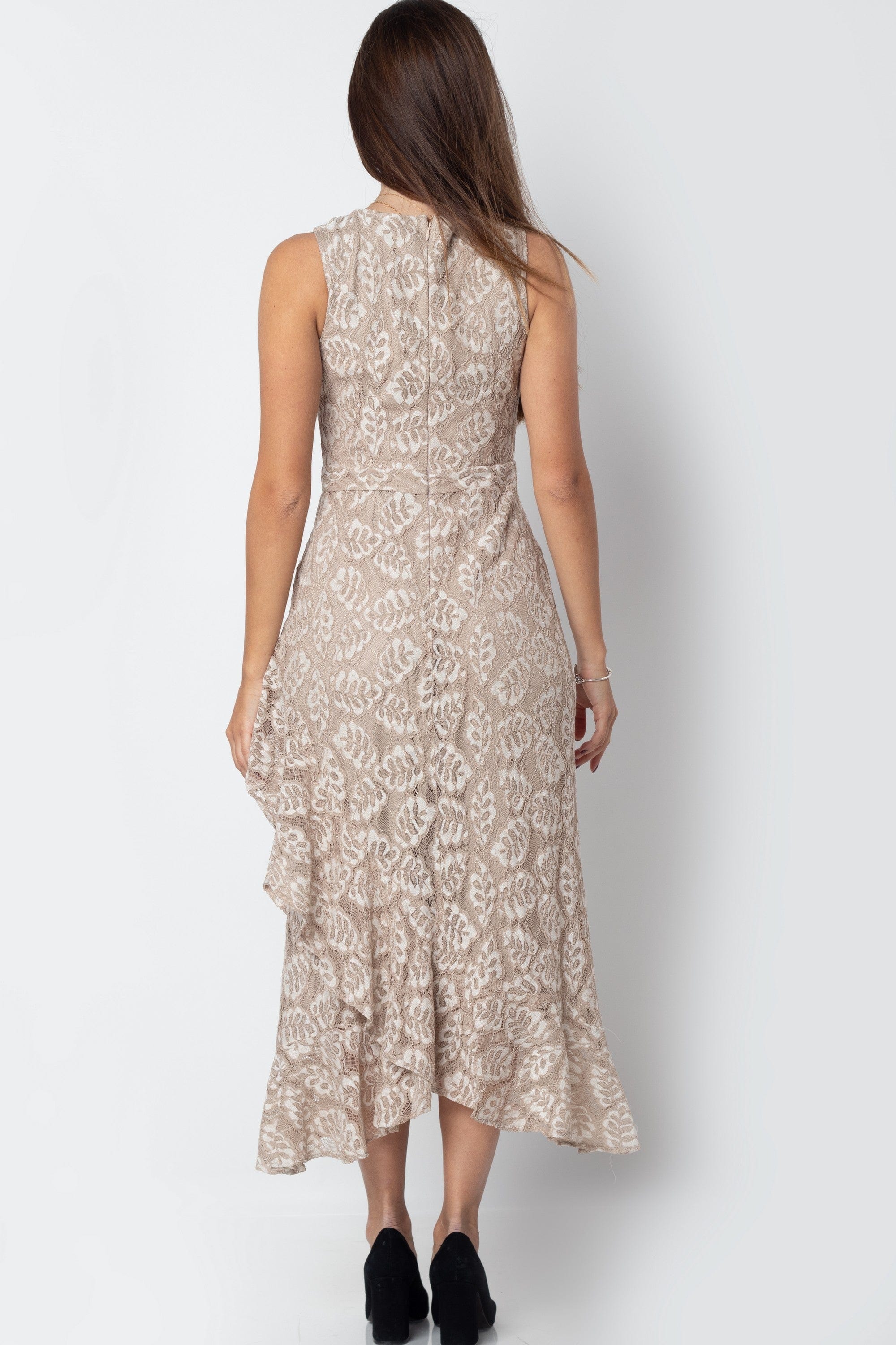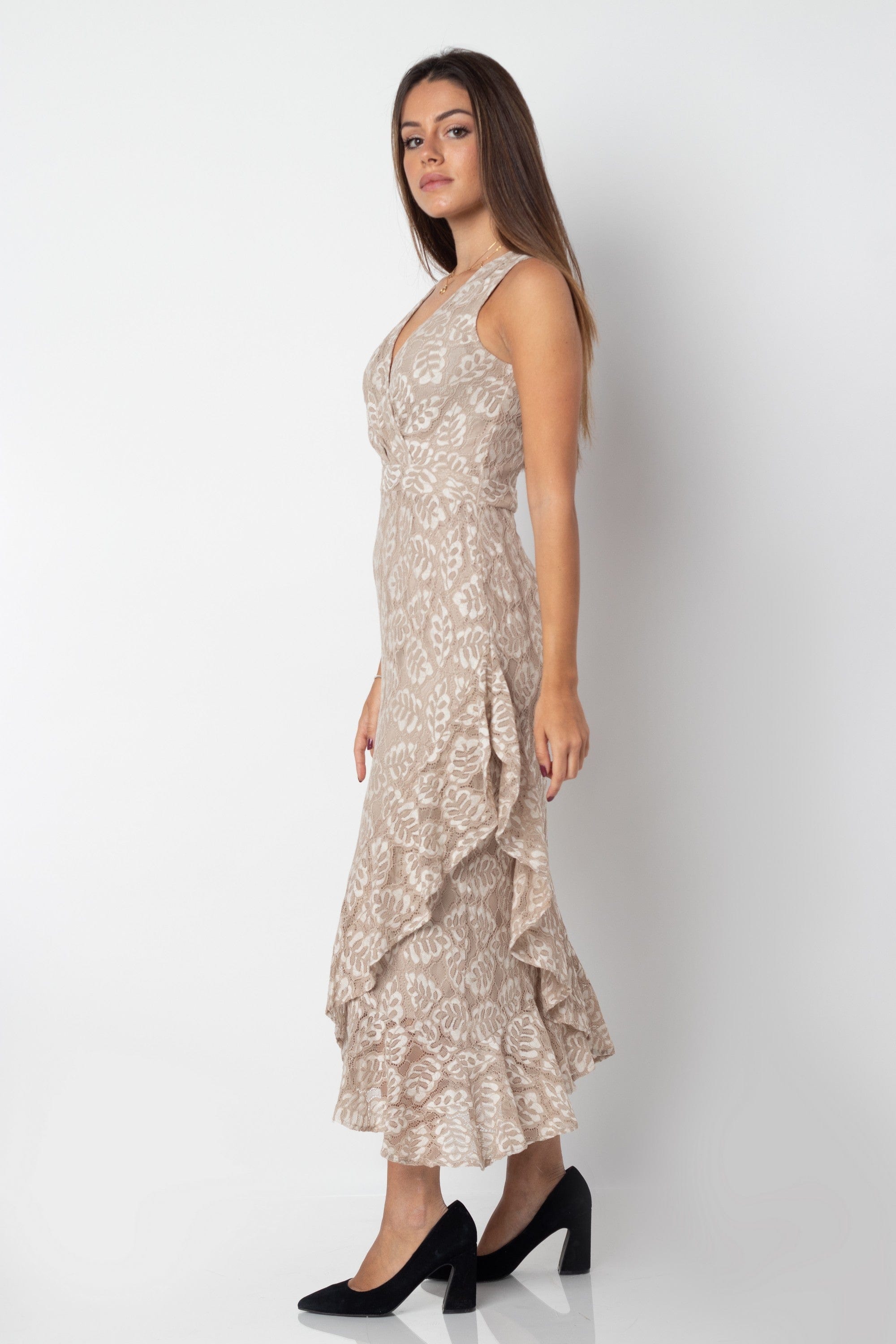 - نقشة بيج مع تفاصيل مكشكشة لمسة أنثوية