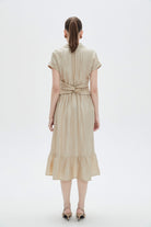 هذا الفستان رائع إذا كنتِ تبحثين عن قطعة عملية ومواكِبة للموضة لخزانة الملابس. الخامة الممزوجة من 34% أستاتيك، 34% تنسيل و32% بوليستر تمنحك ملمس ناعم ومتانة مع قدرة جيدة على التهوية، ومناسبة لجميع المواسم بفضل سمك القماش المتوسط. قصة A ميدي تمنح جسمك توازن أنيق، وياقة القميص تضيف لمسة كلاسيكية، والأكمام القصيرة تحفظ الإطلالة كاجوال ومريحة في النهار. الفستان سادة باللون البيج ويأتي بدون بطانة أو جيوب، مع أكثر من زر للإغلاق وحزام مرفق يحدد الخصر حسب رغبتك؛ قصة عادية تناسب البالغات الباحثات عن راحة يومية. ستحبين كيف يتحرك معك في الخروجات الرومانسية أو التجمعات البسيطة، ويمكنك ارتداؤه للعمل أو للقاءات الصباحية. اعثري على مقاسك في فاشن السعودية وأضيفي هذه القطعة المتنوعة إلى خزانة ملابسك اليوم.