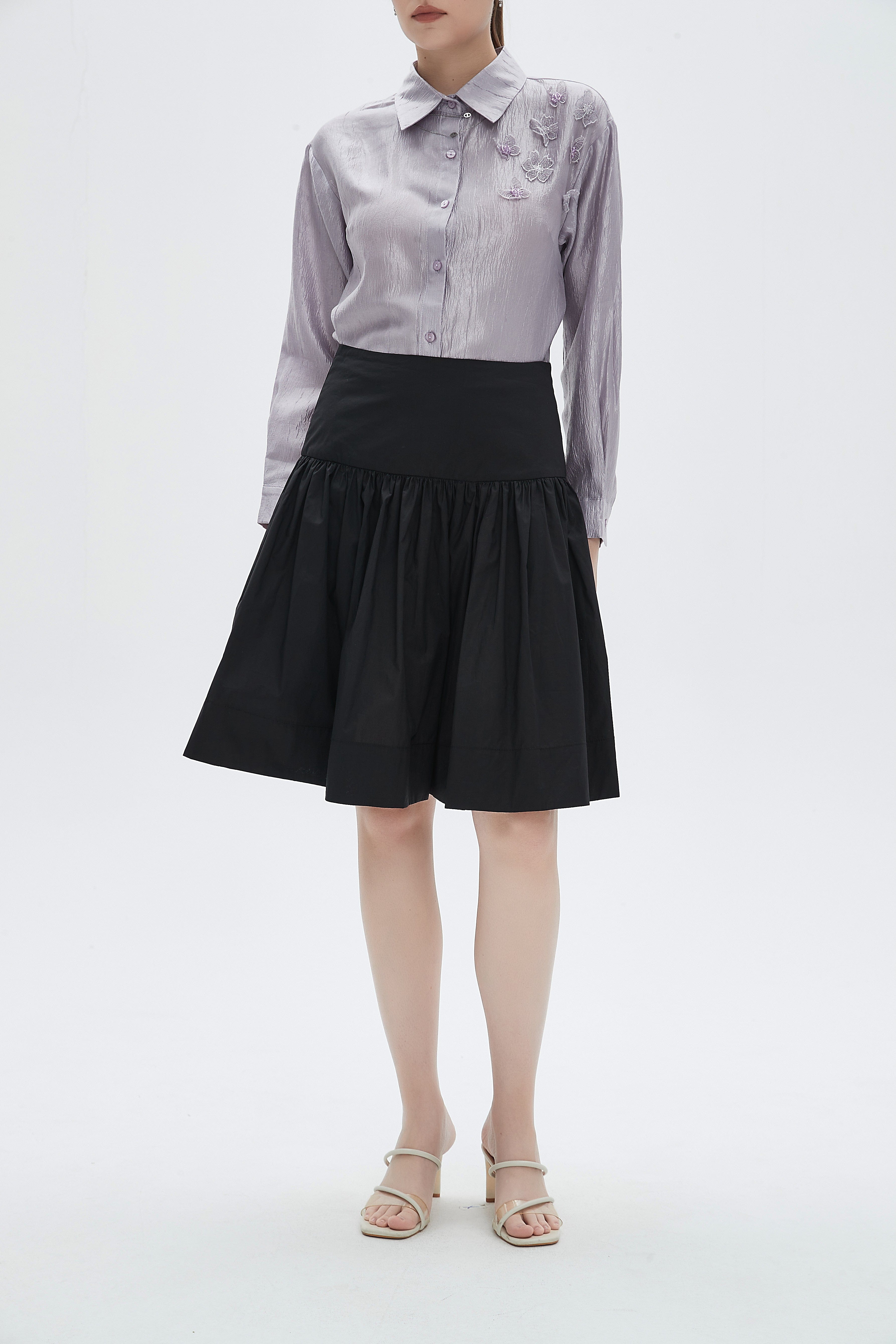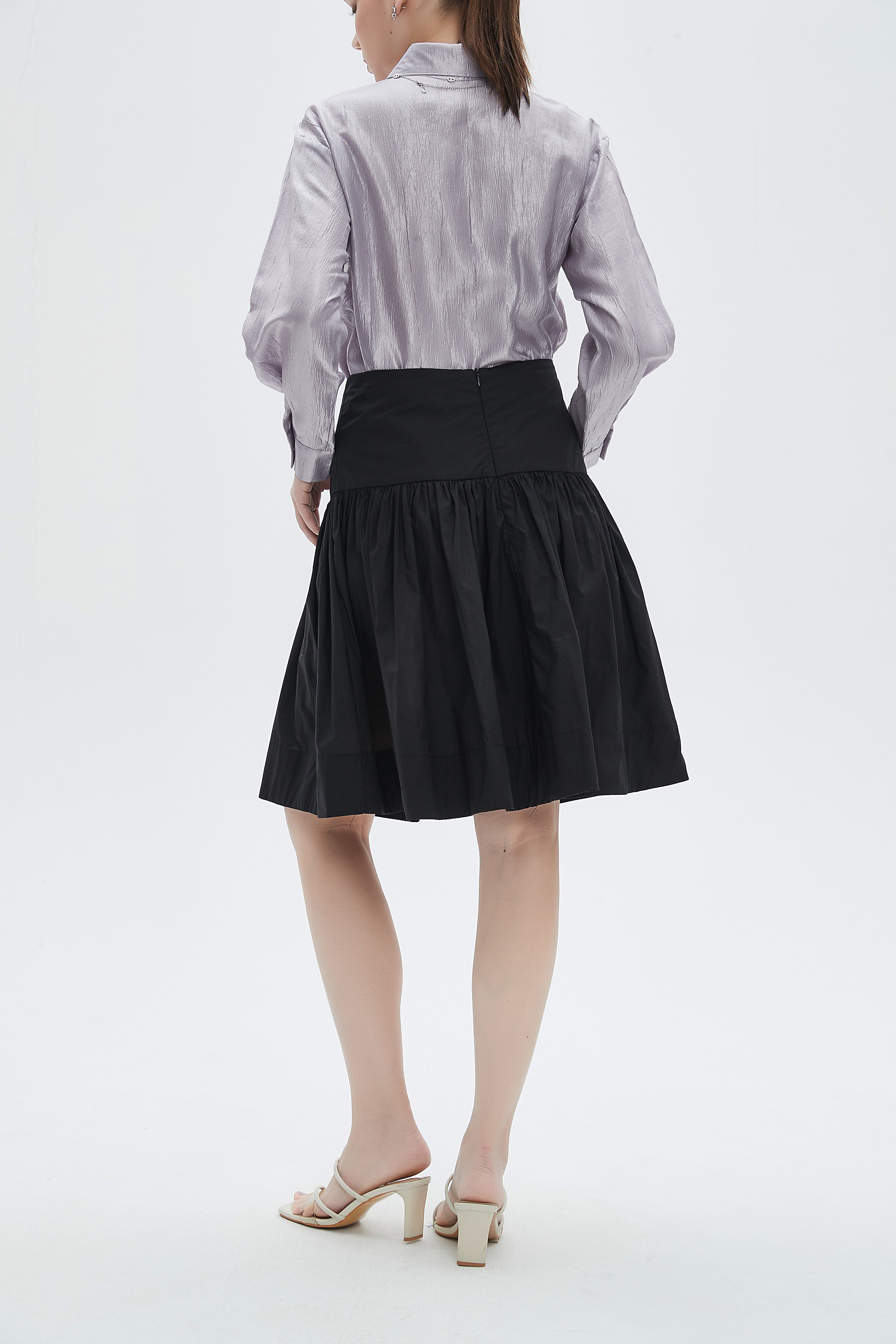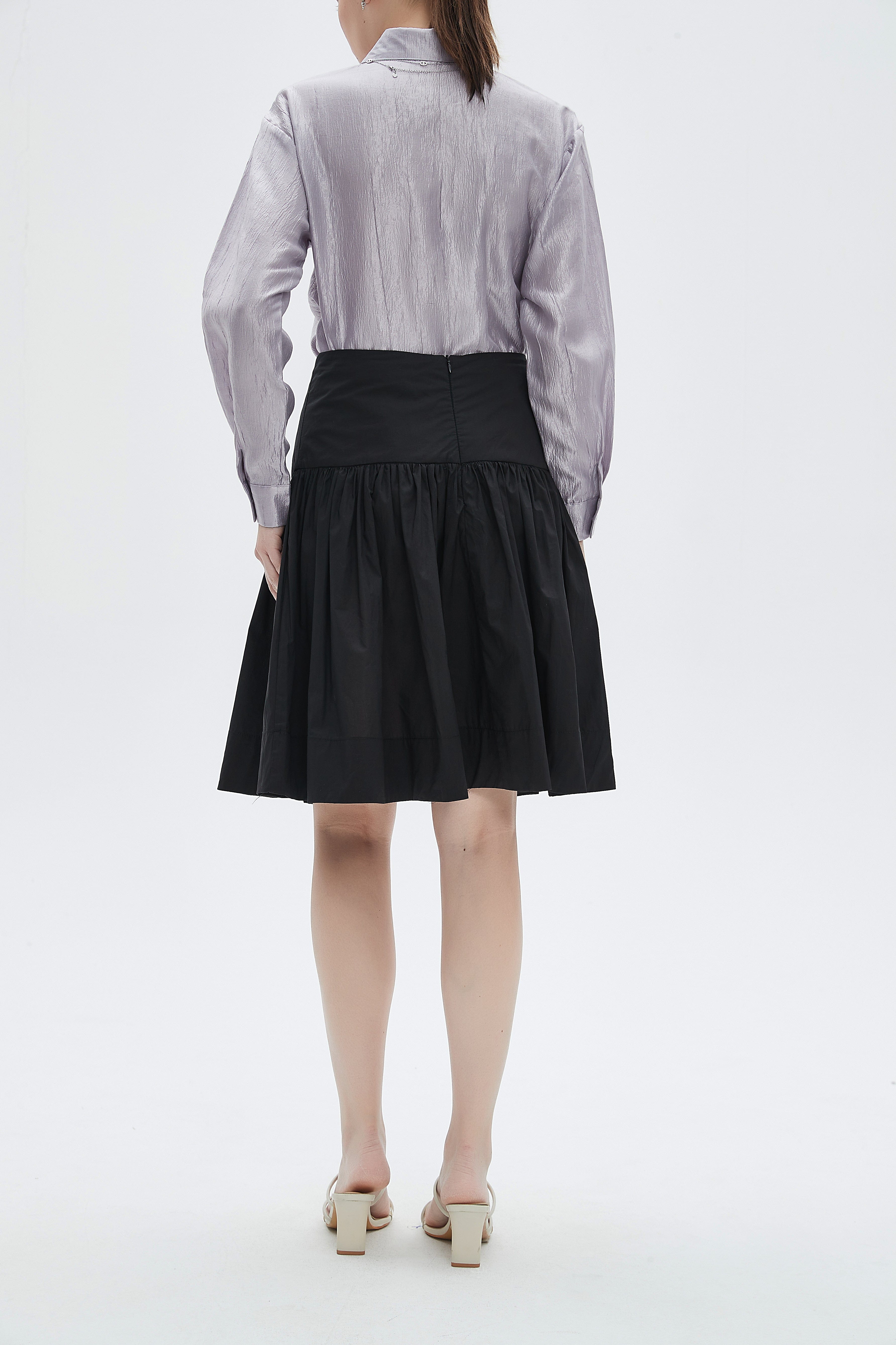 تنورة نسائية بطول الركبة مكشكشة بخصر مرتفع