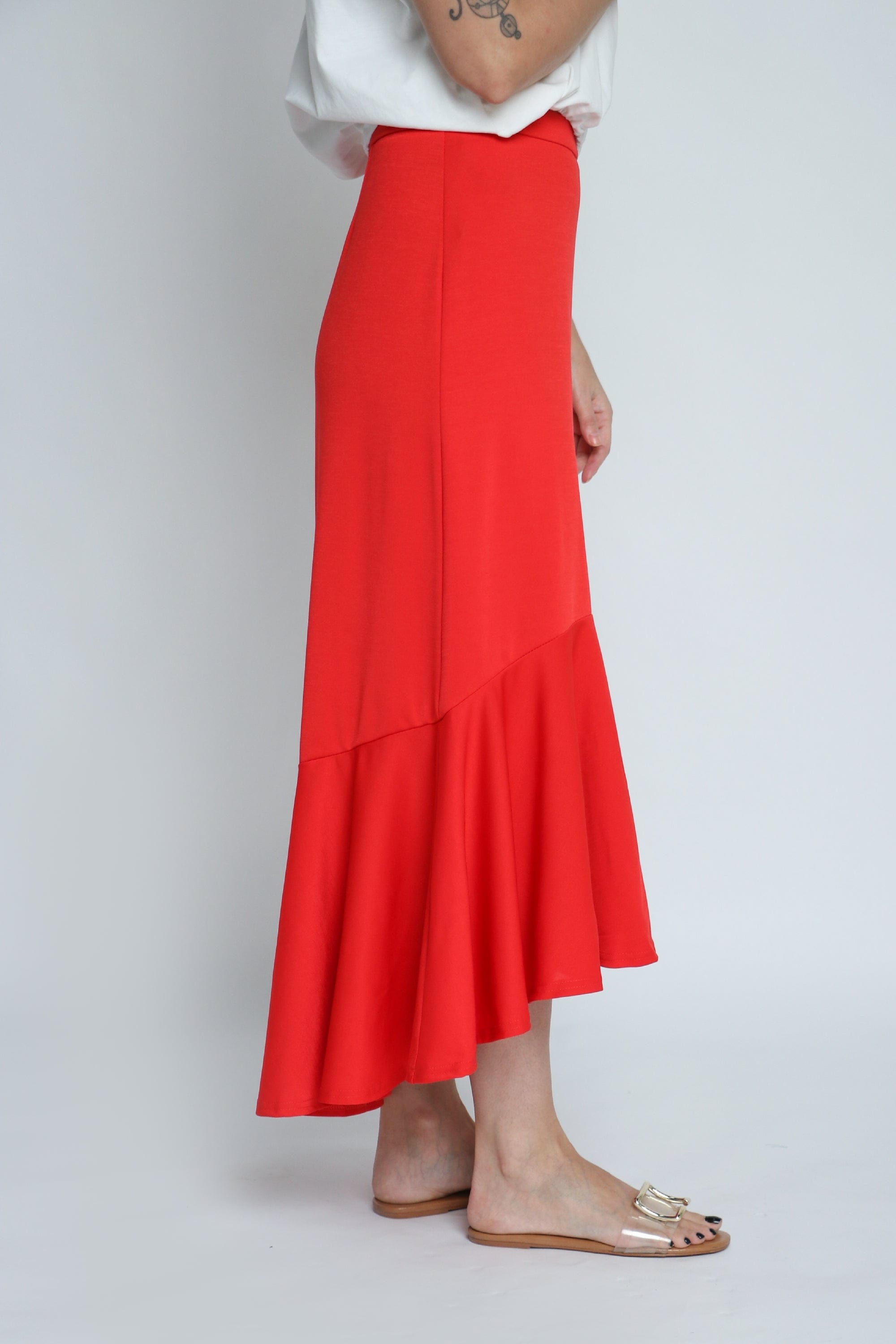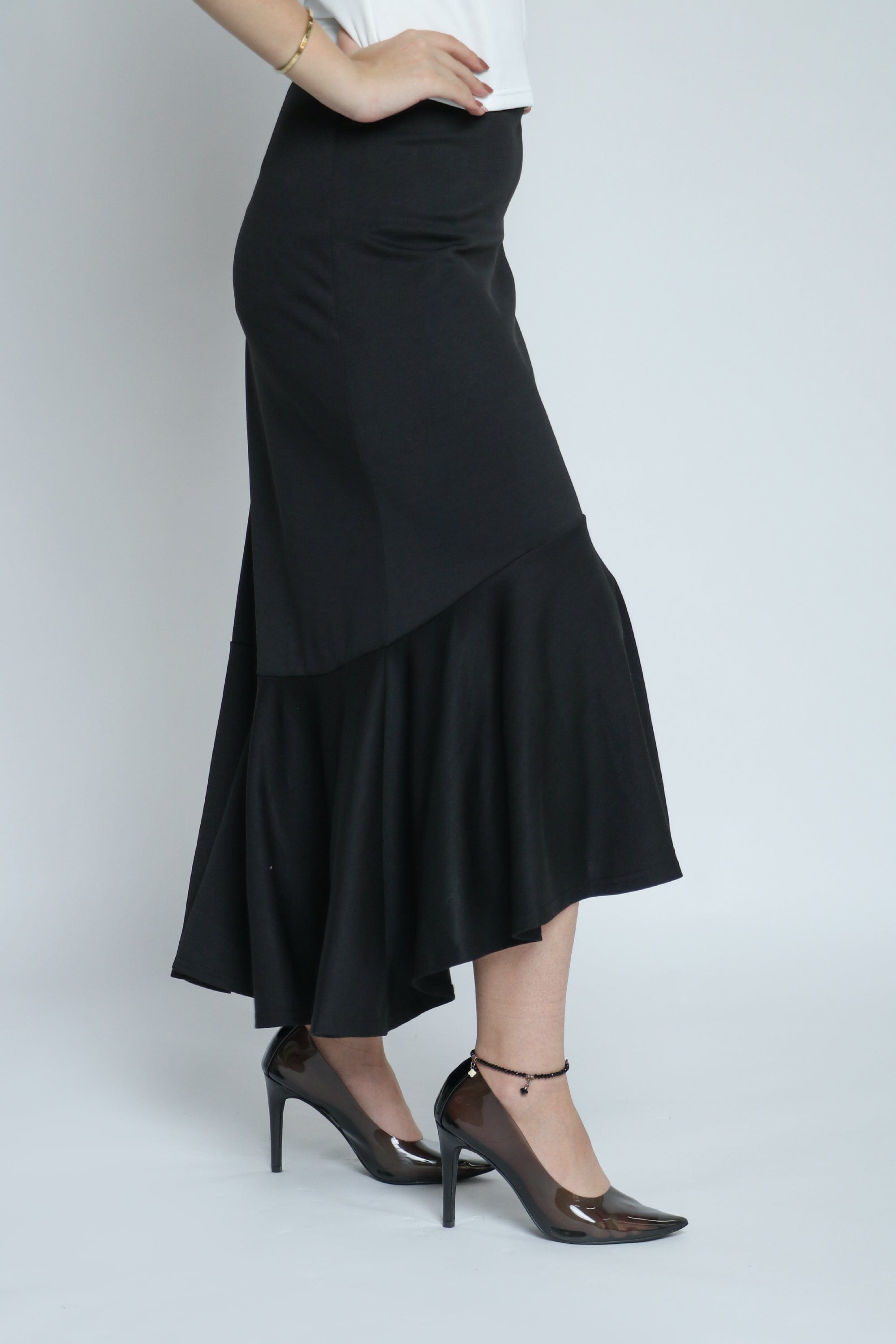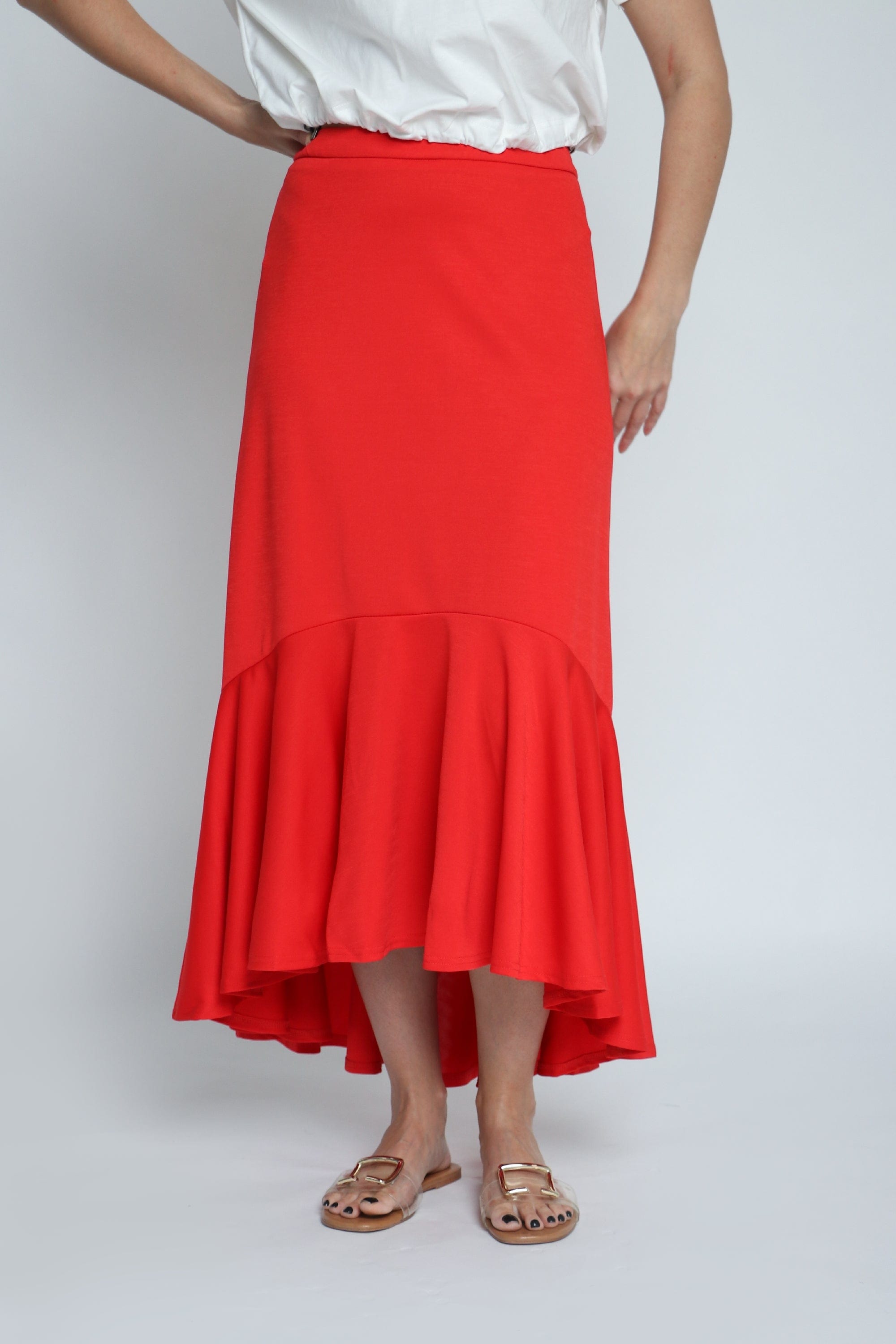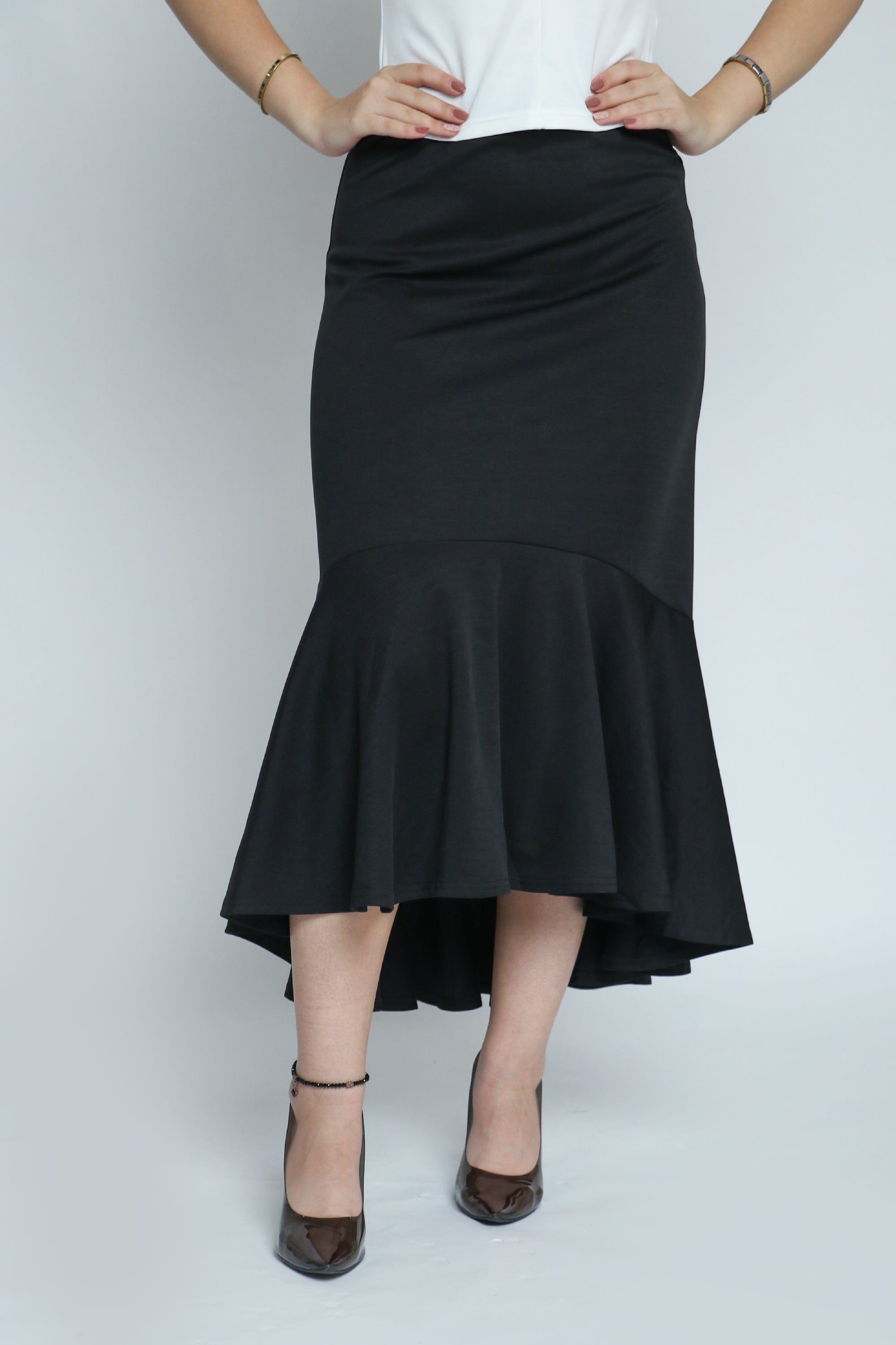 تنورة ميدي كشكش من الأسفل طويلة من الخلف قصير من الأمام