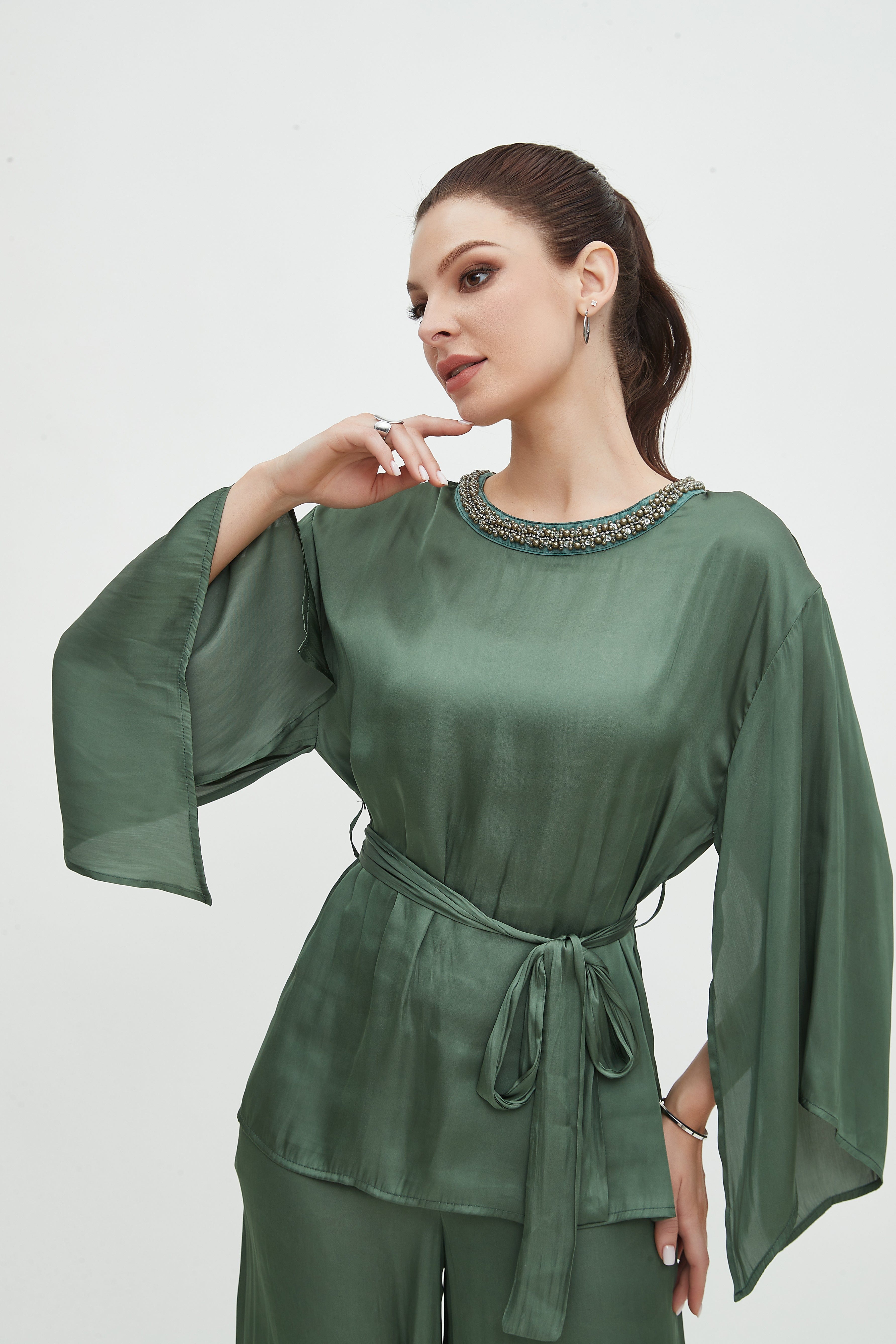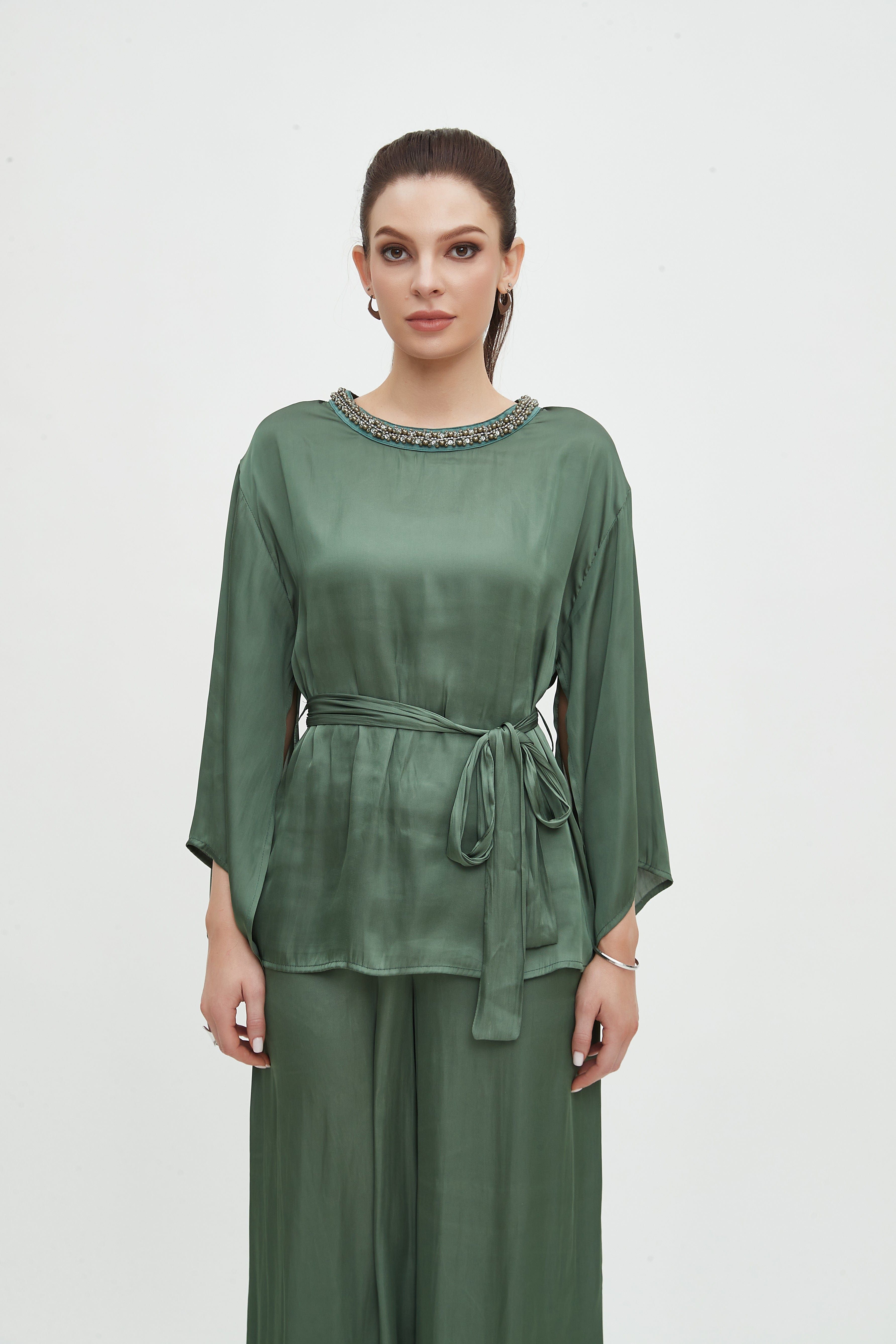 بلوزة سادة بحزام 3/4 كم