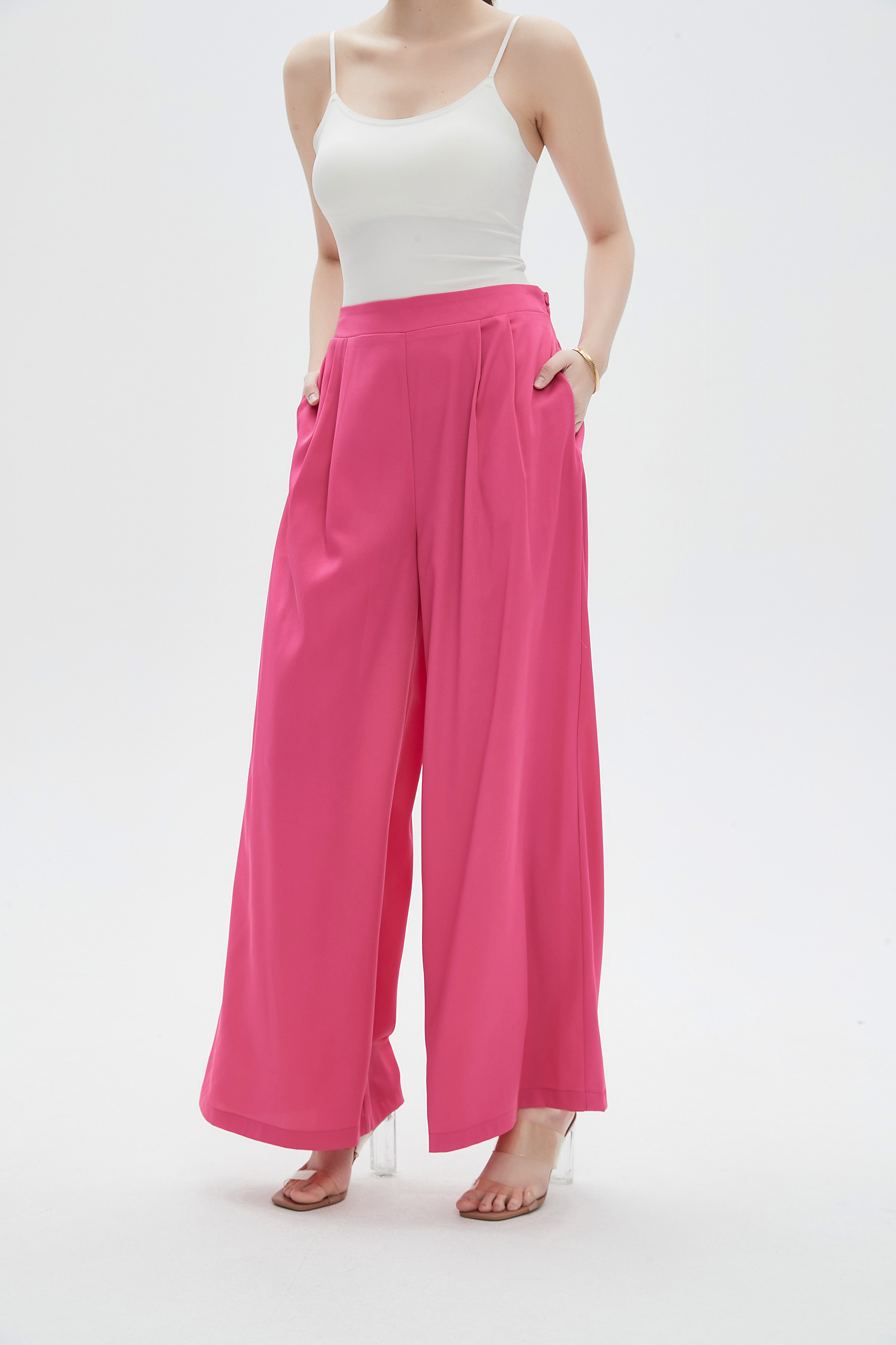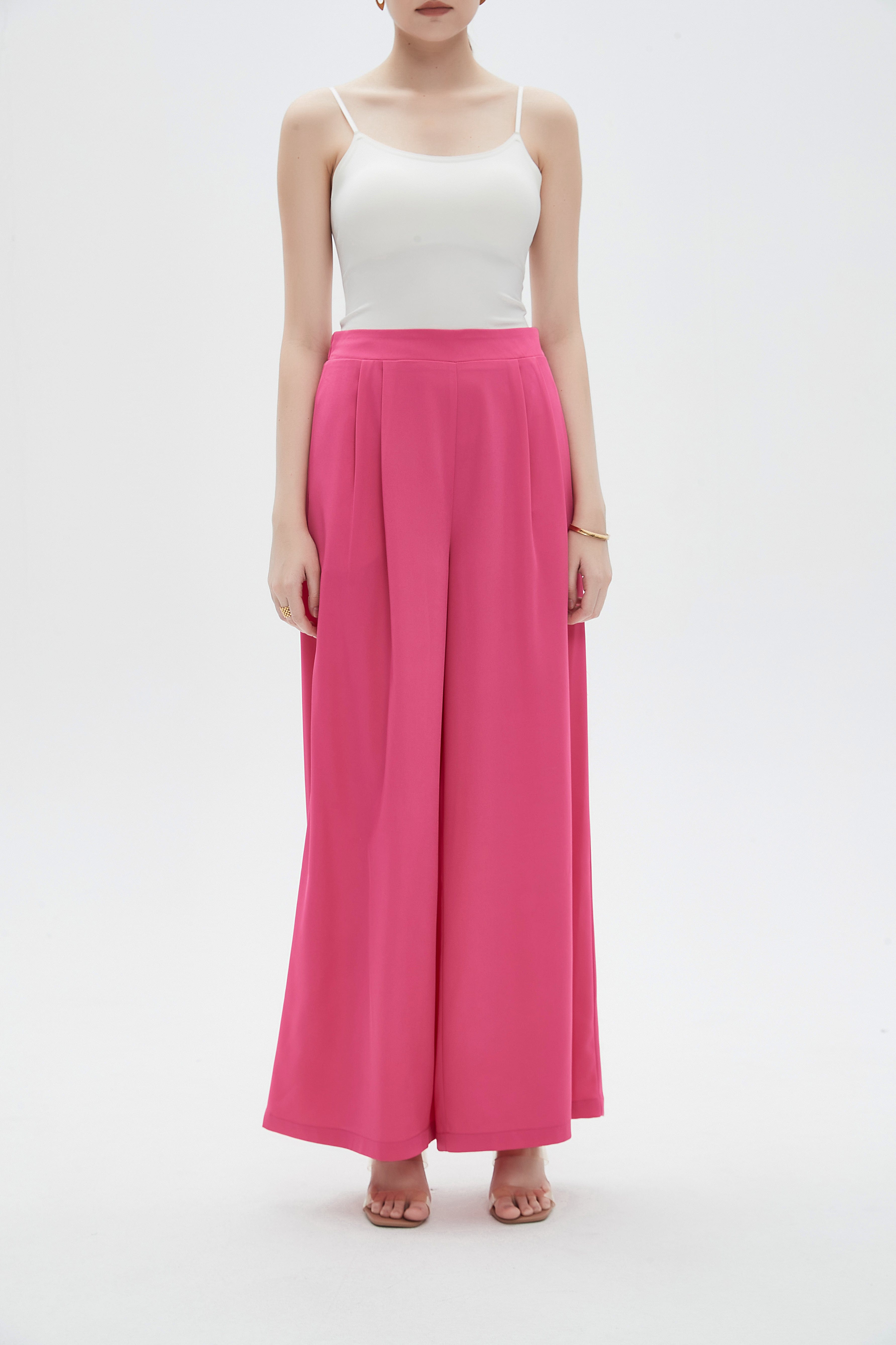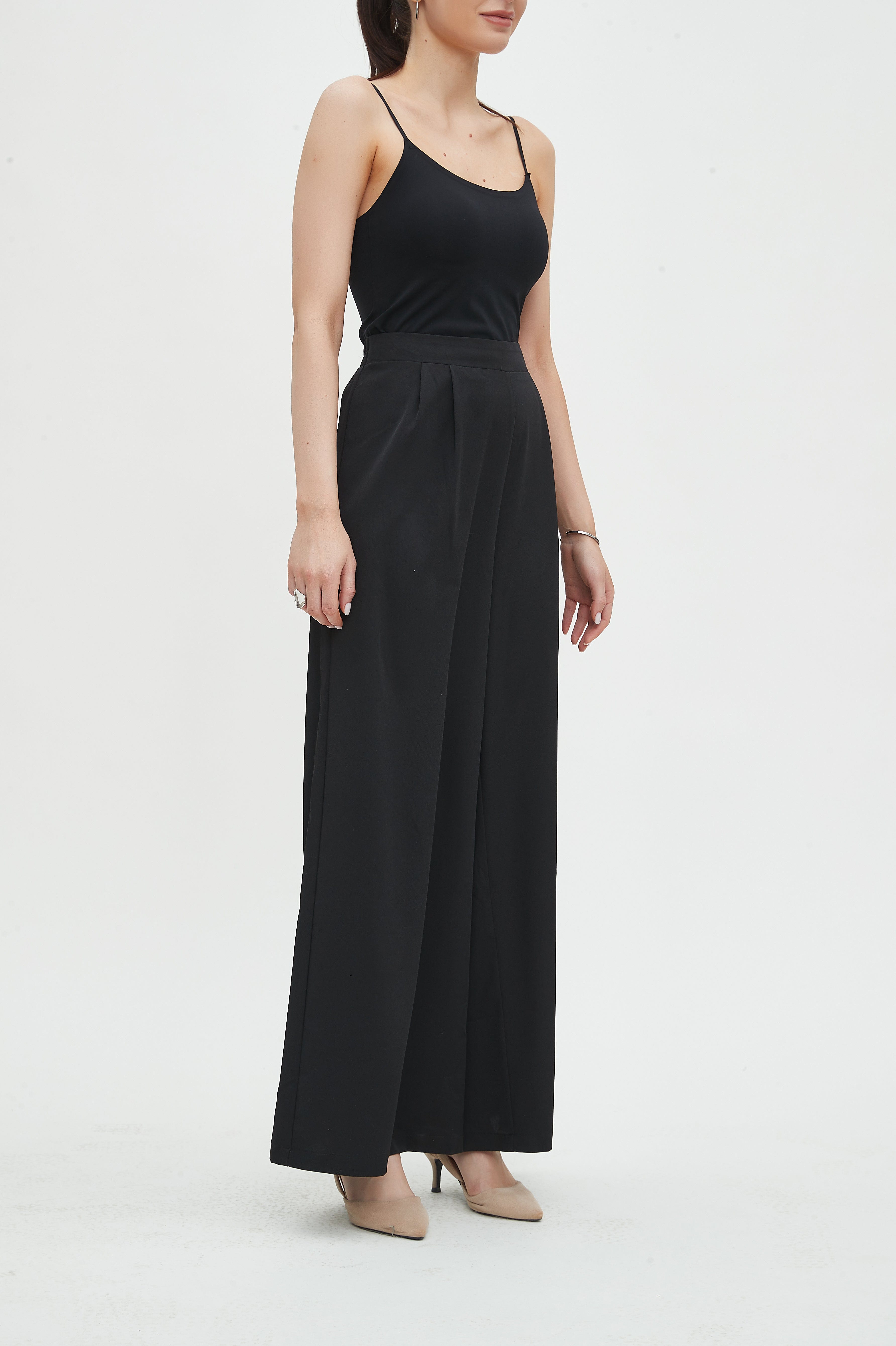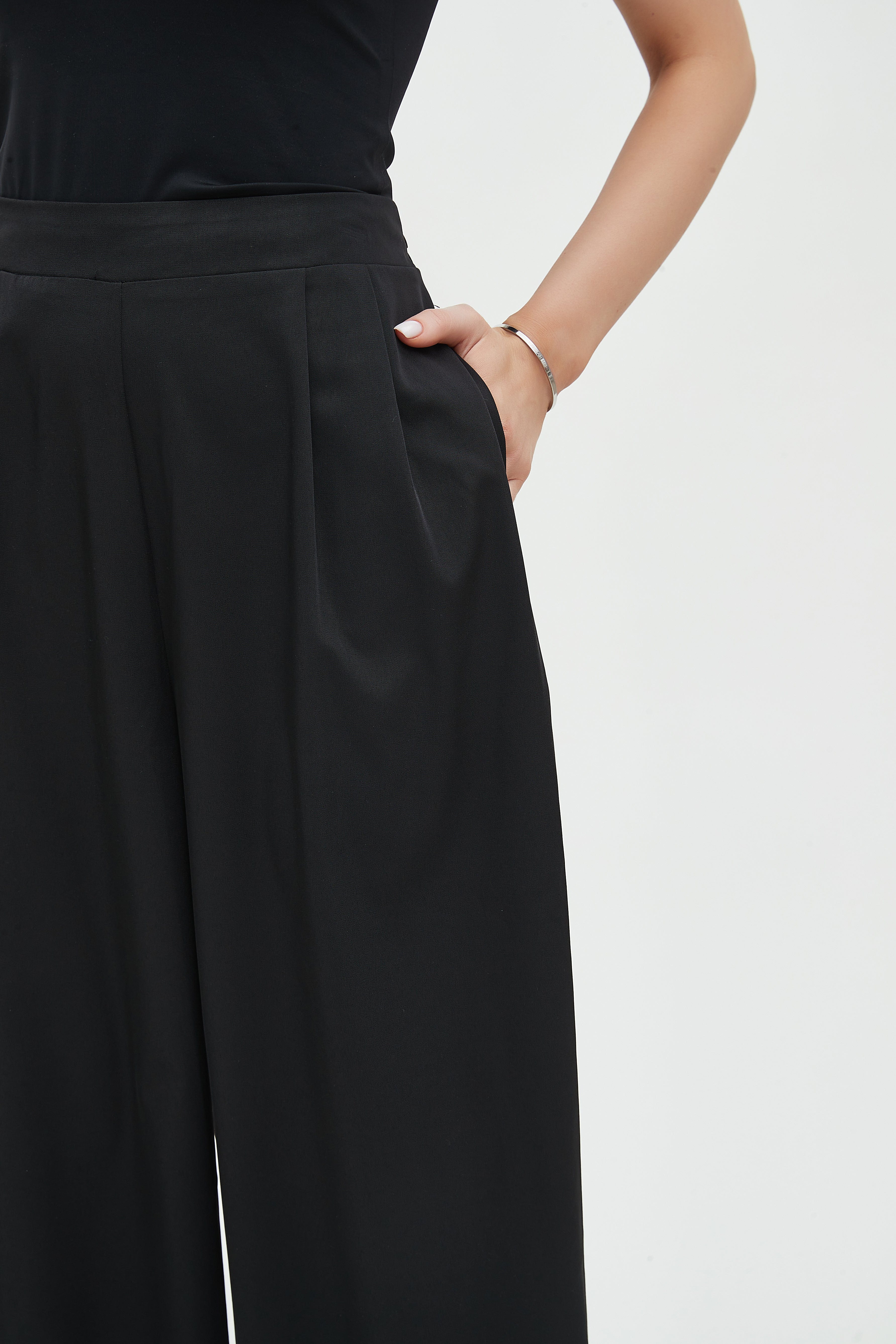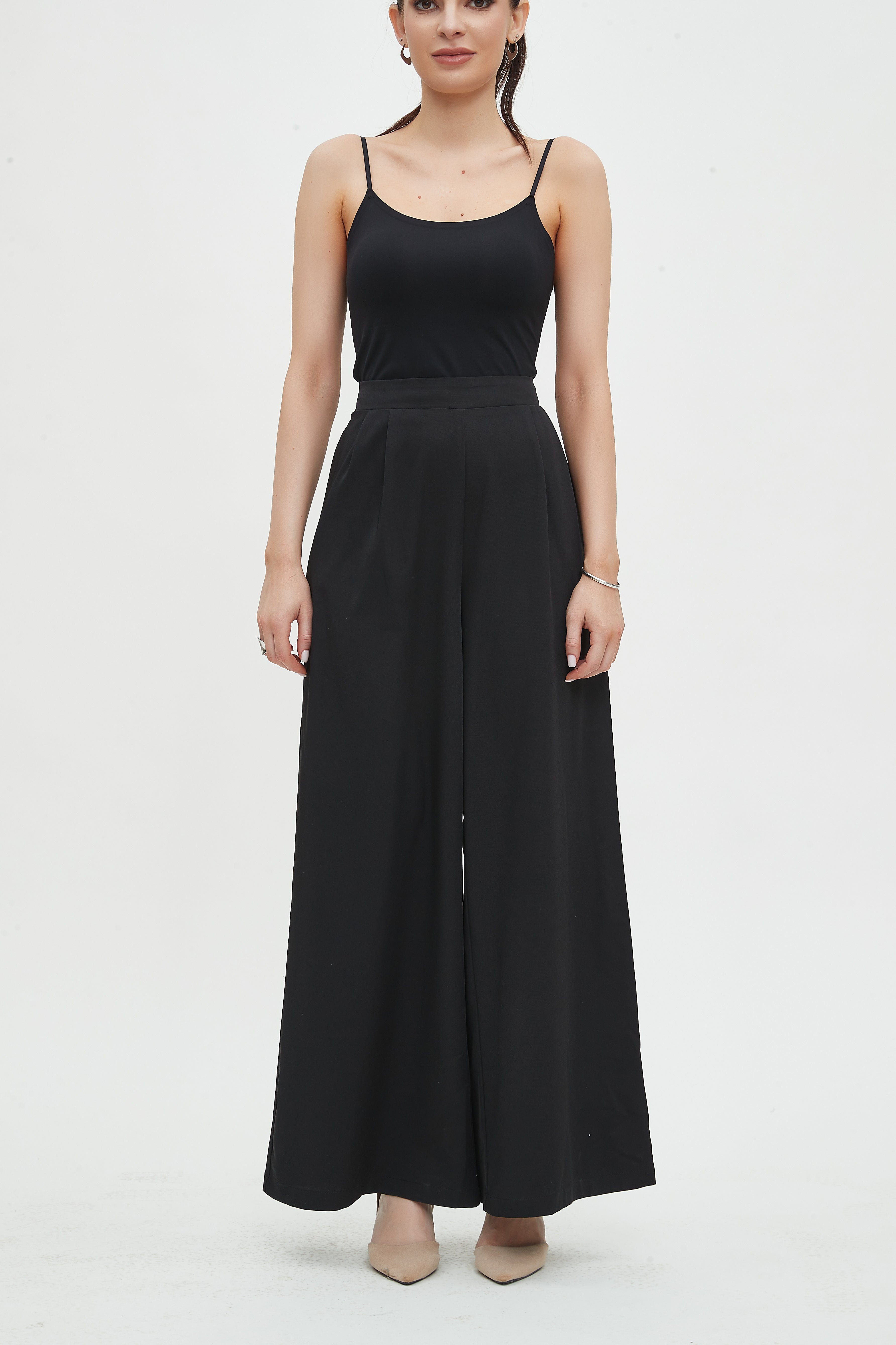 بنطلون نسائي بخصر مرتفع مطاطي بقصة واسعة مستقيمة