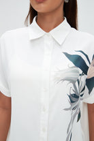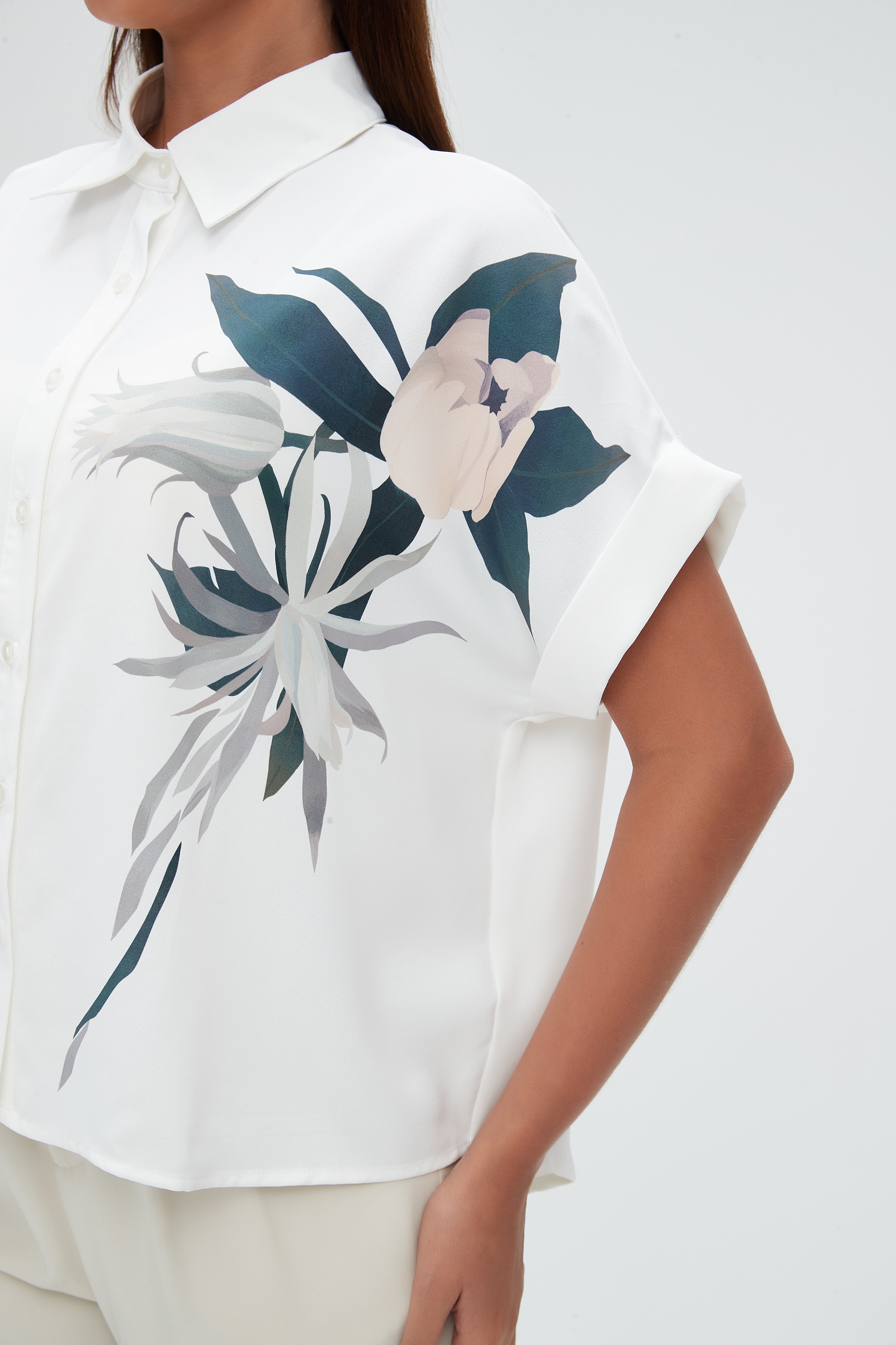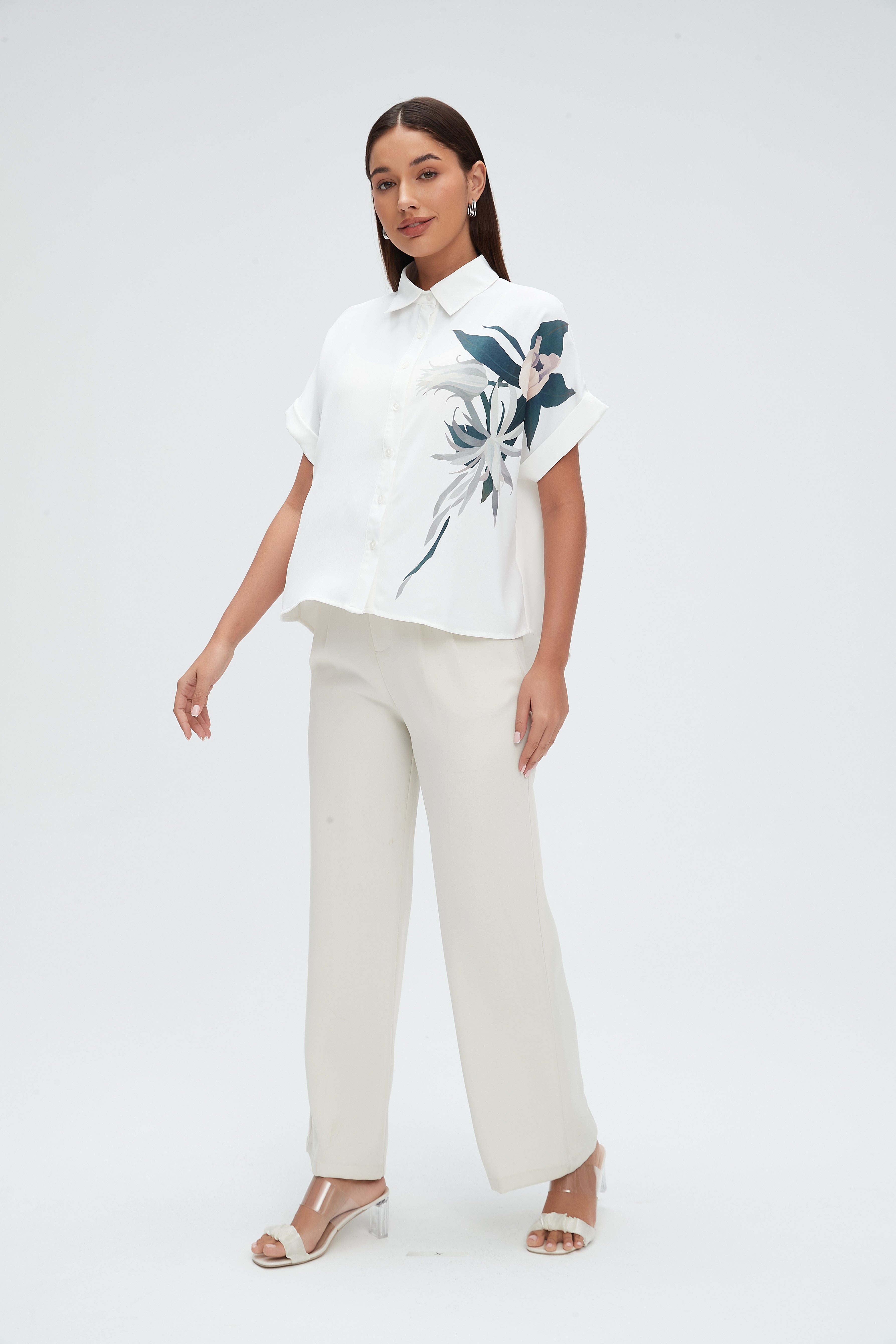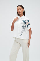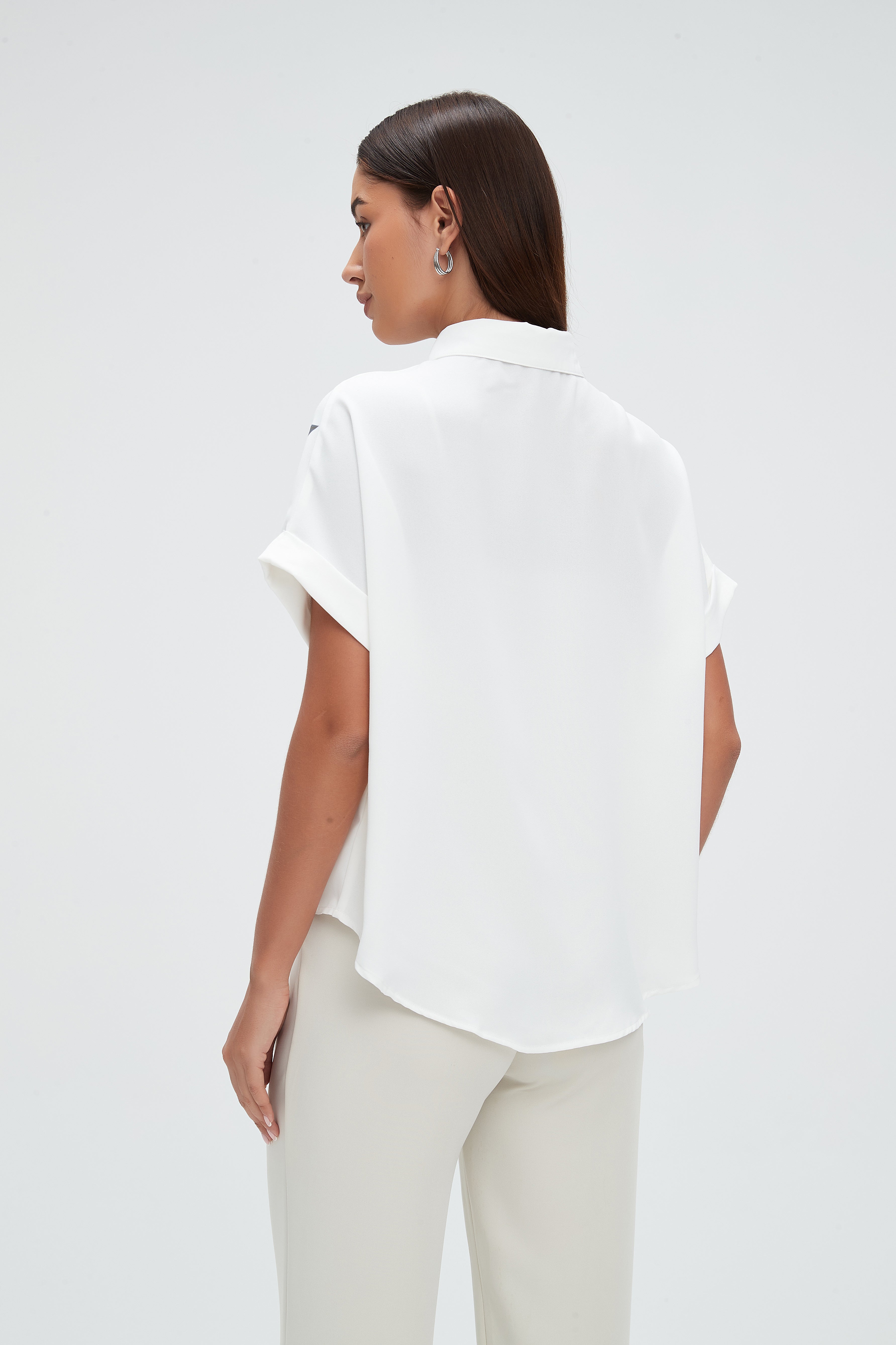 بلوزة بطول الخصر واسعة موردة كم قصير