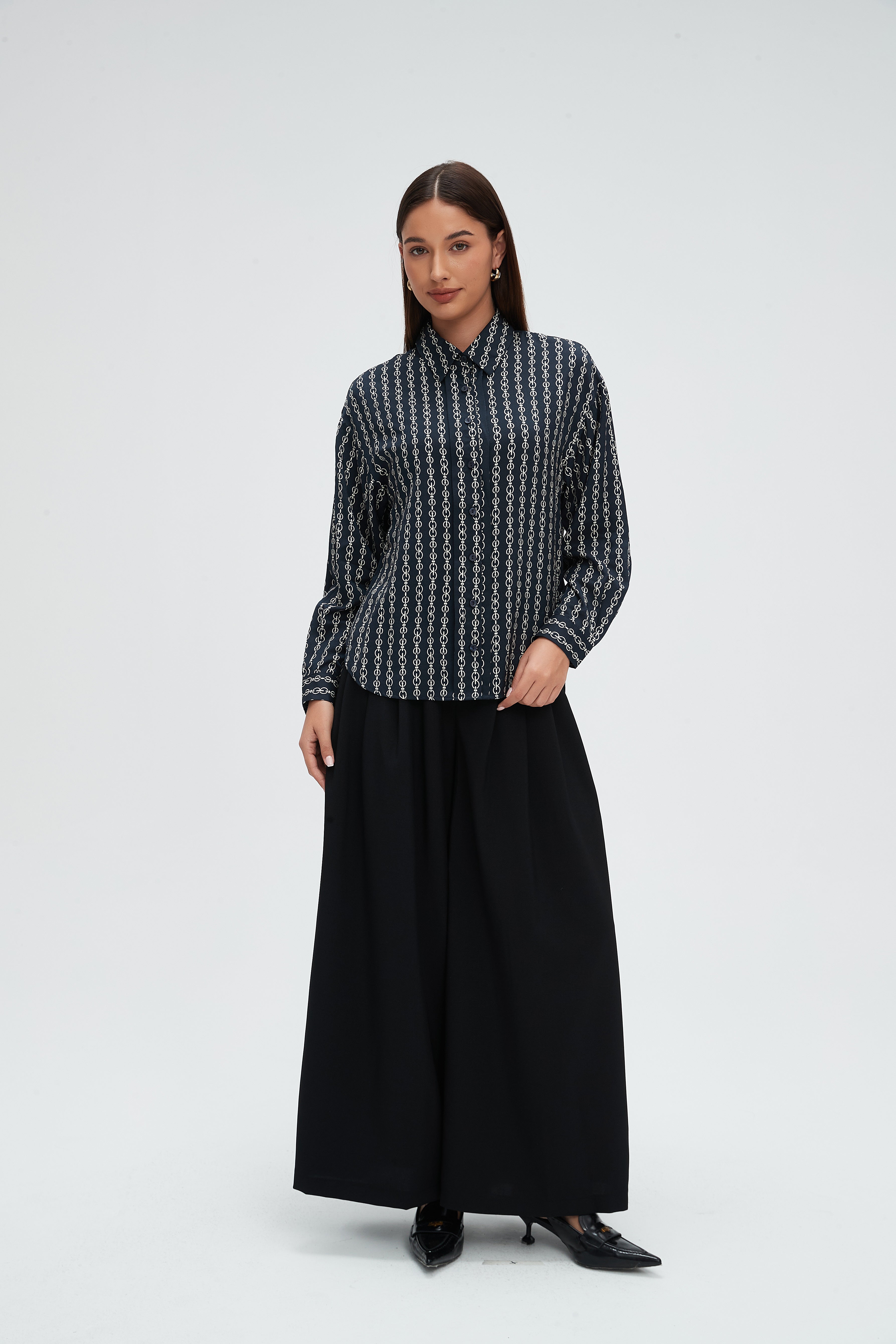 تتميز بلوزة كم طويل مخططة بياقة قميص من علامة ميكا بأسلوب عصري يجمع بين الأناقة والراحة. تأتي هذه البلوزة بلون أزرق غامق جذاب، مما يجعلها قطعة مثالية للتنسيق مع مختلف الإطلالات. تصميمها بسيط وأنيق، مما يمنحك مظهراً متميزاً سواء في العمل أو في اللقاءات الاجتماعية. مصنوع من خامات عالية الجودة، توفر لك الراحة طوال اليوم. لا تفوتي فرصة إضافة هذه البلوزة الرائعة إلى خزانة ملابسك. اطلبها الآن من فاشن السعودية واستمتعي بإطلالة فريدة! رقم المنتج: ms8077825q308
