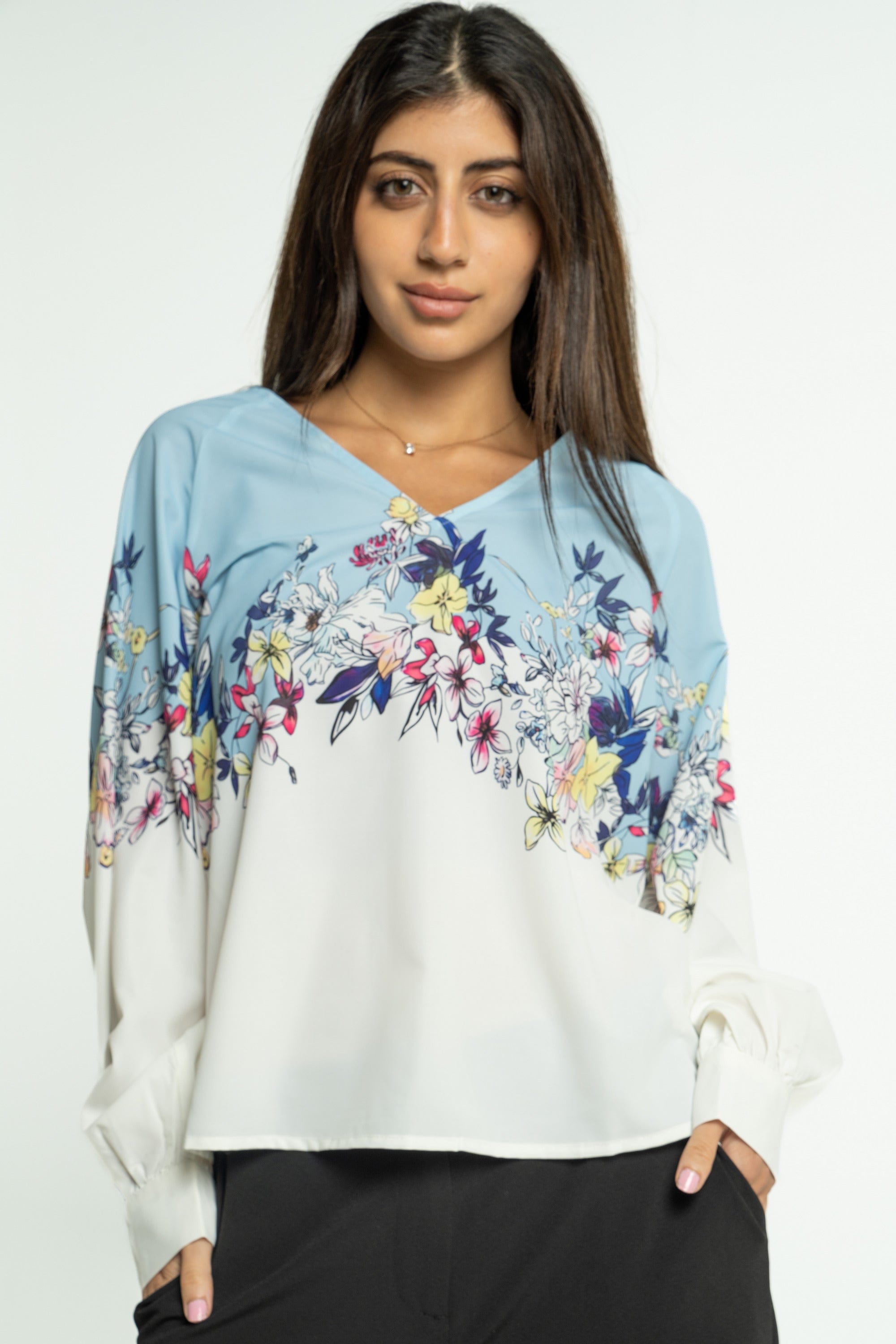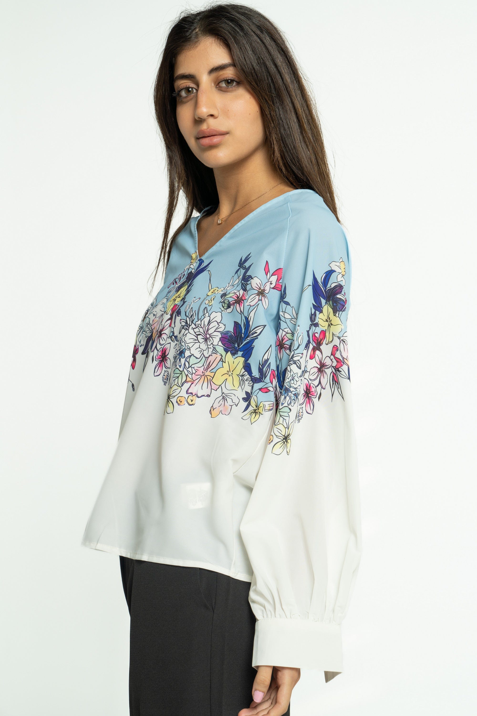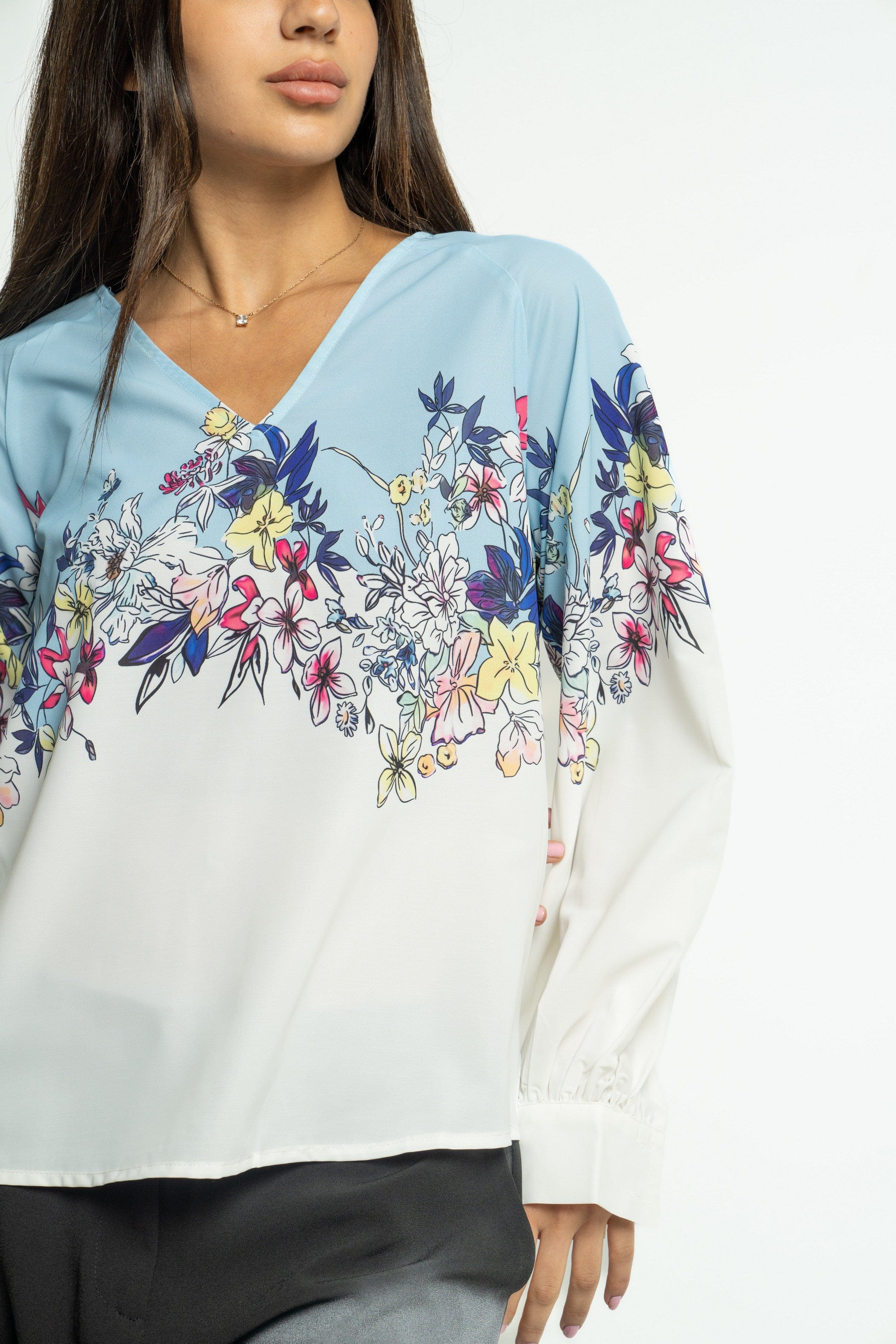 بلوزة موردة كم طويل