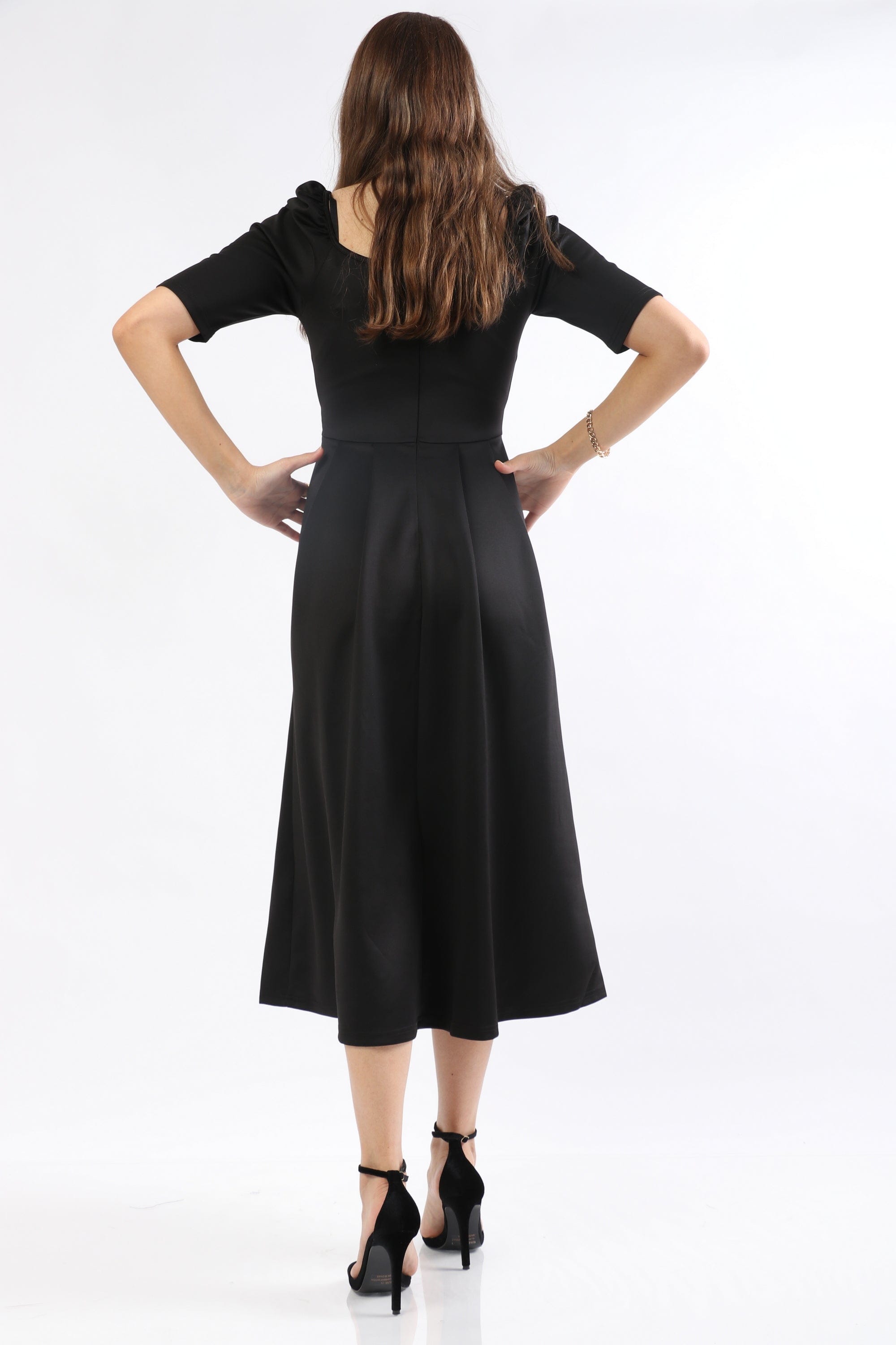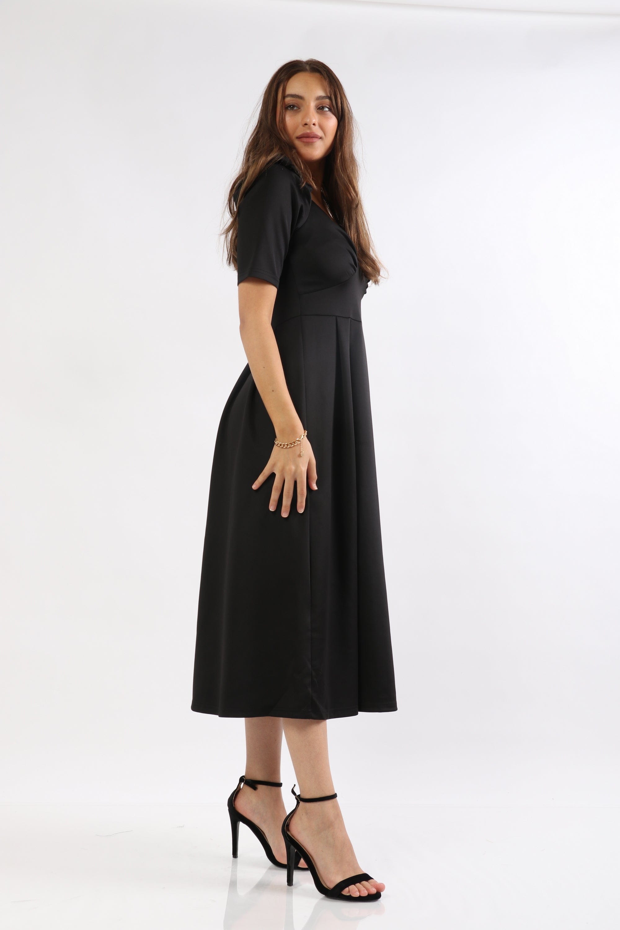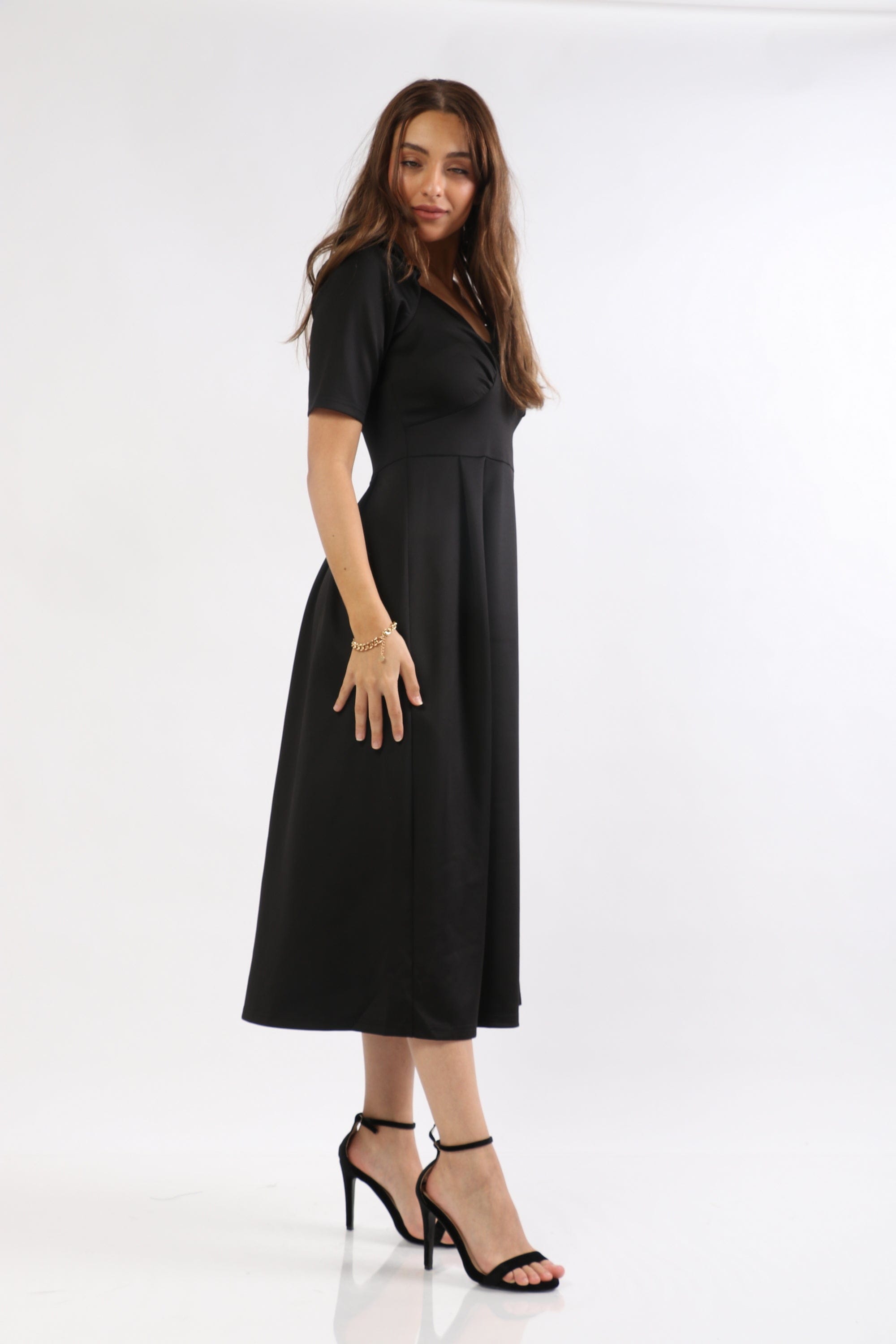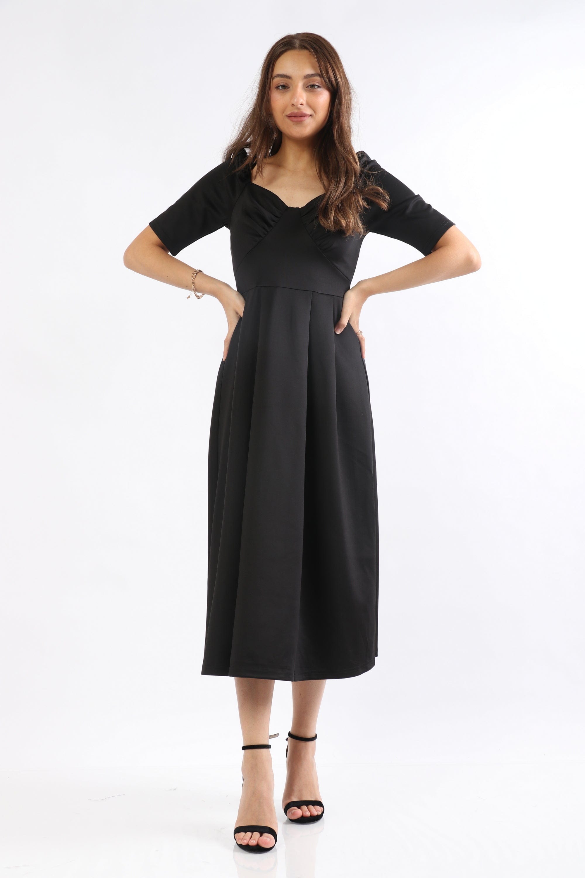 هل تبحثين عن فستان أسود يلبس في كل مكان ويشعر بالراحة؟ هذا الفستان الميدي بقصة A مناسب لذلك بالضبط. الخامة مكونة من 92% بوليستر و8% إيلاستين مع بطانة 100% بوليستر، لذلك ستلاحظين مرونة مريحة ومظهر أنيق يتحرك معك. ياقة V وأكمام قصيرة تعطيه طابعًا عصريًا ومناسبًا للخروجات الكاجوال أو لقضاء يوم عمل هادئ. التصميم السادة والطول الميدي يجعلان التنسيق سهلاً مع أحذية مختلفة. الفستان بطول ميدي وقصة عادية بسمك متوسط، لذا يمكن ارتداؤه عبر كل المواسم مع قطع طبقية بسيطة. ستحبين كيف يبرز الشكل دون تعقيد، مثالي للخروجات الرومانسية ومناسب لخزانة ملابسك اليومية. اعثري على مقاسك في فاشن السعودية وأضيفي هذه القطعة المتنوعة إلى خزانة ملابسك اليوم.