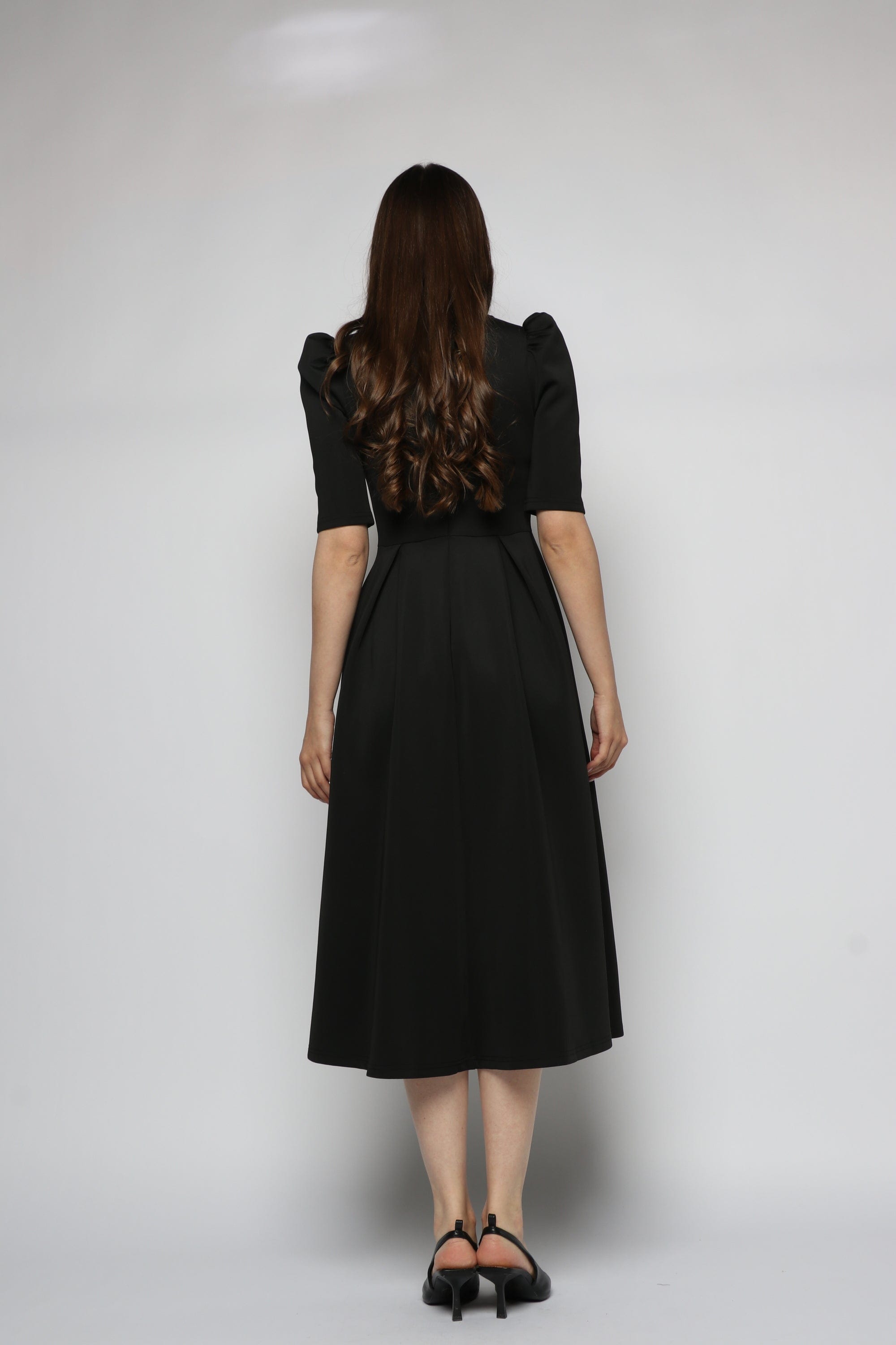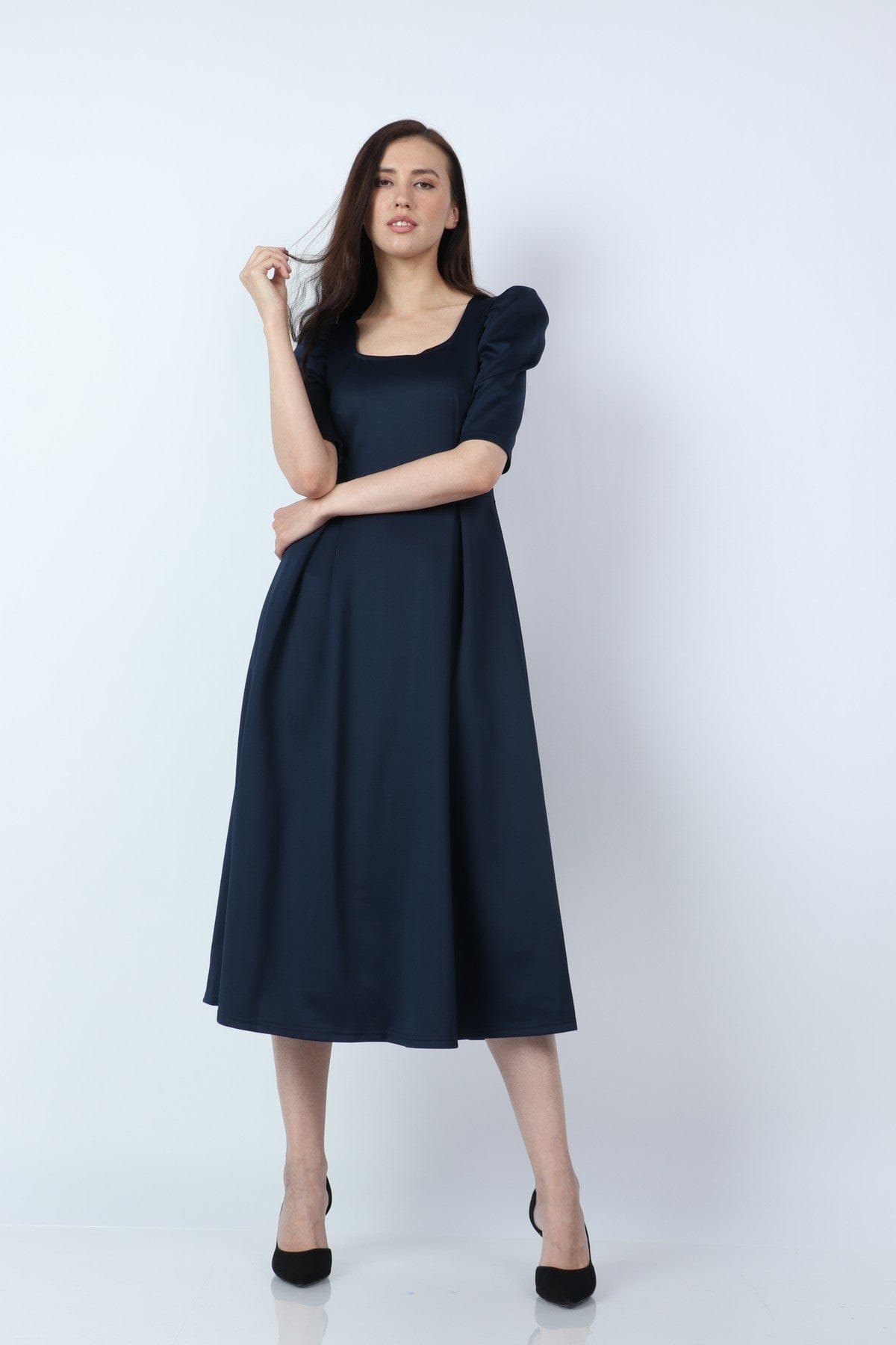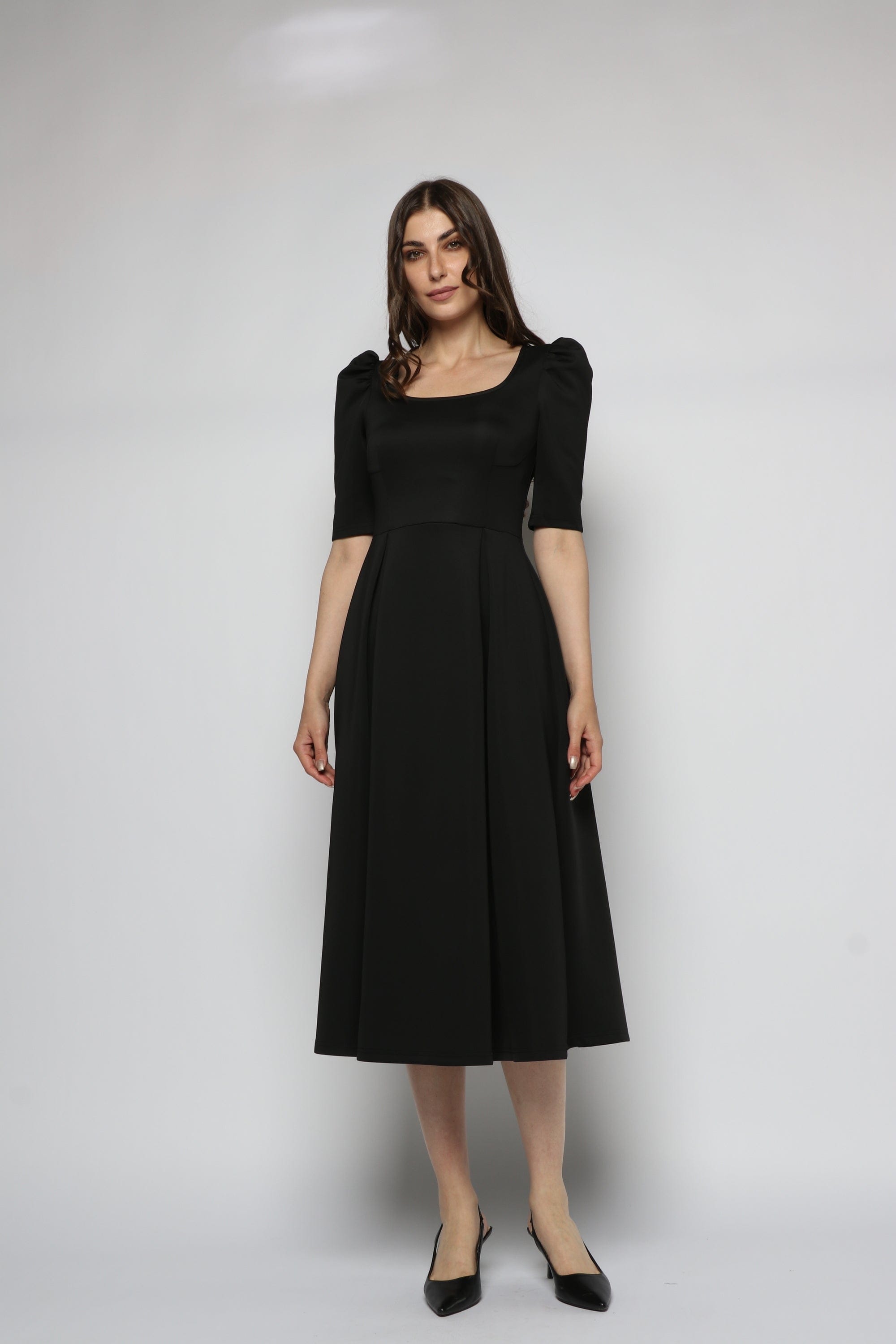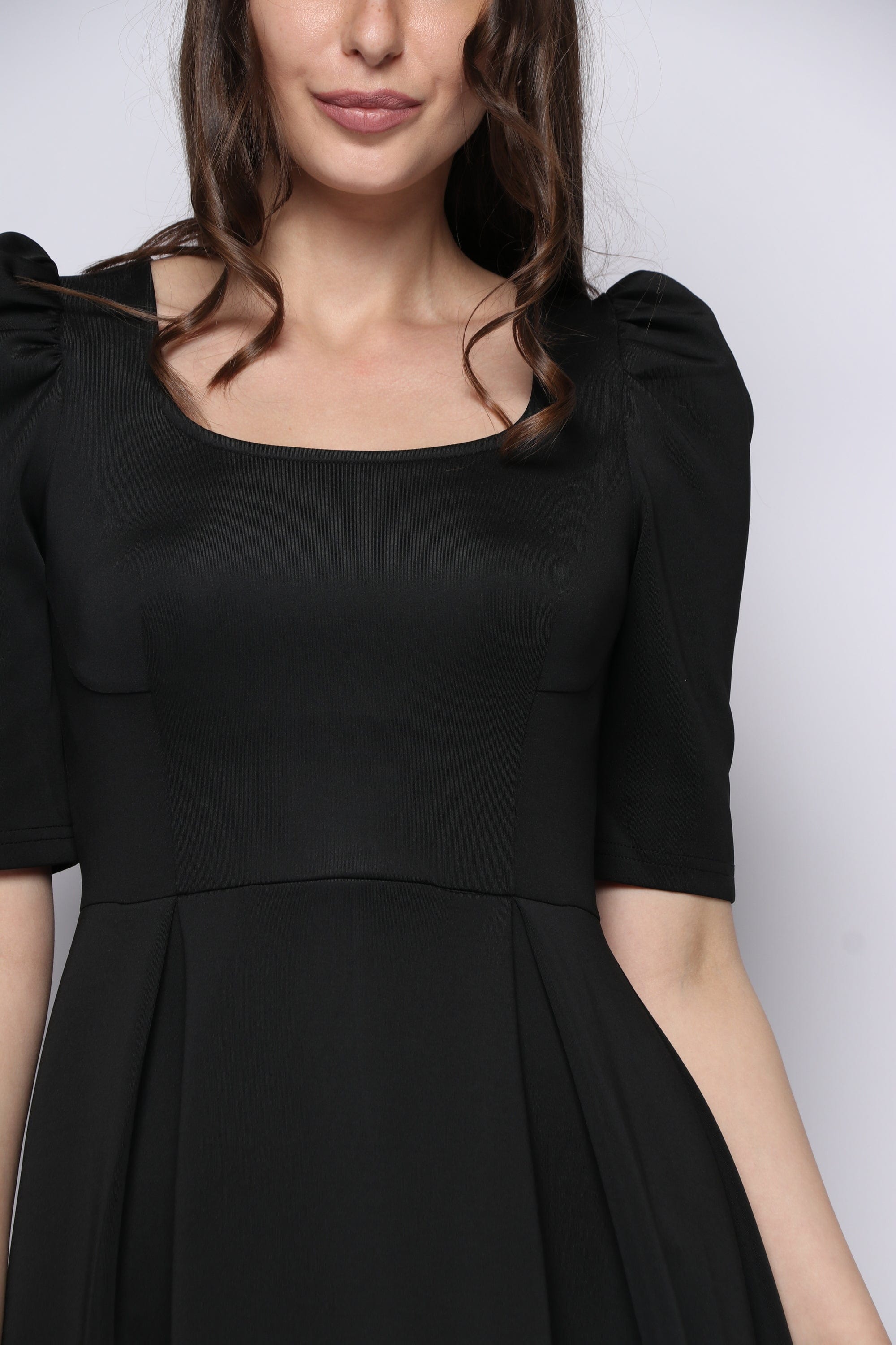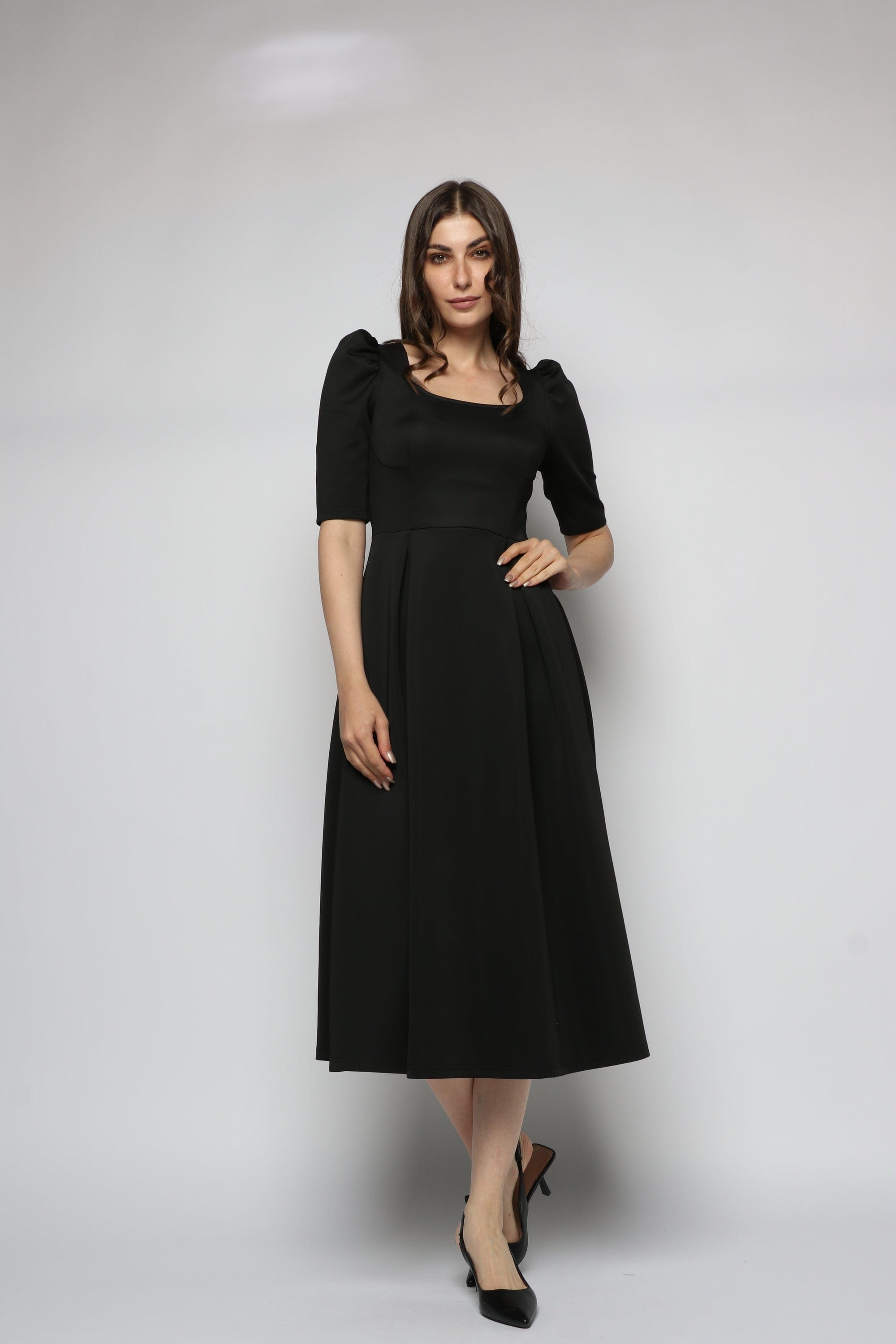 - ياقة مربعة وأكمام قصيرة لإطلالة عصرية كاجوال