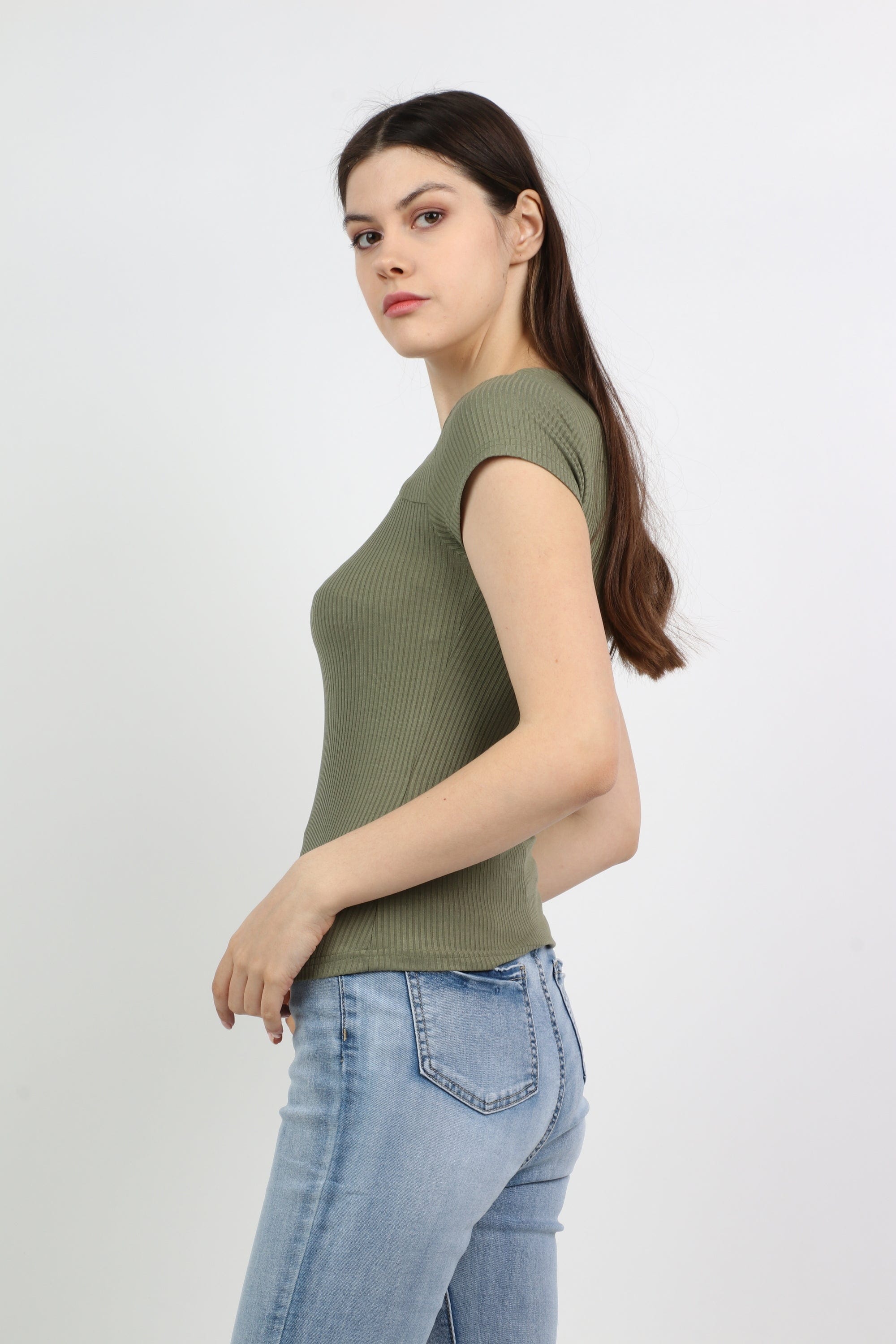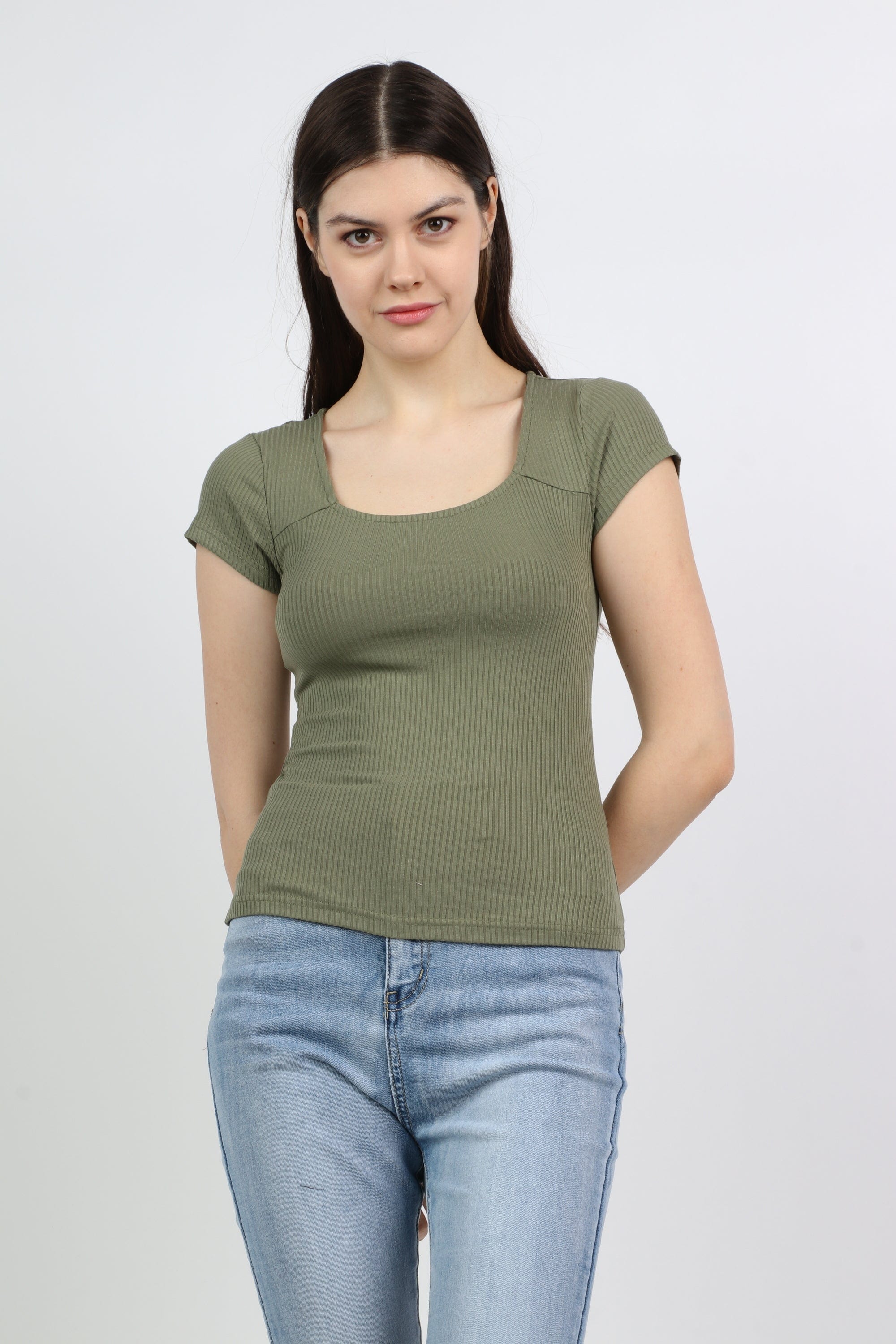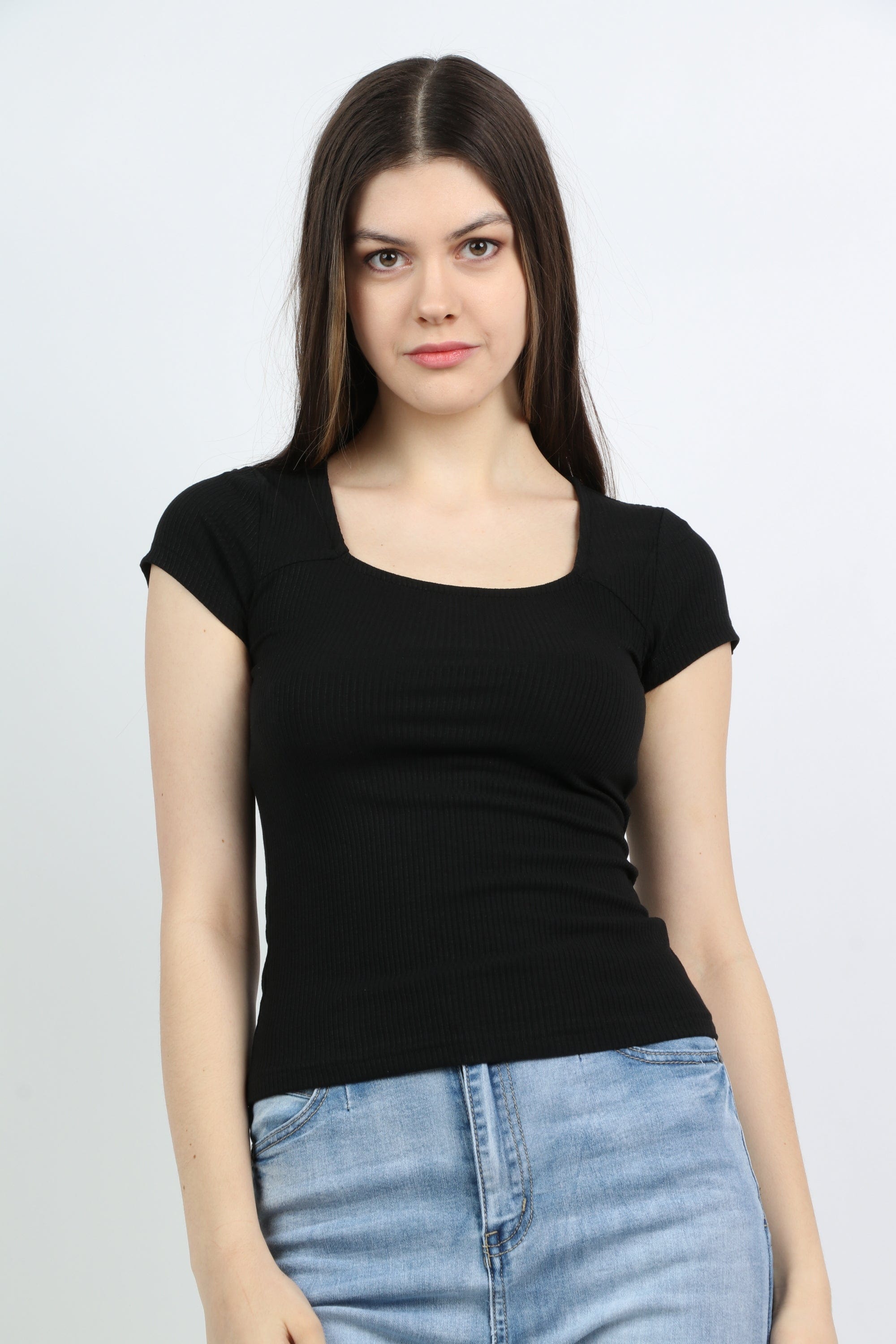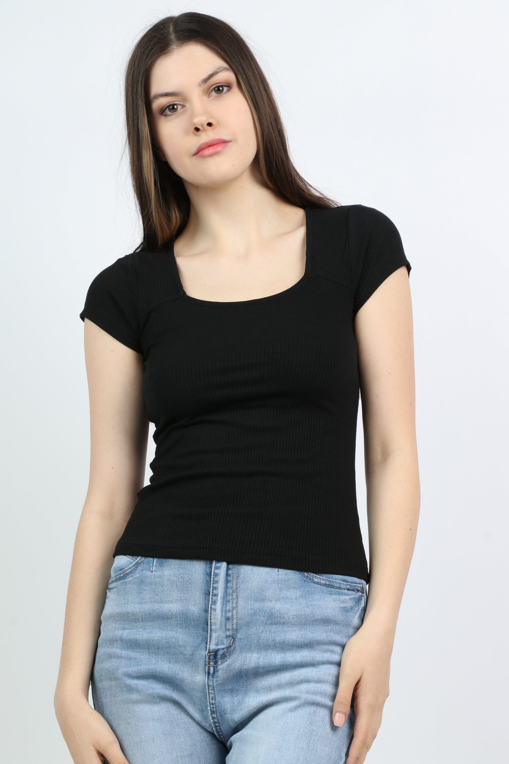 بلوزة بياقة مربعة أكمام قصيرة نسائي