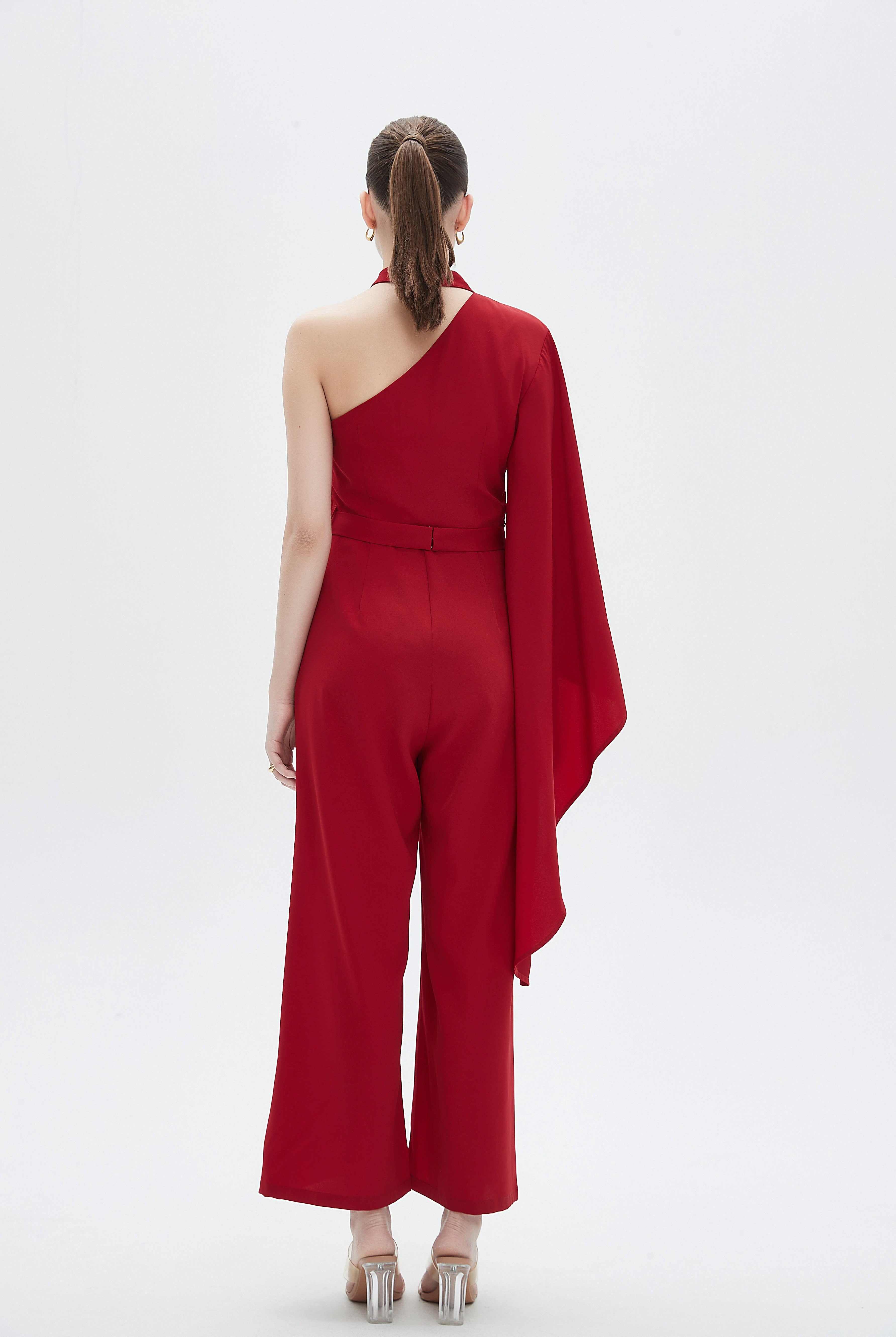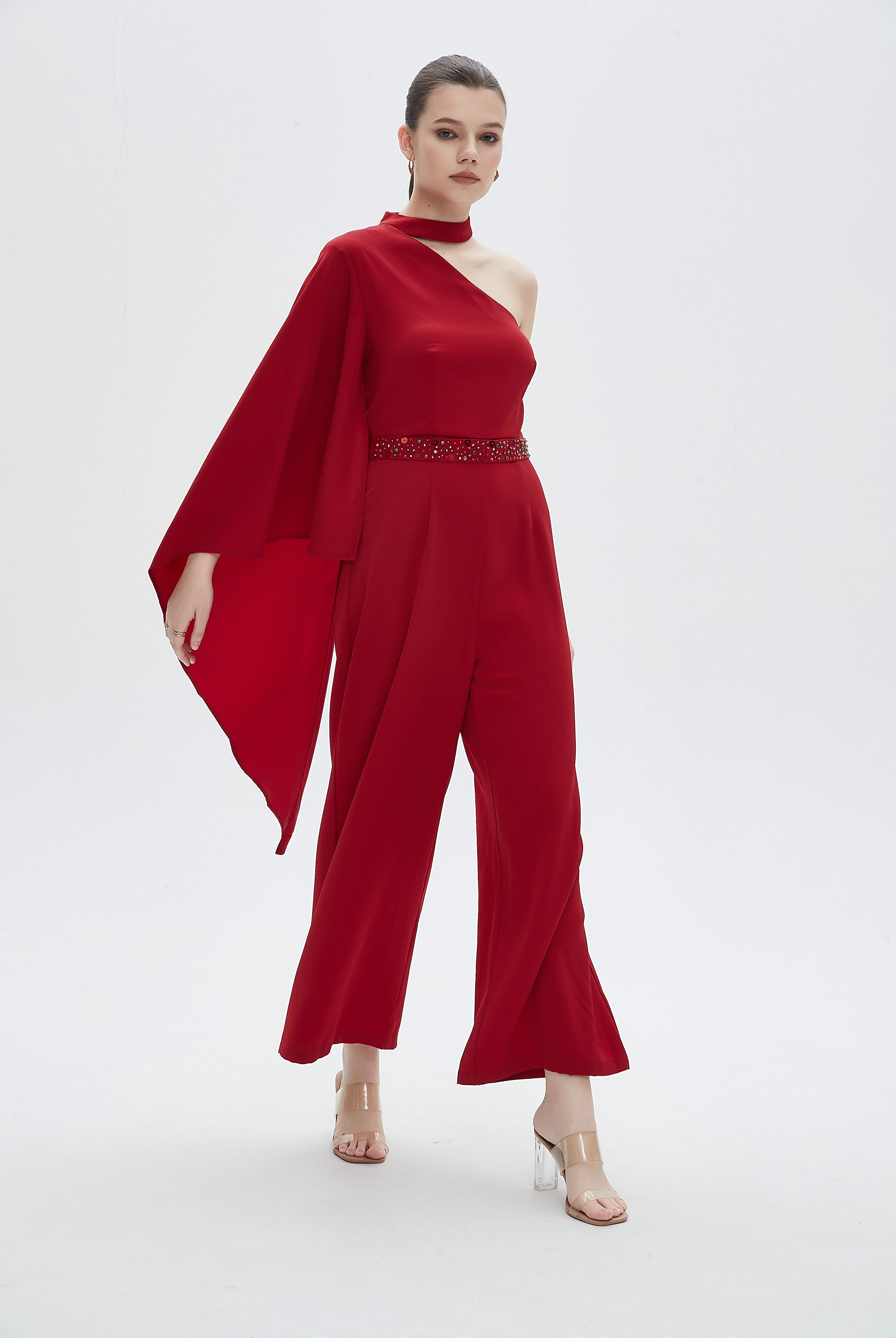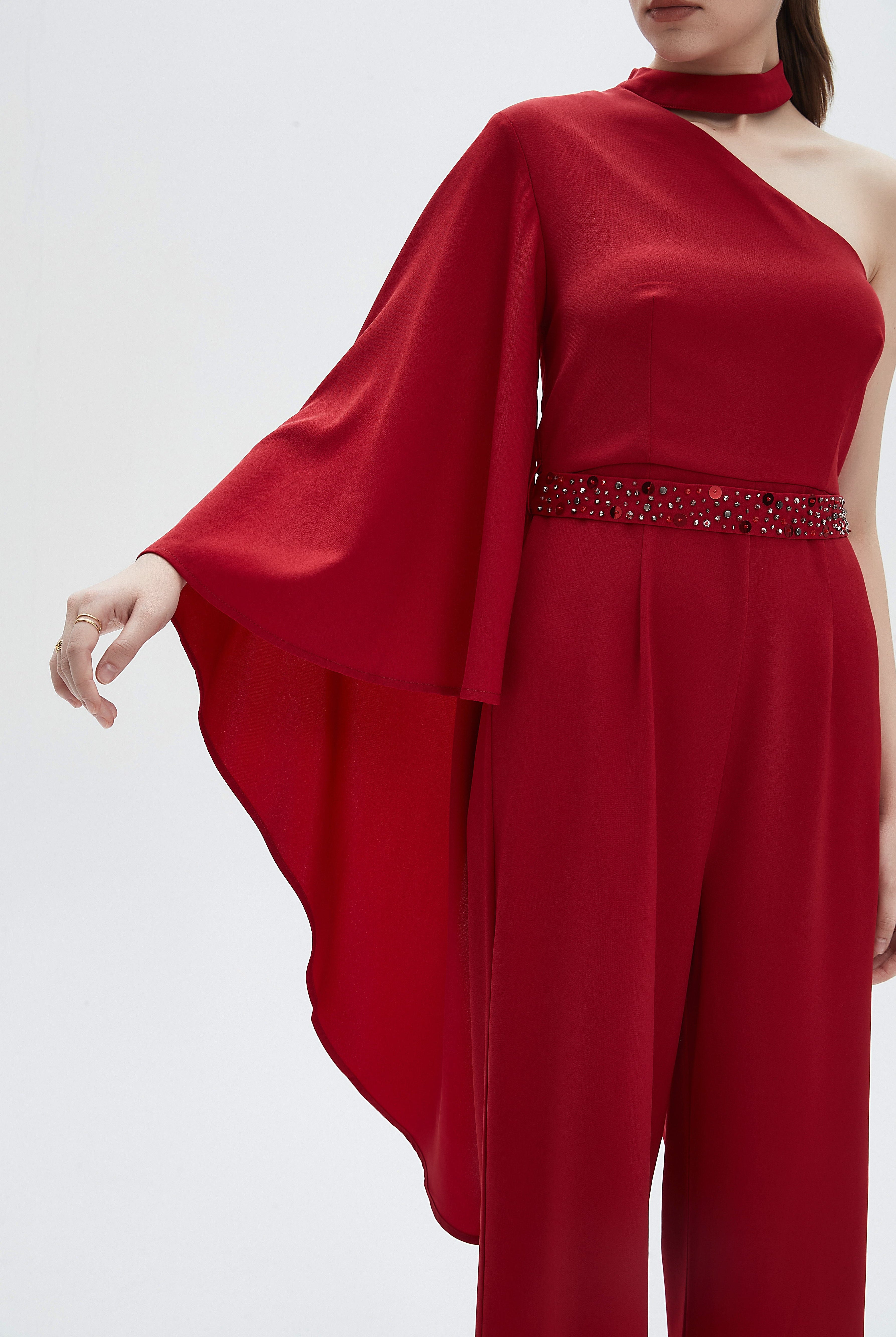 جمبسوت نسائية طويلة بكم واحد بتفاصيل معدنية على الخصر