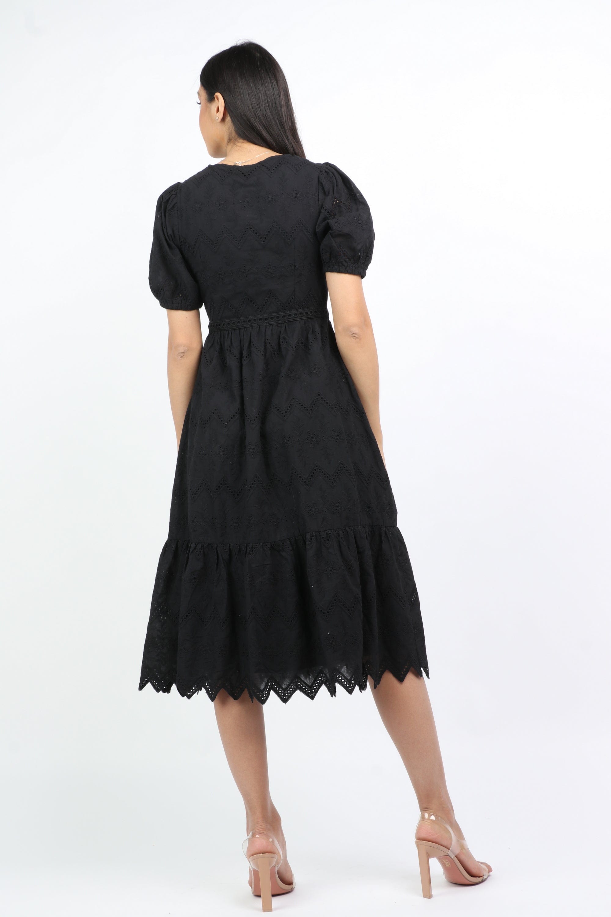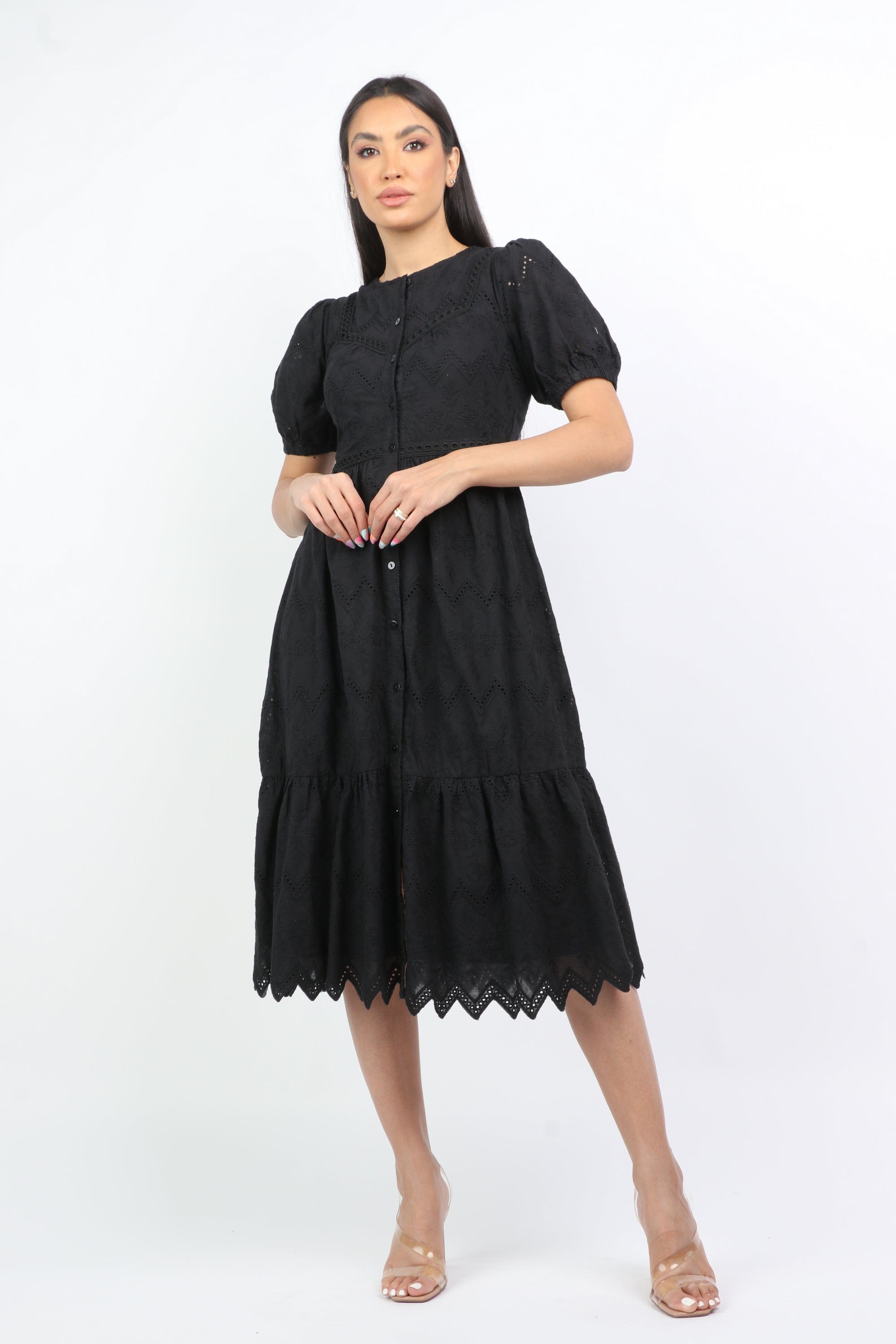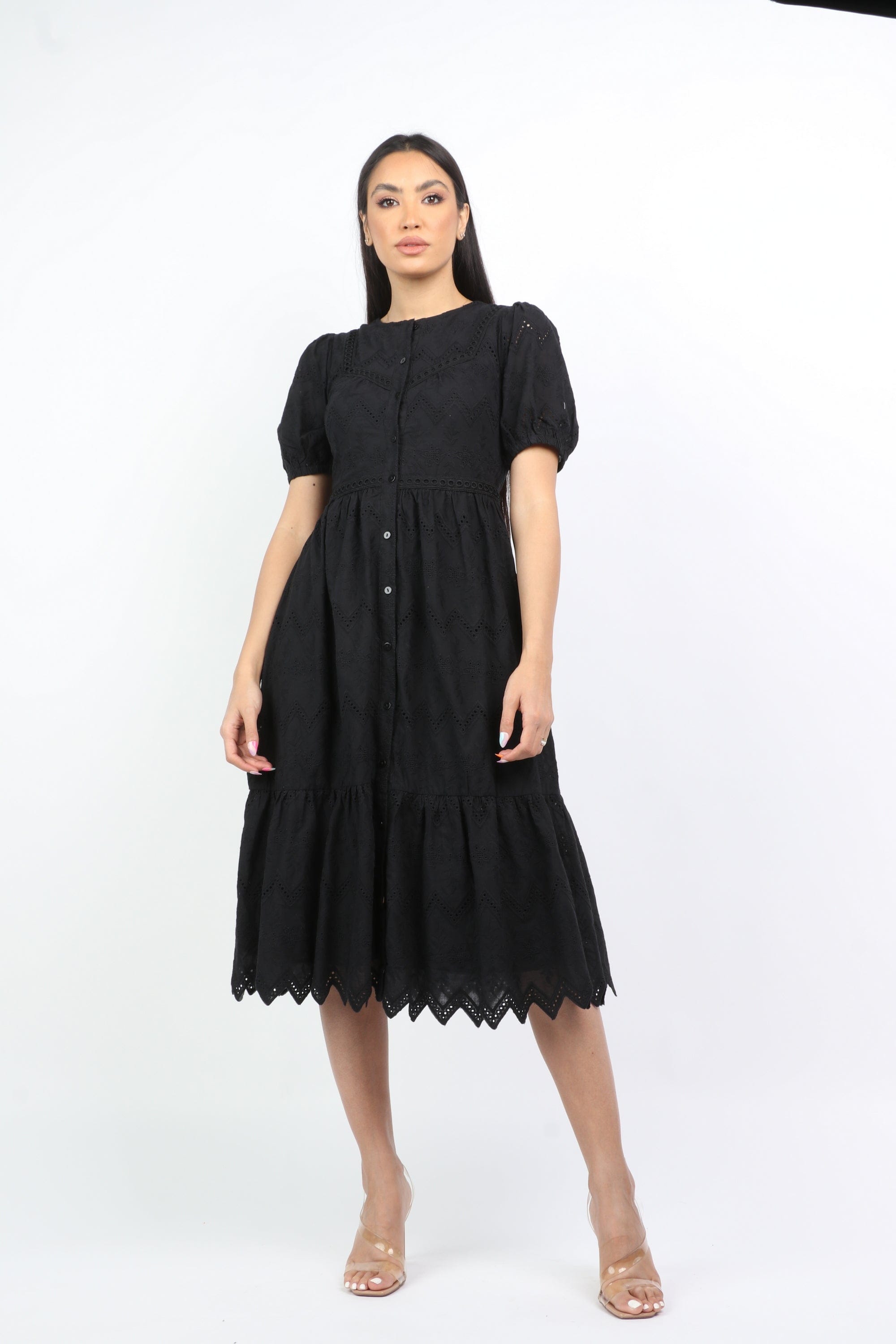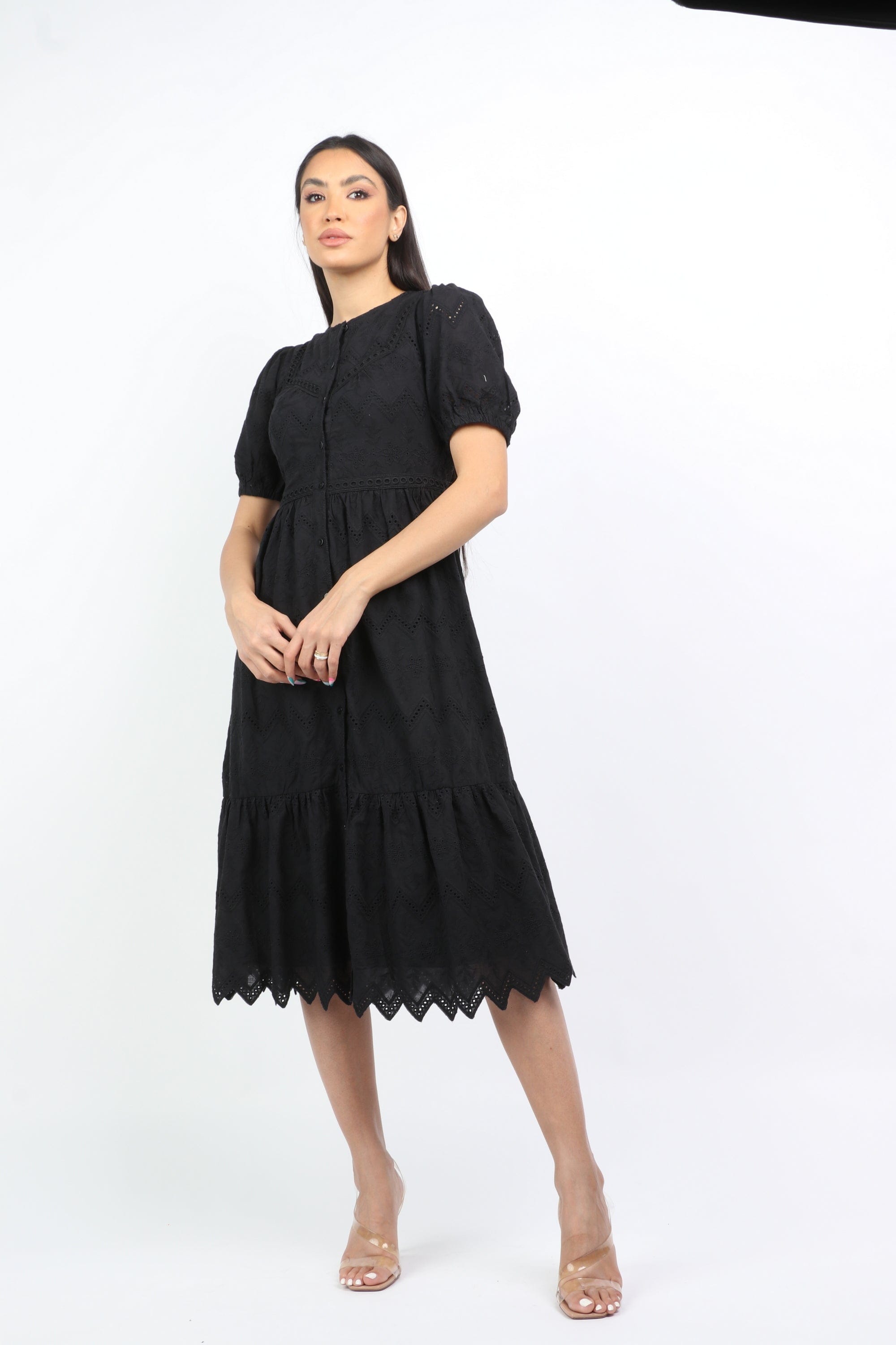 تحتاجين إلى فستان أبيض يمكن أن يدخل خزانة ملابسك لكل يوم؟ هذا الفستان الميدي بقصة A يمنحك المظهر الأنثوي دون تكلف. الخامة 100% قطن بسمك متوسط تجعله مريحاً ومناسباً لكل المواسم، والبطانة الداخلية من 100% بوليستر تمنح الثبات للشكل بينما يبدو التصميم الخارجي خفيفاً بلا بطانة ظاهرة. ياقة مستديرة بسيطة وأكمام قصيرة منقوشة تضيف لمسة حيوية، وطول الميدي يجعل الإطلالة أنيقة وعملية. يغلق بزر من الأمام ليمنحك سهولة ارتداء، ويأتي بدون جيوب أو حزام للحفاظ على سلاسة الخطوط. مثالي للخروجات الرومانسية والنهارية الكاجوال، وستحبين كيف يتحرك معك أثناء التنقل. اعثري على مقاسك في فاشن السعودية وأضيفي هذه القطعة المتنوعة إلى خزانة ملابسك اليوم.