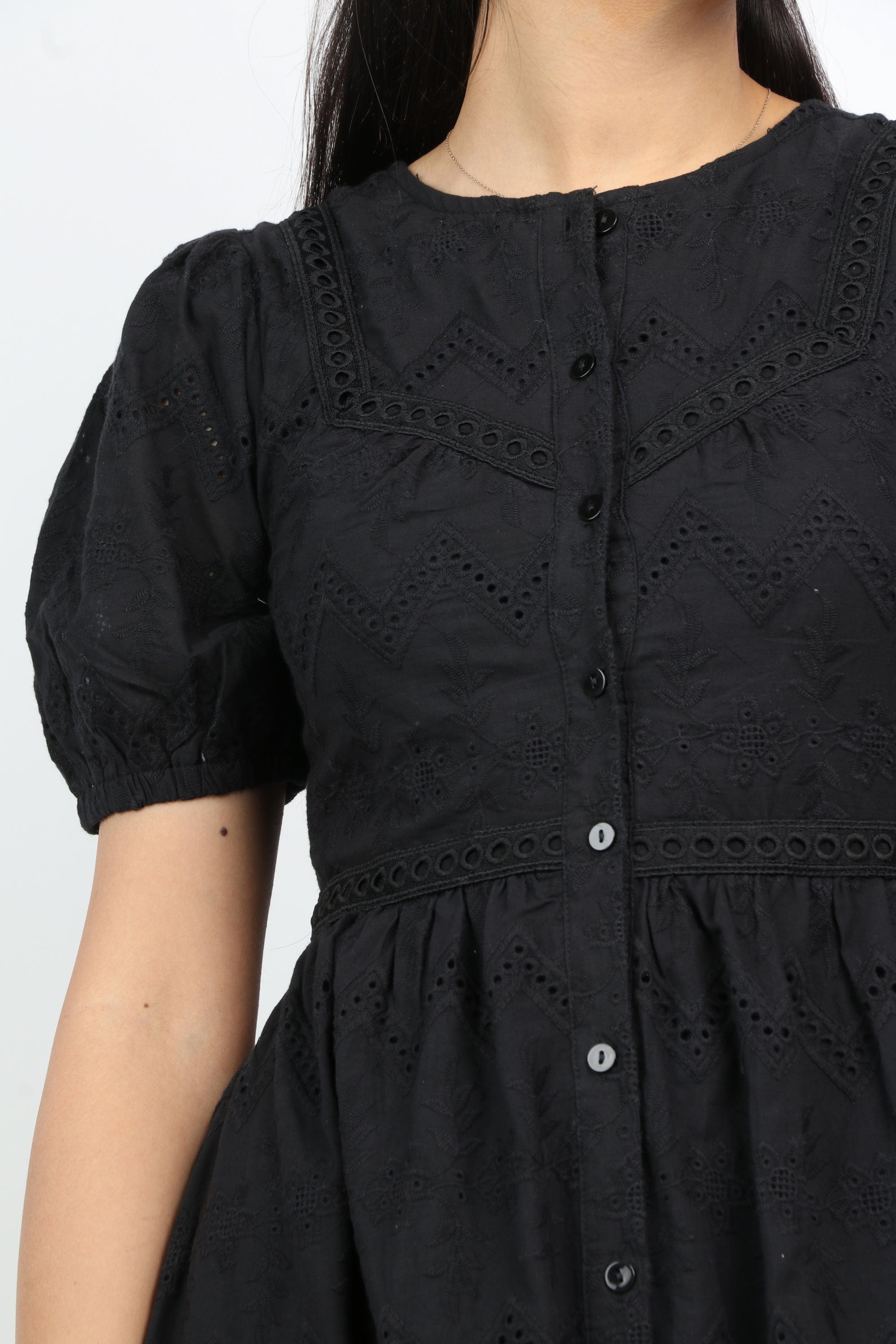 - نقشة أنيقة مع ياقة مستديرة وأكمام قصيرة