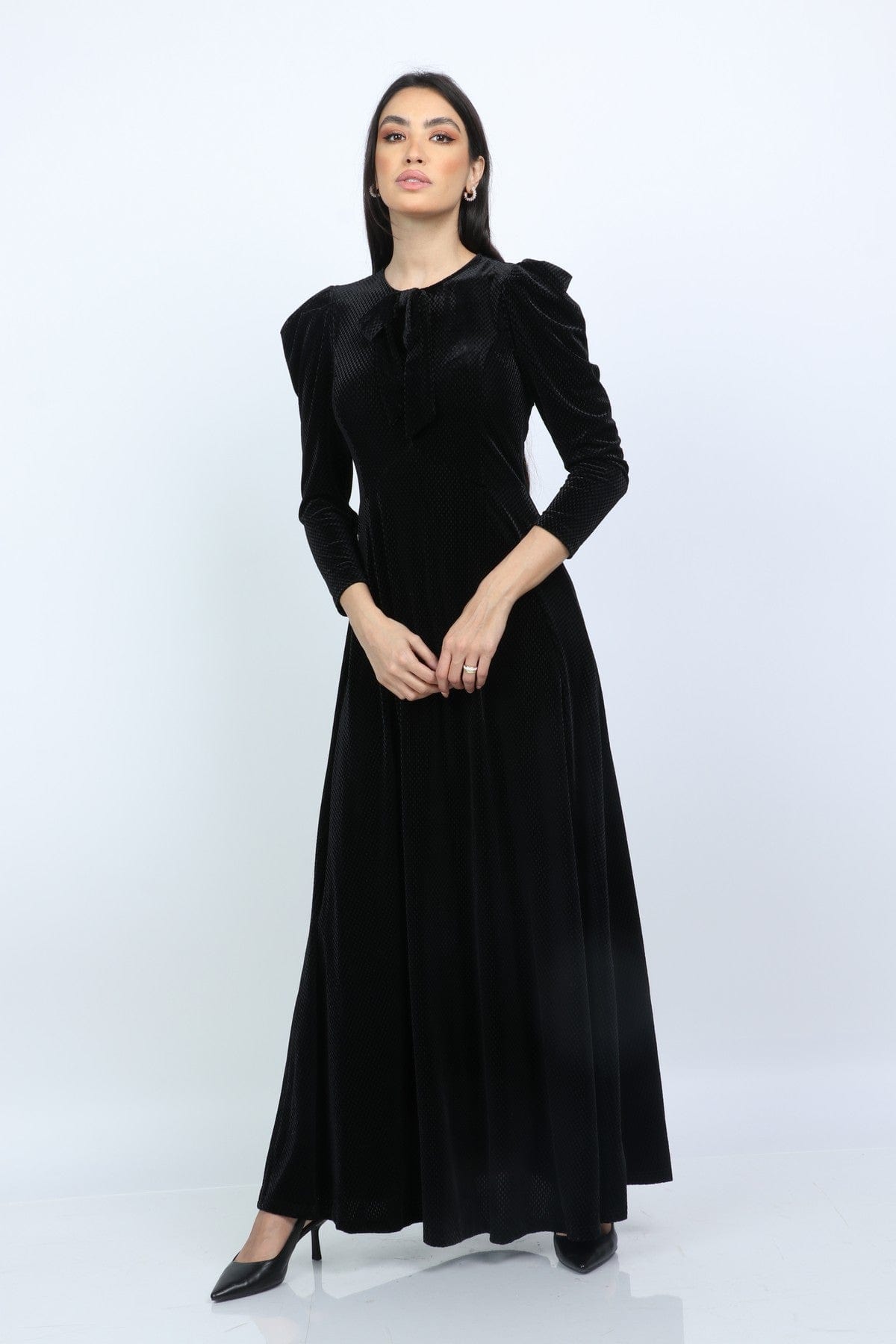 فستان طويل سواريه مجسم واسع من أسفل كم طويل