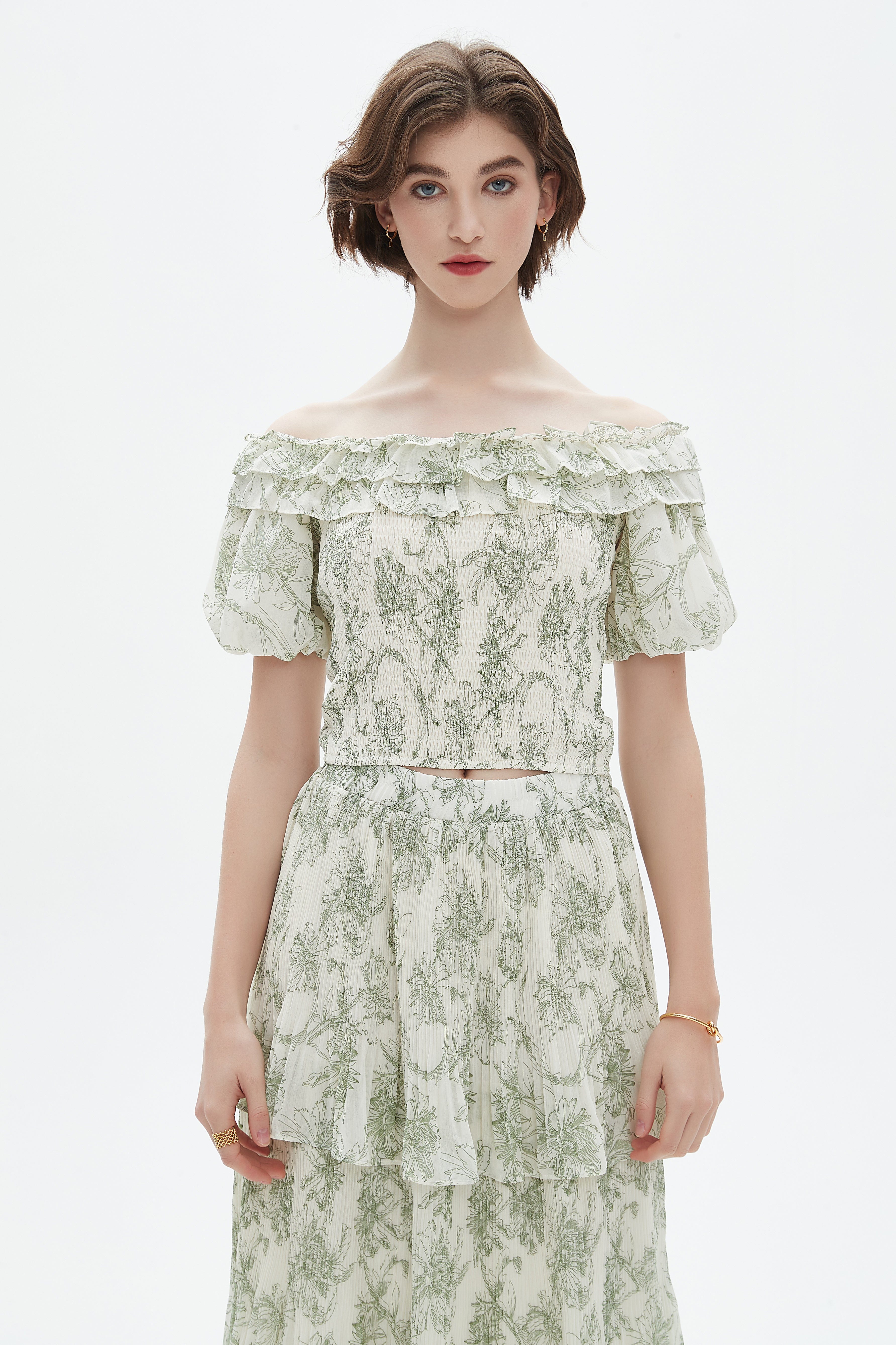 بلوزة نسائية كروب توب بأكمام قصيرة اوف شولدر