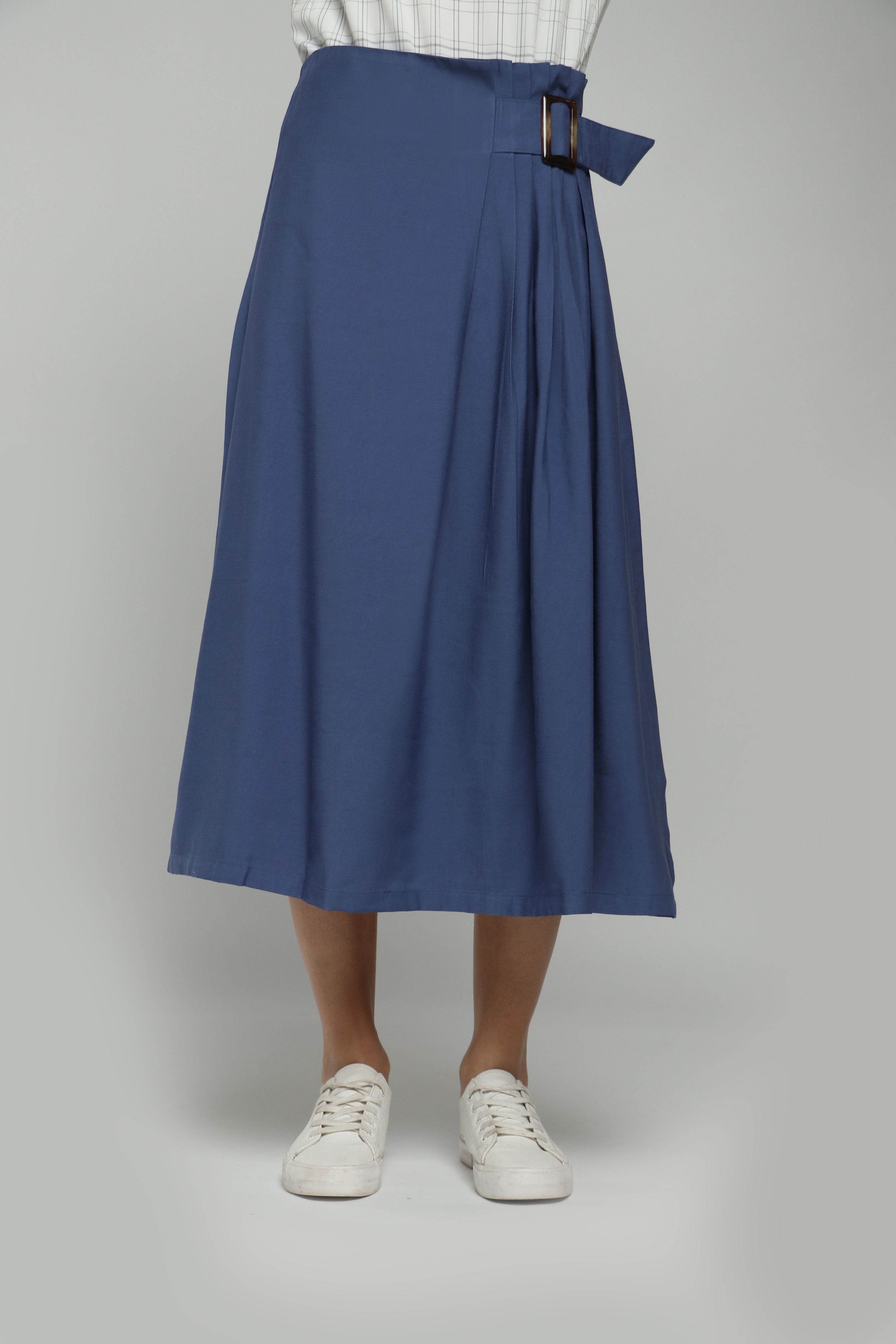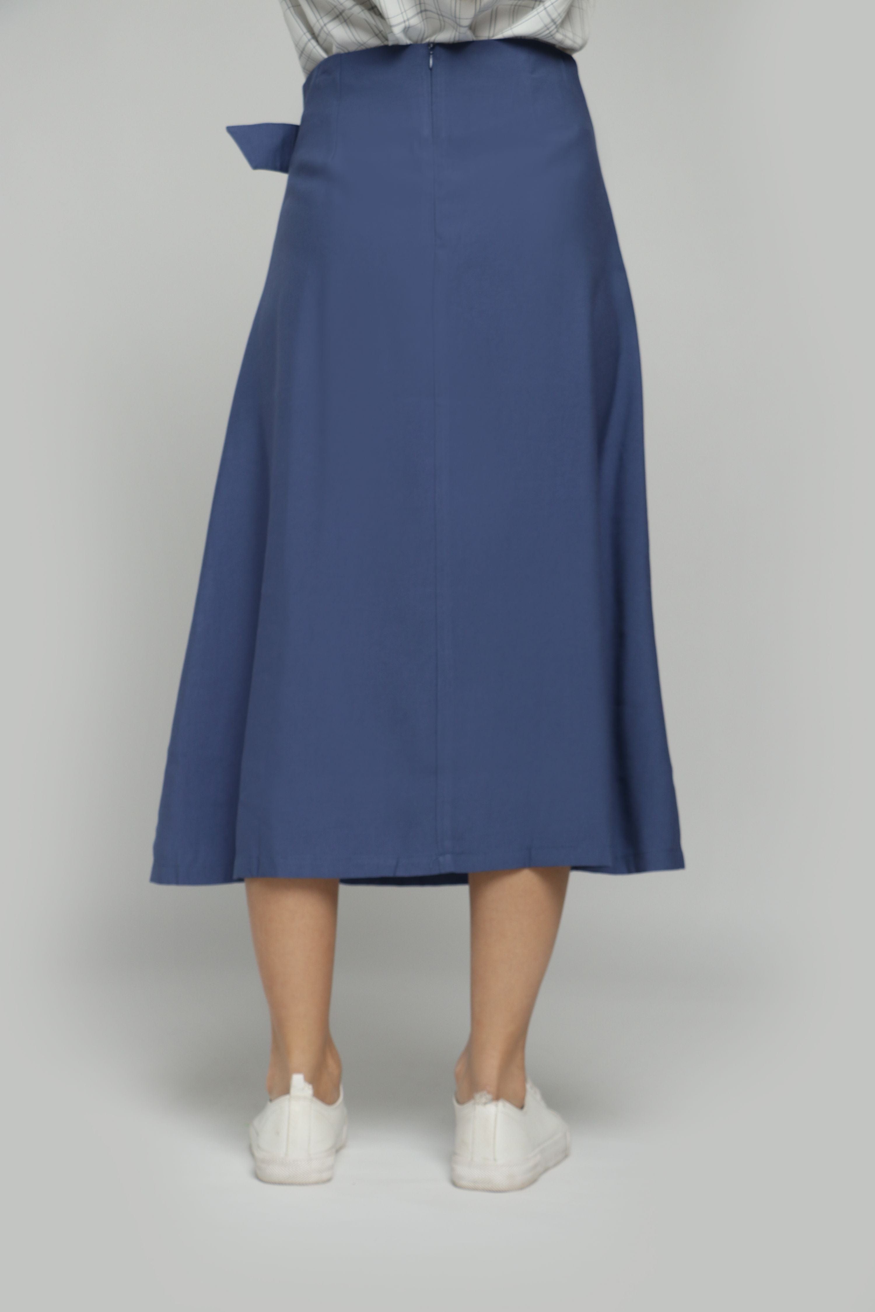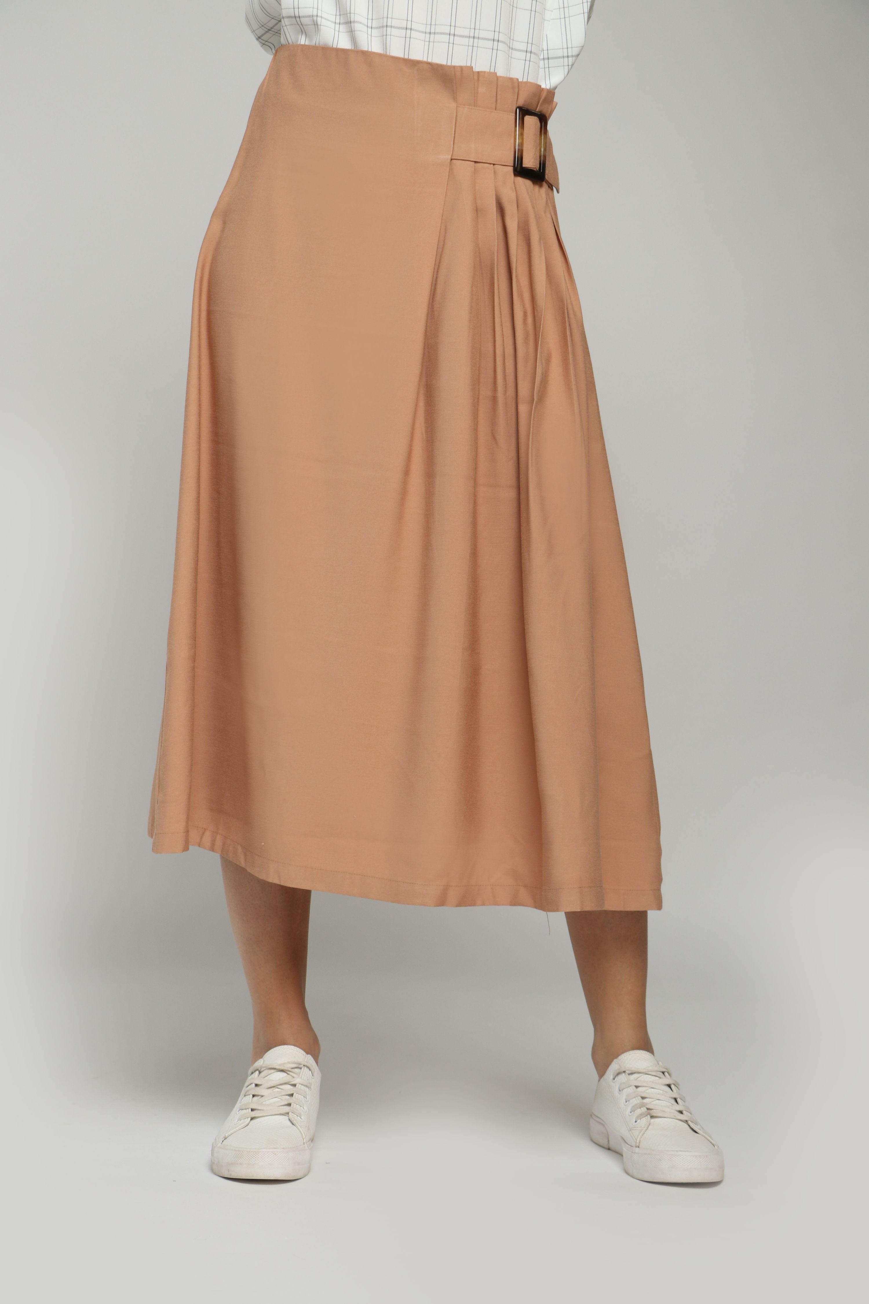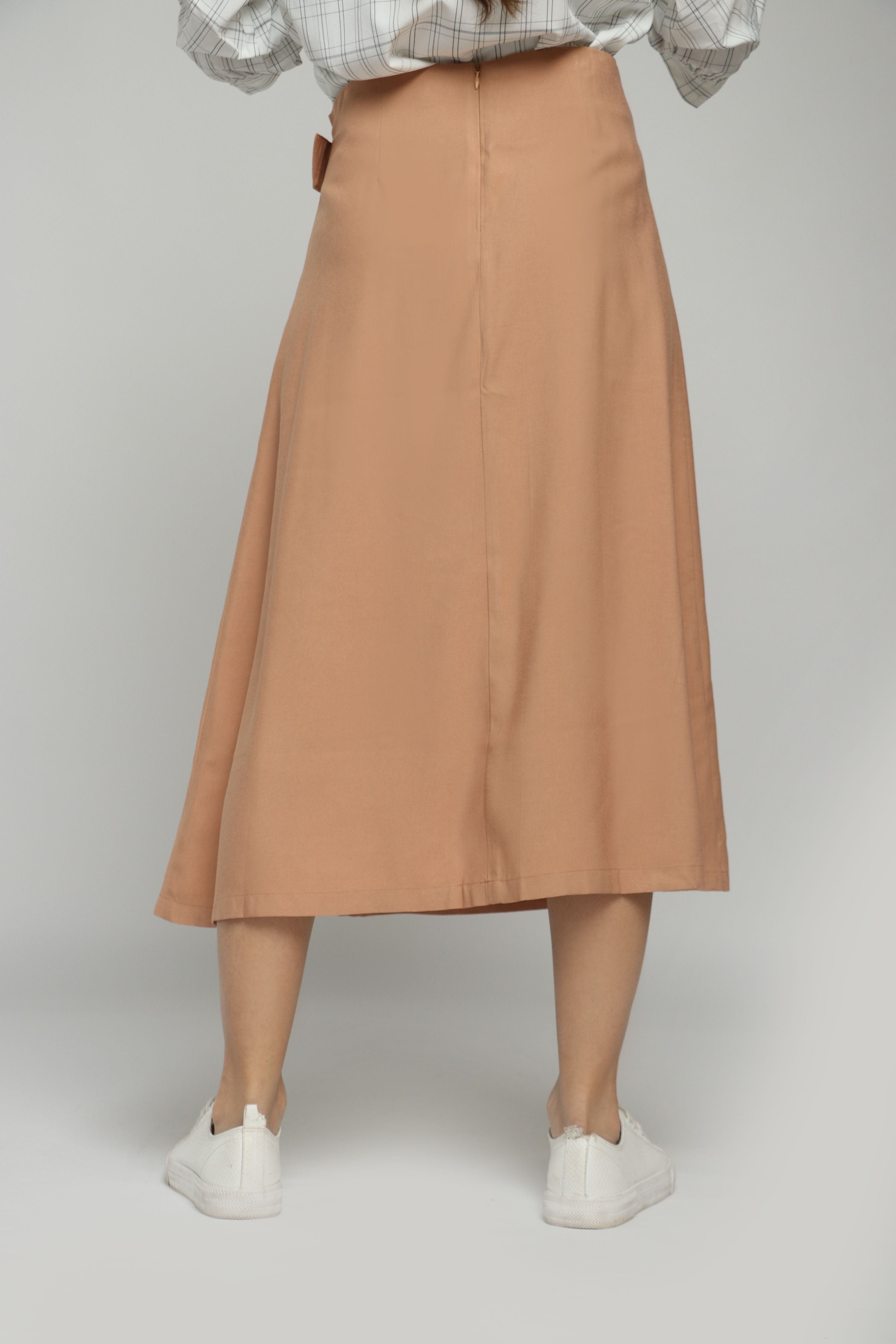 تنورة ميدي كلوش من الجانب بحزام عريض