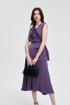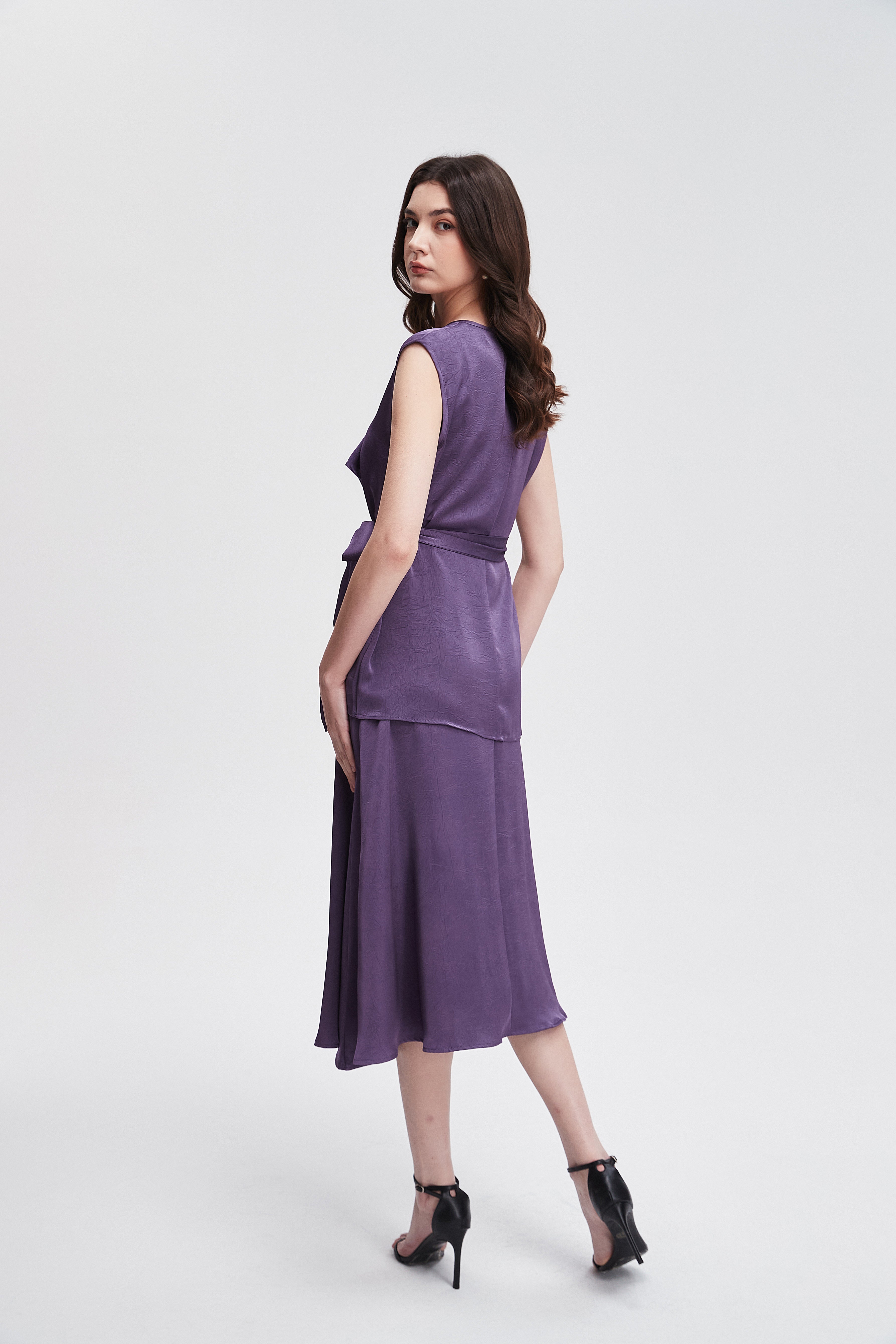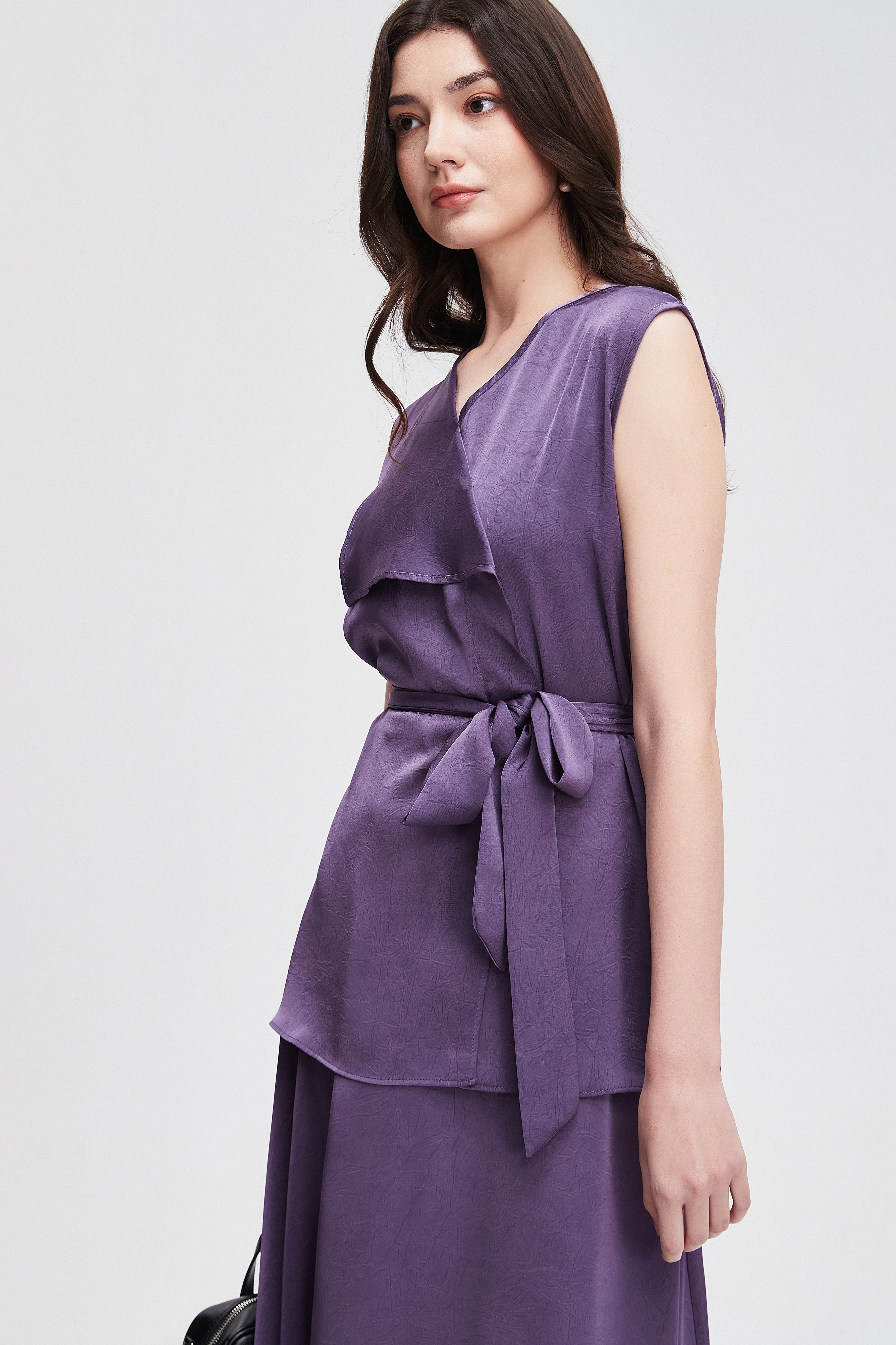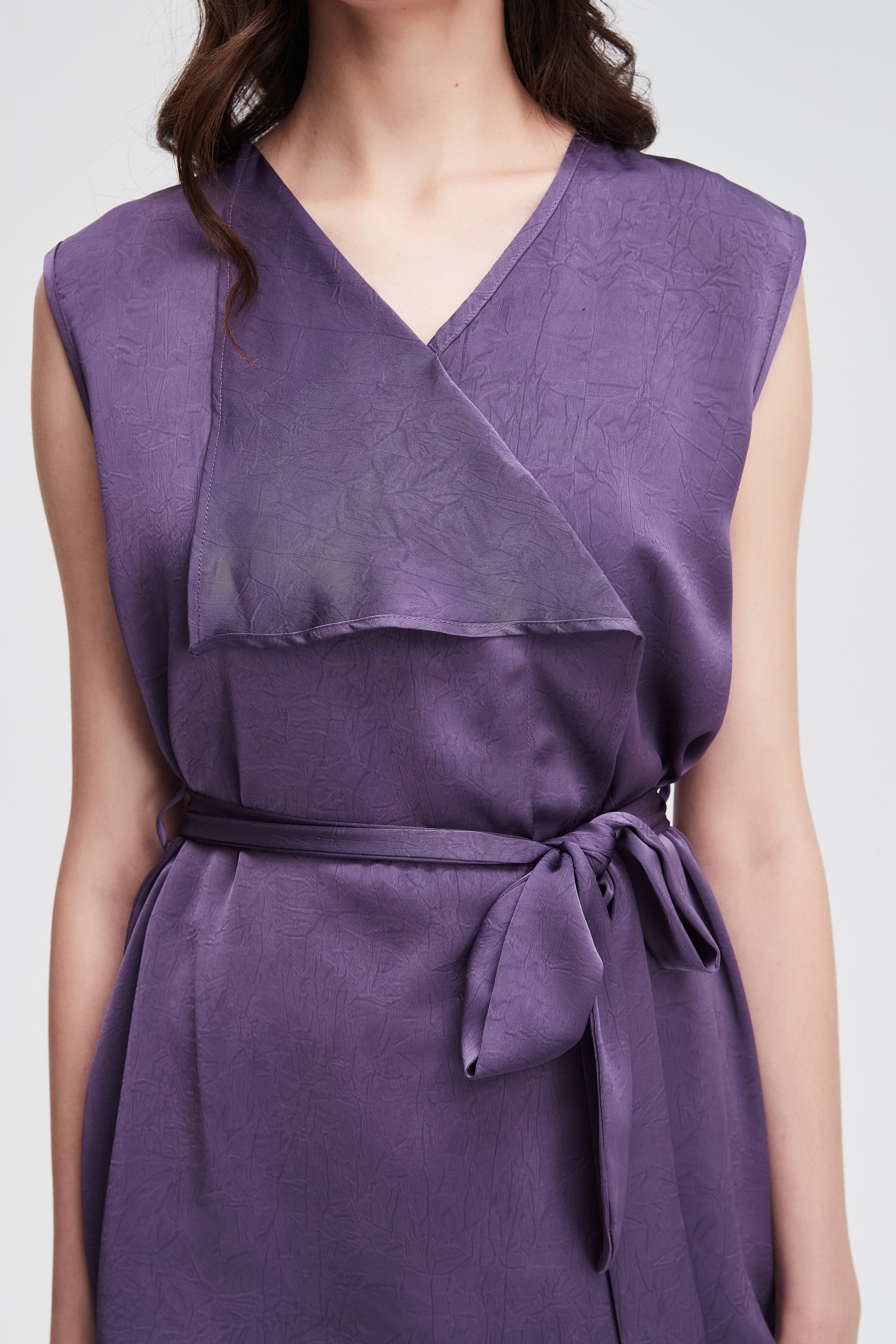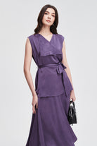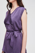بلوزة نسائية لف بحزام بفتحة ياقة V بدون أكمام