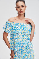 بلوزة بأكمام قصيرة منقوشة نسائي