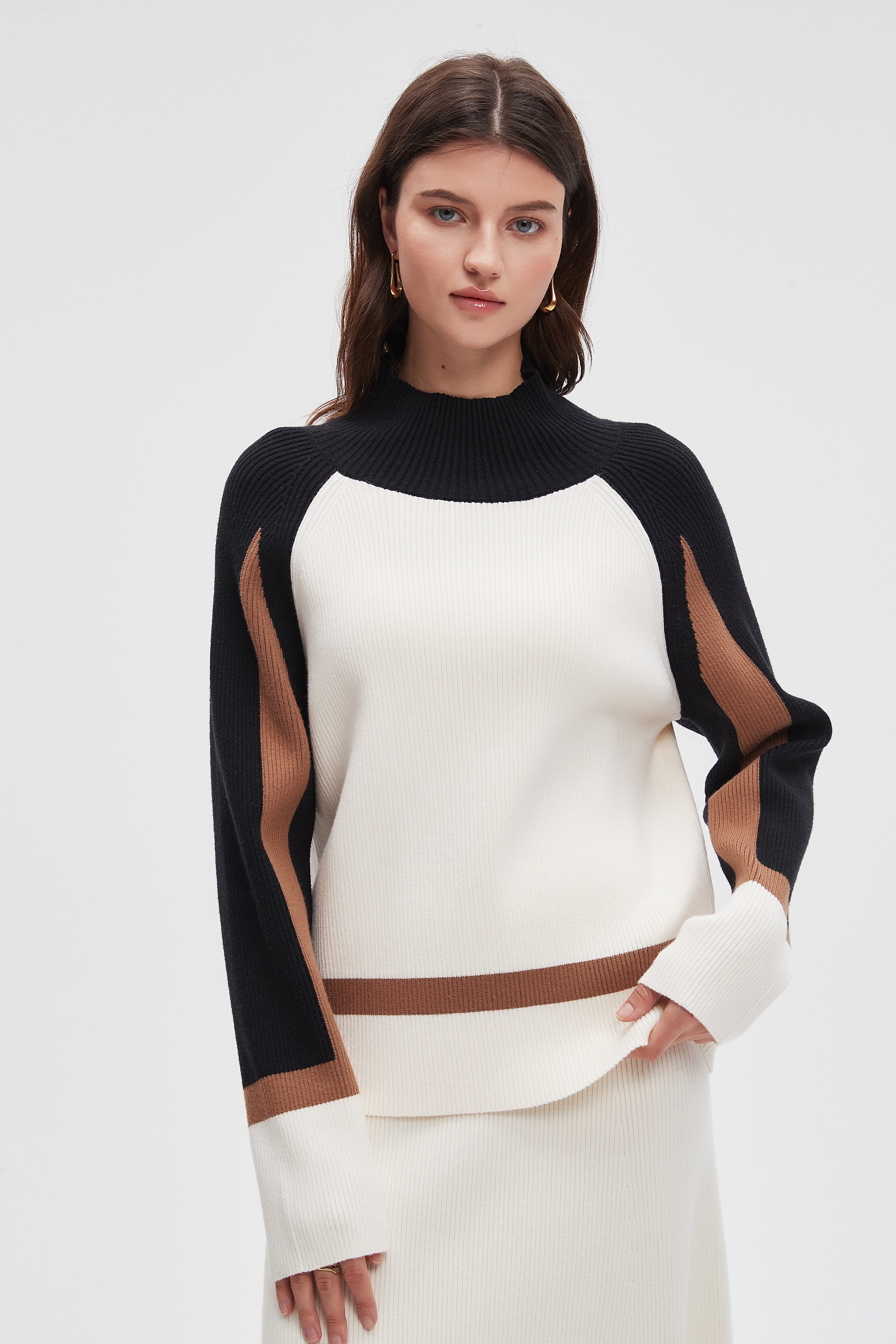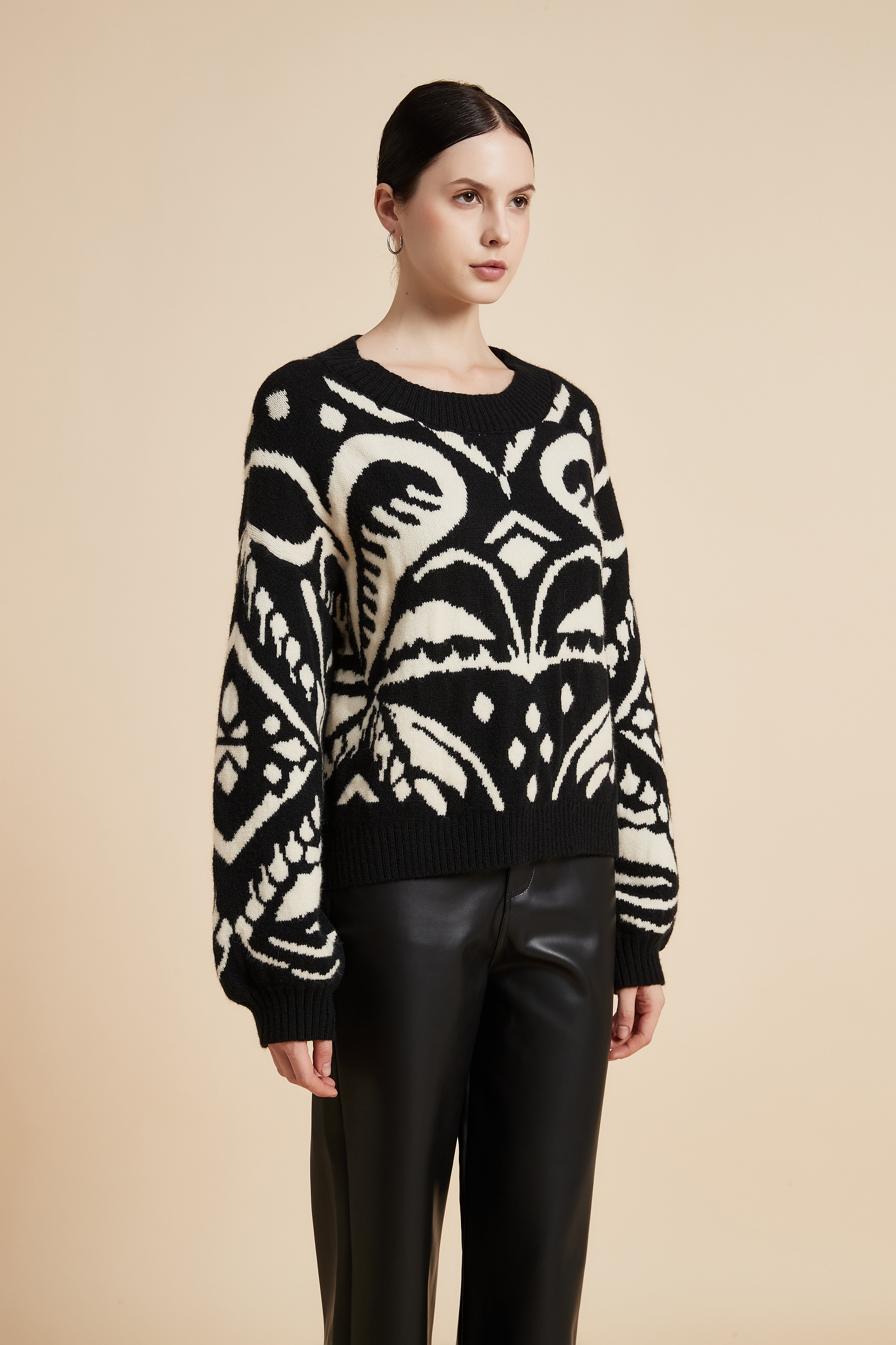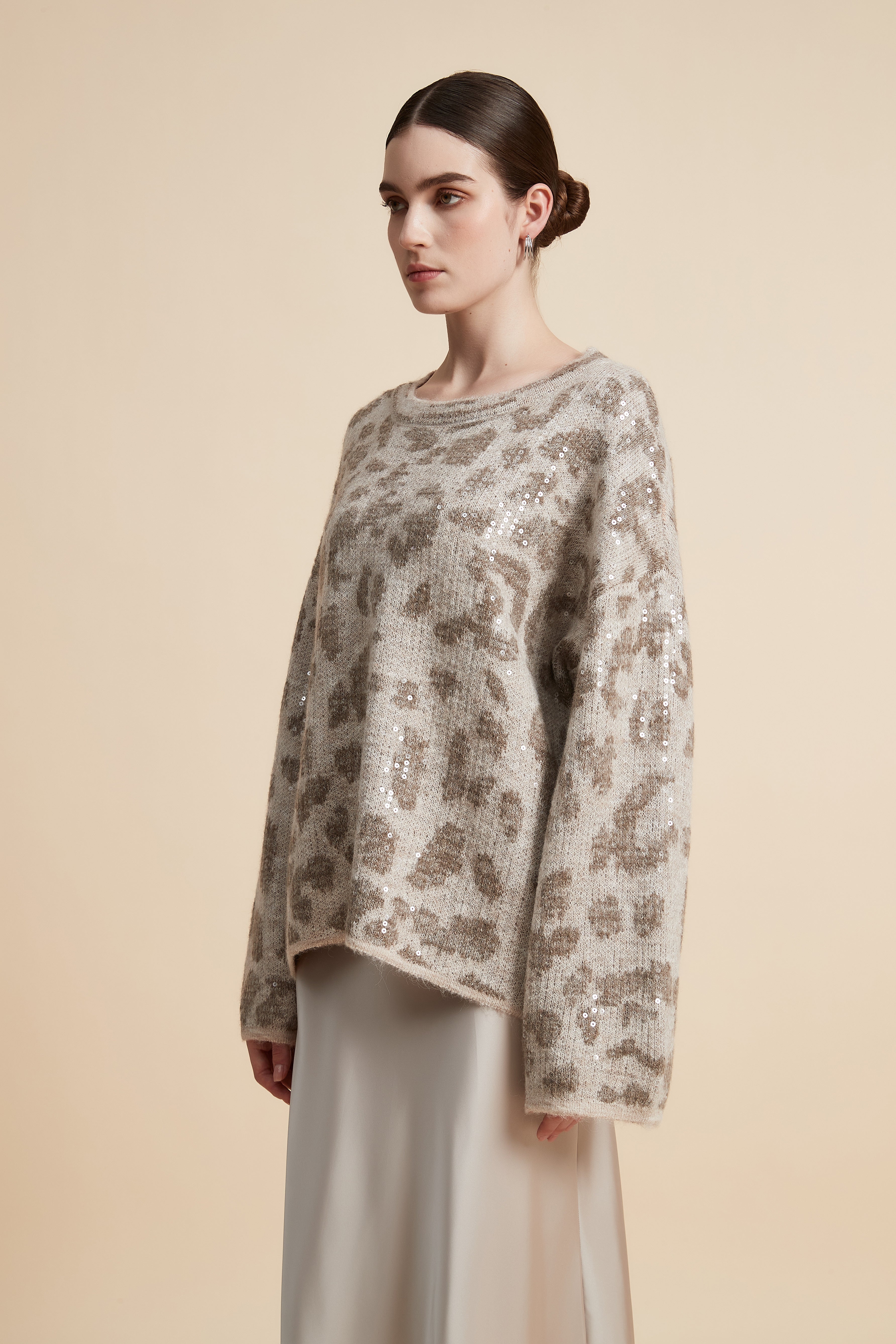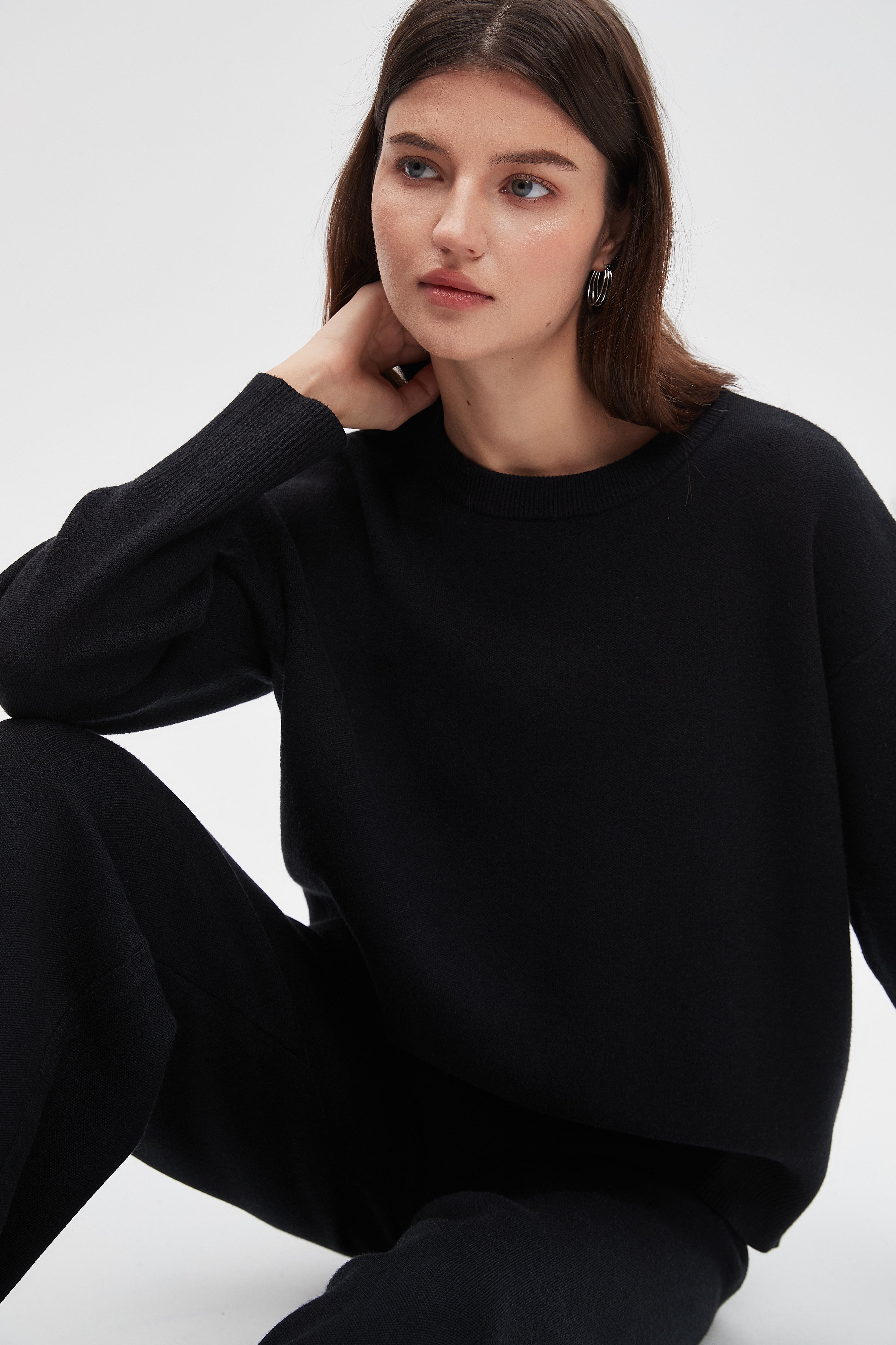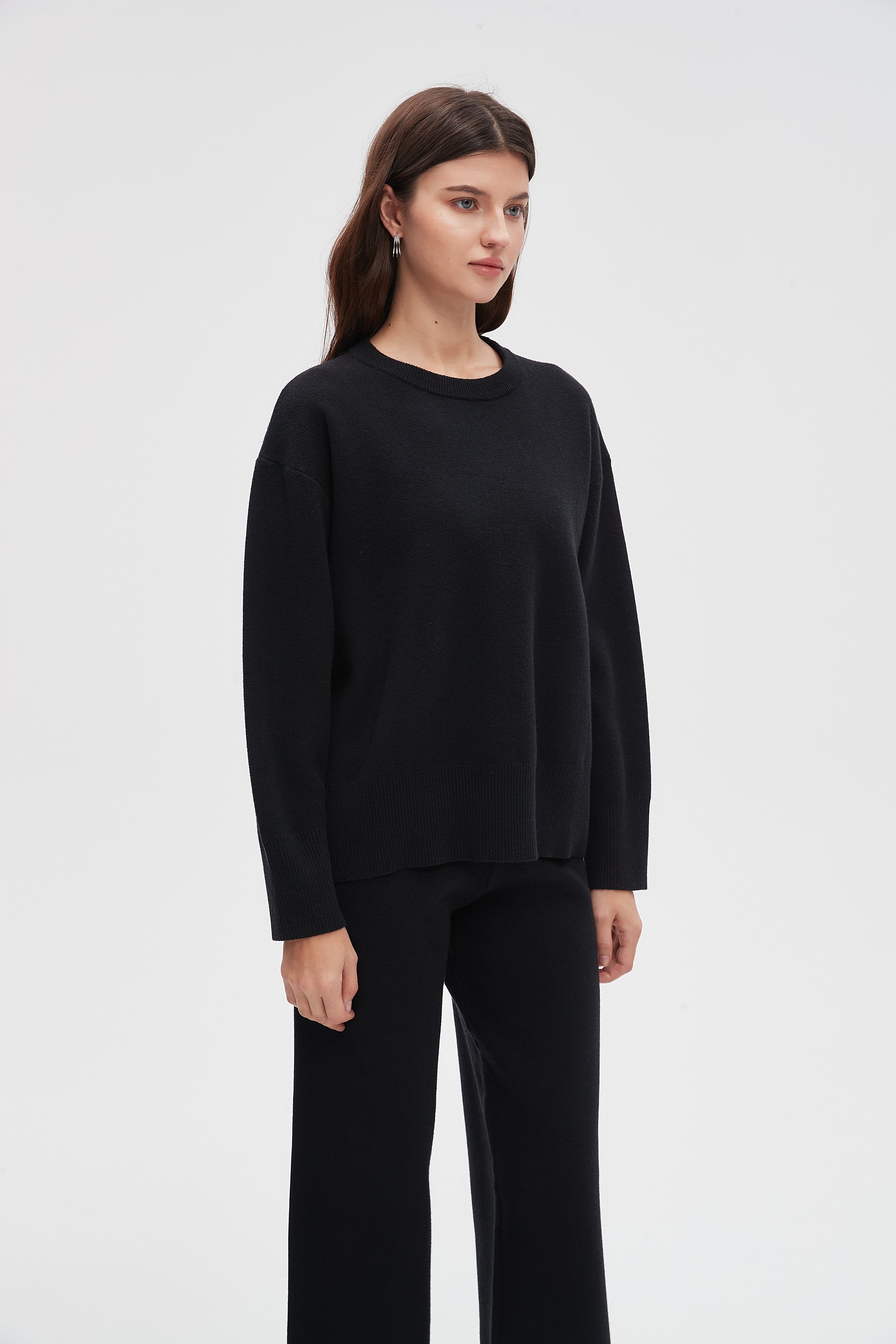 بلوفر بكم طويل واسع ورقبة مستديرة