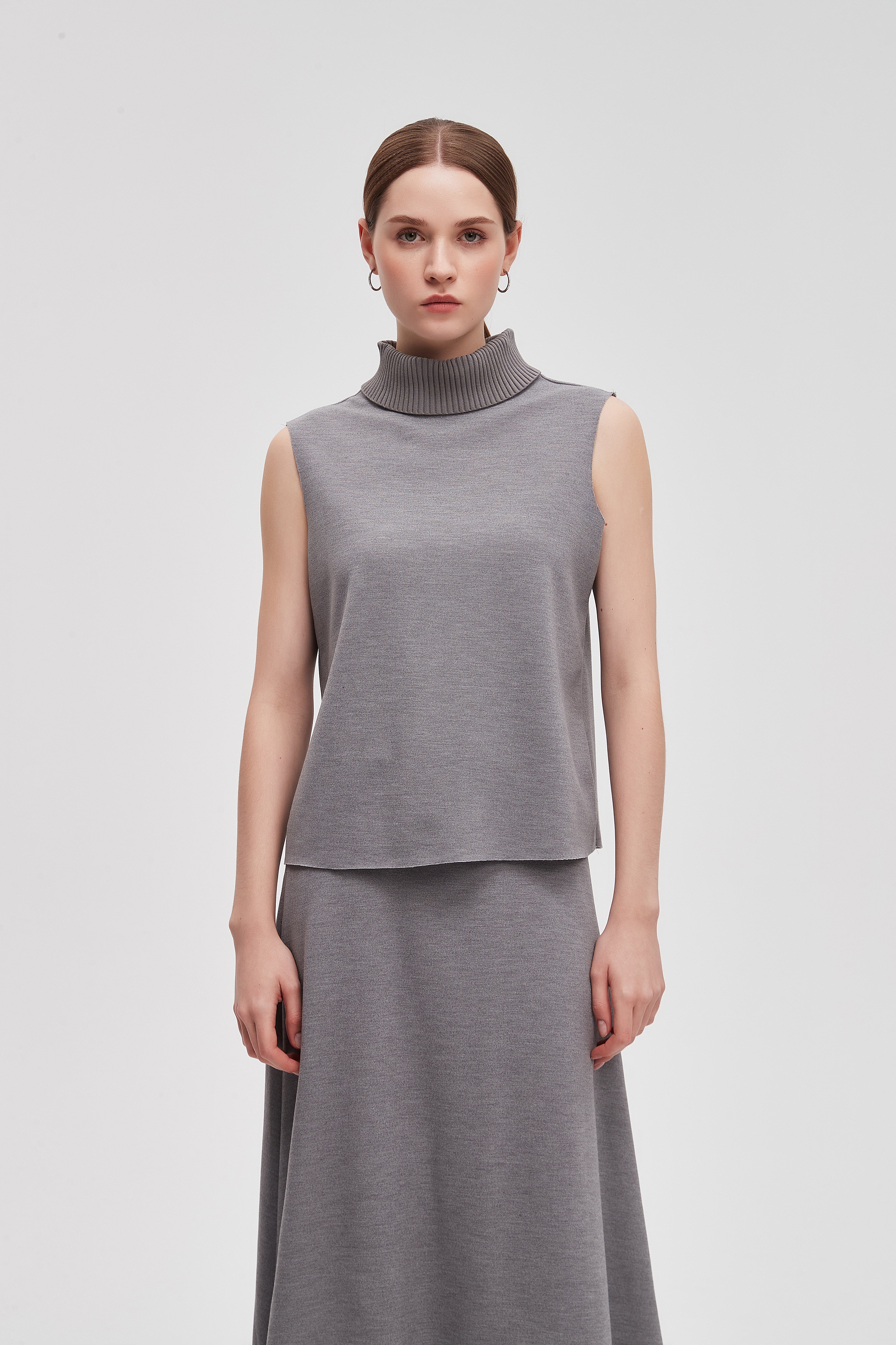 بلوفر بدون أكمام سادة بسحاب من الجنب