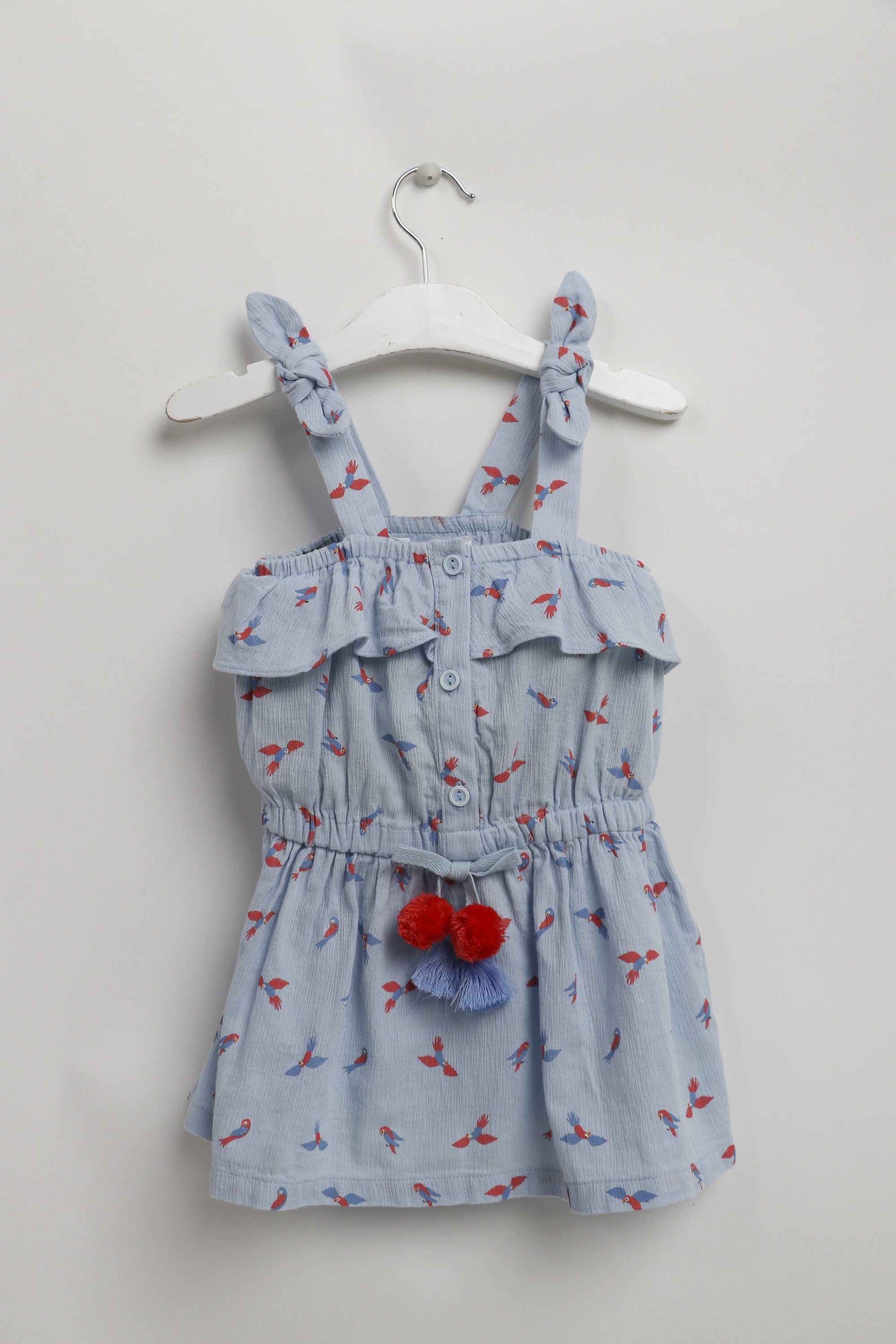 فستان مخصر أزرار أمامية حمالات فيونكة رضع بناتي