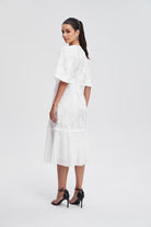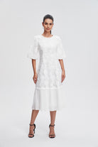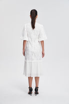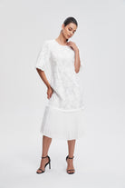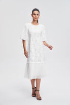 فستان ميدي مخصر بليسيه من أسفل نص كم بف نسائي